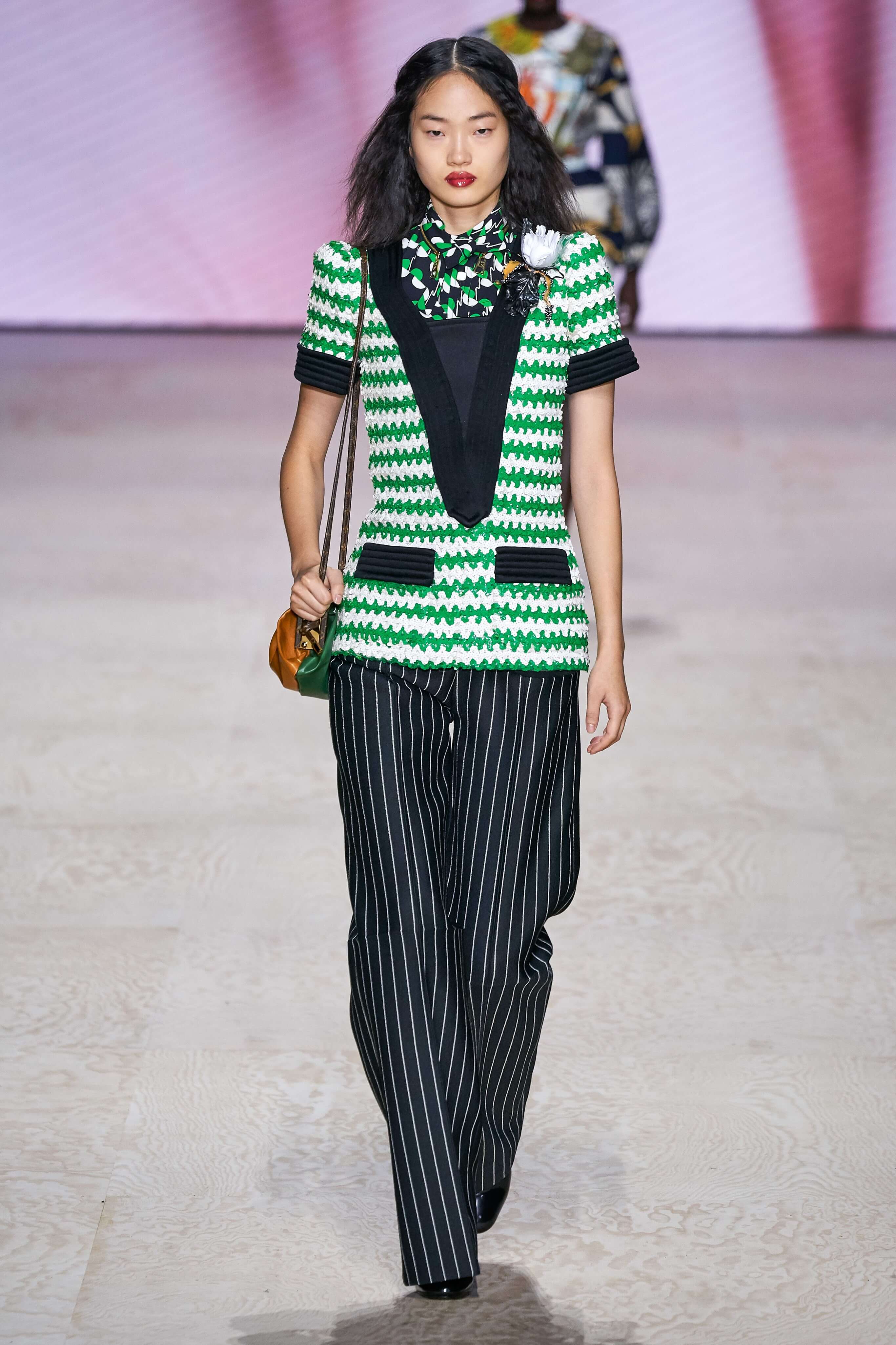В новом сезоне Гескьера вдохновила великолепная эпоха Belle Epoque. Модели, напоминающие городских денди и девушек Гибсона, выходили в вязаных радужных жилетах с люрексом, надетых поверх полосатых блуз с пышными рукавами, лощеных брючных костюмах с бутоньерками на лацканах, кожаных юбках-тюльпанах, словно лепестками окутывающих ноги, и жаккардовых жакетах. На укороченных платьях — принты и вышивка в виде цветов ириса и других мотивов искусства ар-нуво, а пёстрые, почти вычурные блузы с кружевом дополняли нежные юбки миди из шелка.