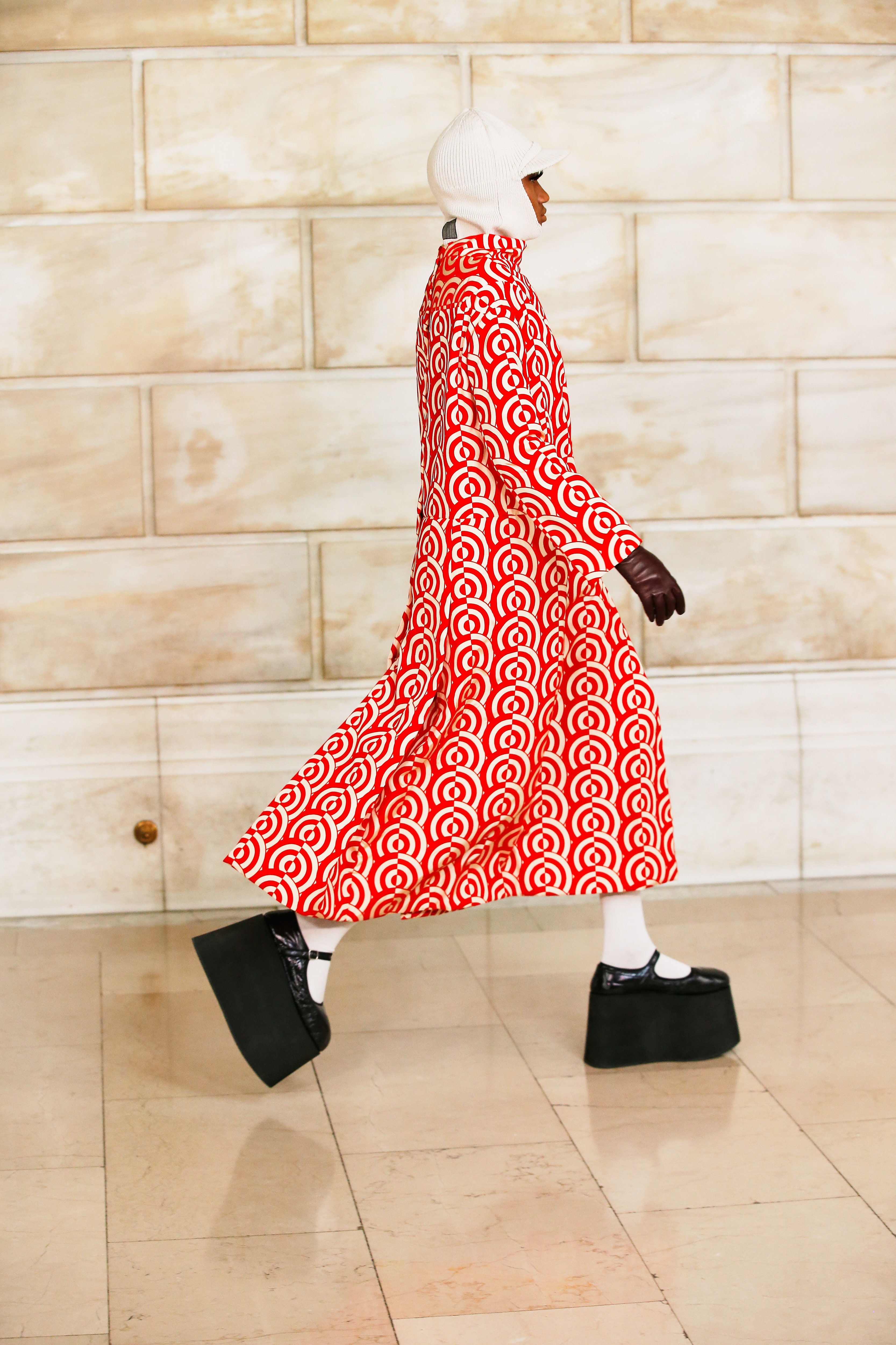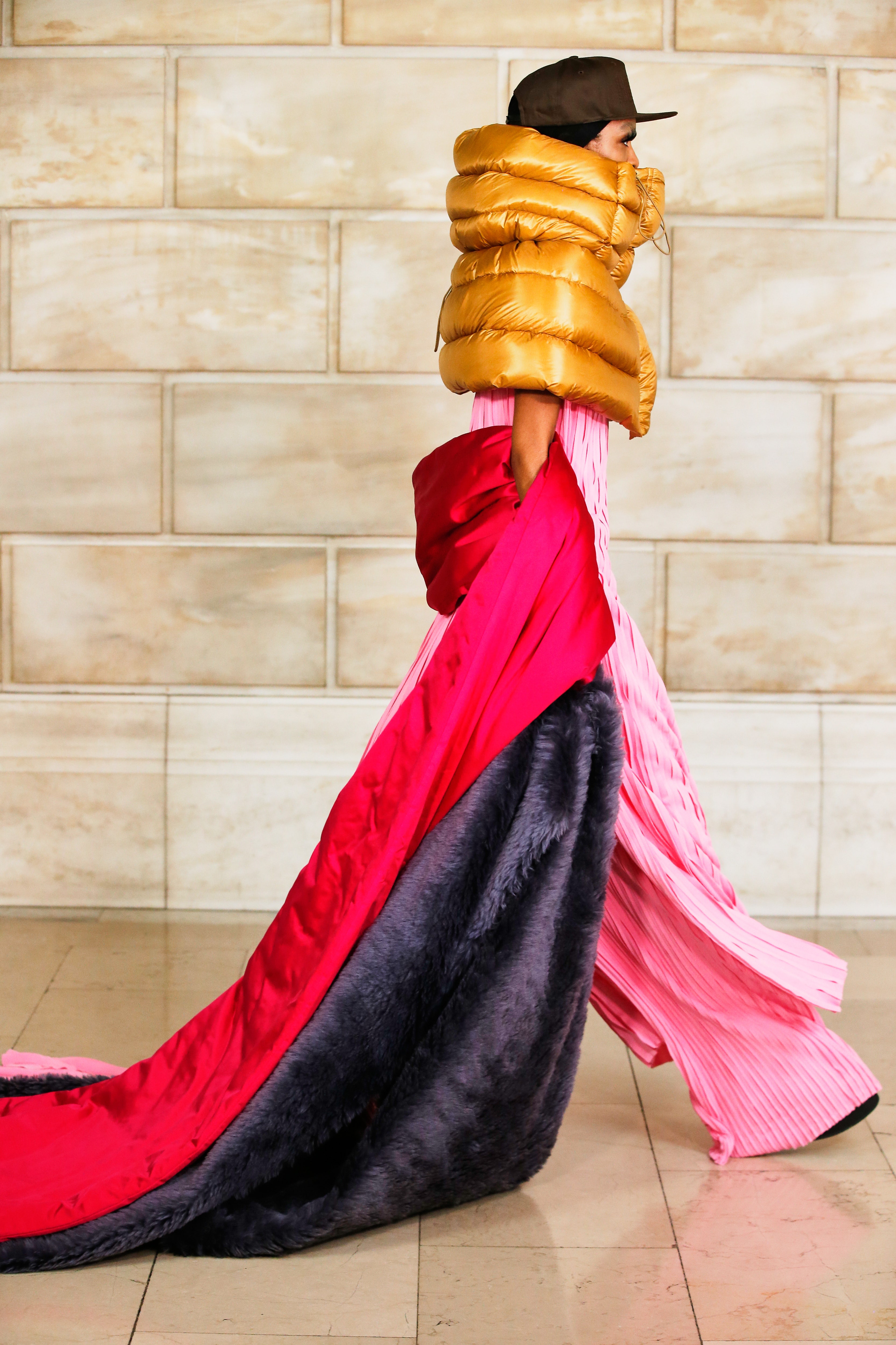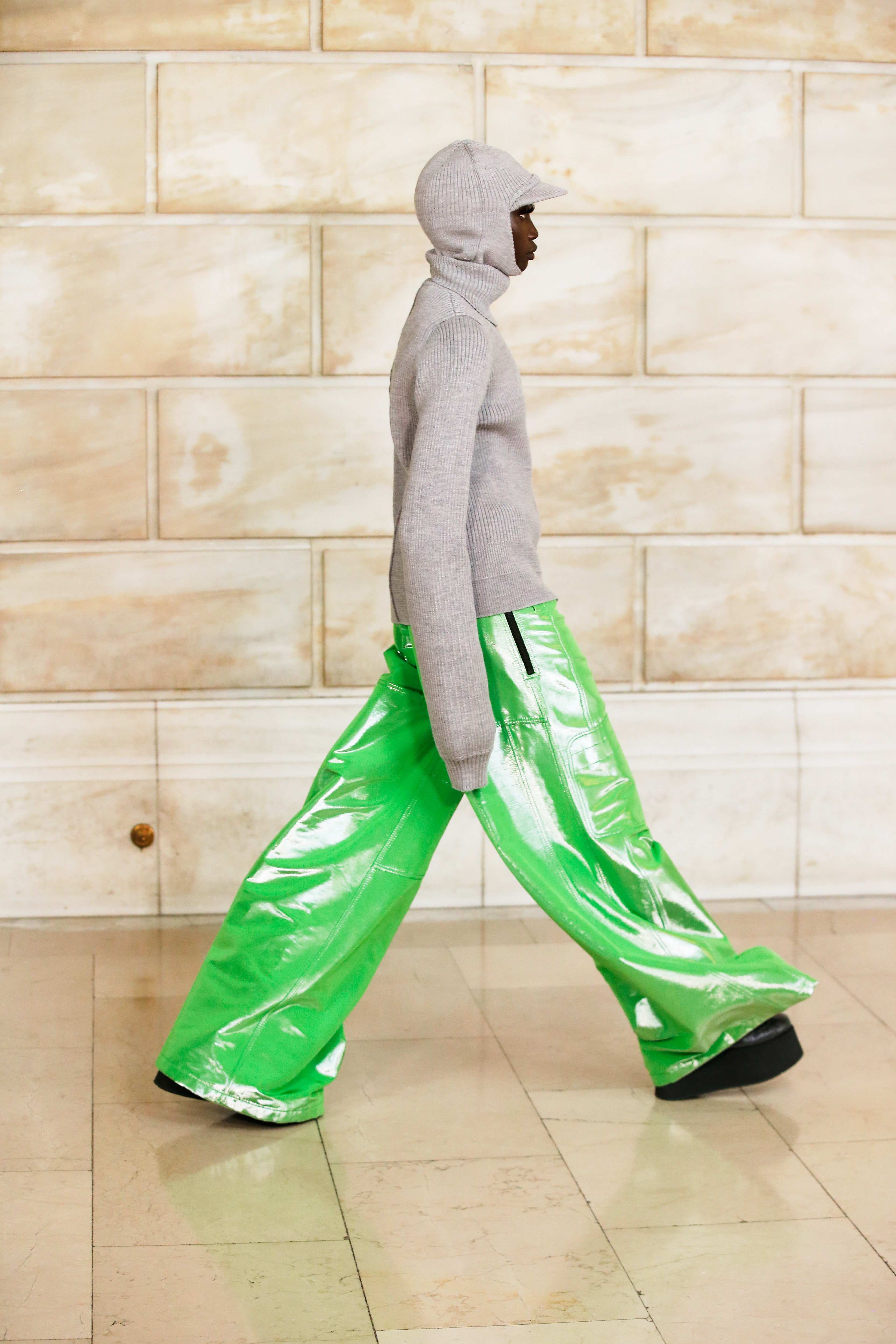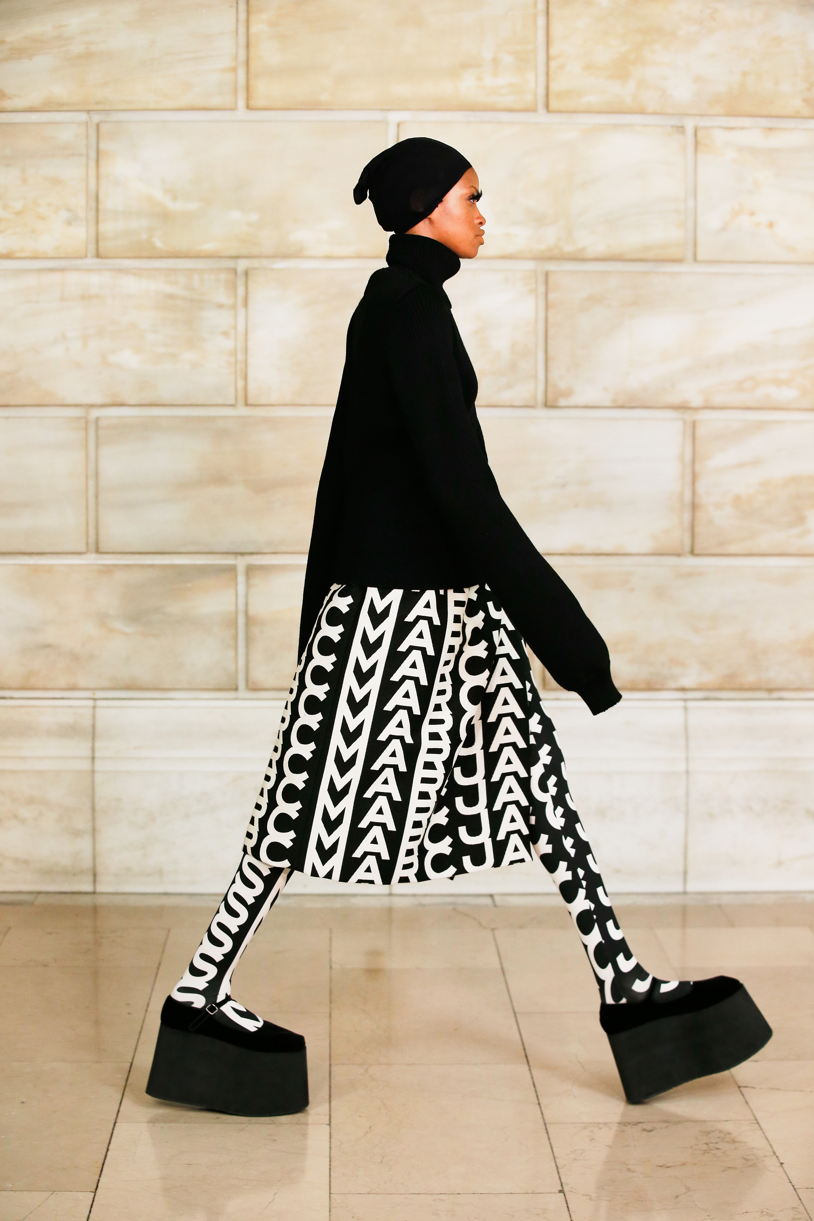 Марк Джейкобс не проводил шоу с февраля 2020 года и наконец порадовал поклонников долгожданным показом, который прошел офлайн. Его главной идеей стала мода нового времени, которая объединяет в себе комфорт, почти сведенный к домашнему, с футуризмом и при этом апеллирует к гламурным и экстравагантным силуэтам прошлого. Пуховики-снуды, пальто-коконы, облегающие тело трикотажные платья с цельнокроеными балаклавами и крупные пластиковые очки напоминают творения Андре Куррежа. Неокосмическая эстетика пронизывает всю коллекцию — от платьев в гипертрофированных блестящих пайетках до архитектурных панам и ботфортов-луноходов на высоких платформах. Слои трубчатого трикотажа в подиумных образах сплетались со стегаными шарфами и палантинами из искусственного меха, будто закрывая тела моделей от космического ветра. Некоторые образы, кажется, созданы для вечеринки на борту звездолета: сложносочиненные наряды с вырезами по бокам, перчатки выше локтя и струящиеся вечерние наряды из формованного материала с атласными накидками-шлейфами.