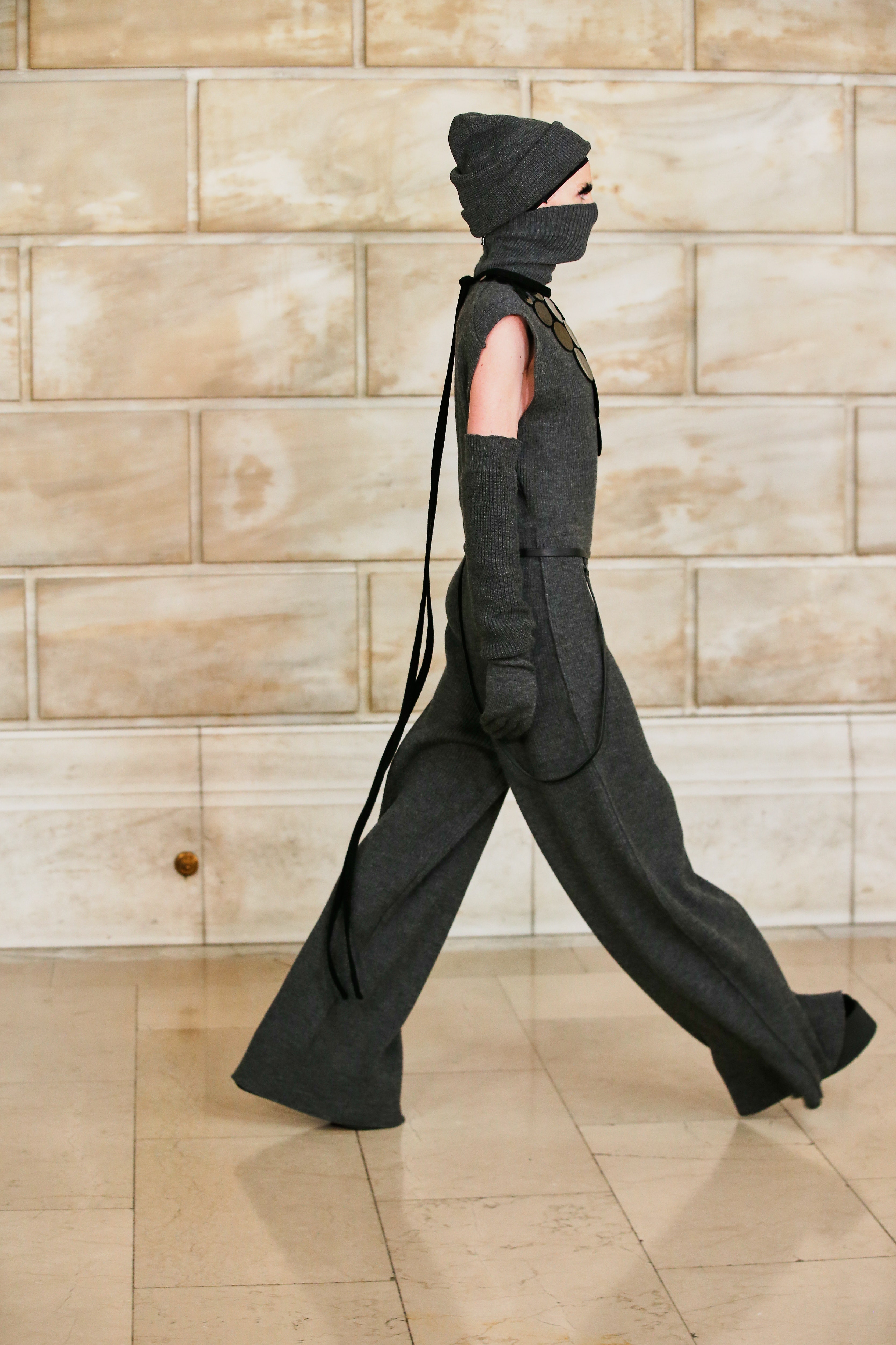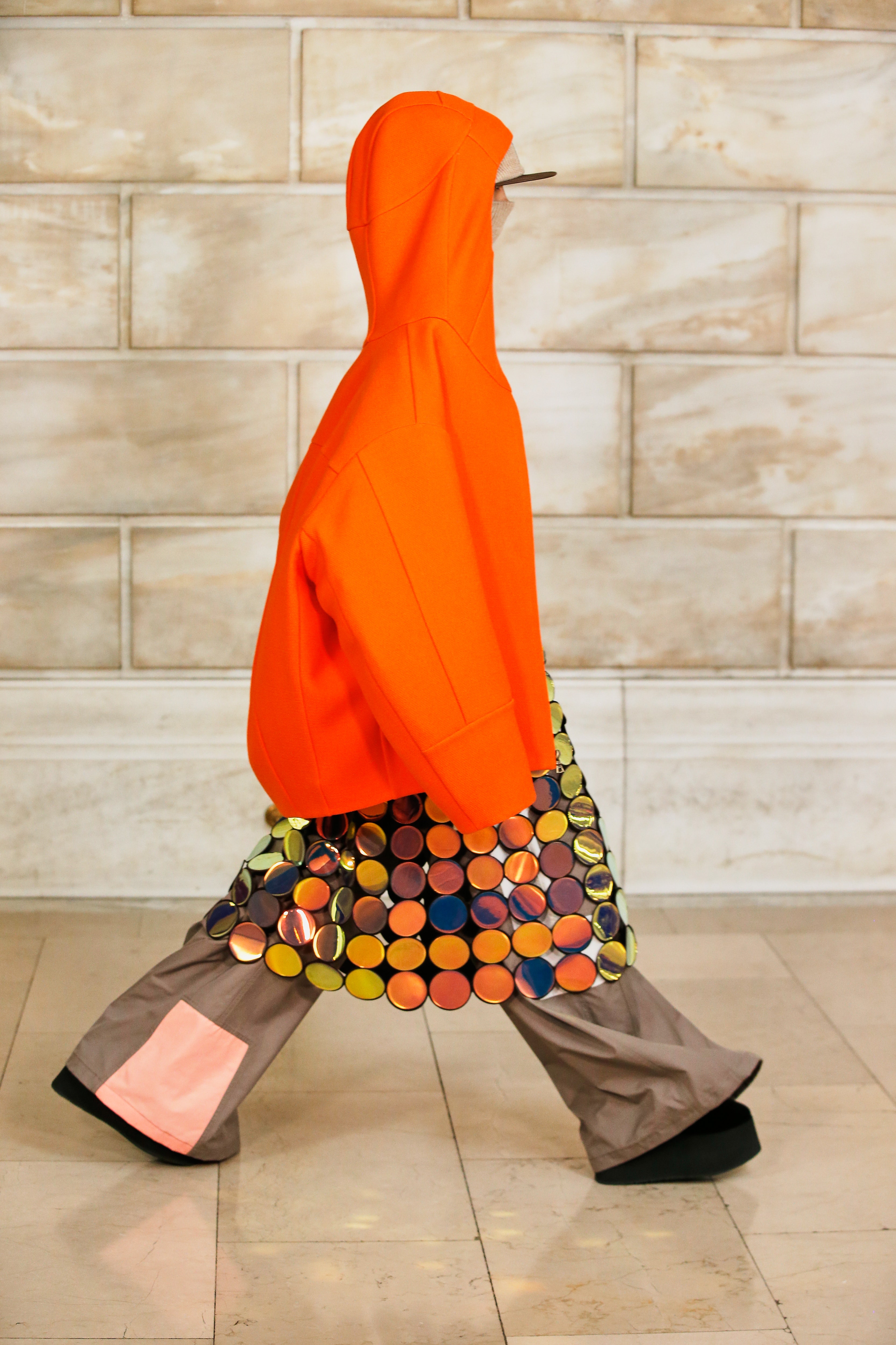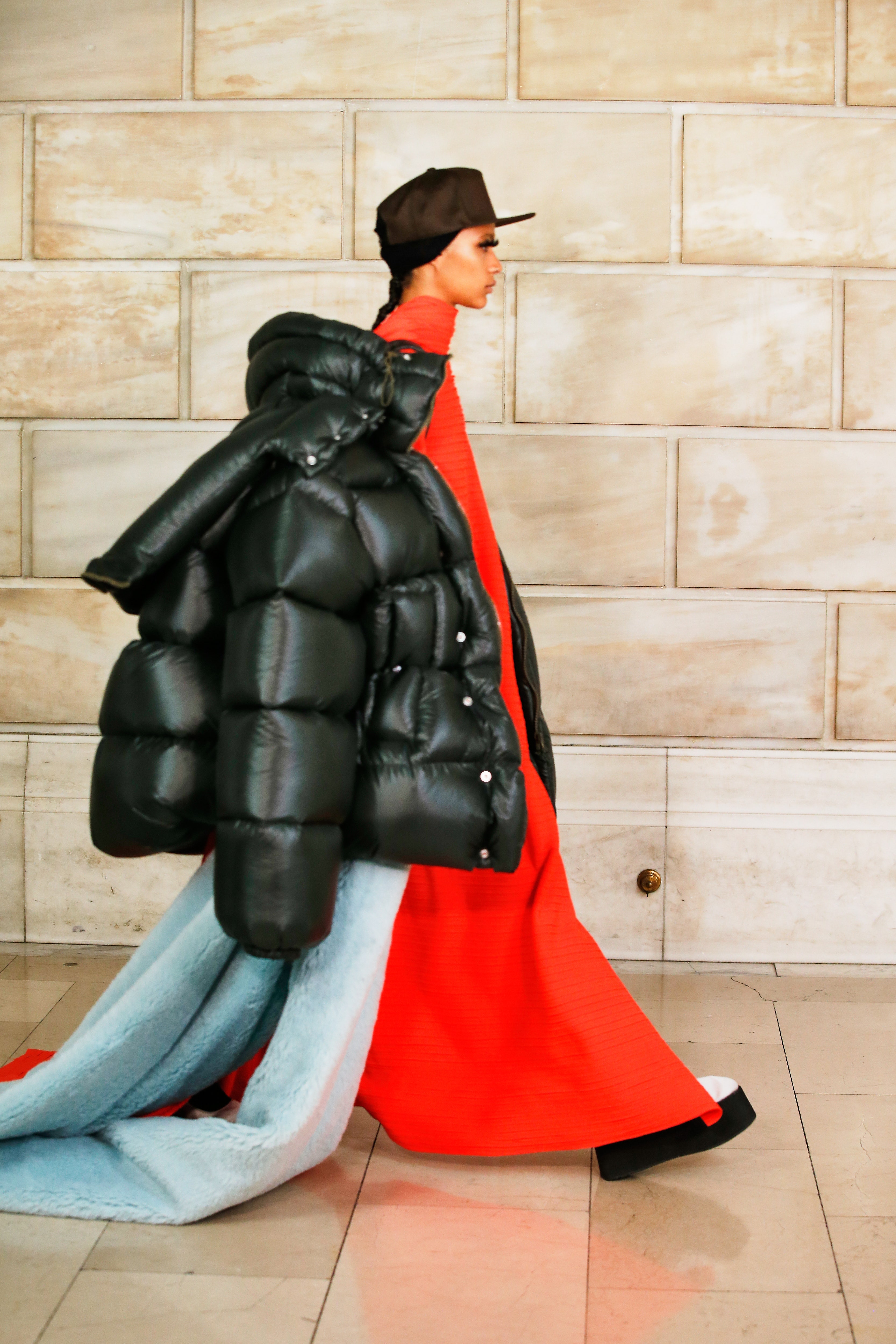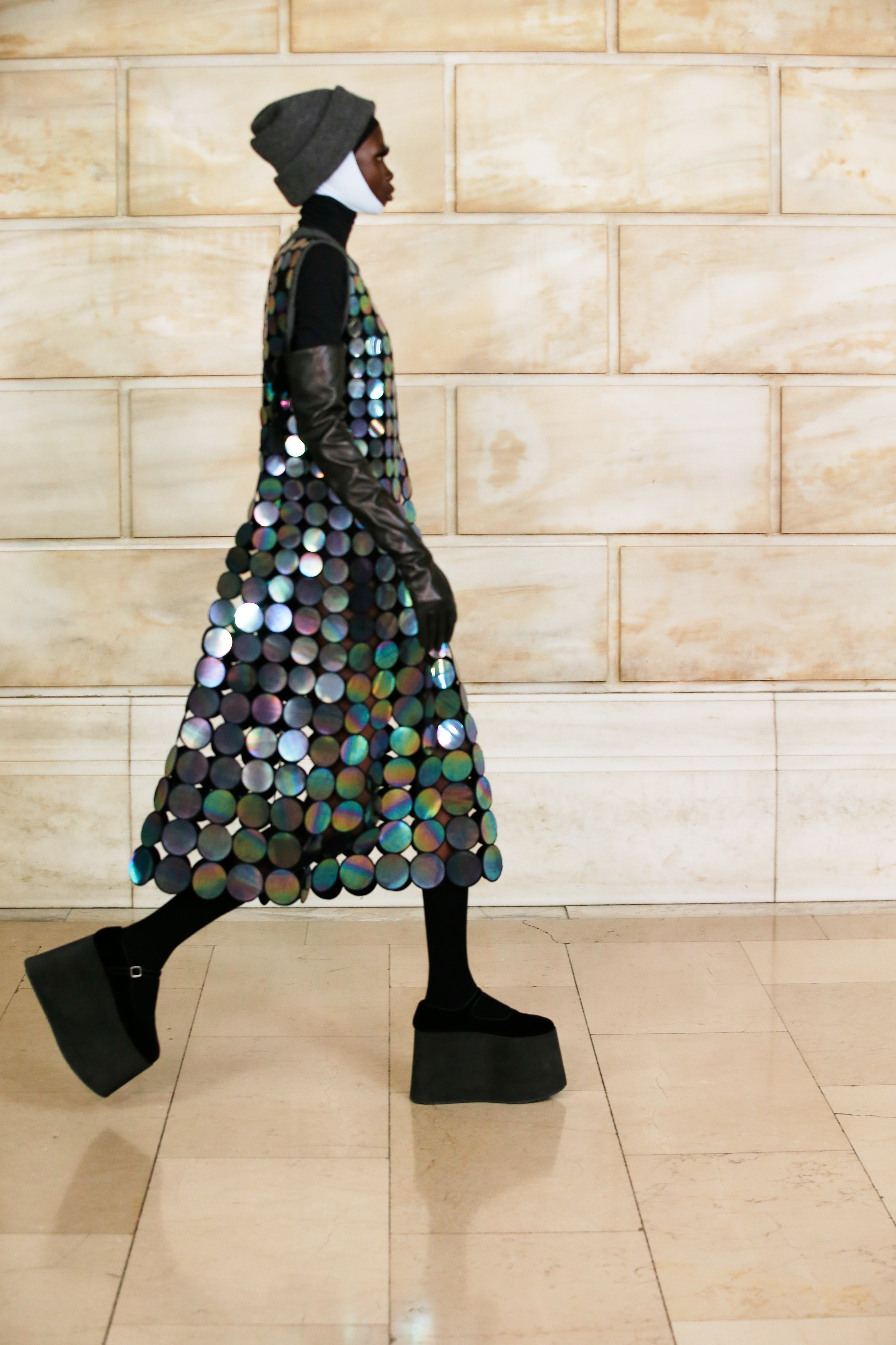 Марк Джейкобс не проводил шоу с февраля 2020 года и наконец порадовал поклонников долгожданным показом, который прошел офлайн. Его главной идеей стала мода нового времени, которая объединяет в себе комфорт, почти сведенный к домашнему, с футуризмом и при этом апеллирует к гламурным и экстравагантным силуэтам прошлого. Пуховики-снуды, пальто-коконы, облегающие тело трикотажные платья с цельнокроеными балаклавами и крупные пластиковые очки напоминают творения Андре Куррежа. Неокосмическая эстетика пронизывает всю коллекцию — от платьев в гипертрофированных блестящих пайетках до архитектурных панам и ботфортов-луноходов на высоких платформах. Слои трубчатого трикотажа в подиумных образах сплетались со стегаными шарфами и палантинами из искусственного меха, будто закрывая тела моделей от космического ветра. Некоторые образы, кажется, созданы для вечеринки на борту звездолета: сложносочиненные наряды с вырезами по бокам, перчатки выше локтя и струящиеся вечерние наряды из формованного материала с атласными накидками-шлейфами.