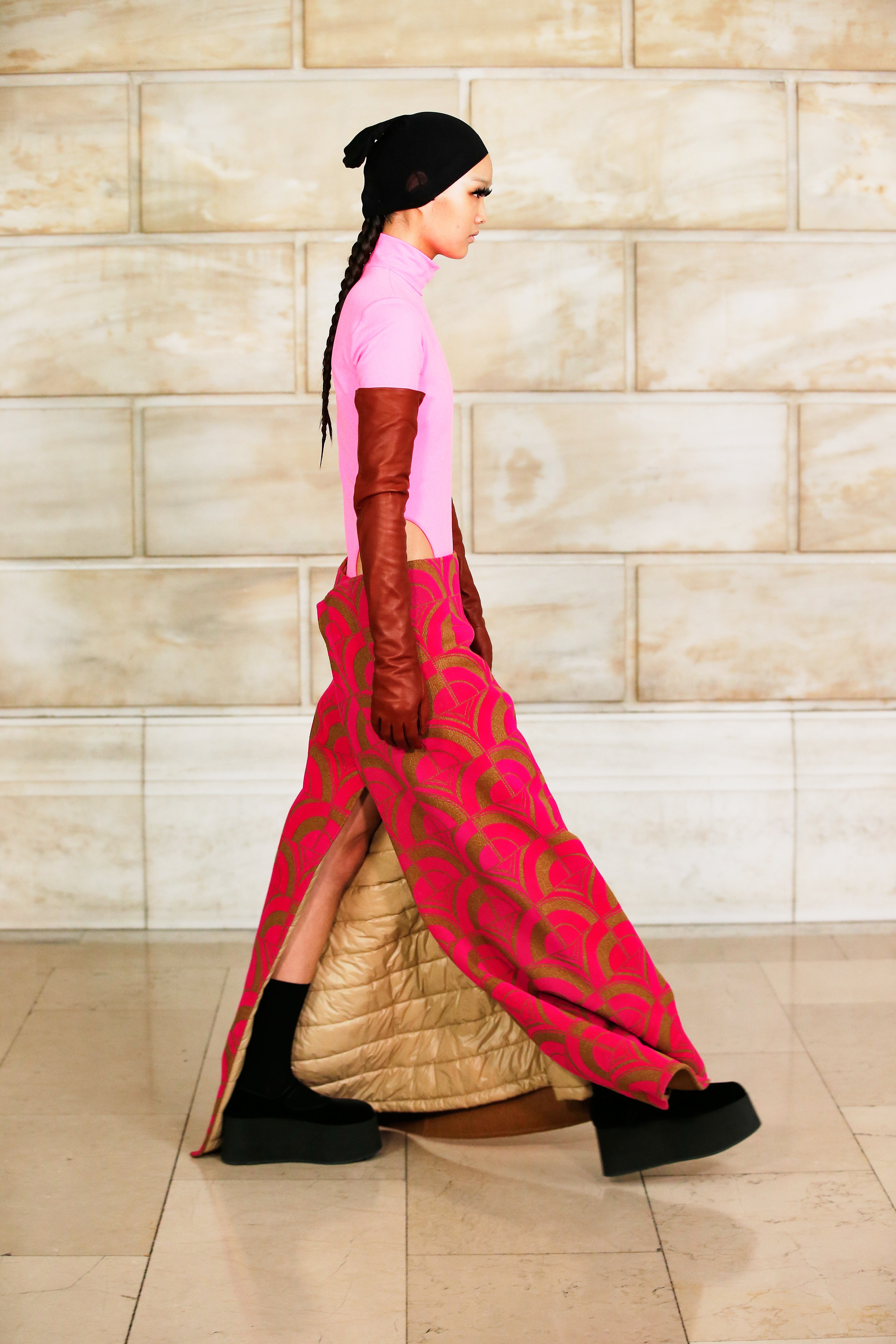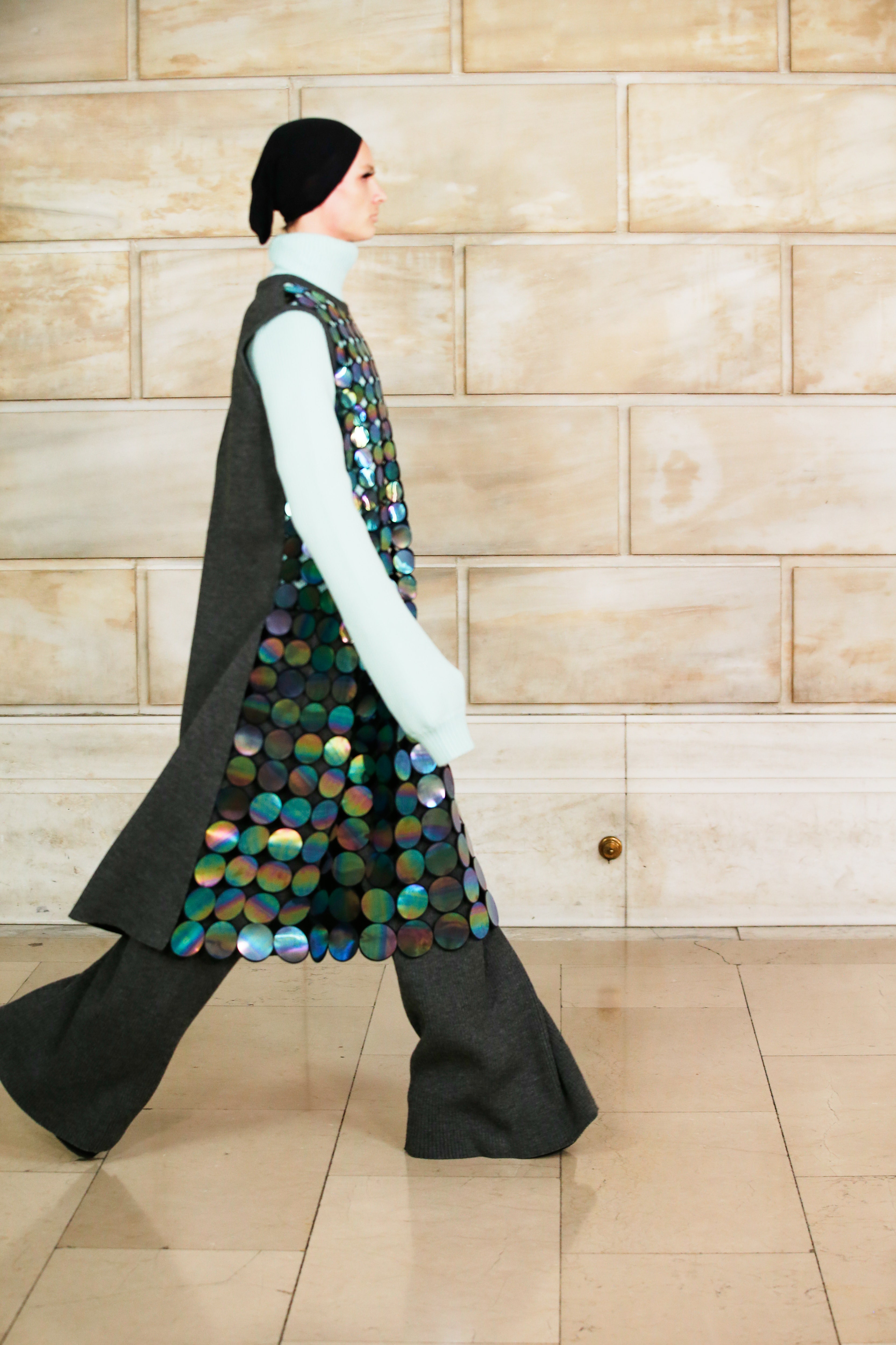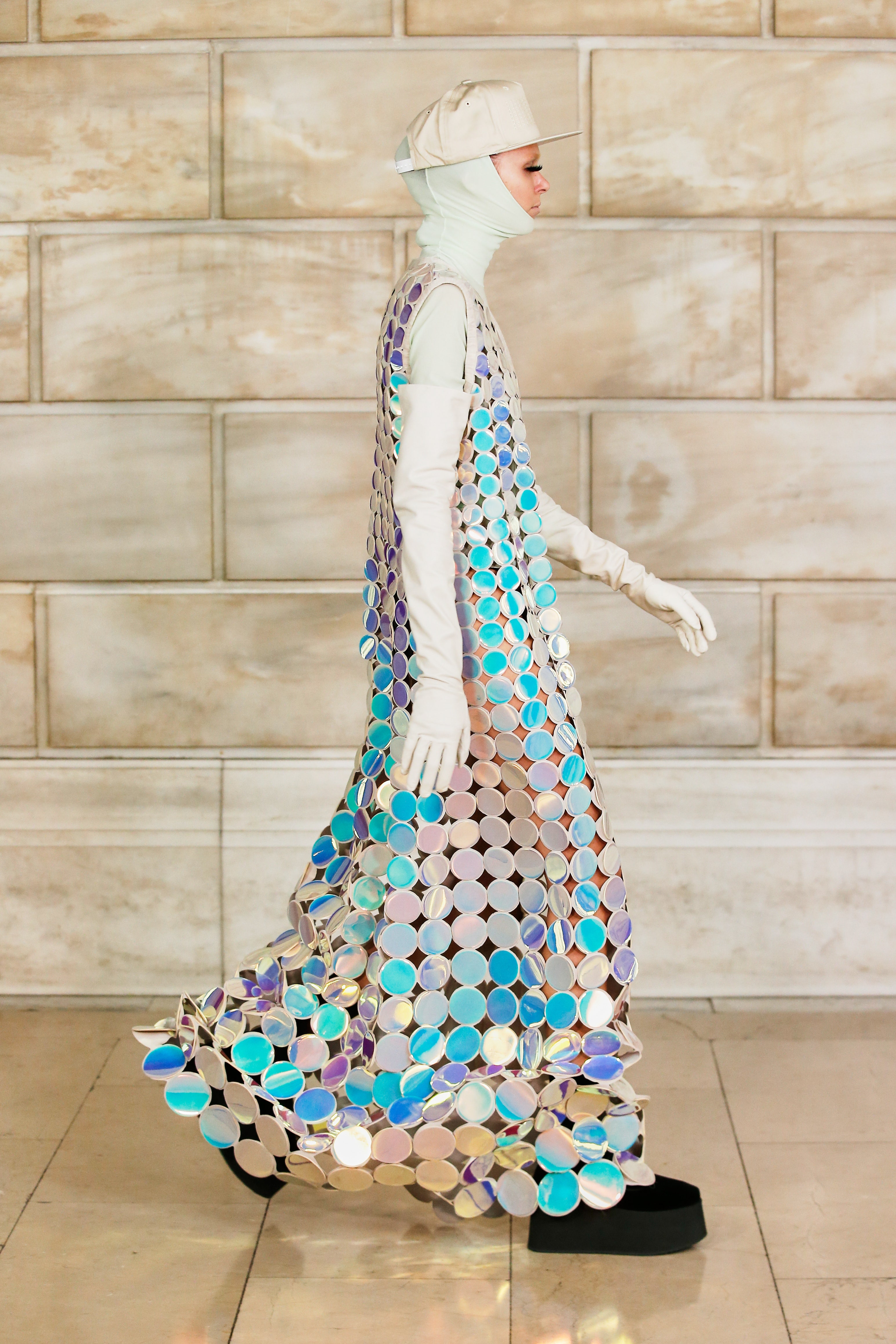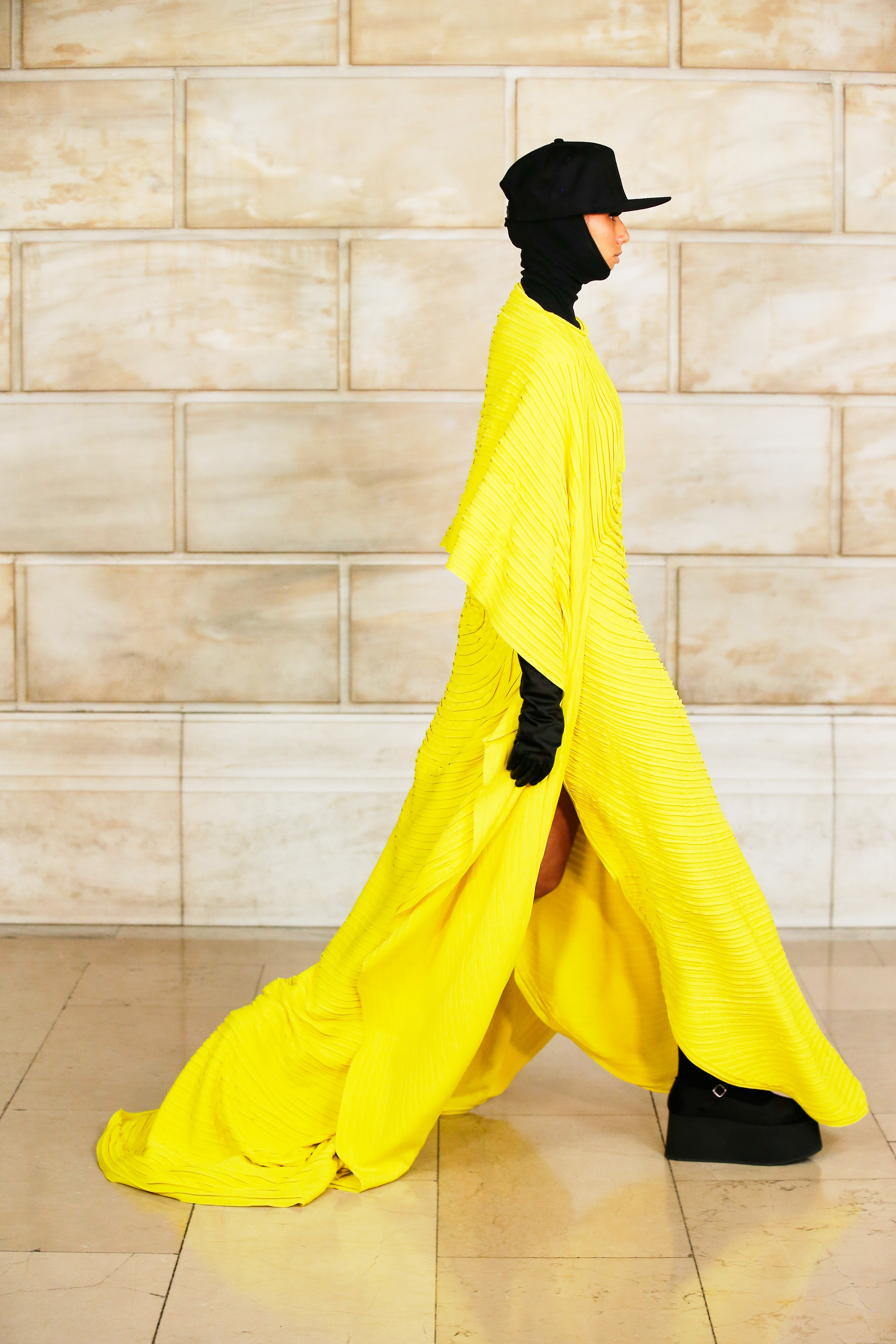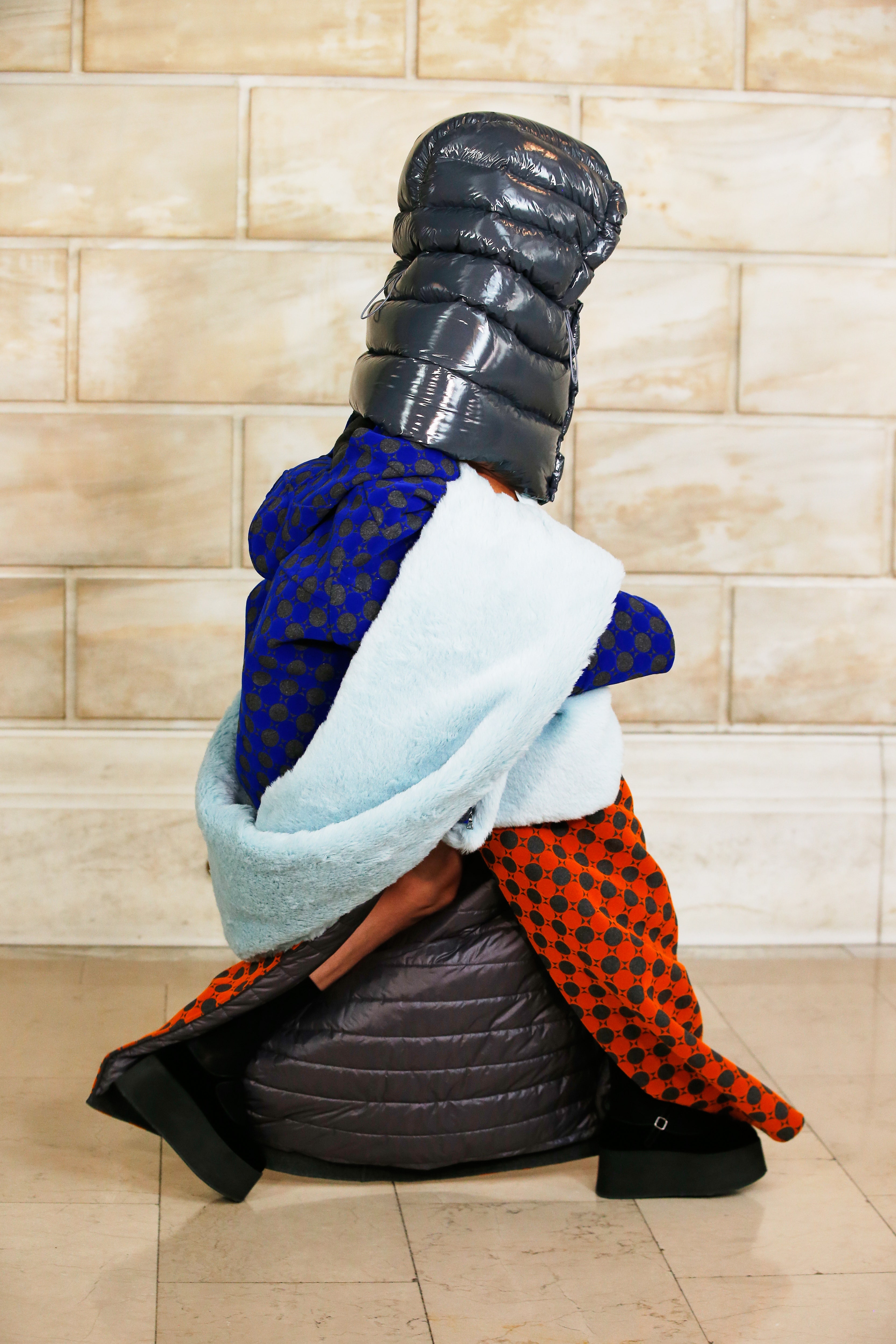 Марк Джейкобс не проводил шоу с февраля 2020 года и наконец порадовал поклонников долгожданным показом, который прошел офлайн. Его главной идеей стала мода нового времени, которая объединяет в себе комфорт, почти сведенный к домашнему, с футуризмом и при этом апеллирует к гламурным и экстравагантным силуэтам прошлого. Пуховики-снуды, пальто-коконы, облегающие тело трикотажные платья с цельнокроеными балаклавами и крупные пластиковые очки напоминают творения Андре Куррежа. Неокосмическая эстетика пронизывает всю коллекцию — от платьев в гипертрофированных блестящих пайетках до архитектурных панам и ботфортов-луноходов на высоких платформах. Слои трубчатого трикотажа в подиумных образах сплетались со стегаными шарфами и палантинами из искусственного меха, будто закрывая тела моделей от космического ветра. Некоторые образы, кажется, созданы для вечеринки на борту звездолета: сложносочиненные наряды с вырезами по бокам, перчатки выше локтя и струящиеся вечерние наряды из формованного материала с атласными накидками-шлейфами.