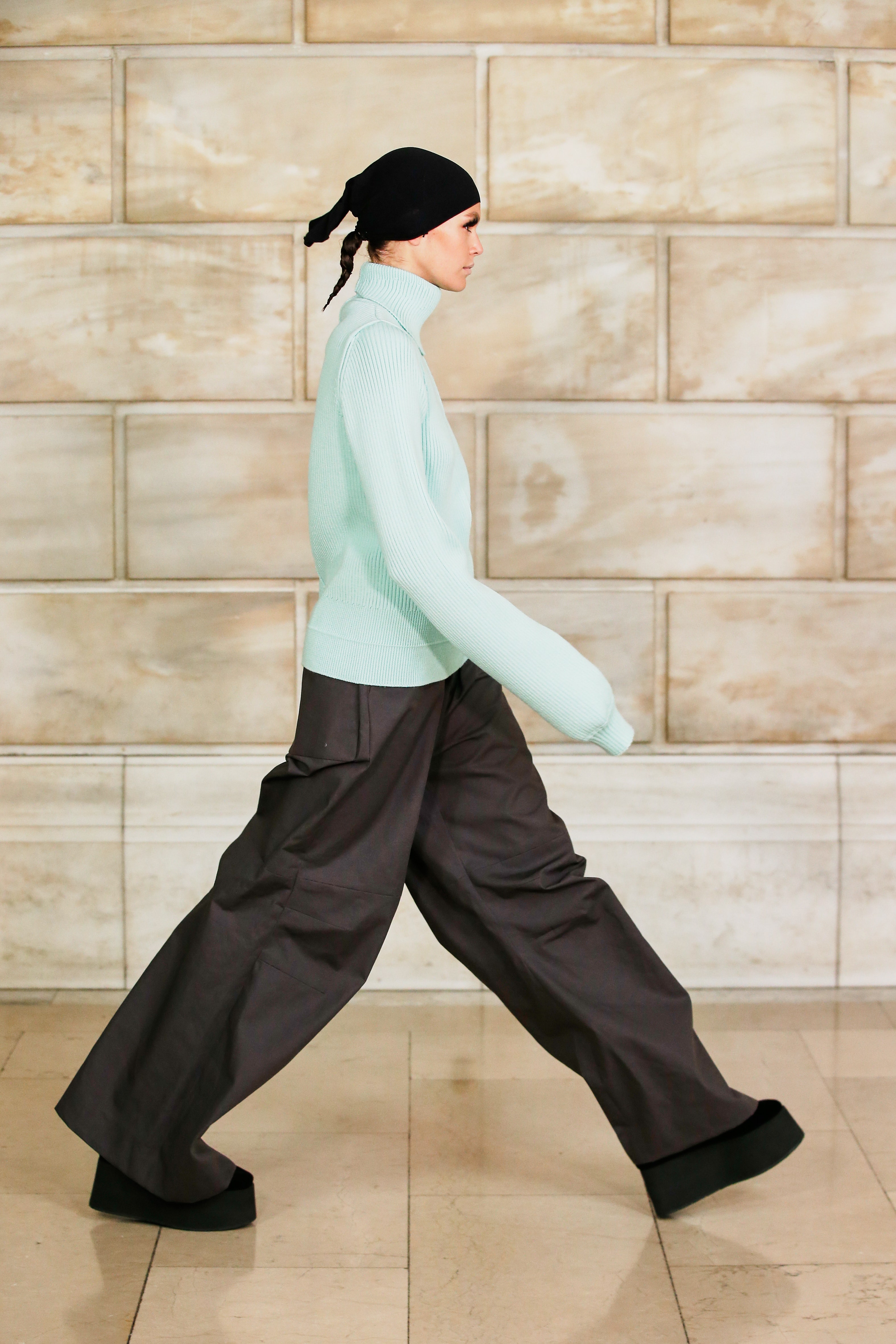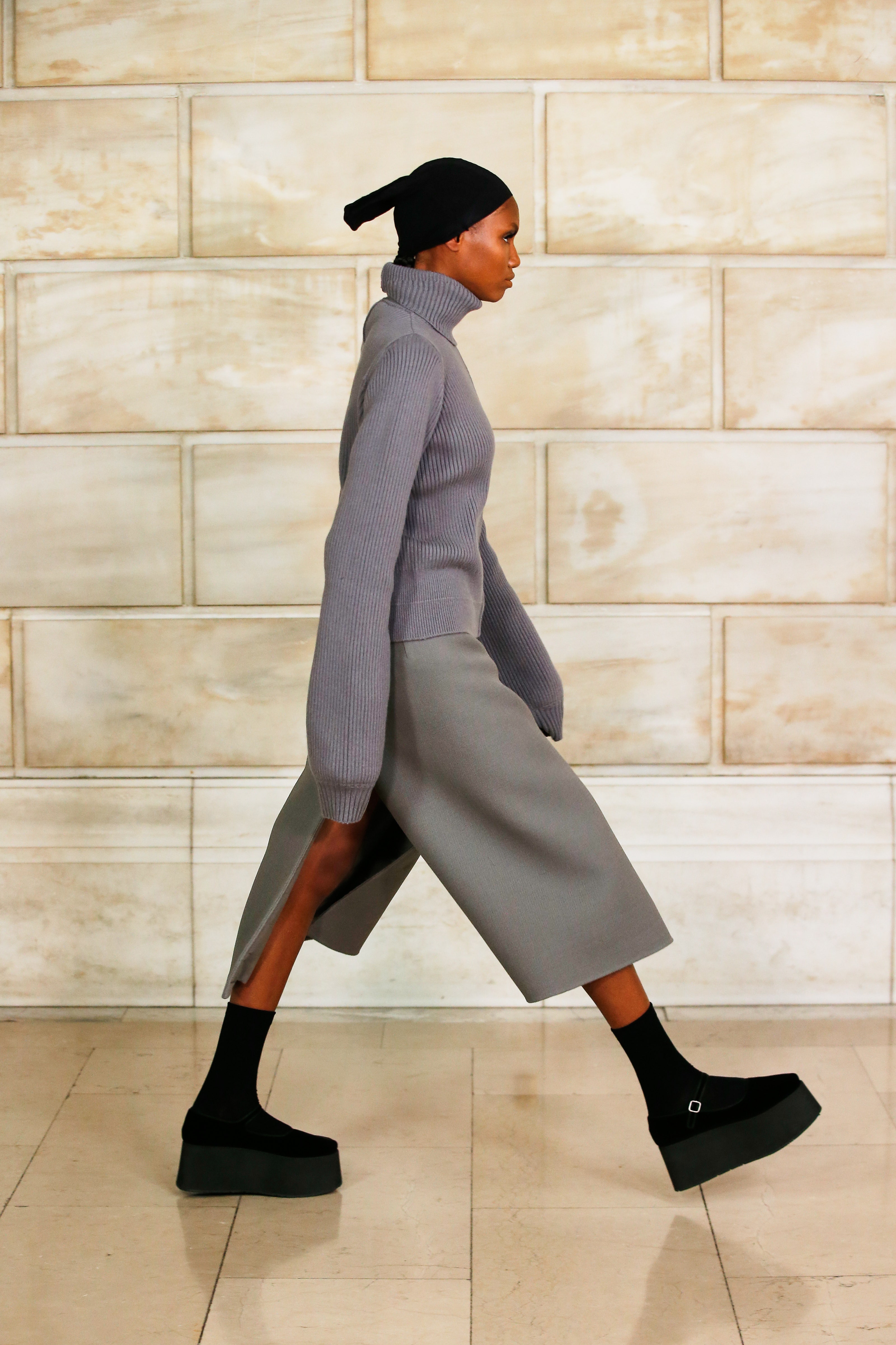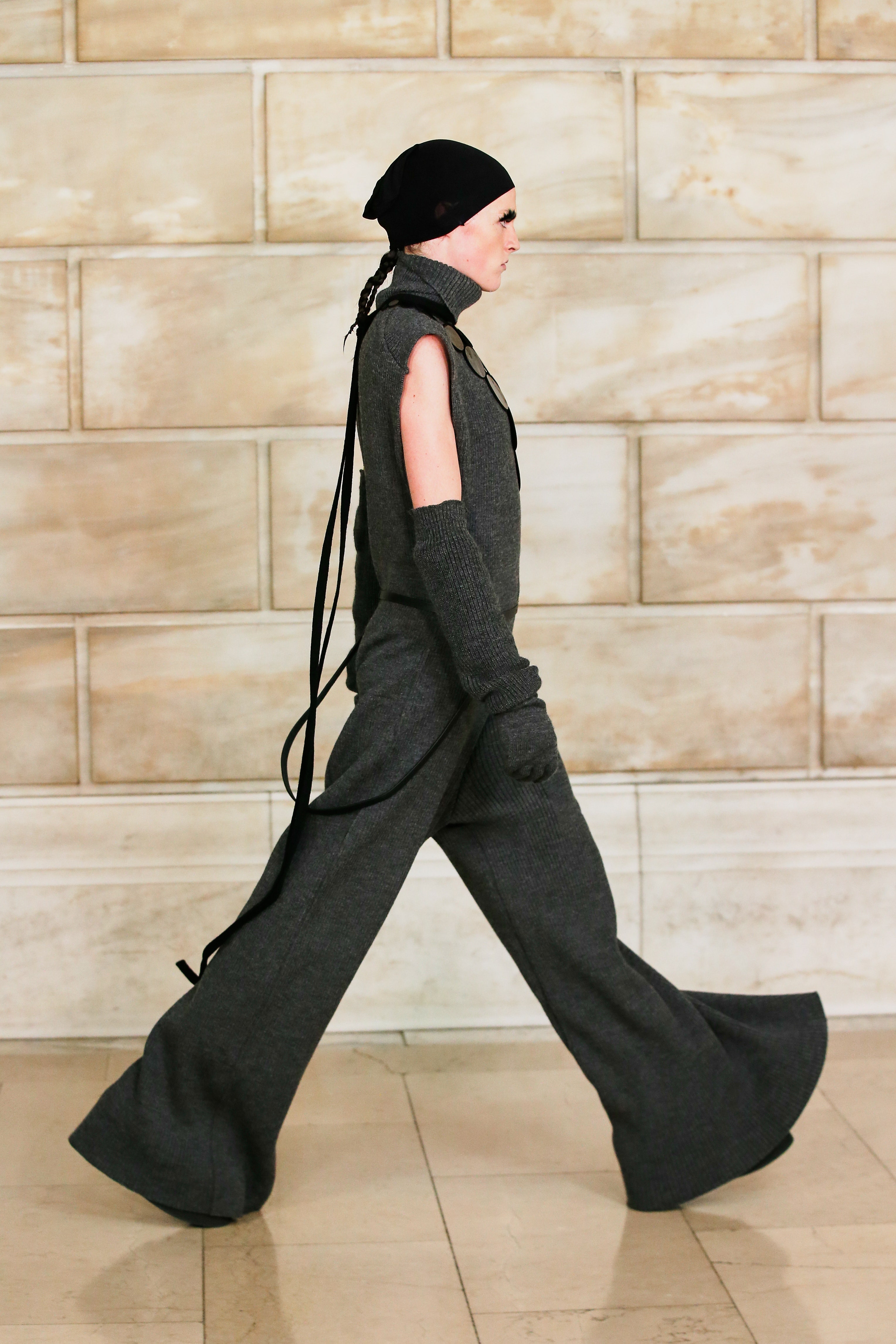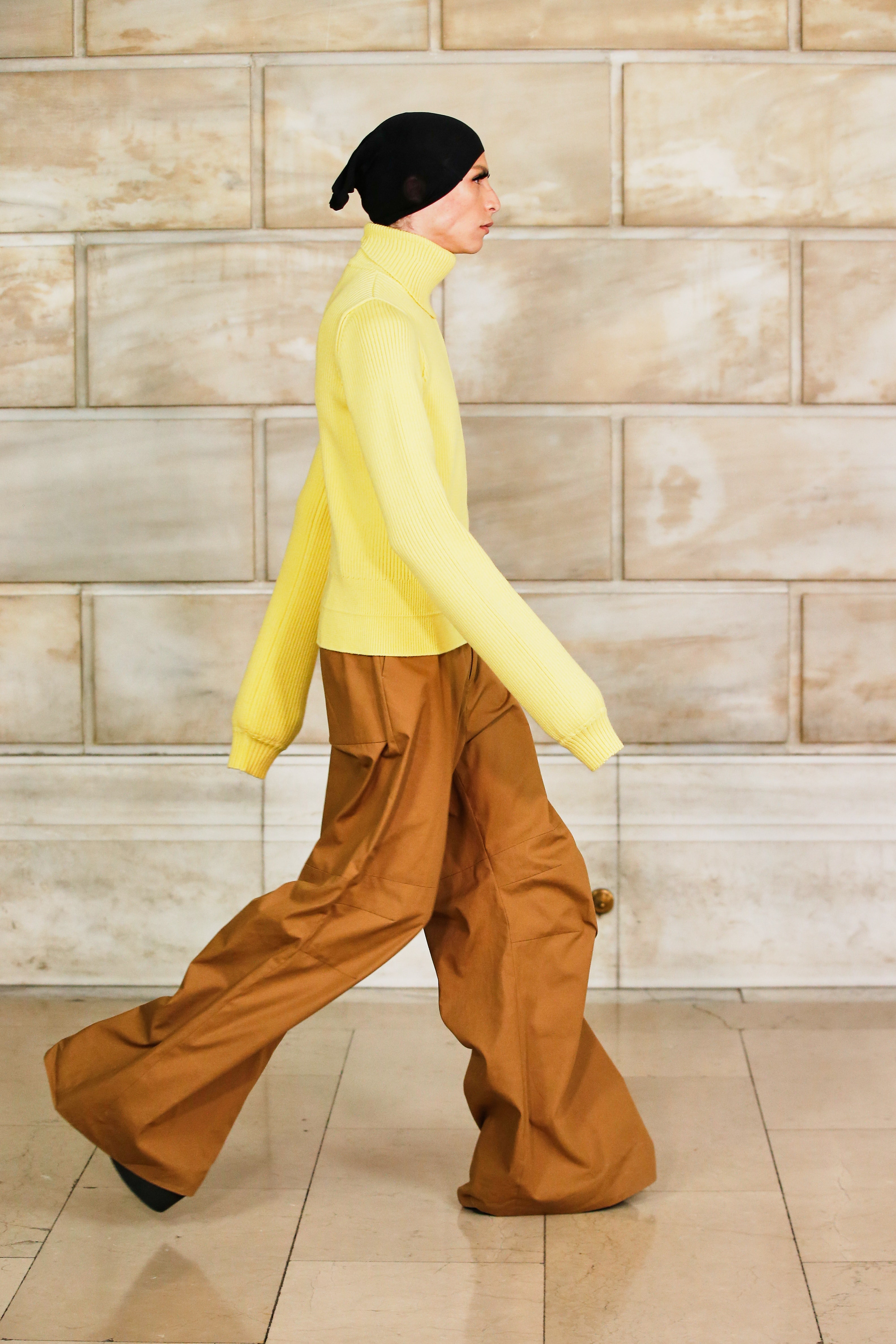 Марк Джейкобс не проводил шоу с февраля 2020 года и наконец порадовал поклонников долгожданным показом, который прошел офлайн. Его главной идеей стала мода нового времени, которая объединяет в себе комфорт, почти сведенный к домашнему, с футуризмом и при этом апеллирует к гламурным и экстравагантным силуэтам прошлого. Пуховики-снуды, пальто-коконы, облегающие тело трикотажные платья с цельнокроеными балаклавами и крупные пластиковые очки напоминают творения Андре Куррежа. Неокосмическая эстетика пронизывает всю коллекцию — от платьев в гипертрофированных блестящих пайетках до архитектурных панам и ботфортов-луноходов на высоких платформах. Слои трубчатого трикотажа в подиумных образах сплетались со стегаными шарфами и палантинами из искусственного меха, будто закрывая тела моделей от космического ветра. Некоторые образы, кажется, созданы для вечеринки на борту звездолета: сложносочиненные наряды с вырезами по бокам, перчатки выше локтя и струящиеся вечерние наряды из формованного материала с атласными накидками-шлейфами.