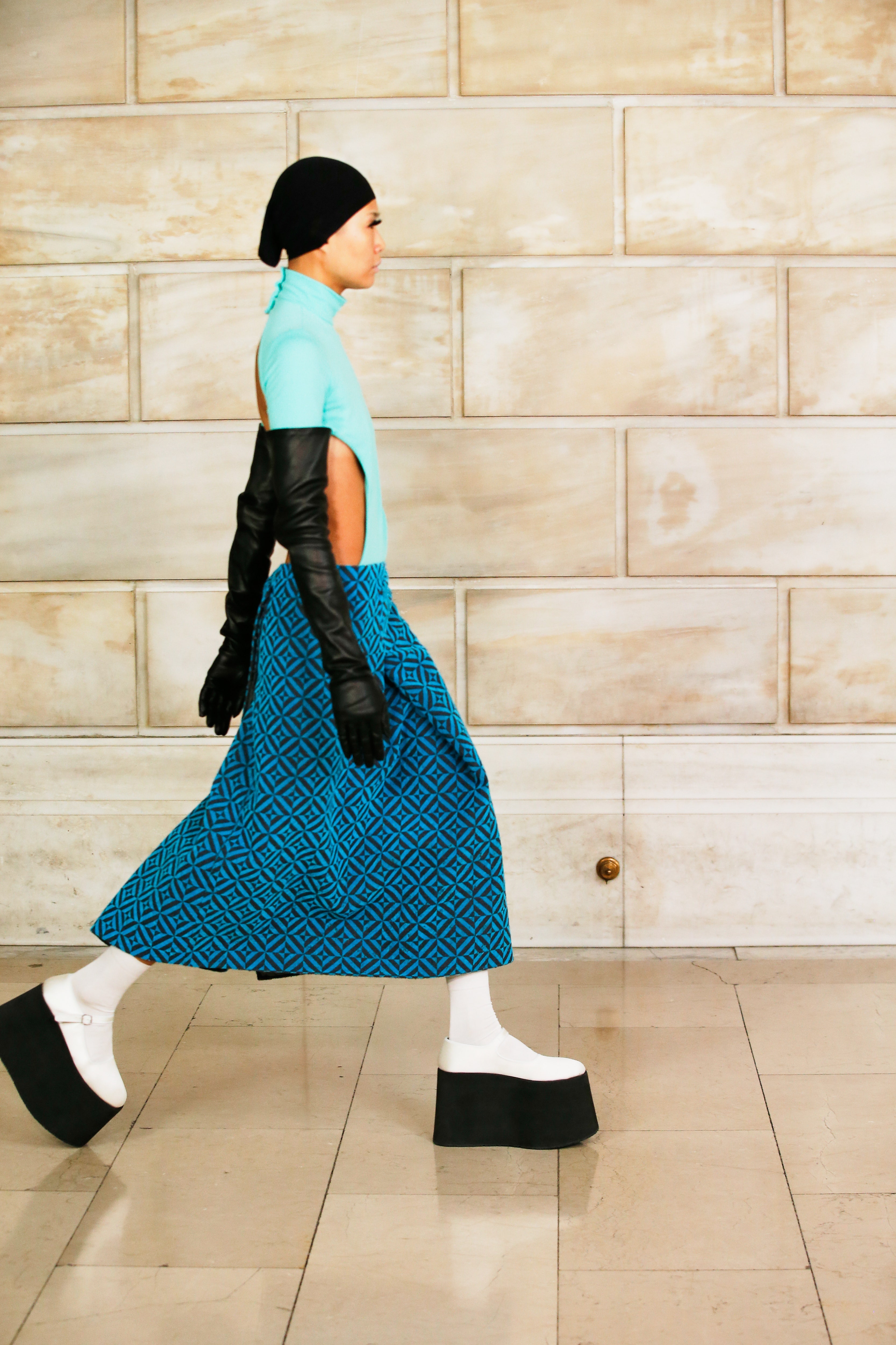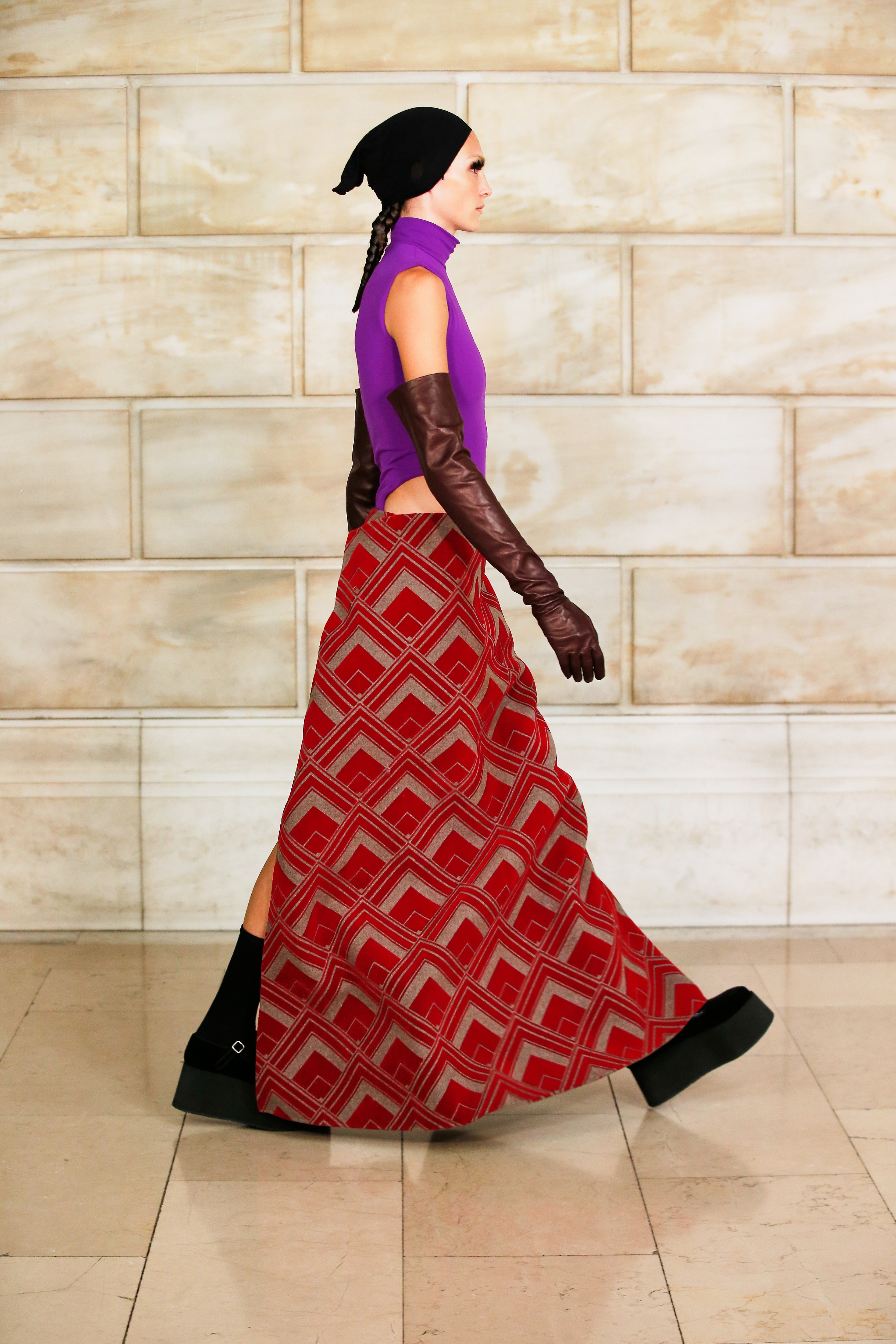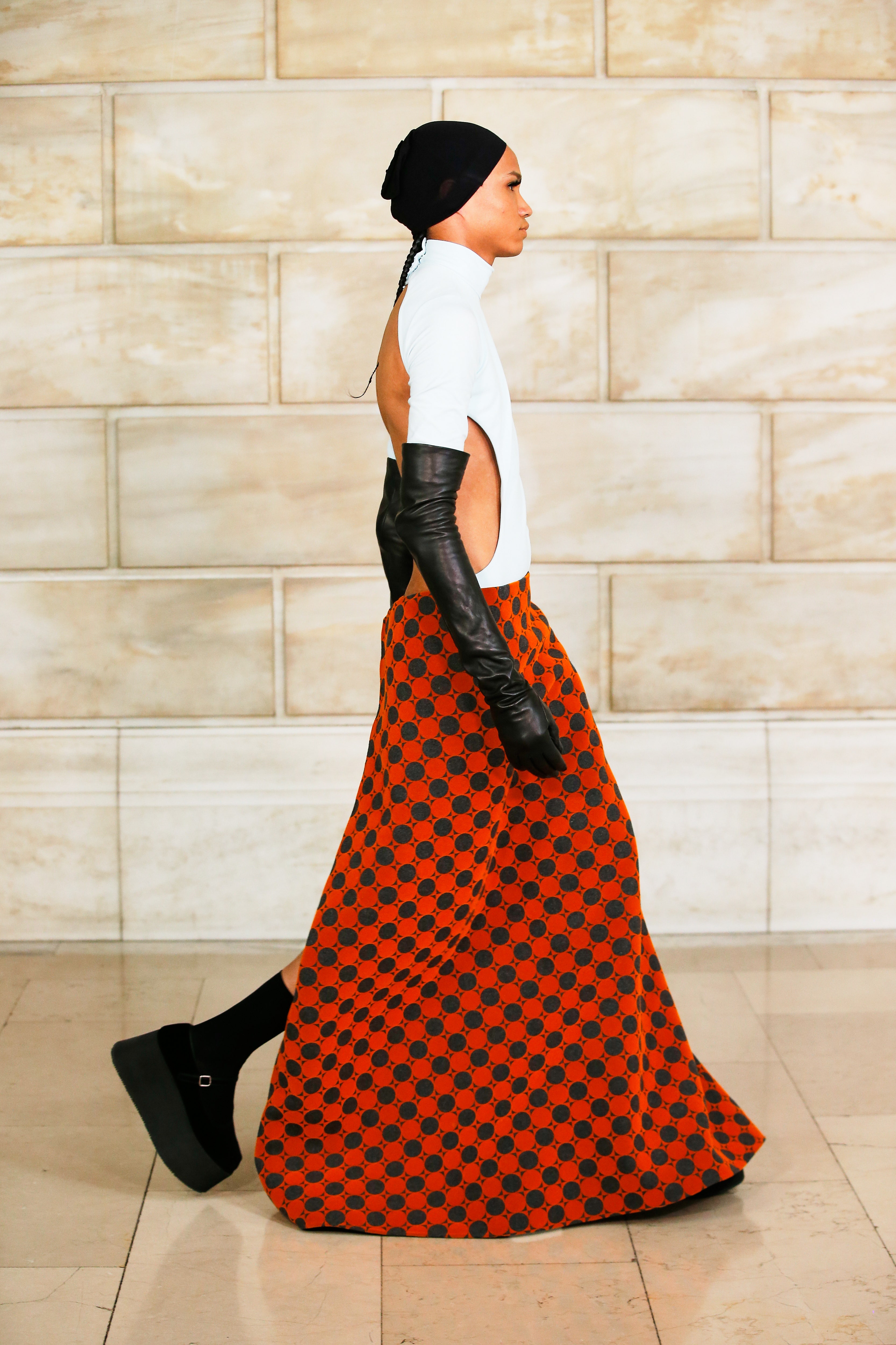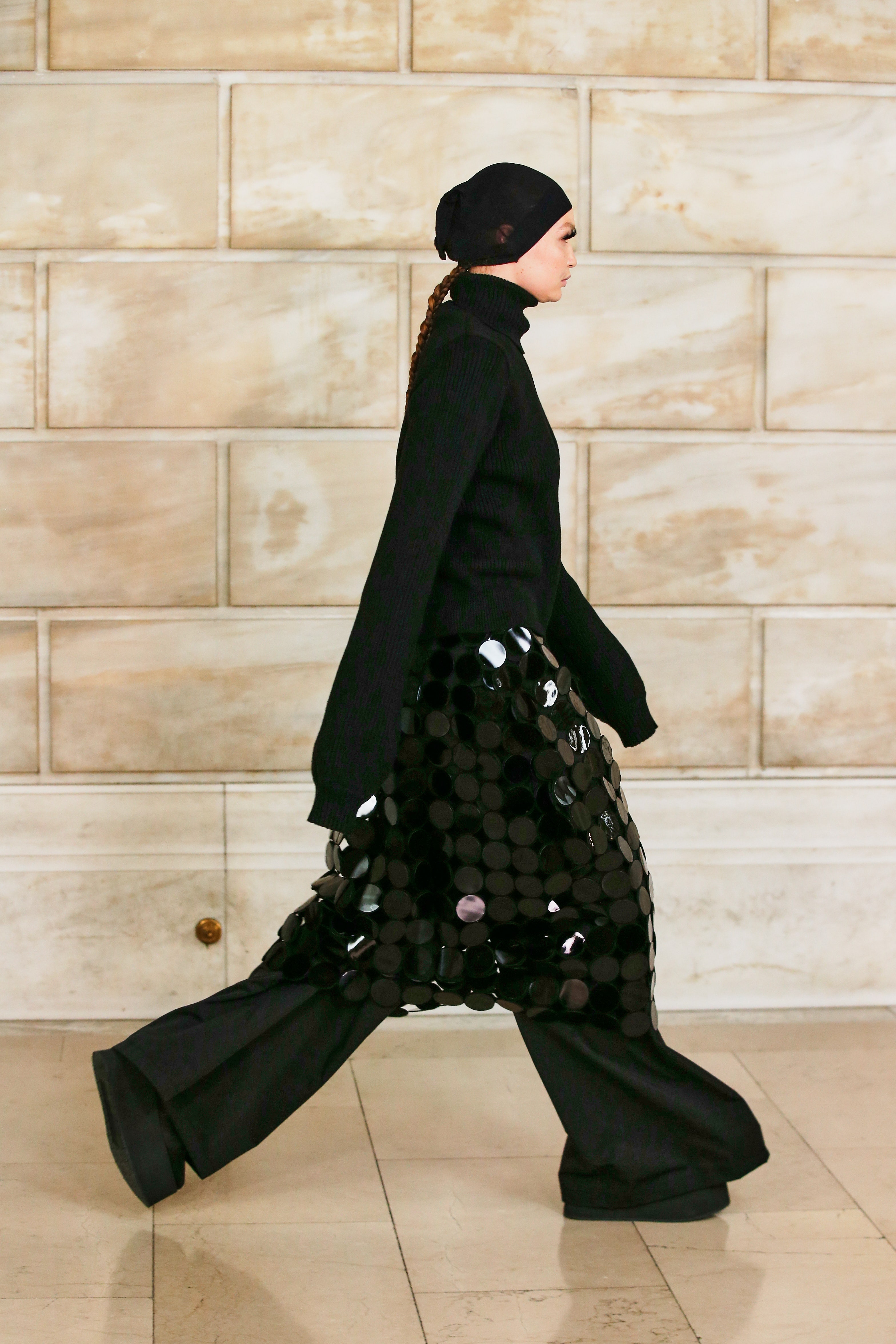 Марк Джейкобс не проводил шоу с февраля 2020 года и наконец порадовал поклонников долгожданным показом, который прошел офлайн. Его главной идеей стала мода нового времени, которая объединяет в себе комфорт, почти сведенный к домашнему, с футуризмом и при этом апеллирует к гламурным и экстравагантным силуэтам прошлого. Пуховики-снуды, пальто-коконы, облегающие тело трикотажные платья с цельнокроеными балаклавами и крупные пластиковые очки напоминают творения Андре Куррежа. Неокосмическая эстетика пронизывает всю коллекцию — от платьев в гипертрофированных блестящих пайетках до архитектурных панам и ботфортов-луноходов на высоких платформах. Слои трубчатого трикотажа в подиумных образах сплетались со стегаными шарфами и палантинами из искусственного меха, будто закрывая тела моделей от космического ветра. Некоторые образы, кажется, созданы для вечеринки на борту звездолета: сложносочиненные наряды с вырезами по бокам, перчатки выше локтя и струящиеся вечерние наряды из формованного материала с атласными накидками-шлейфами.