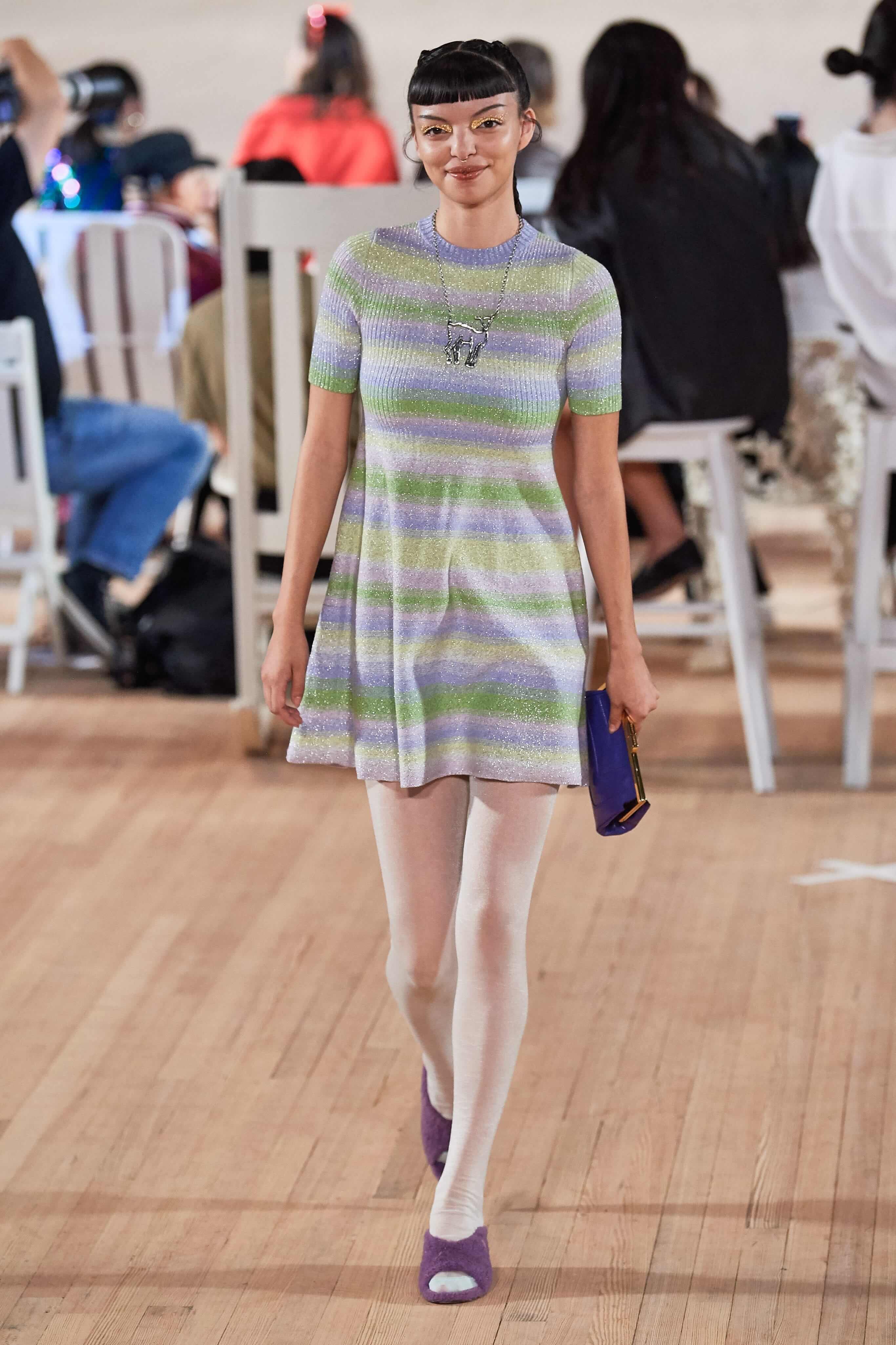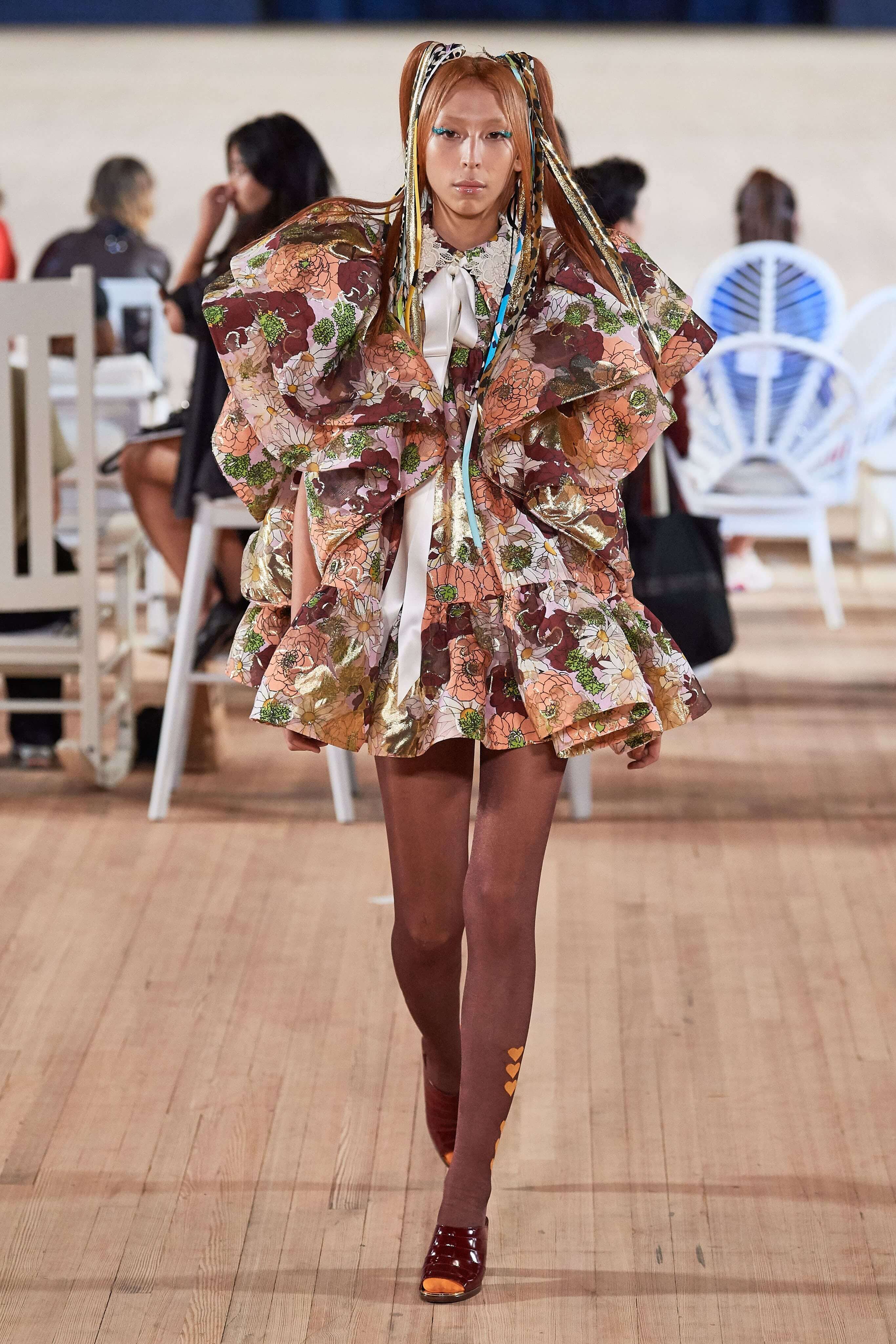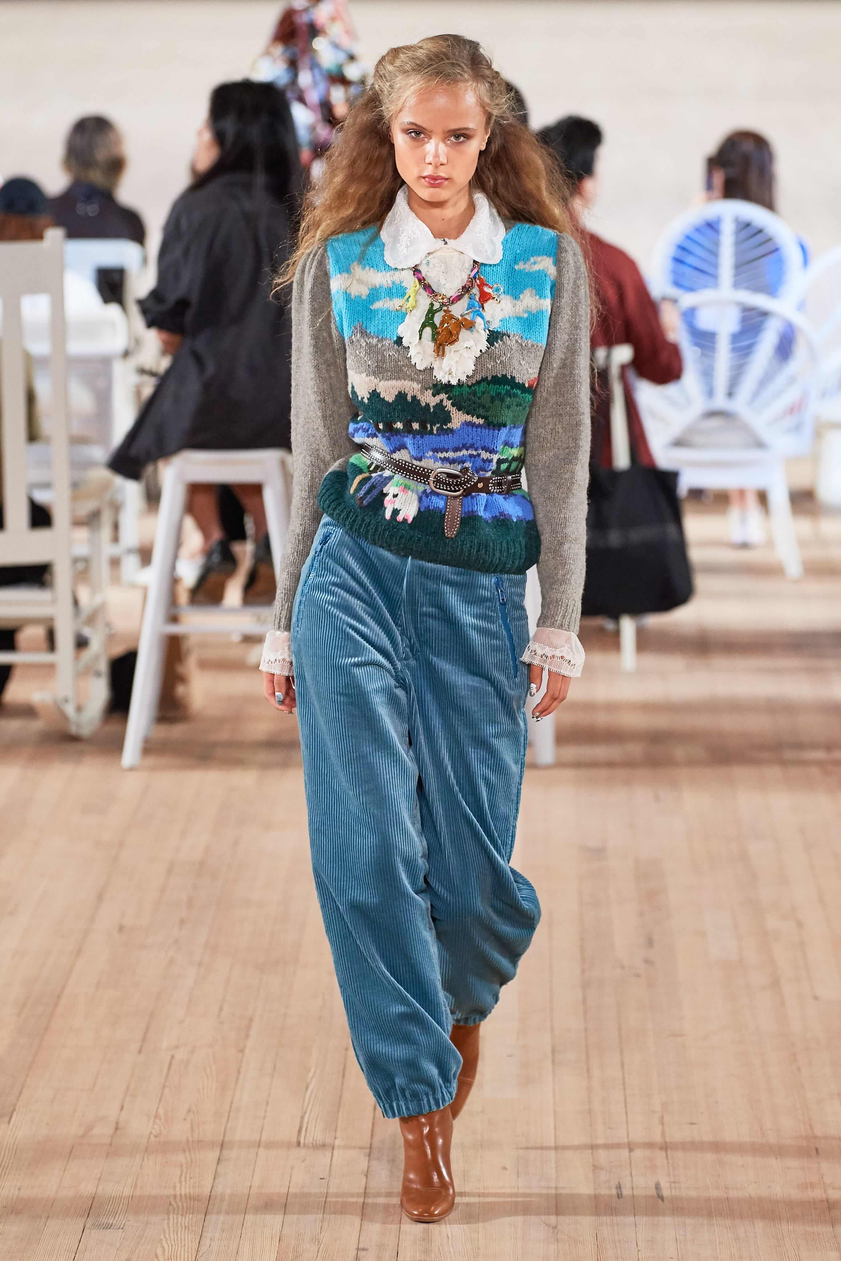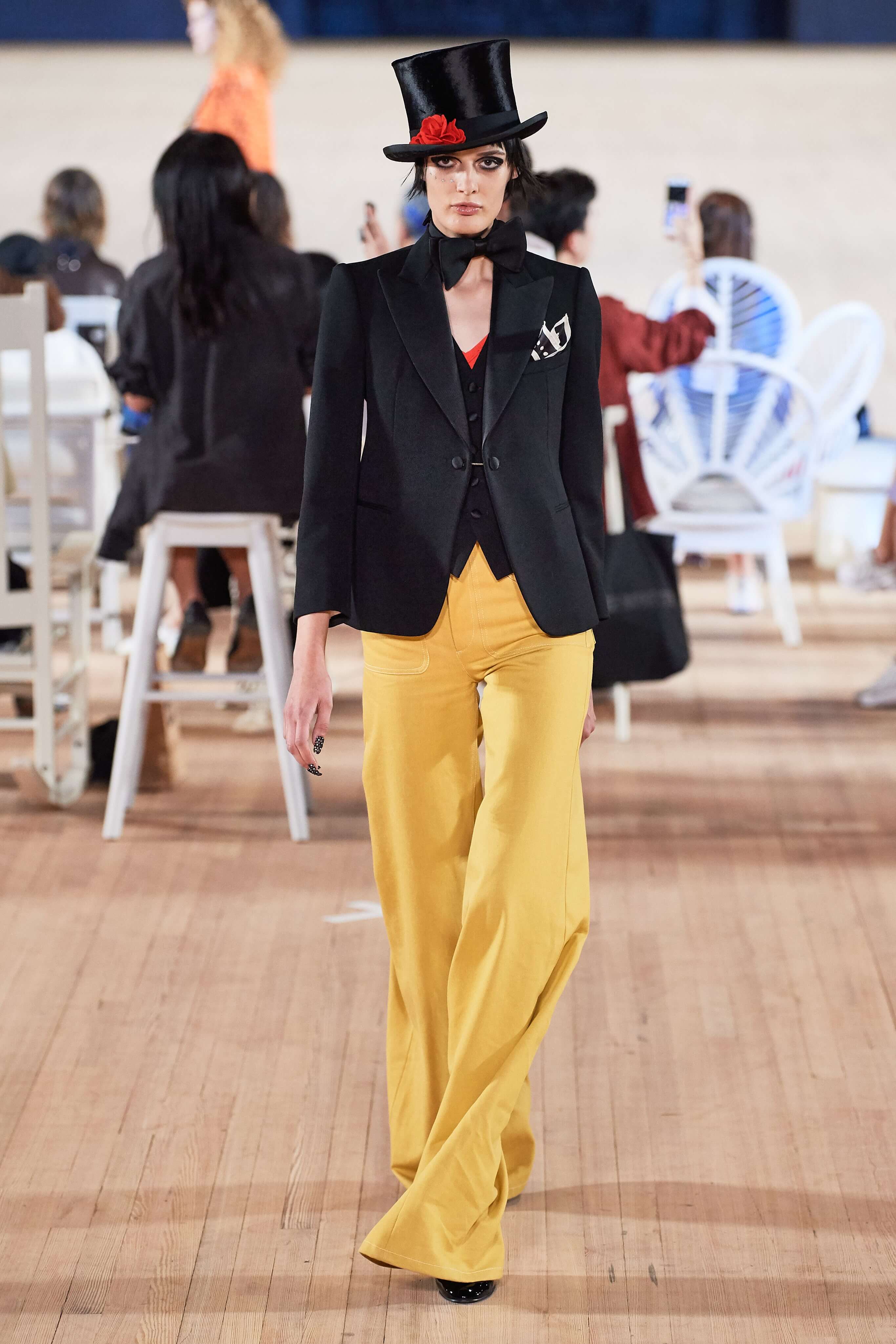 Шляпки самых разных форм и фактур, созданные прославленным шляпником Лондона Стивеном Джонсом, и эксцентричные "кукольные" платья дополнял макияж с нарисованными нижними ресницами в духе 60-х, тинейджерские футболки модели носили с гламурными блестящими брюками, а твидовые костюмы с цветными колготами. Промелькнул в хороводе ярких персонажей и образ Лайзы Миннелли с угольно-черными глазами, челкой и в цилиндре, а главным силуэтом коллекции стал фиксированный на плечах при помощи идеально скроенных жакетов костюм и свободный от бедра за счёт струящихся брюк.