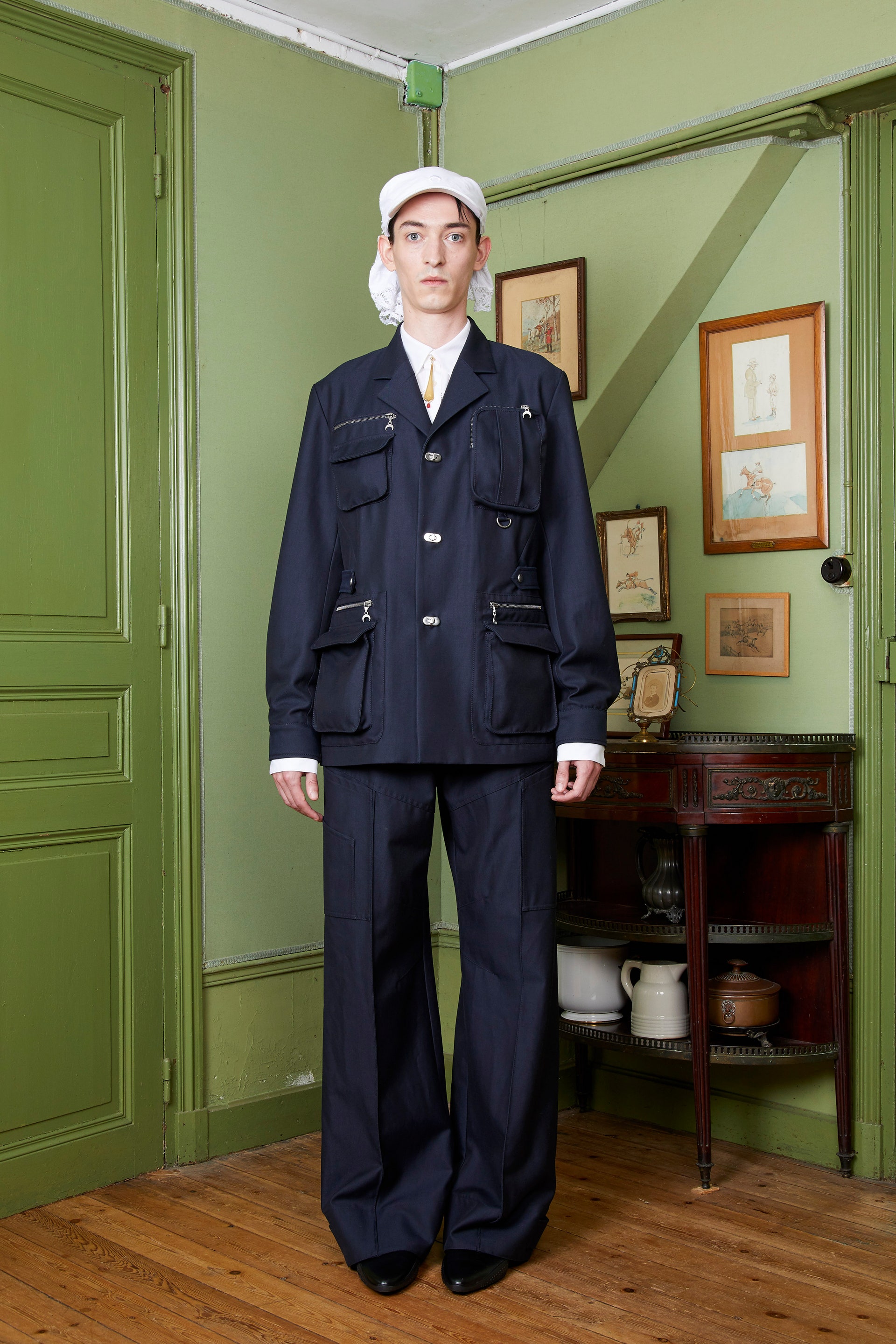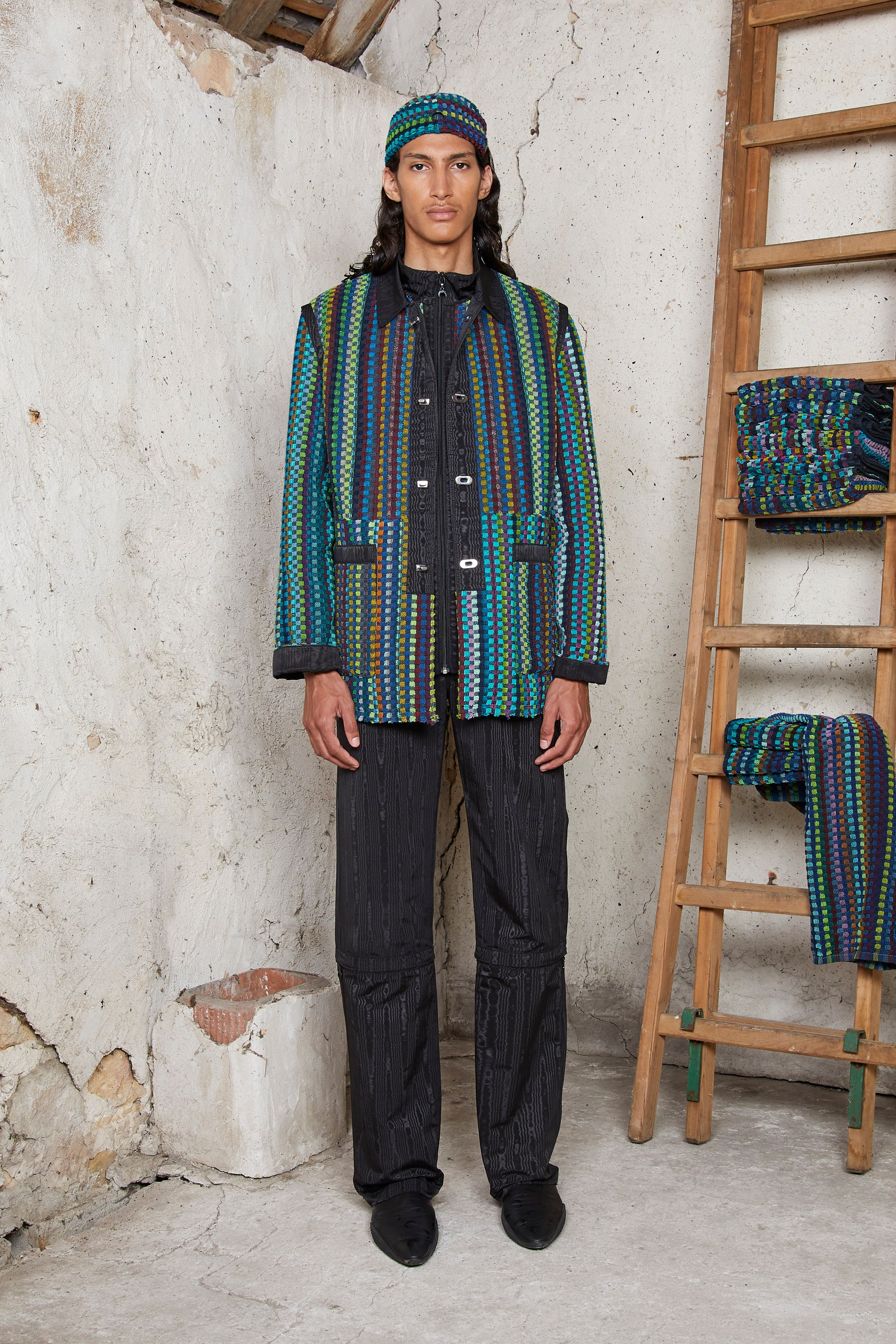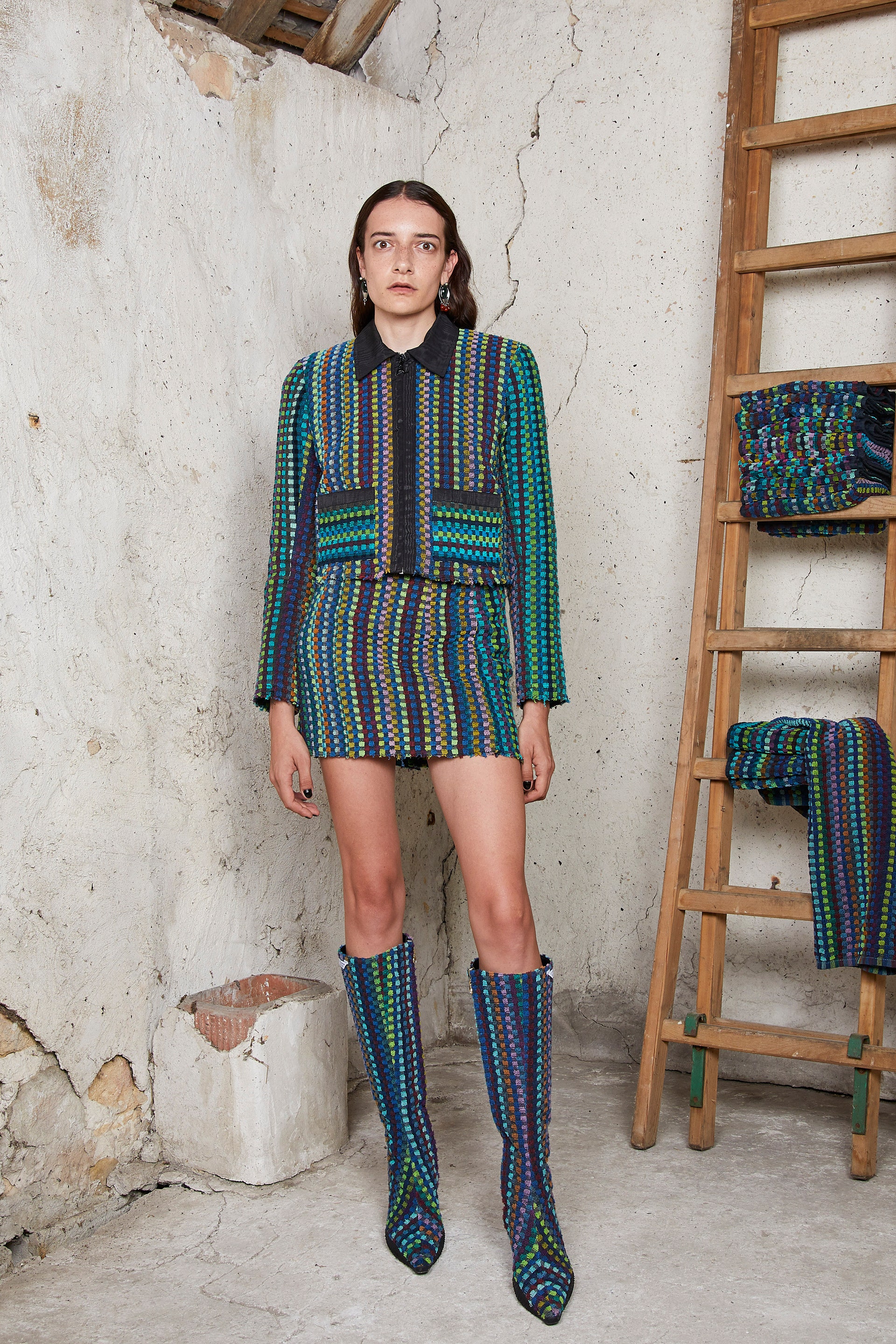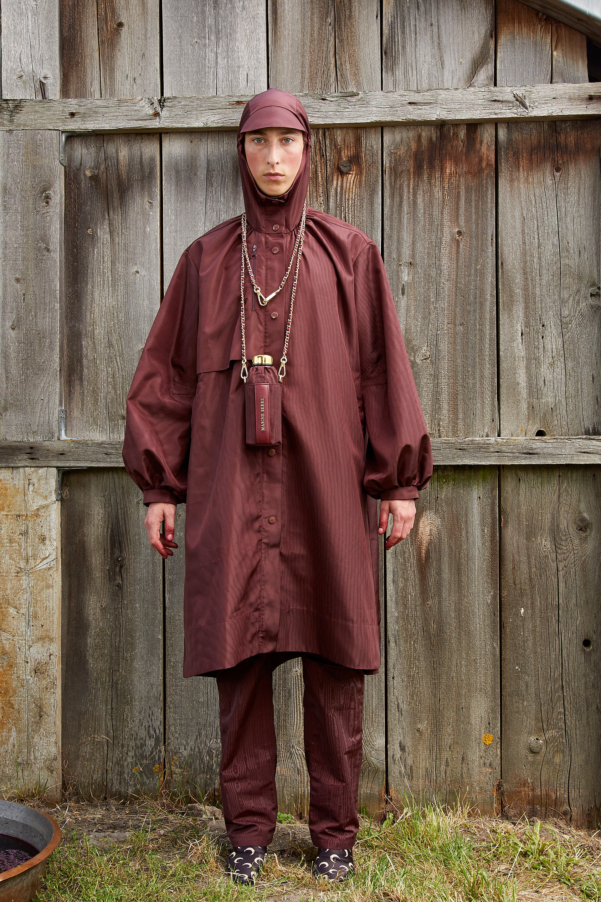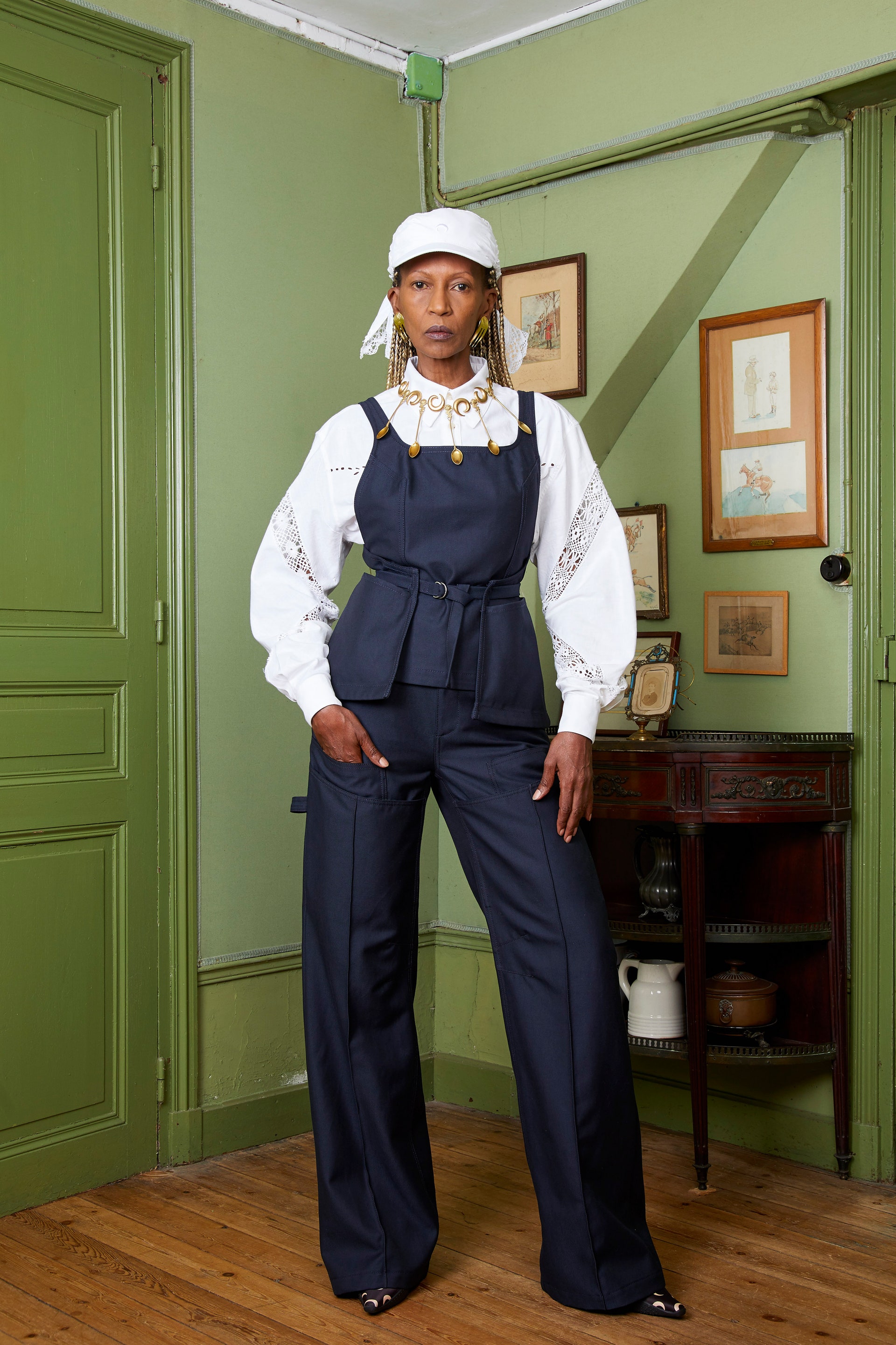 История, которую рассказывает Марин Серр, — это история о сообществе людей, чья жизнь протекает в старинных деревенских домах, наполненных ностальгией и признаками упадка индустриальной эпохи. Отсюда топы и платья в стиле "попкорн", пестрые и будто сшитые из разных лоскутков, связанные крючком пальто и сапоги, рубашки из белого льна и хлопка с вышивкой, списанной с винтажных скатертей и столовых дорожек. Манжеты и воротники будто скручены из салфеток, а мужские юбки, надетые поверх классических брюк, кажутся уютными фартуками. Из весеннего лукбука вот-вот запахнет домашним яблочным пирогом. Одежда дополнена удобными сумками-баулами и футуристичными саквояжами из гобелена.