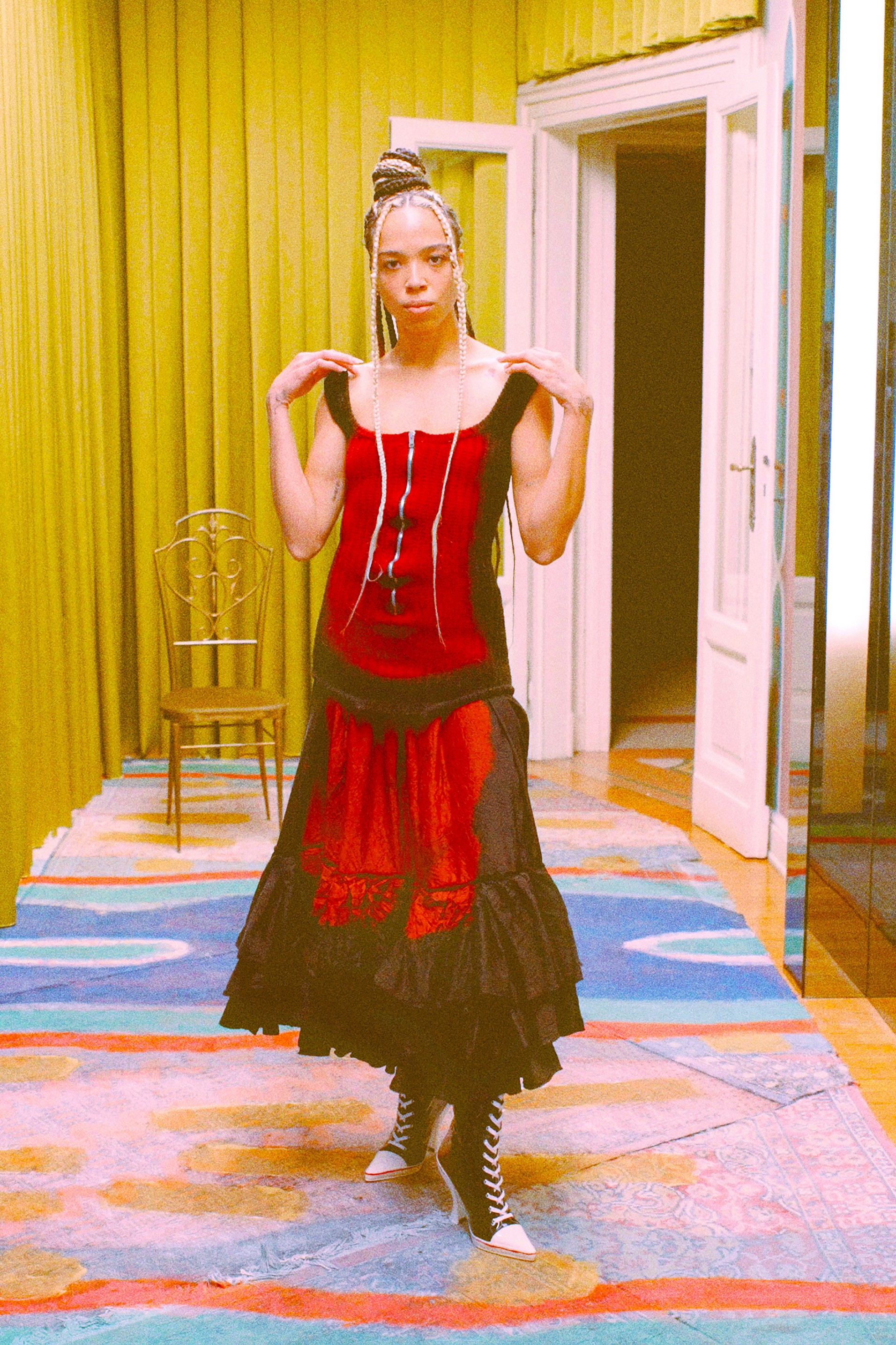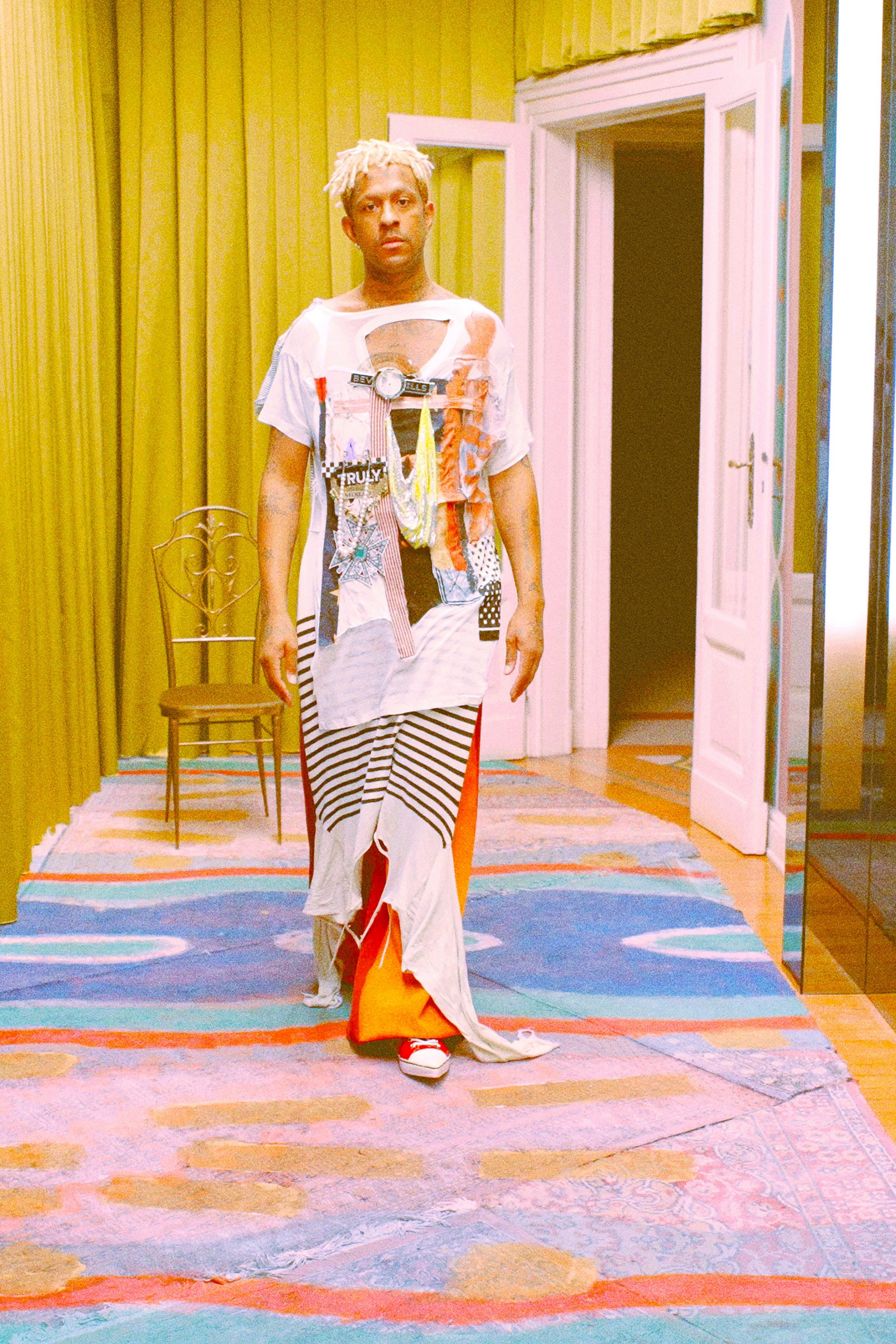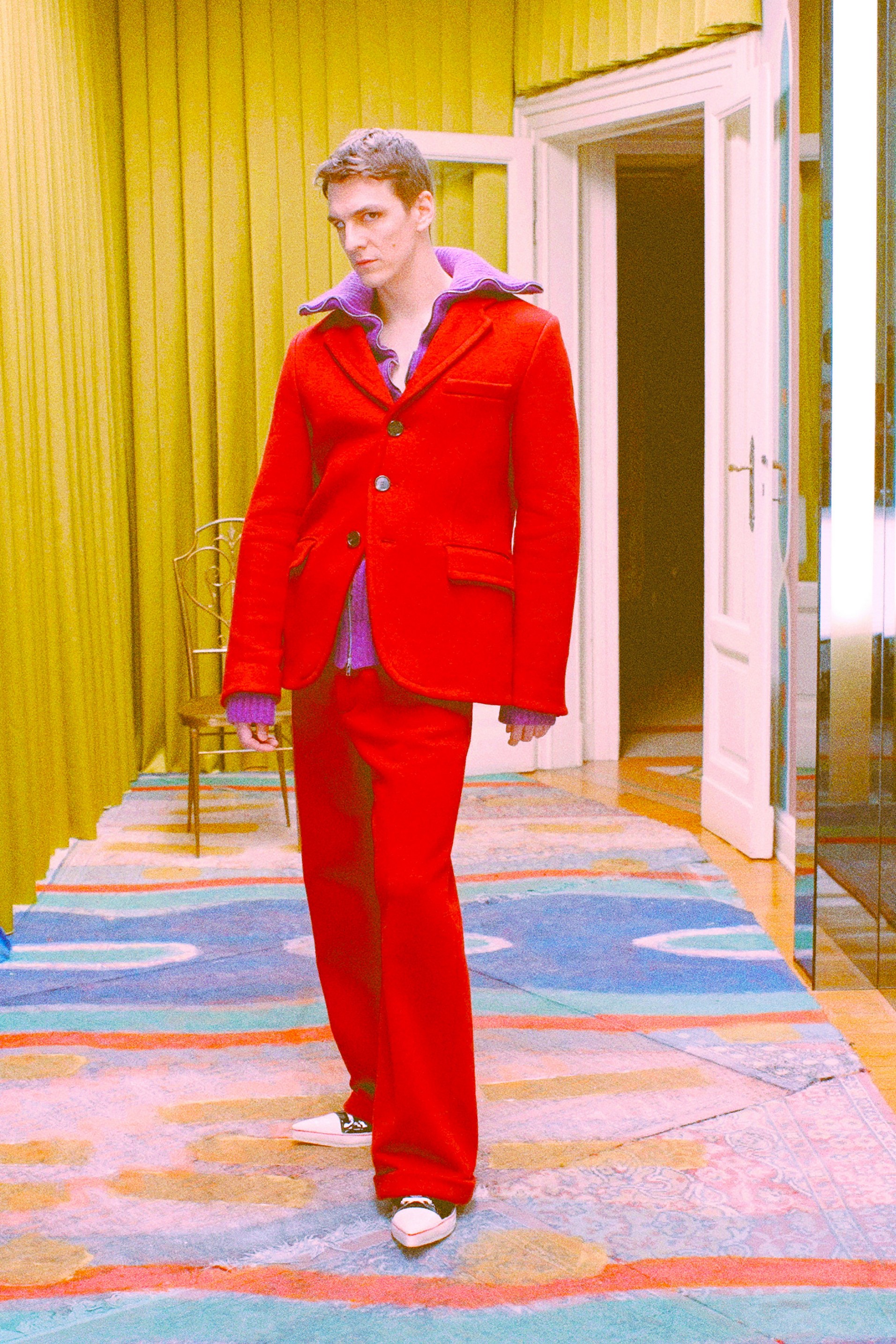 Для весенней коллекции, созданной на карантине, Франческо Риссо раскрашивал ткани в ванной, сам кроил и шил вещи дома и рассылал их друзьям по всему миру — так получился лукбук, в котором разные люди позируют на улицах городов, в которых живут. Коллекцию будущей осени дизайнер также создавал в карантинных условиях и на этот раз диджитал-представлению или виртуальному показу снова предпочёл максимально приближённый к реальности способ её презентации. Риссо устроил камерную домашнюю вечеринку, на которой гости наряжались, танцевали, дурачились и даже варили суп из остроносых кроссовок, вошедших в новую коллекцию.