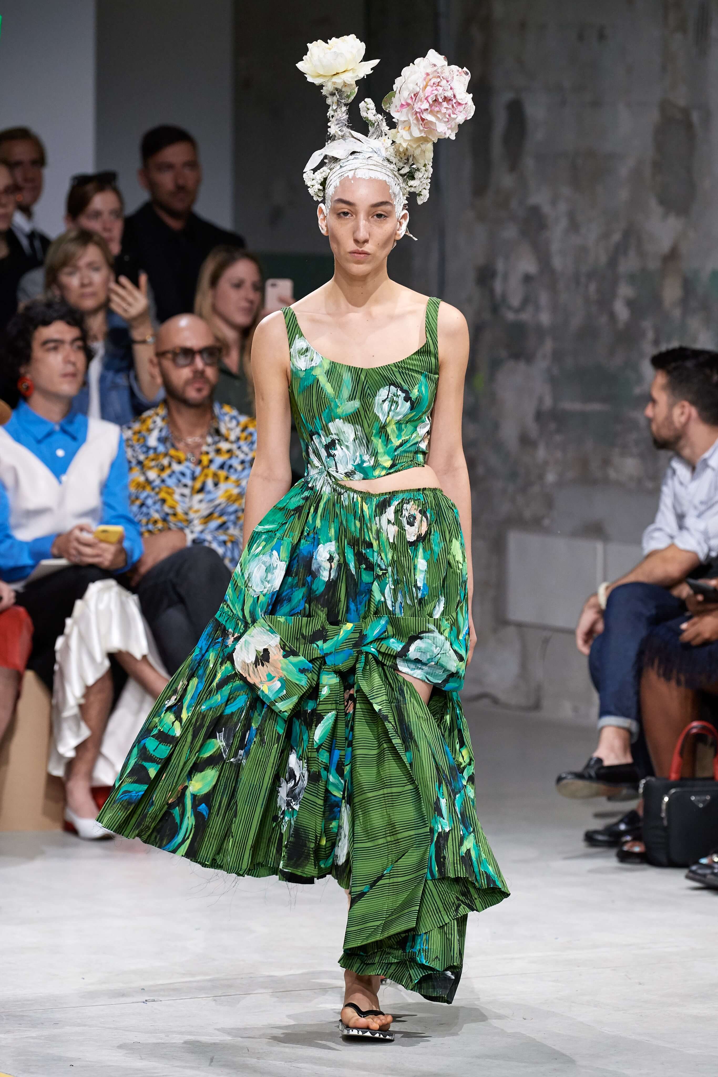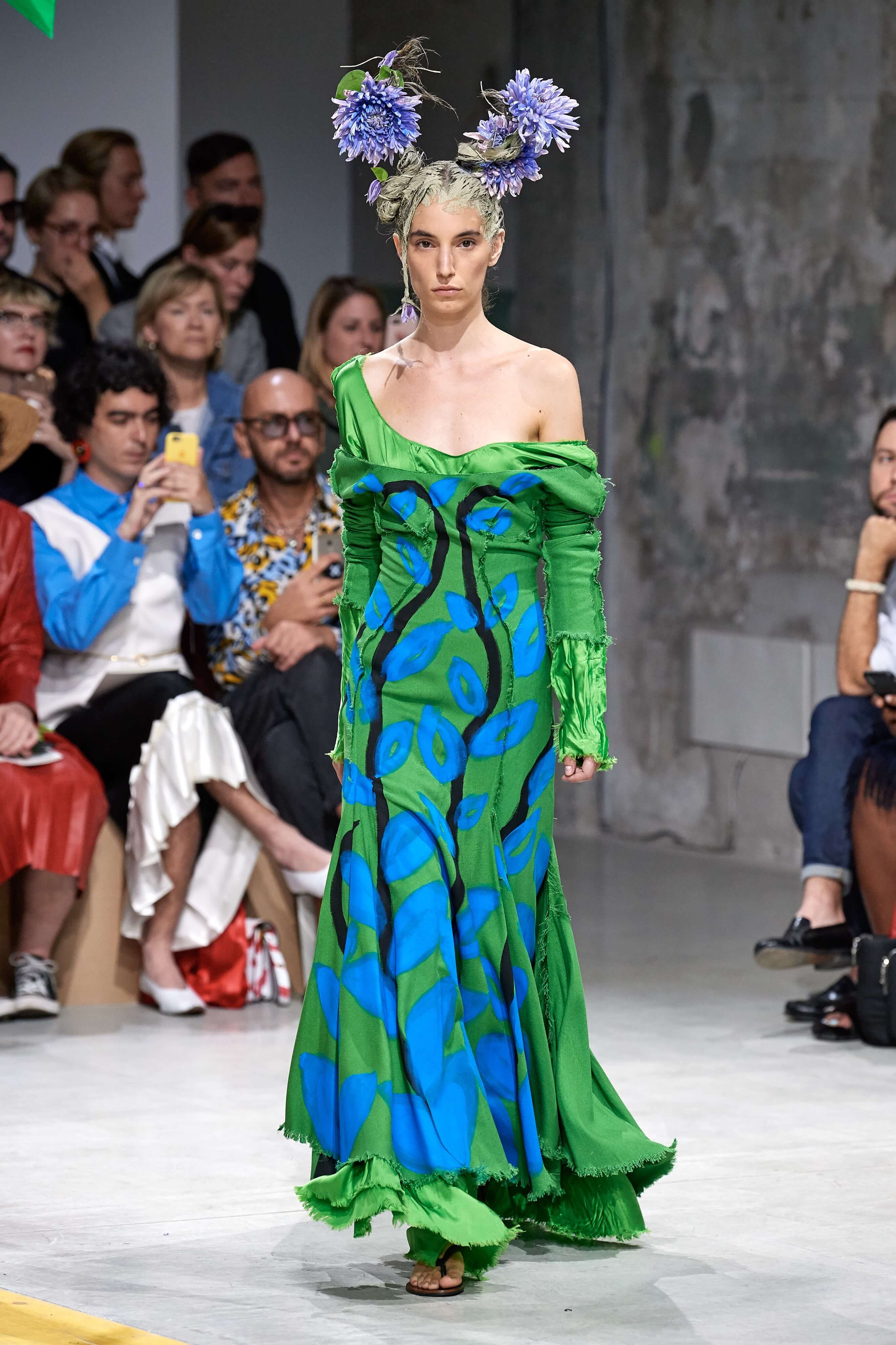 Креативный директор дома Франческо Риззо представил коллекцию, выполненную по всем правилам устойчивого производства. Главными материалами стали органический хлопок, регенерированная кожа и различные виды переработанного текстиля. Оммаж природе - так обозначил свой эстетический манифест дизайнер. Плащи прямых силуэтов, зауженные платья, как у модниц эдвардианской эпохи 1900-х, и присобранные на плечах топы покрывали принты из причудливых тропических цветов - выраженная идея о многообразной флоре джунглей, которой однажды может и не стать. Определенный психофизиологический эффект от просмотра коллекции - волнующие, немного тревожные и освежающие, будоражащие фантазию ощущения - то, чего добивался Риззо. Для дизайнера было важно, чтобы через прожитое чувственно-эмоциональное потрясение гости показа и те, кто увидит коллекцию после, могли осознать важность окружающего мира - природы и проблем экологии, которые могут лишить человечество той роскоши, которой мы пока еще можем вдохновляться при создании предметов одежды или искусства. Сам Франческо Риззо вышел на подиум босым и напоминал главного героя фильма Уэса Андерсона "Поезд на Дарджилинг".