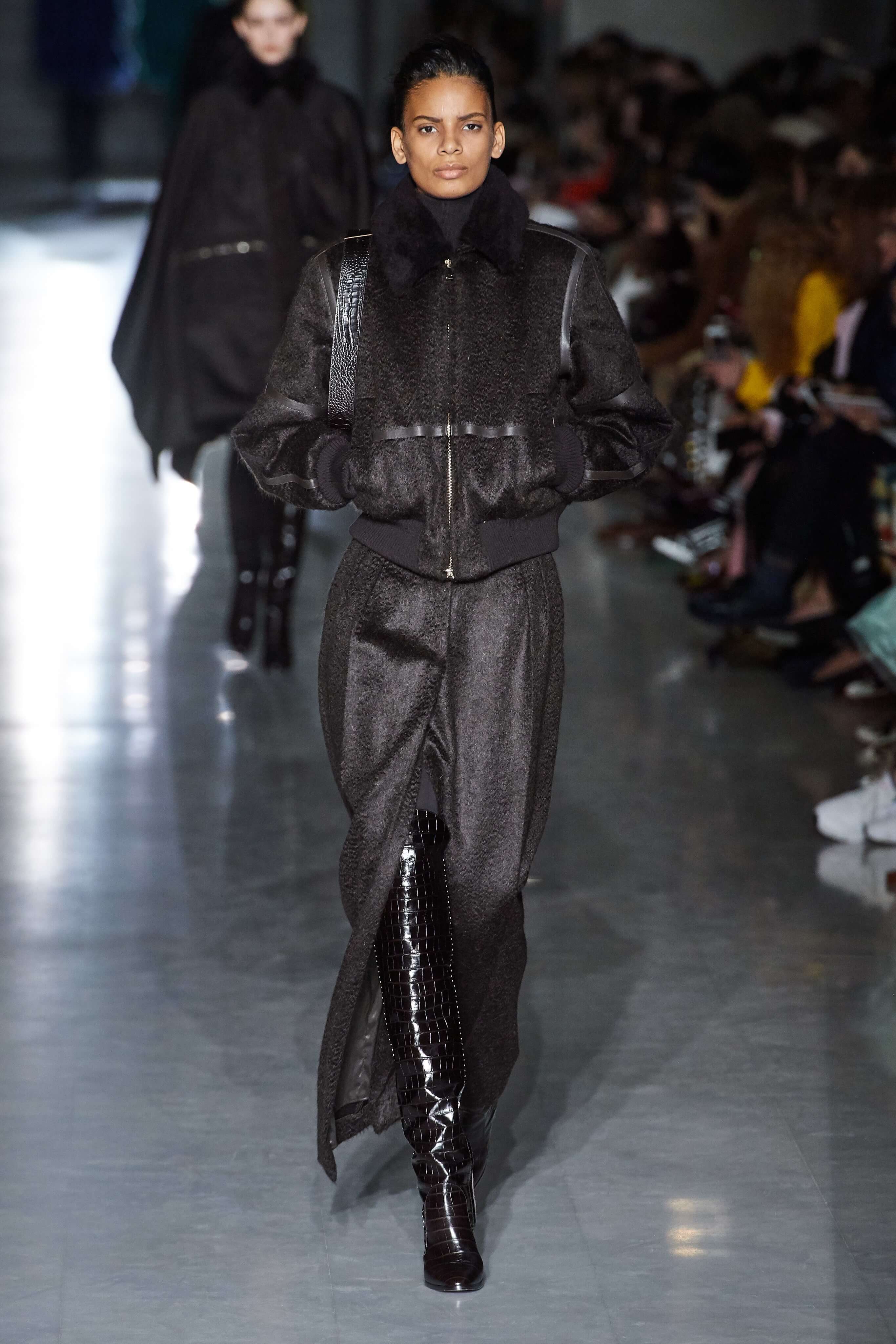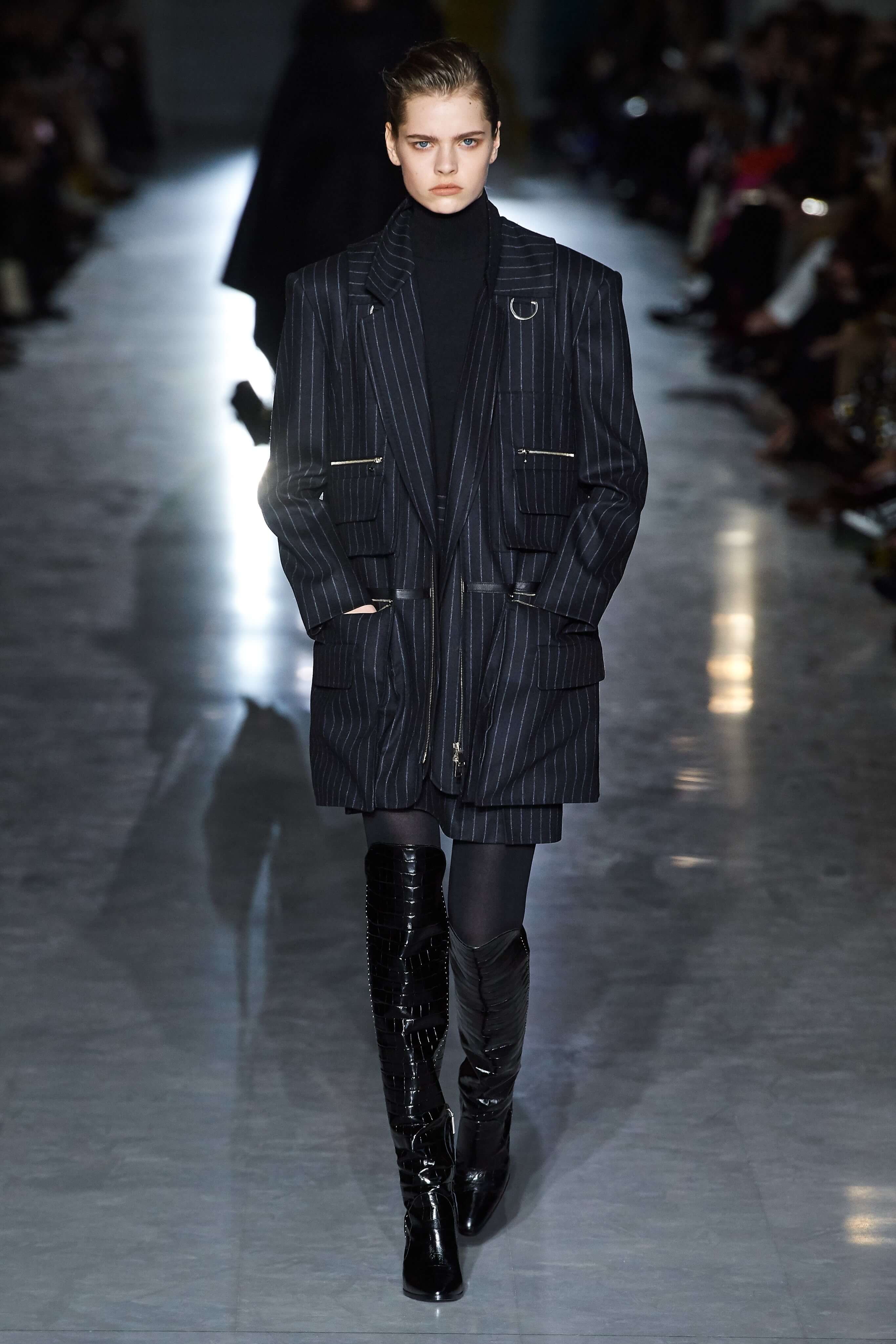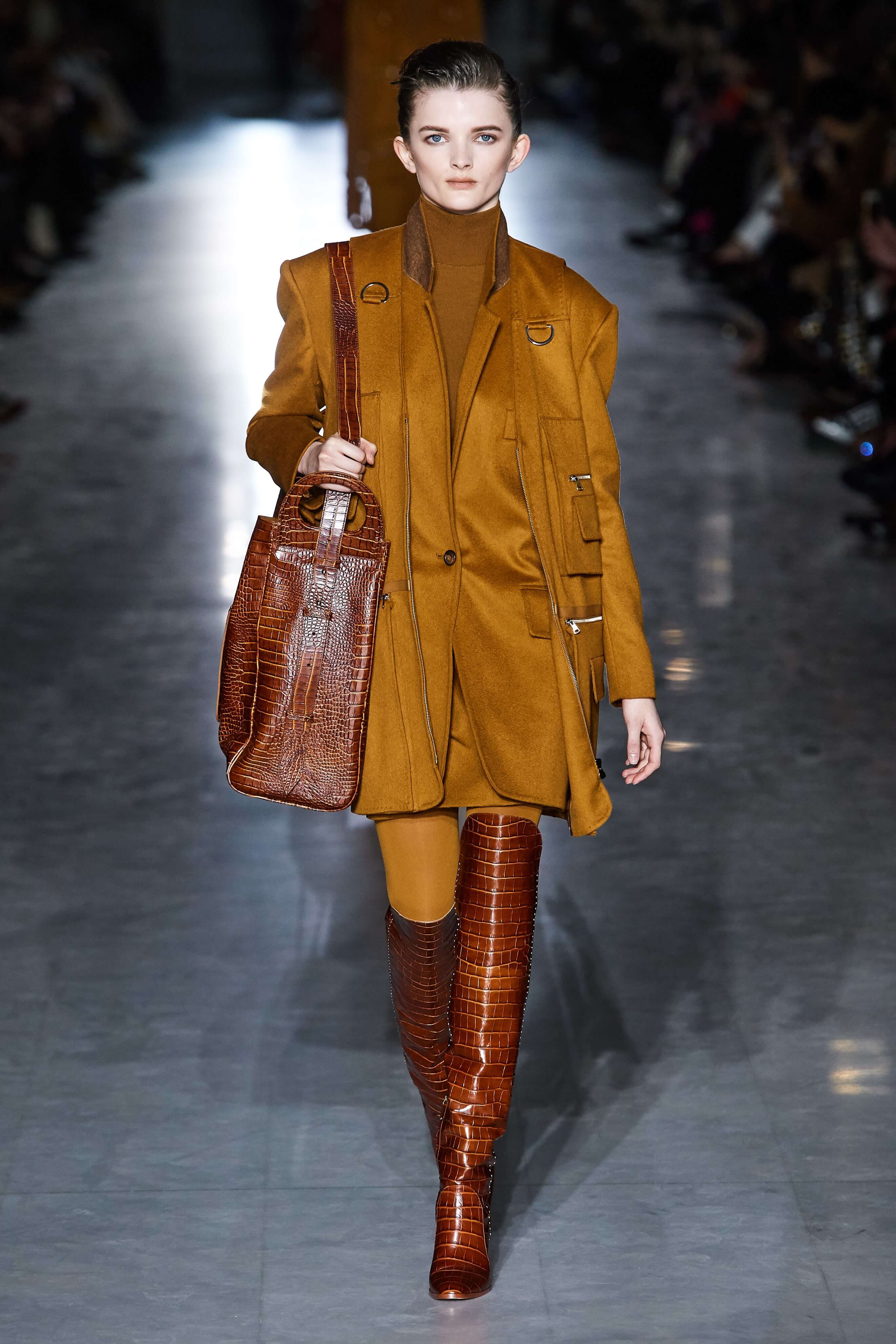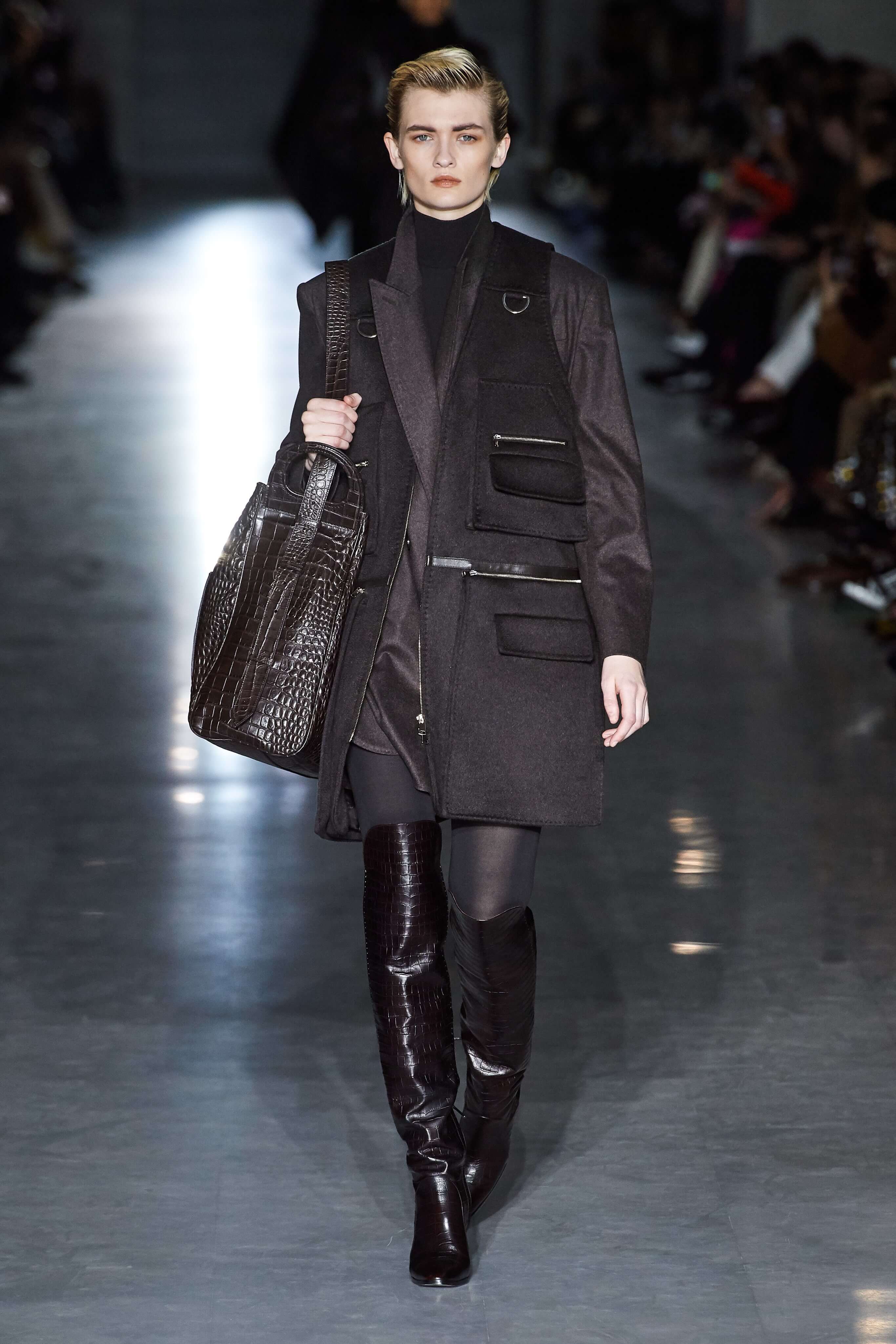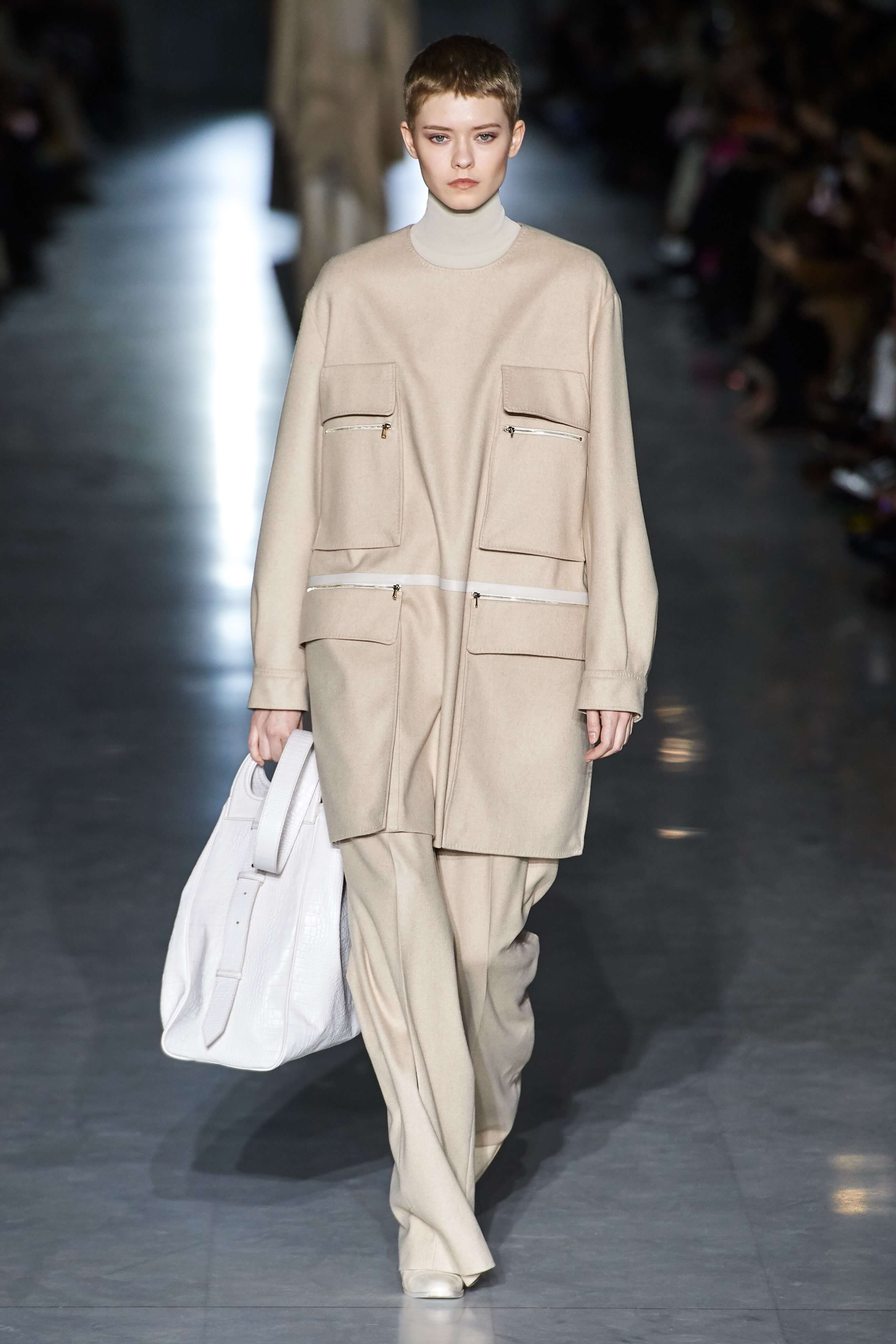 Гриффитс посвятил коллекцию мощной внутренней силе, женской смелости и... гламуру. Именно союз этих явлений, по мнению креативного директора марки, олицетворяет современную женщину. В подтверждение своих идей дизайнер создал образы, выстроенные на монохромности: в каждом пальто, платье, юбка, костюм и обувь одного цвета но разных оттенков. Силуэты коллекции имеют выраженную прямую линию плеча, как в 80-е, а свободный крой дополнен мягкими комфортными фактурами. На платьях и жилетах размещены накладные карманы, напоминающие форменную одежду разнорабочих и тактические разгрузы военных. Классический бежевый и оттенок Camel разбавлены контрастными синим, бирюзовым. Гламур сконцентрирован в хищных принтах, обуви и вставках в верхней одежде из крокодиловой кожи.