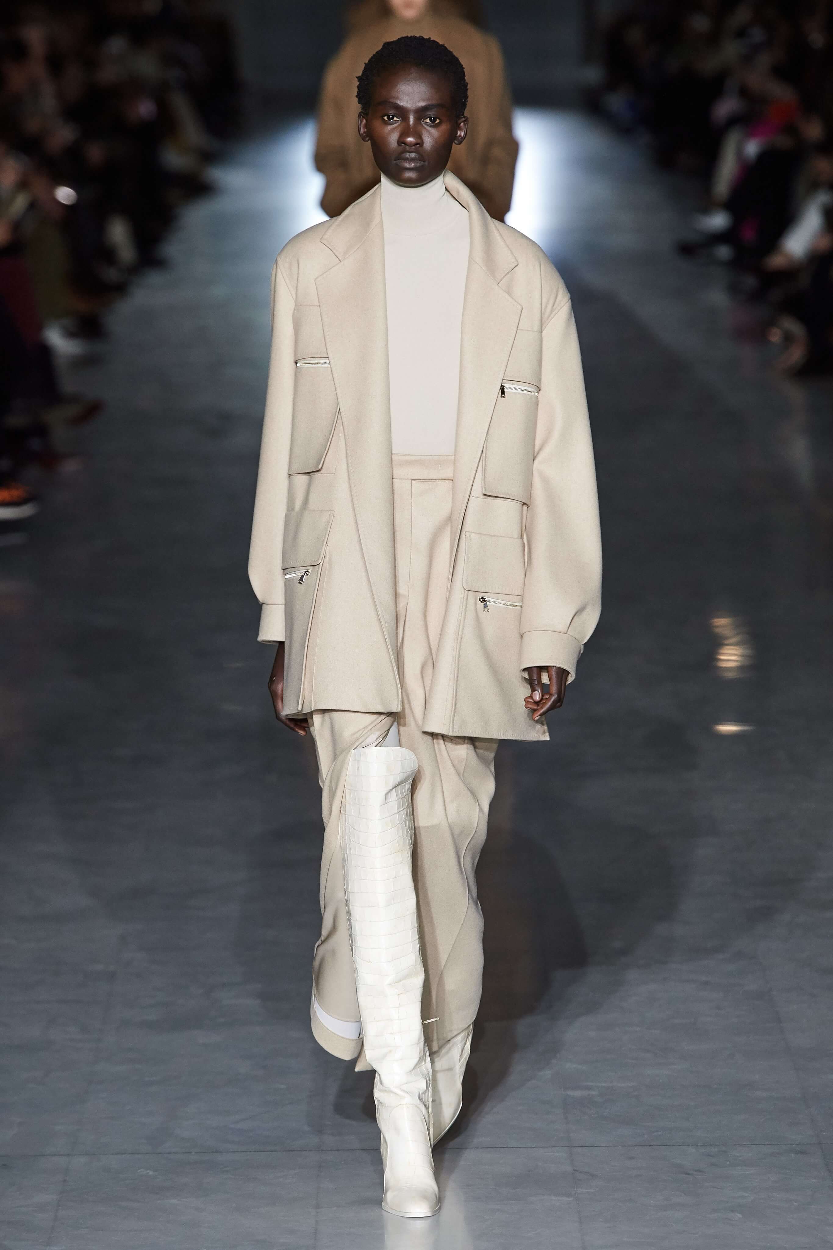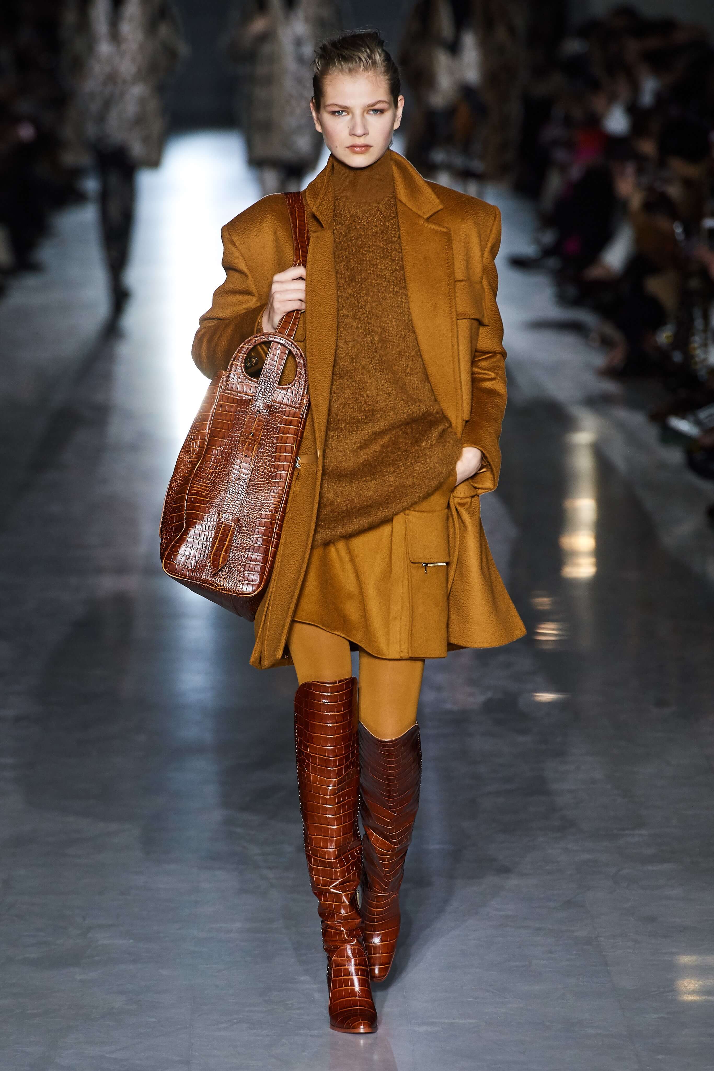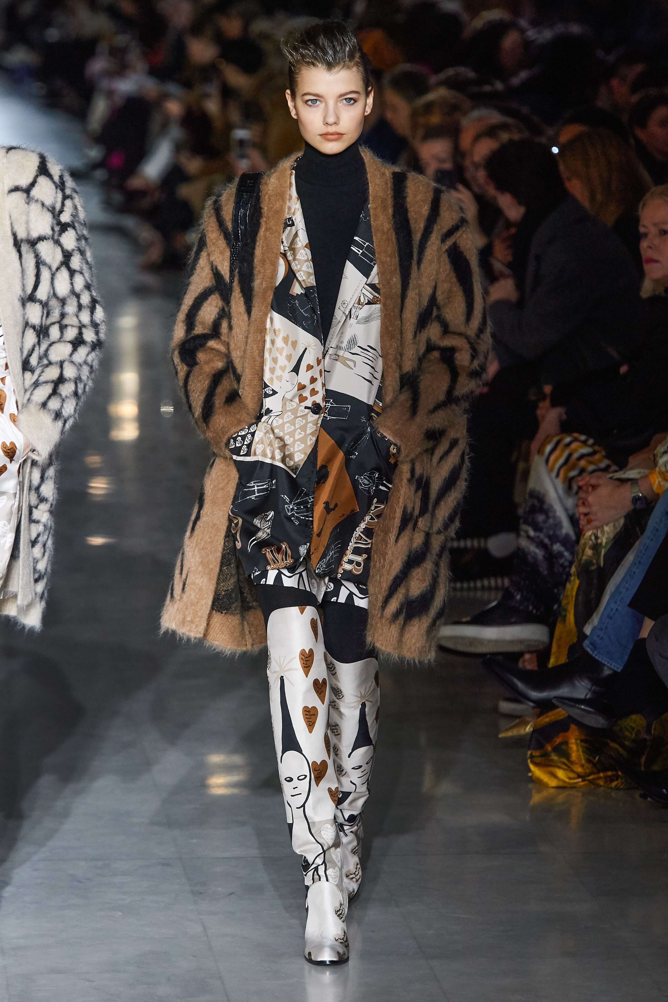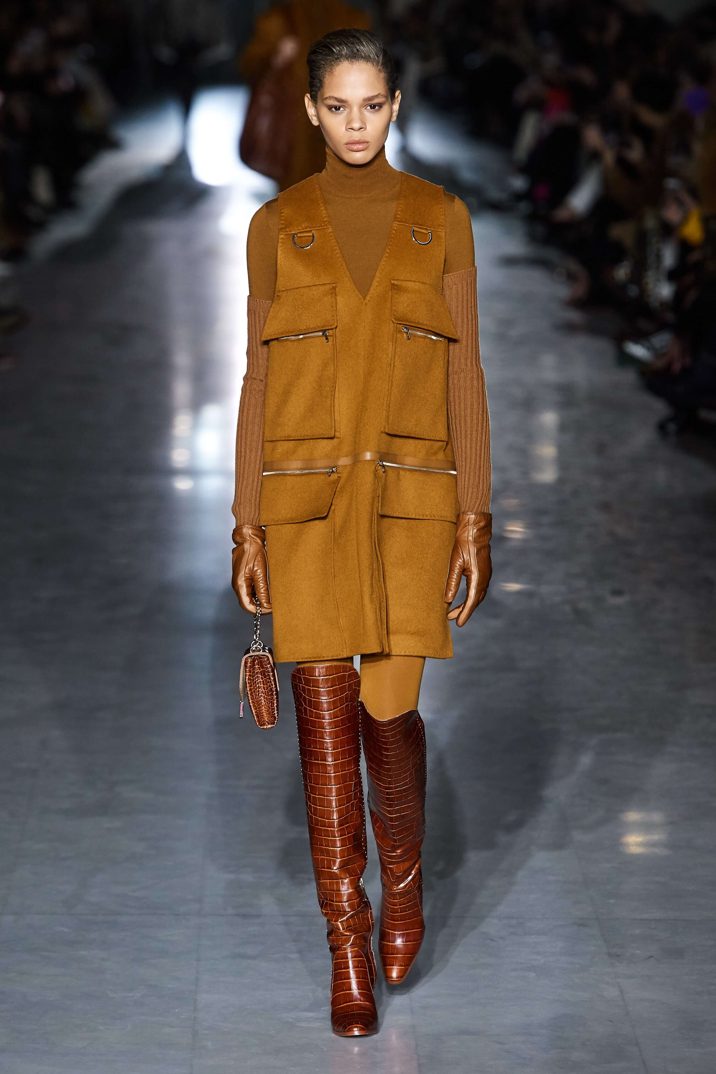 Гриффитс посвятил коллекцию мощной внутренней силе, женской смелости и... гламуру. Именно союз этих явлений, по мнению креативного директора марки, олицетворяет современную женщину. В подтверждение своих идей дизайнер создал образы, выстроенные на монохромности: в каждом пальто, платье, юбка, костюм и обувь одного цвета но разных оттенков. Силуэты коллекции имеют выраженную прямую линию плеча, как в 80-е, а свободный крой дополнен мягкими комфортными фактурами. На платьях и жилетах размещены накладные карманы, напоминающие форменную одежду разнорабочих и тактические разгрузы военных. Классический бежевый и оттенок Camel разбавлены контрастными синим, бирюзовым. Гламур сконцентрирован в хищных принтах, обуви и вставках в верхней одежде из крокодиловой кожи.