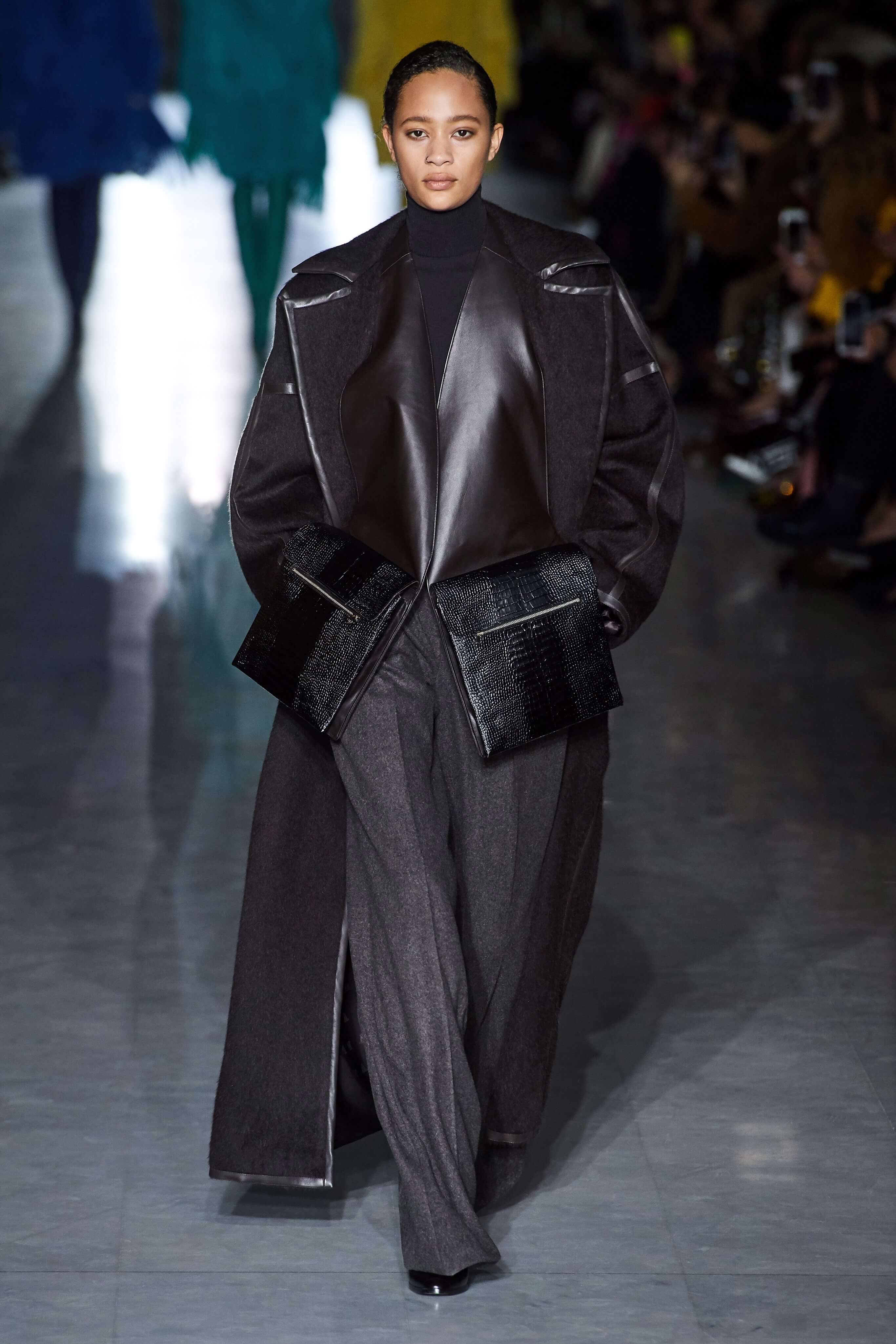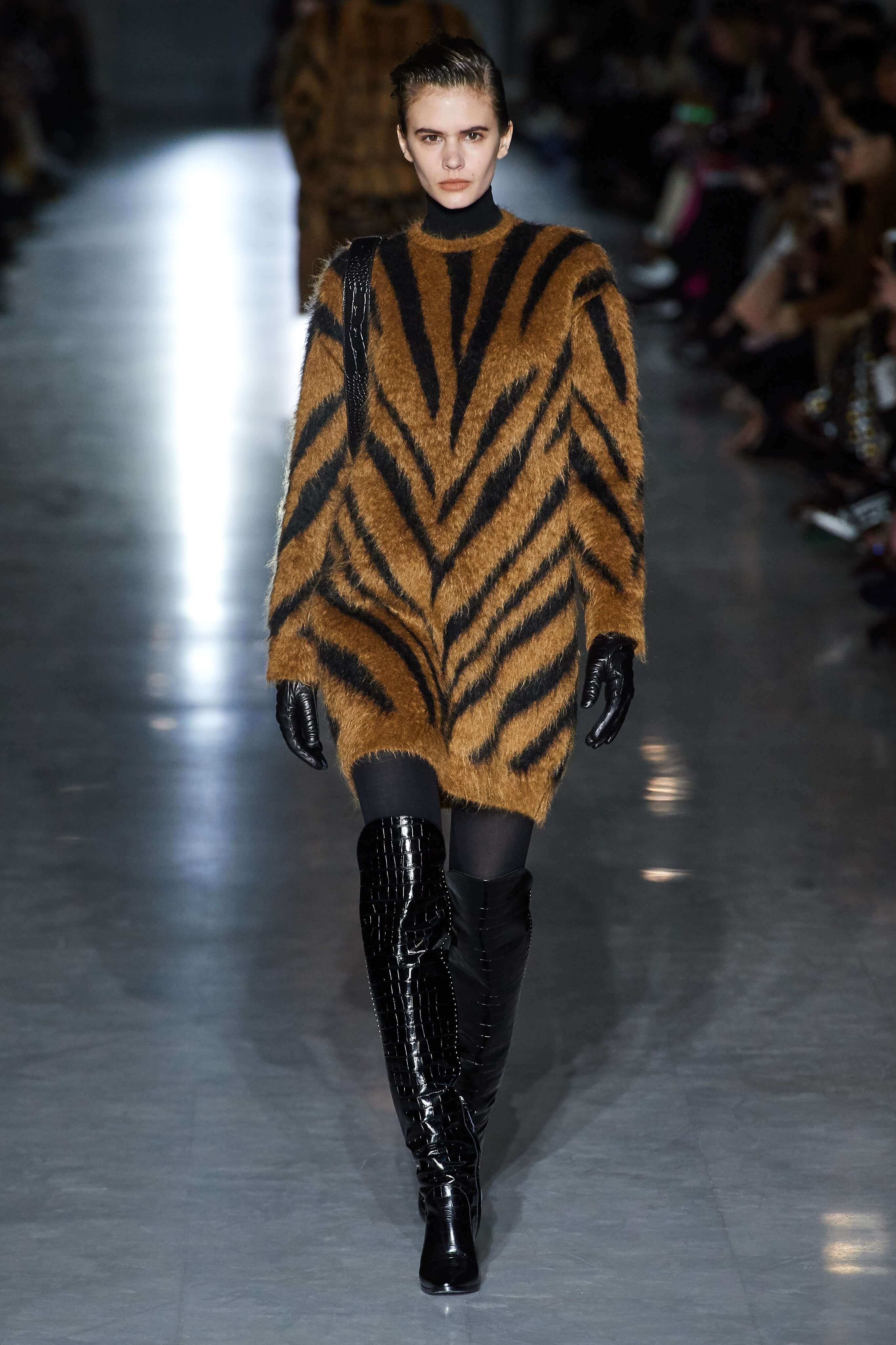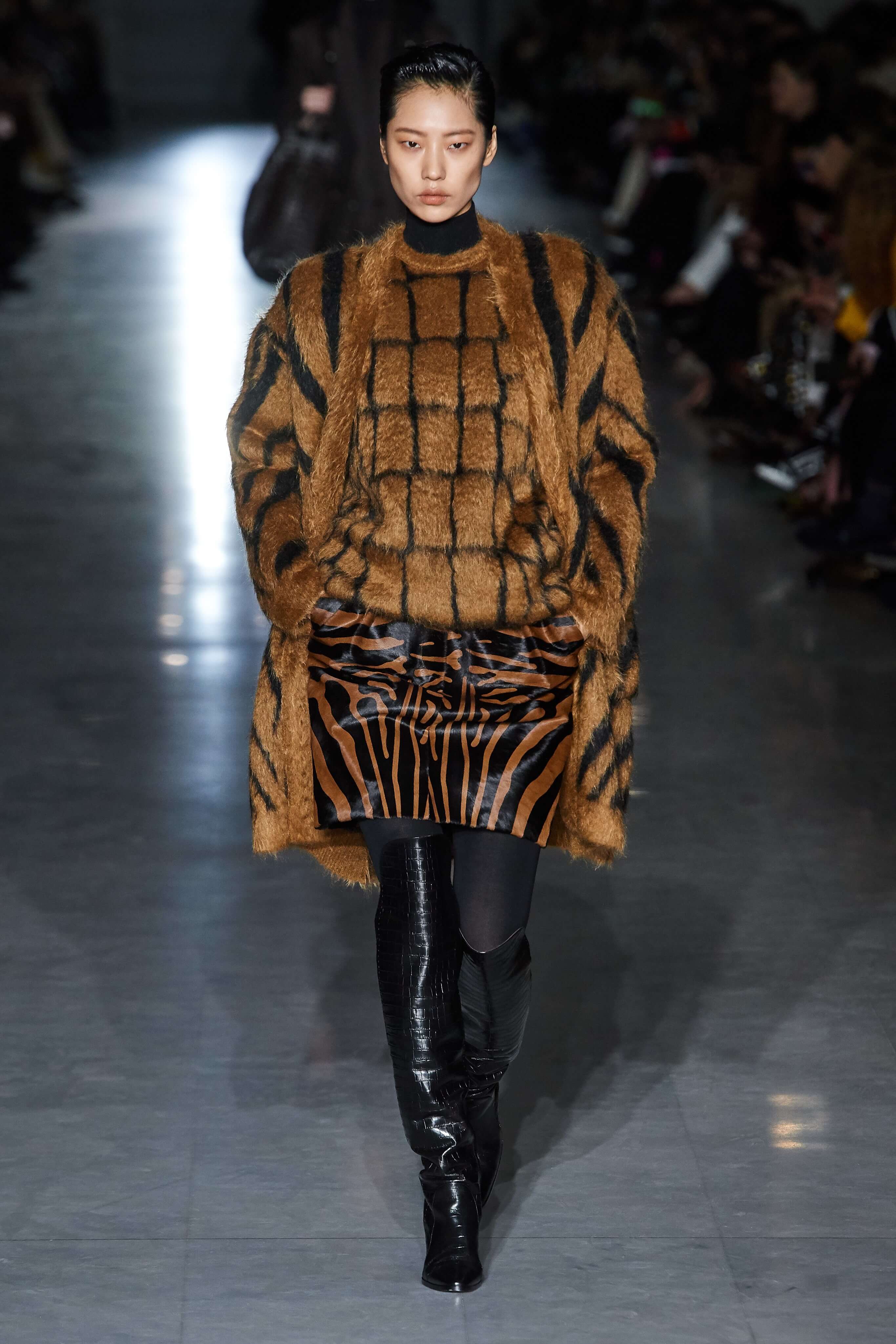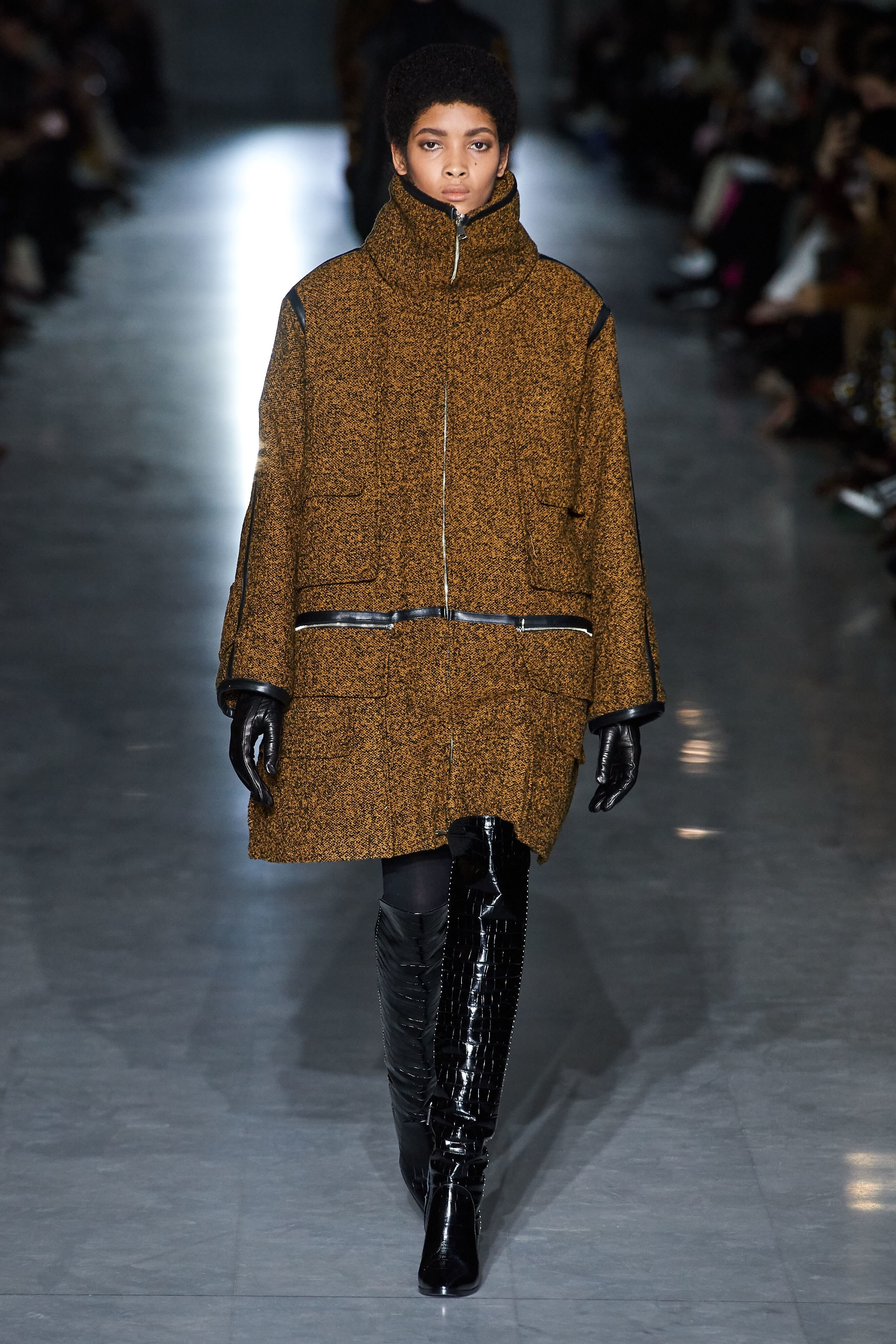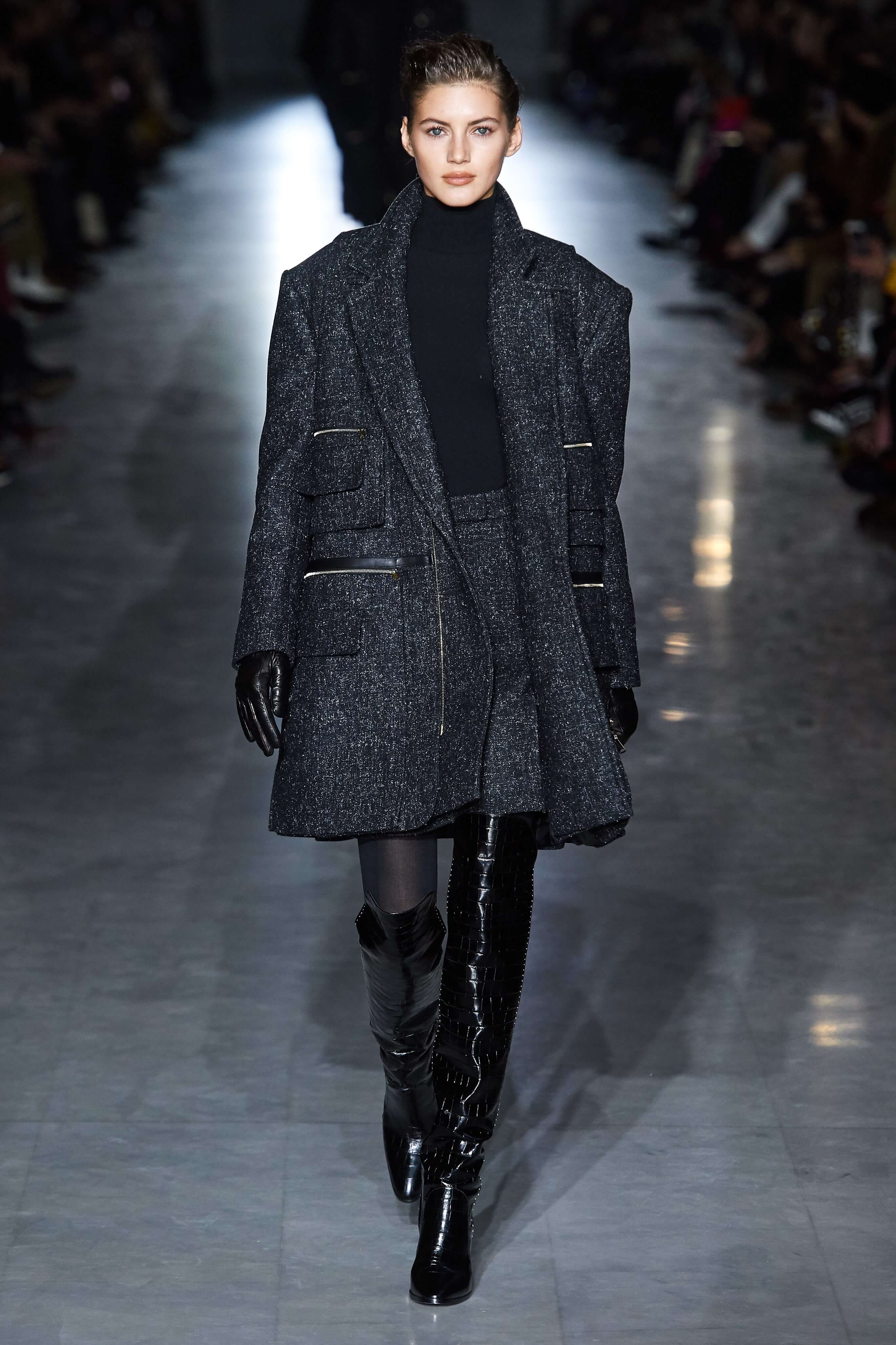 Гриффитс посвятил коллекцию мощной внутренней силе, женской смелости и... гламуру. Именно союз этих явлений, по мнению креативного директора марки, олицетворяет современную женщину. В подтверждение своих идей дизайнер создал образы, выстроенные на монохромности: в каждом пальто, платье, юбка, костюм и обувь одного цвета но разных оттенков. Силуэты коллекции имеют выраженную прямую линию плеча, как в 80-е, а свободный крой дополнен мягкими комфортными фактурами. На платьях и жилетах размещены накладные карманы, напоминающие форменную одежду разнорабочих и тактические разгрузы военных. Классический бежевый и оттенок Camel разбавлены контрастными синим, бирюзовым. Гламур сконцентрирован в хищных принтах, обуви и вставках в верхней одежде из крокодиловой кожи.
