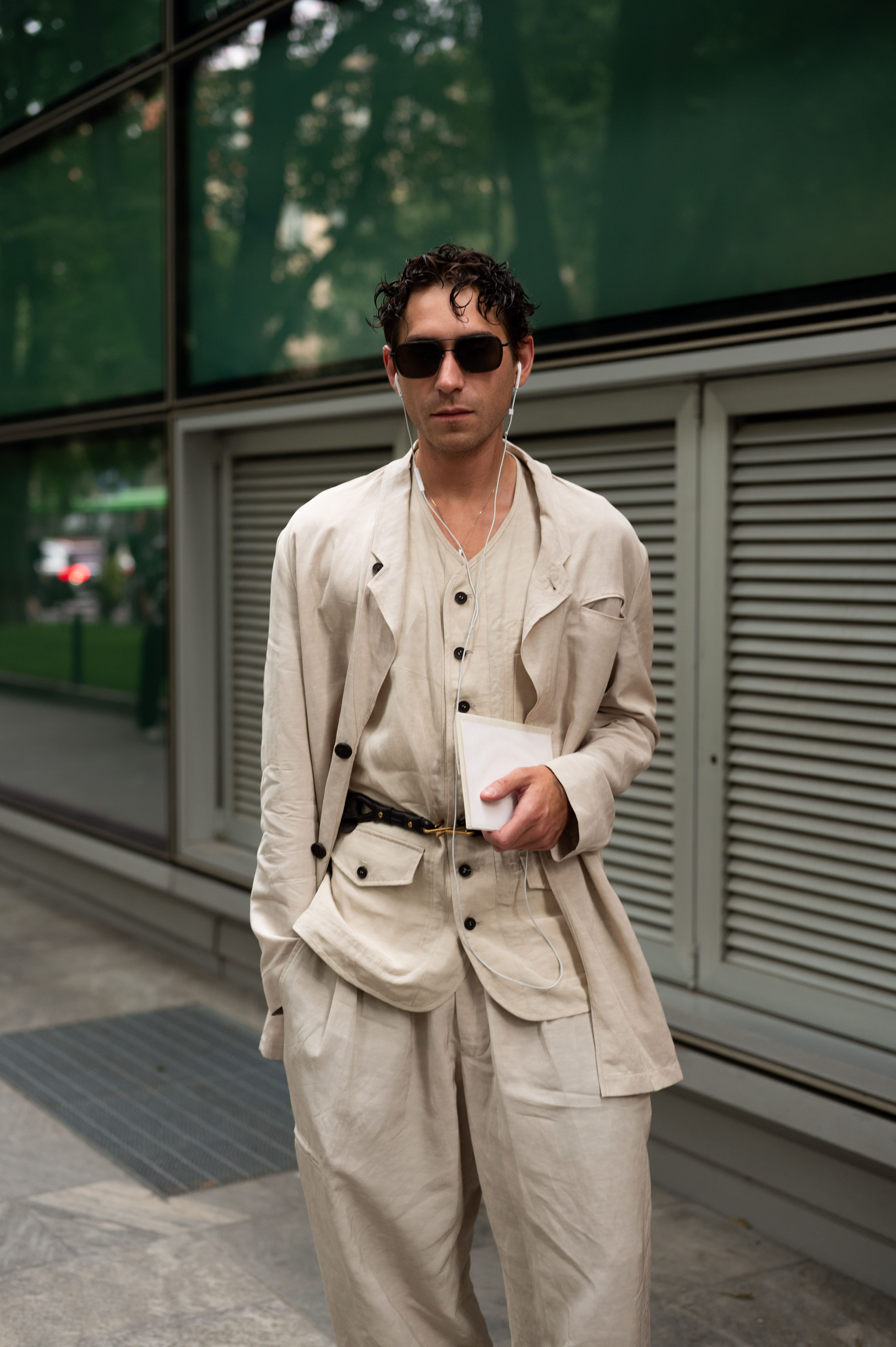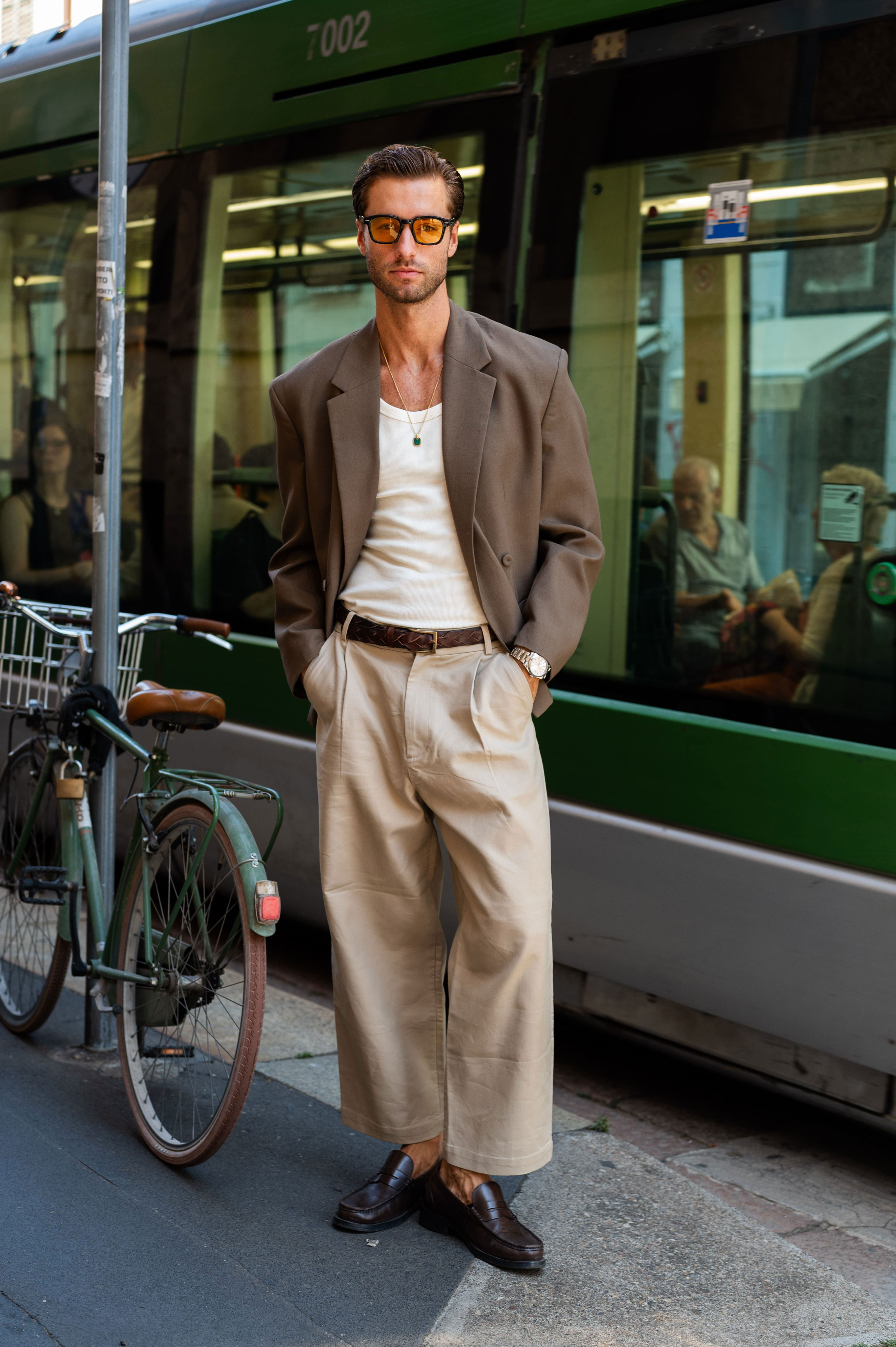 Цього разу місто провело урок із чоловічого стилю. Перший із них — не нехтуйте аксесуарами, як-от протисонцевими окулярами, прикрасами на шию, брошками й головними уборами. Другий — легкість і невимушеність літніх виходів забезпечують нейтральні кольори, розслаблений крій та глибокі V-вирізи.