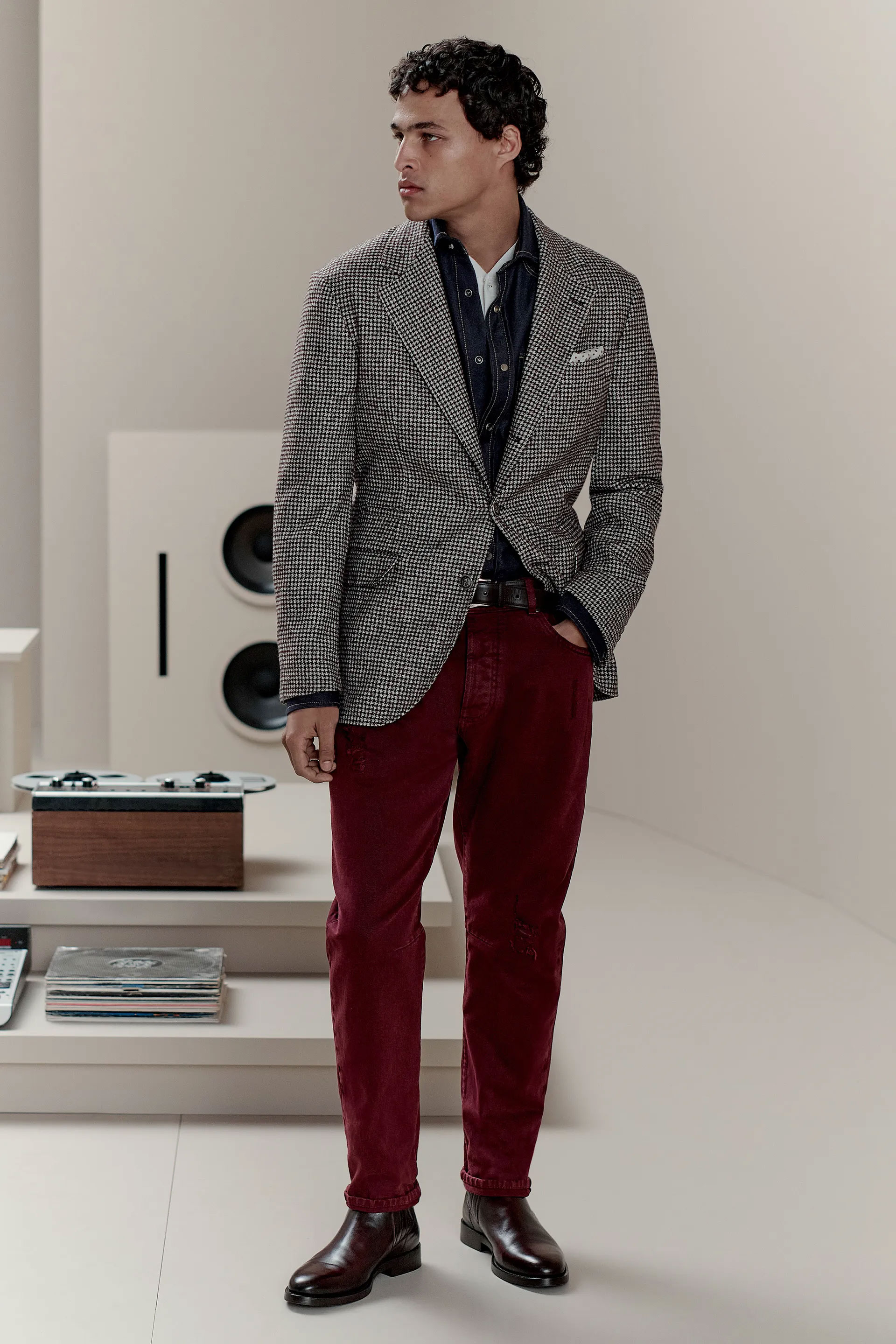 У колекції для міланського Тижня моди Brunello Cucinelli шукали баланс між філософськими роздумами та повсякденною практичністю. Образи поєднали традиційні коди чоловічого гардеробу та романтичну вишуканість. Цю глибину підкреслила кольорова палітра колекції fall-winter — 2025, серед якої відтінки гірчичного, бордового, фіолетового тощо.
