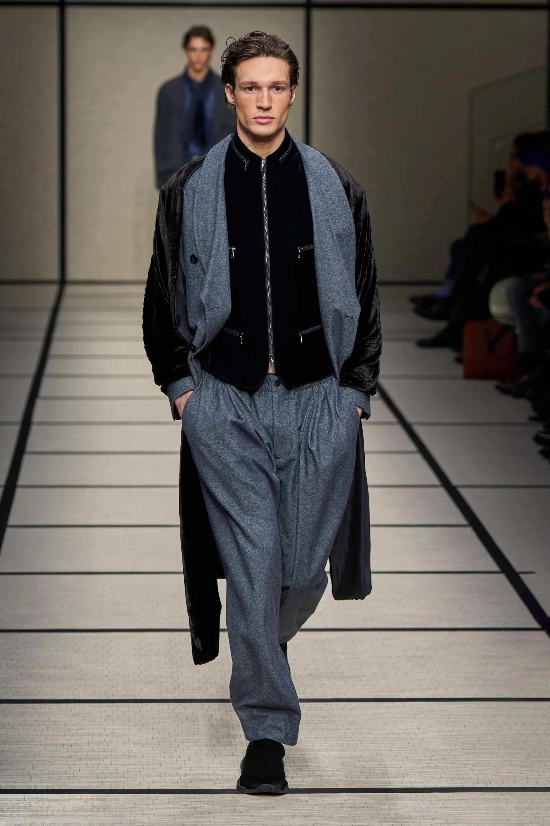 Вечірній та класичний одяг, військова та робоча форма: відгуки цих стилів неодноразово з’являлись на подіумах ready-to-wear, однак Джорджіо Армані ризикнув поєднати все й відразу. Жанрове протистояння втілилося в костюмах, поєднаних з оксамитовими кедами, трикотаж, стилізований з шарфами-краватками, тощо.