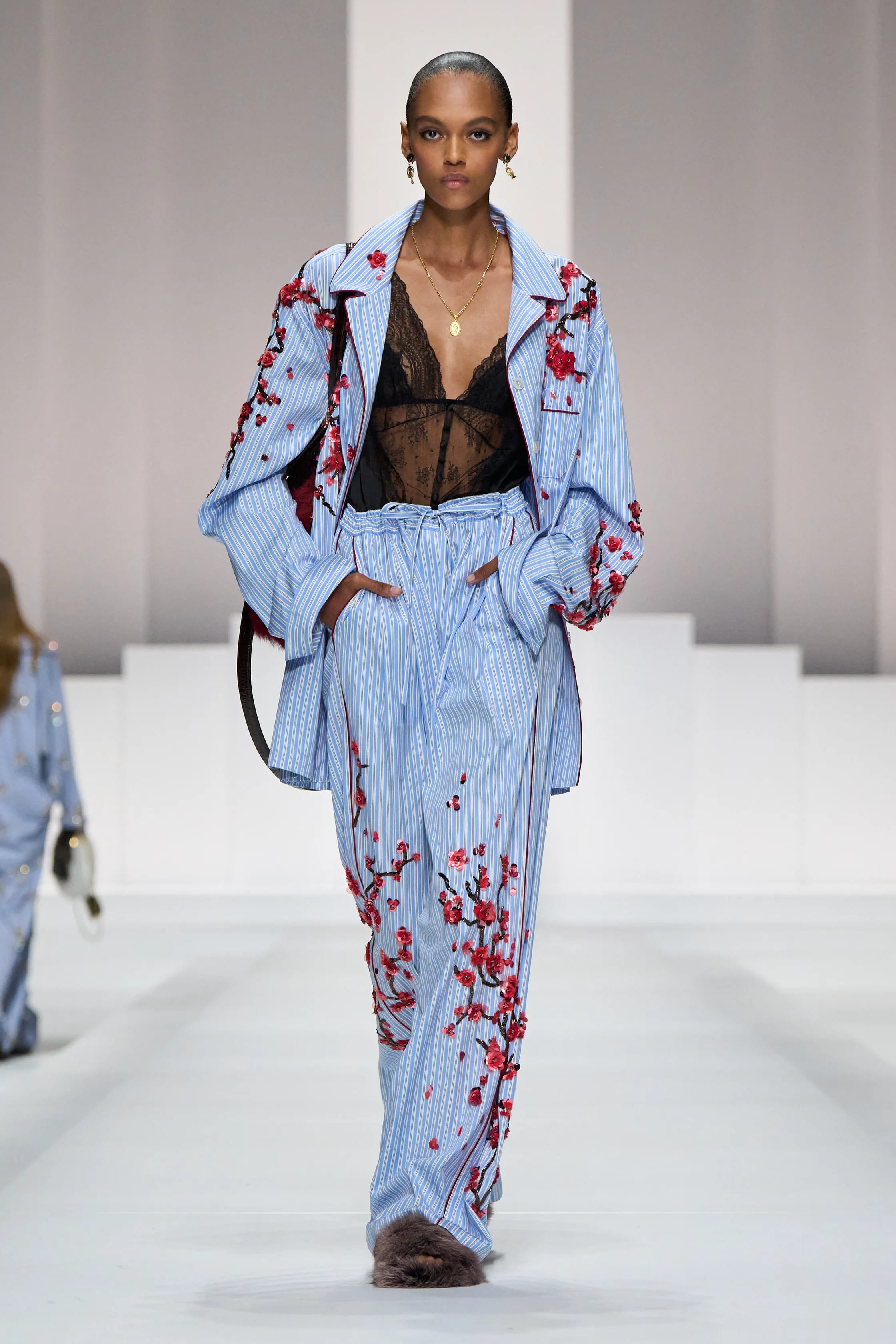 Цього сезону шоу Dolce & Gabbana ввійшло не лише до історії моди, але й кіно. У перших рядах показу з’явилися актори Меріл Стріп та Стенлі Туччі в образах своїх культових героїв із фільму «Диявол носить Prada», які, окрім самого спостереження за шоу, мали можливість мило поспілкуватися з Анною Вінтур. Повертаючись до самої колекції сезону spring-summer — 2026, на подіумі Dolce & Gabbana представили своєрідну «піжамну вечірку», що продовжила ідеї чоловічої колекції, показаної у червні.