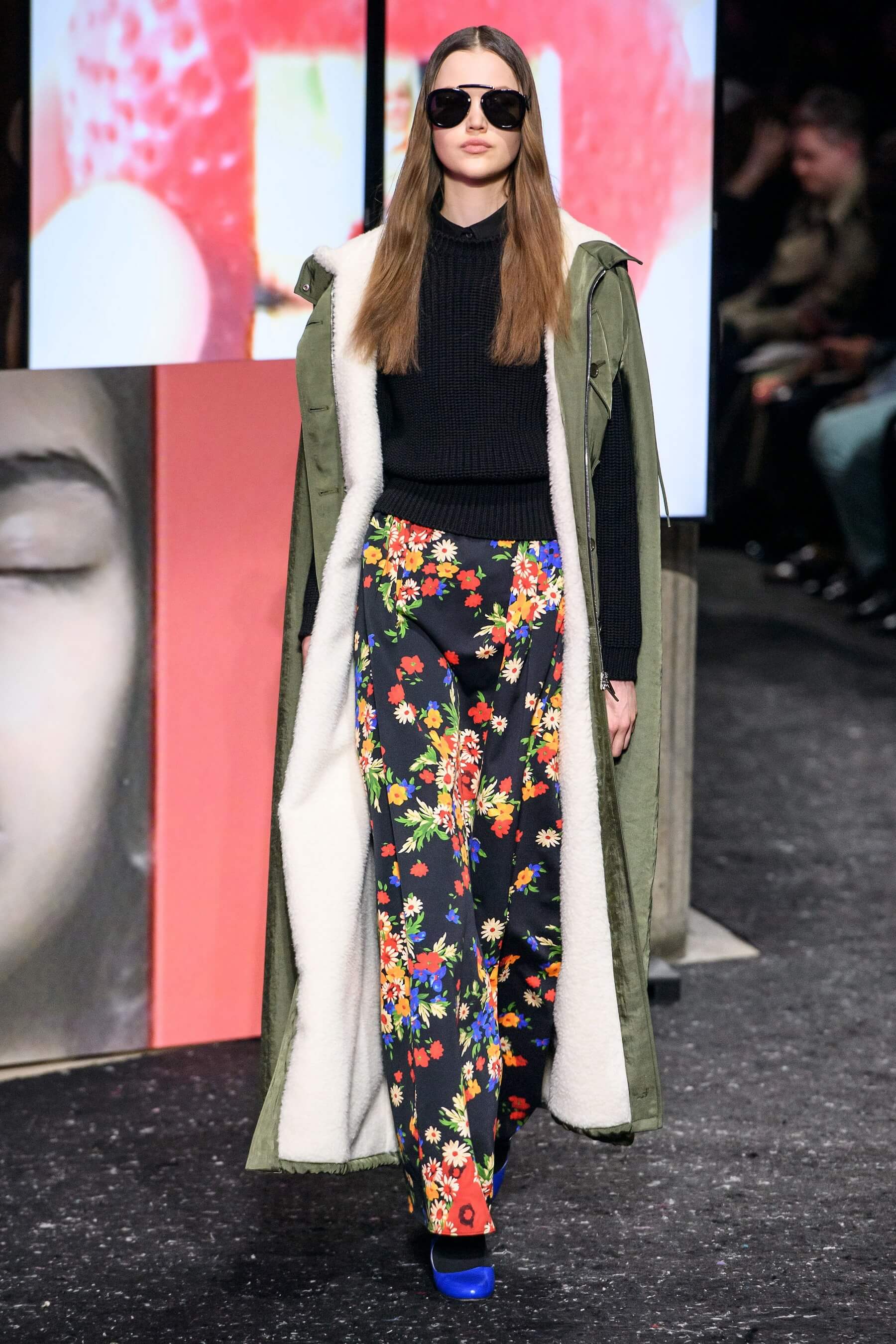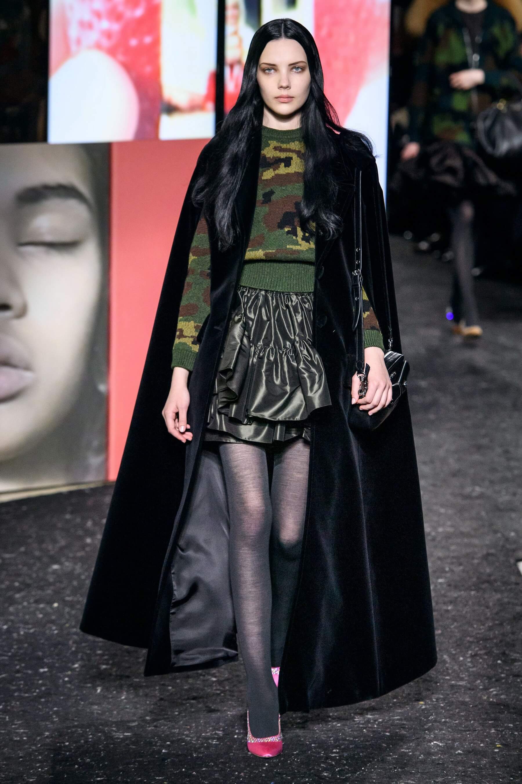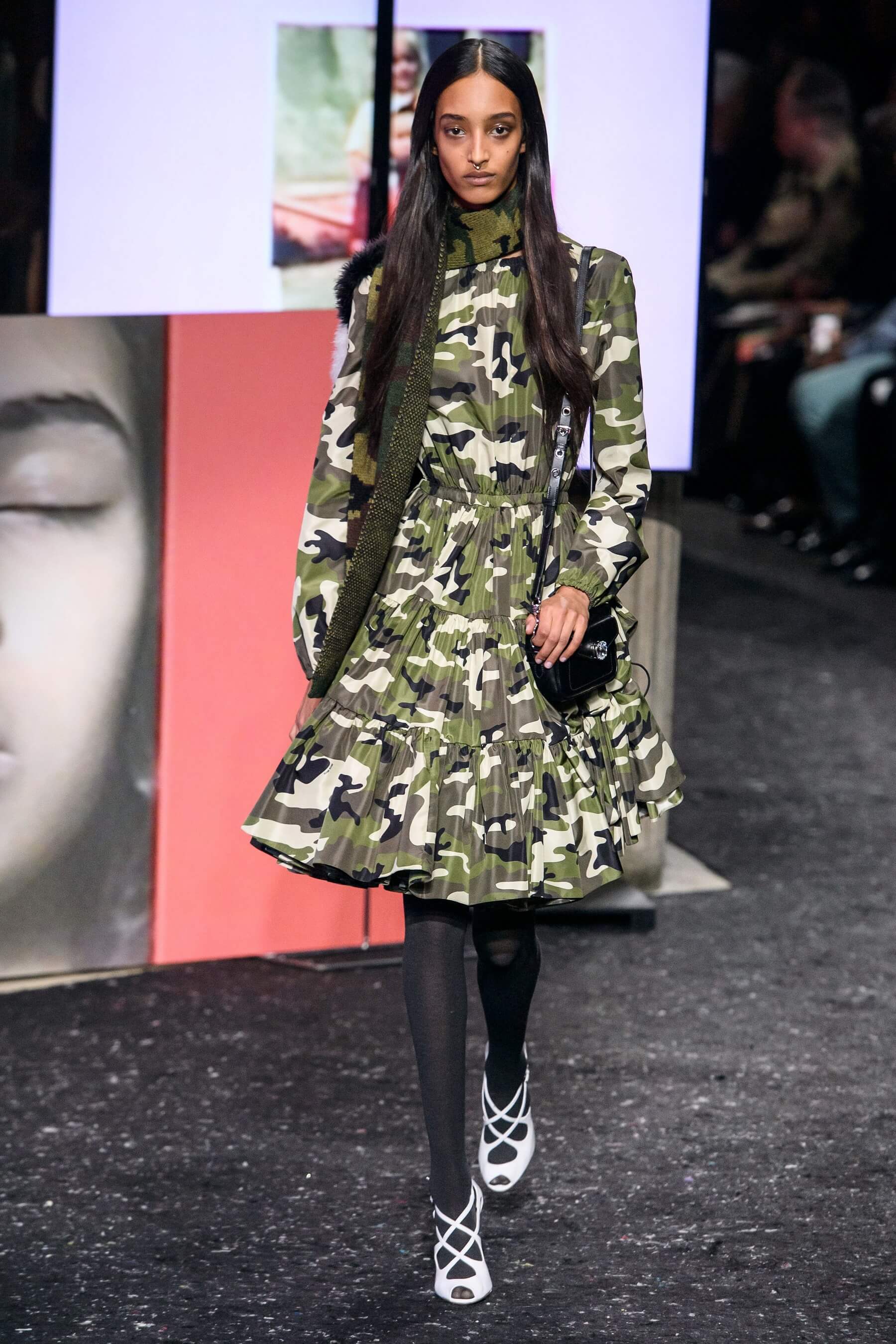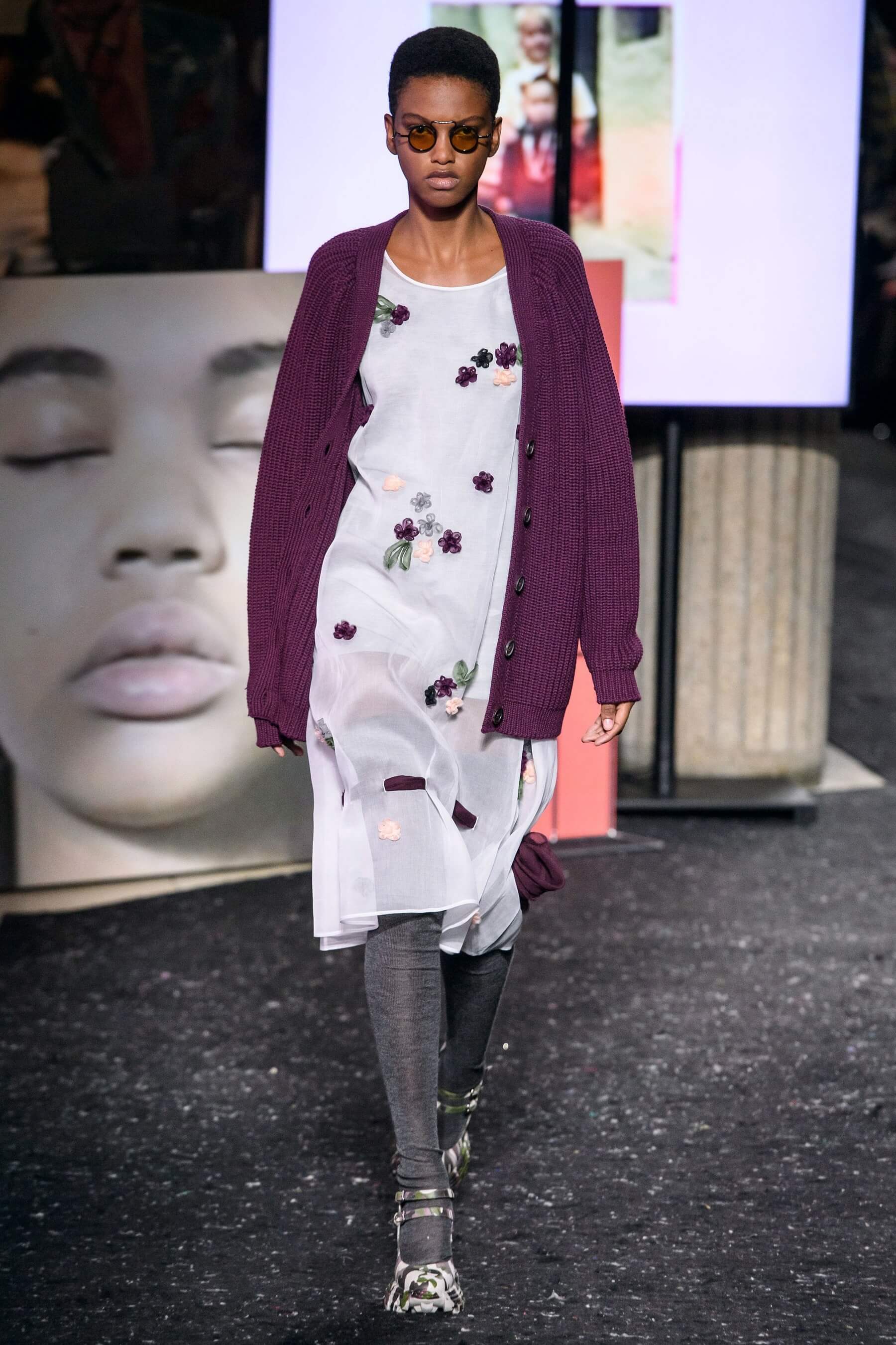 Осеннюю коллекцию Миучча Прада так же посвятила ностальгии - сет-дизайн показа создавала новозеландская художница Шарна Озборн: модели проходили по подиуму среди светящихся экранов винтажных телевизоров и плакатов, на которых были изображения диснеевских игрушек, авангардных скульптур, певицы Долли Партон и деталей самой коллекции.
