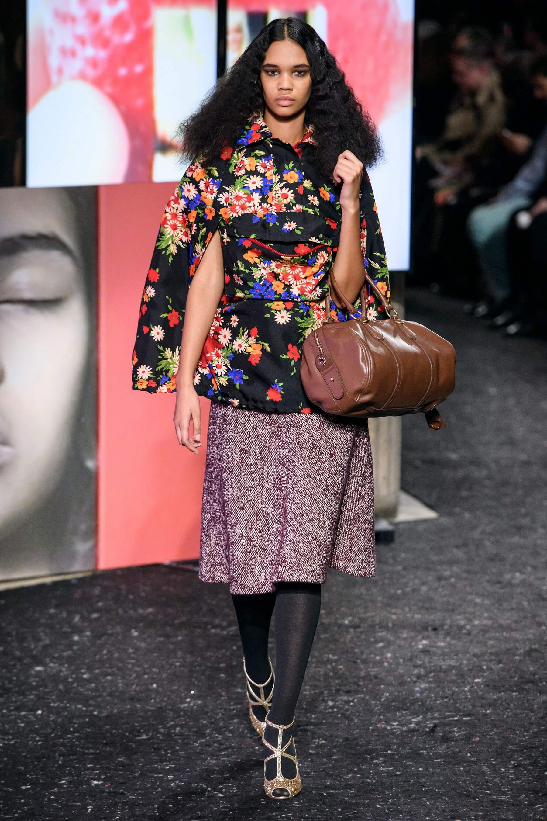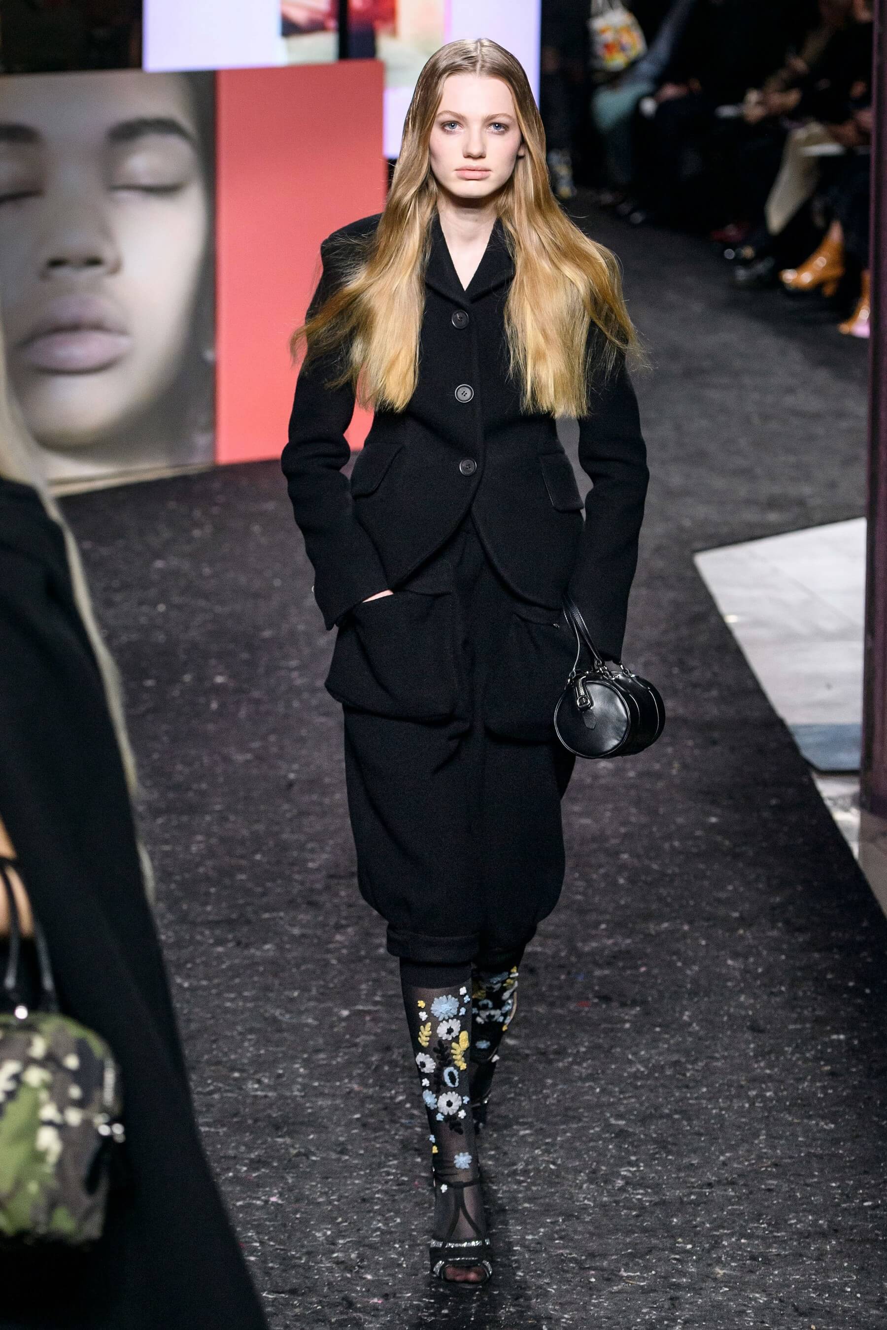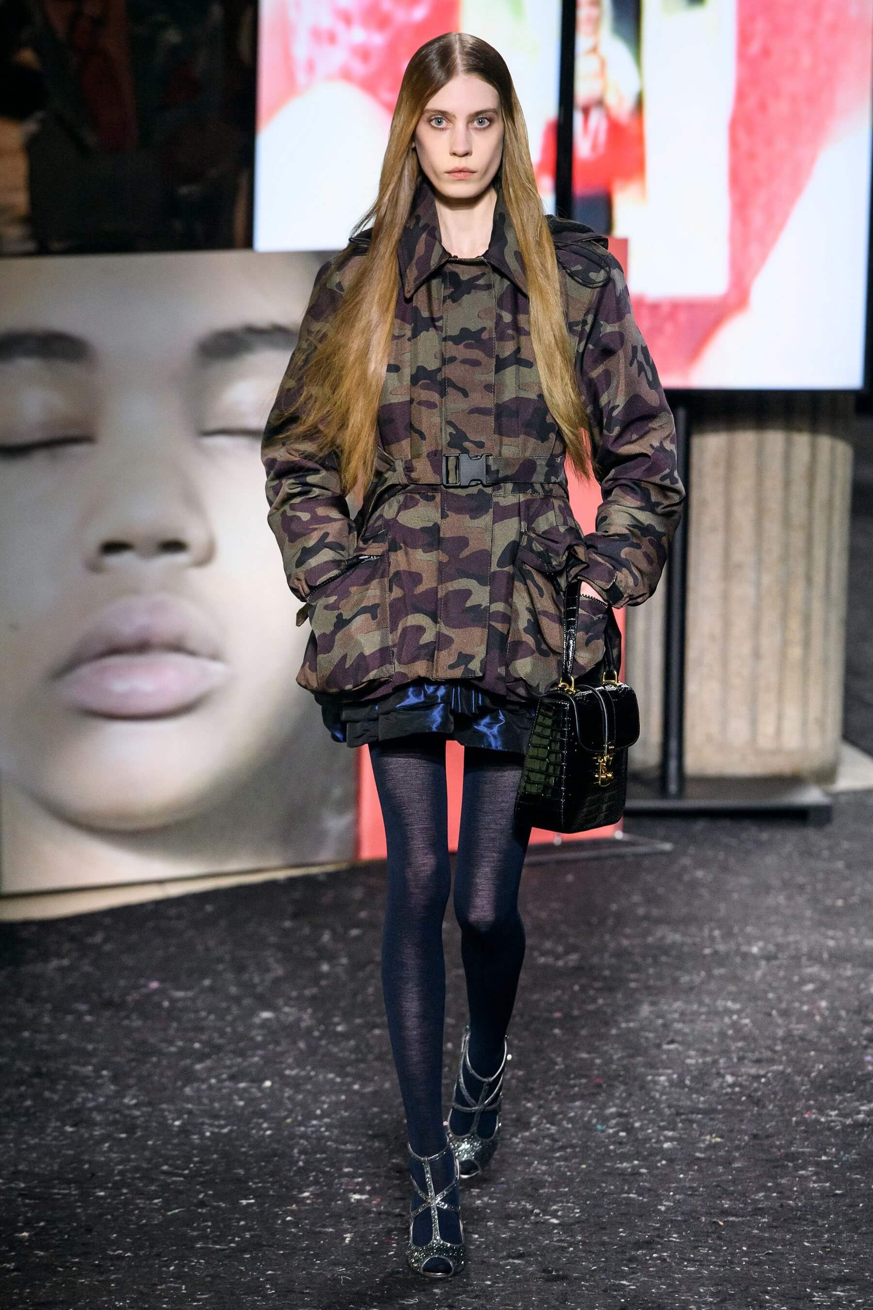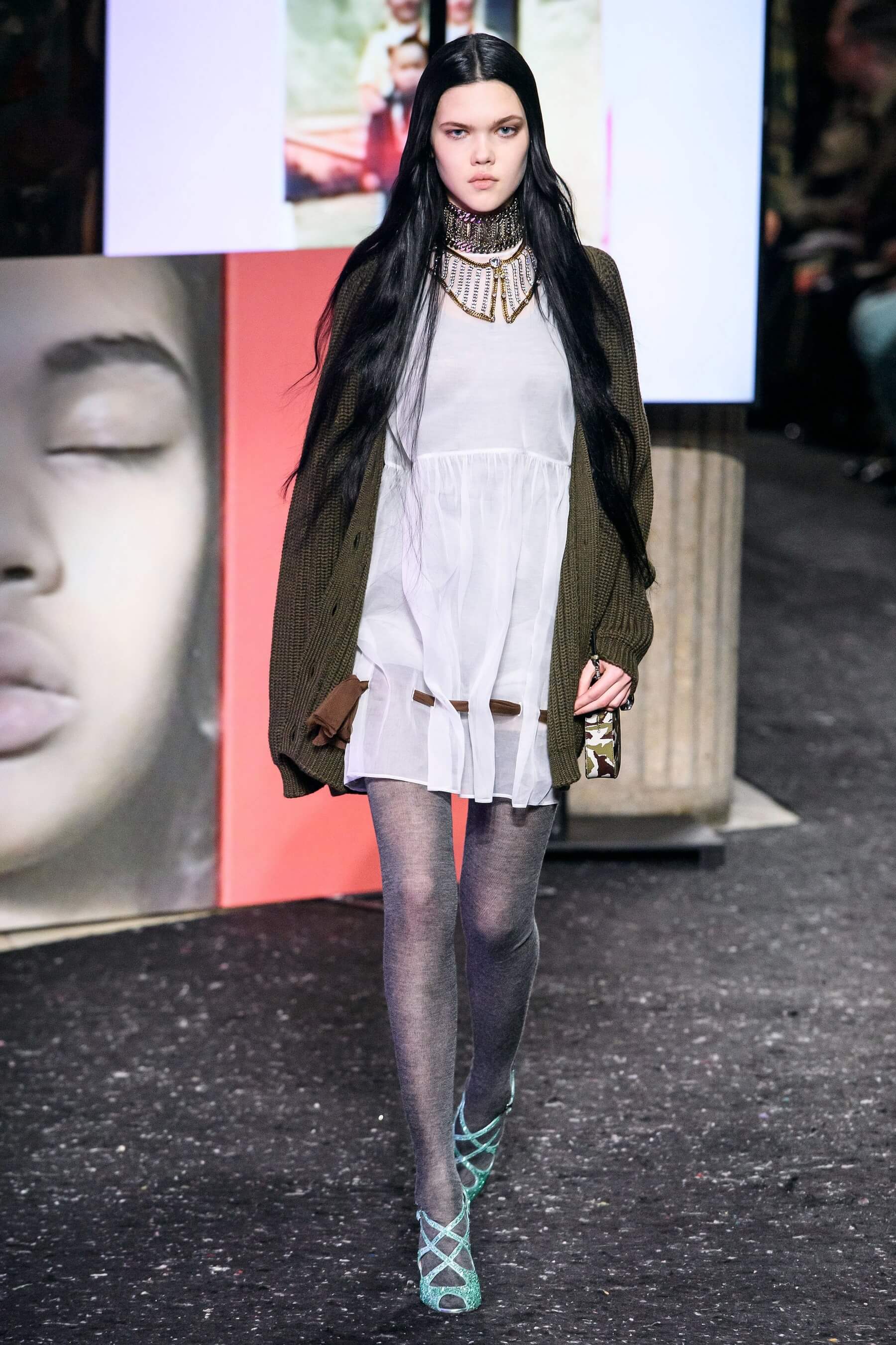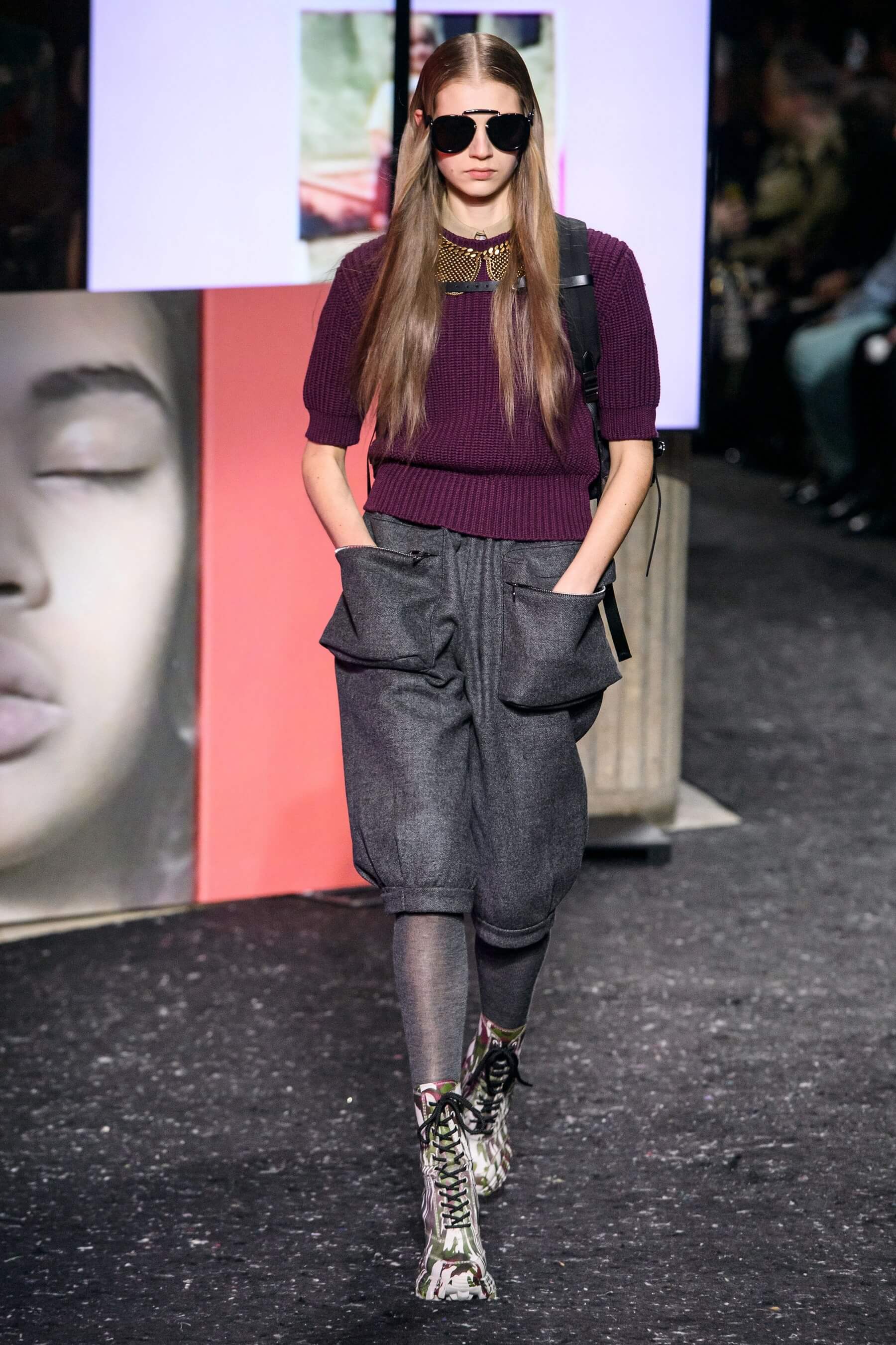 Осеннюю коллекцию Миучча Прада так же посвятила ностальгии - сет-дизайн показа создавала новозеландская художница Шарна Озборн: модели проходили по подиуму среди светящихся экранов винтажных телевизоров и плакатов, на которых были изображения диснеевских игрушек, авангардных скульптур, певицы Долли Партон и деталей самой коллекции.