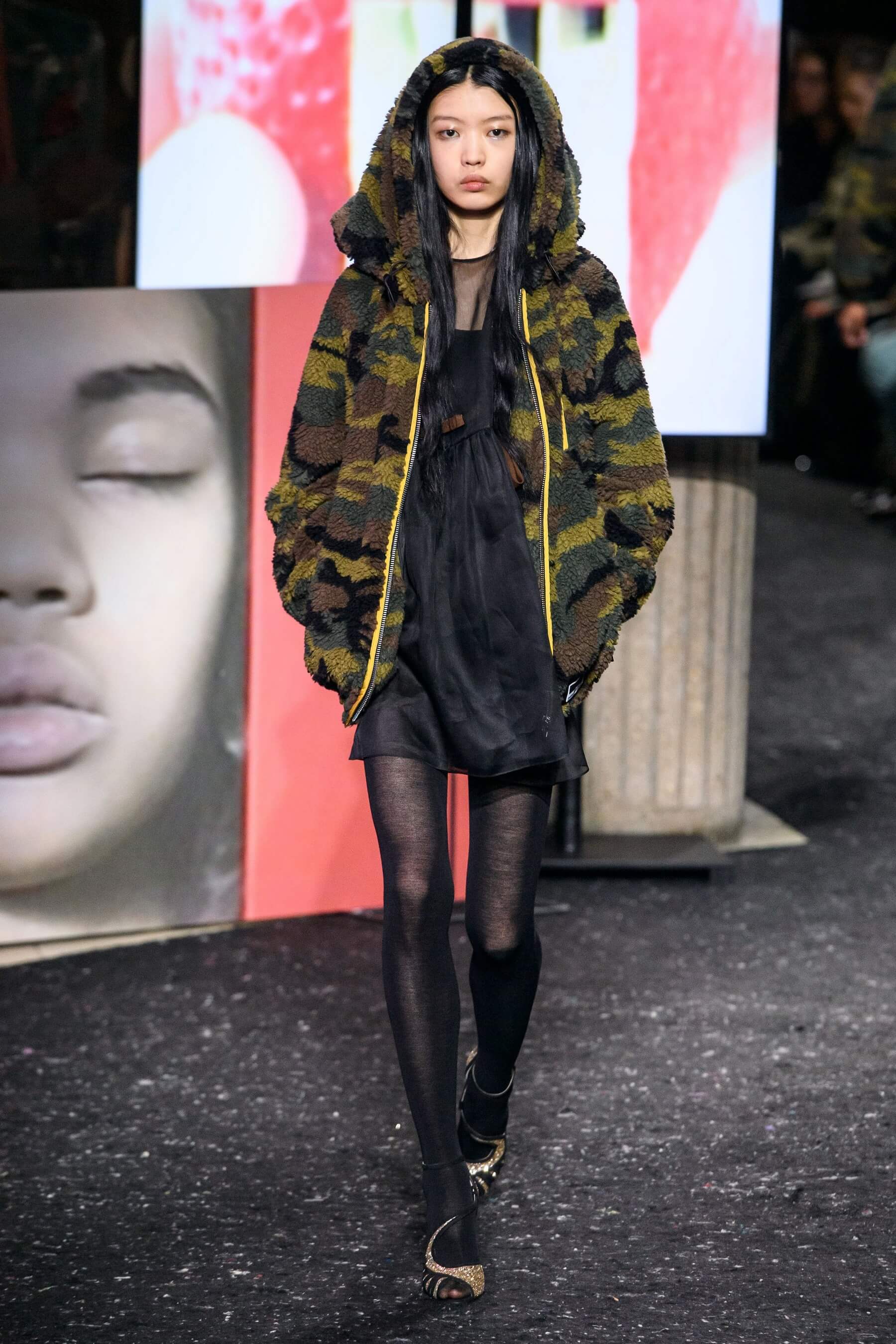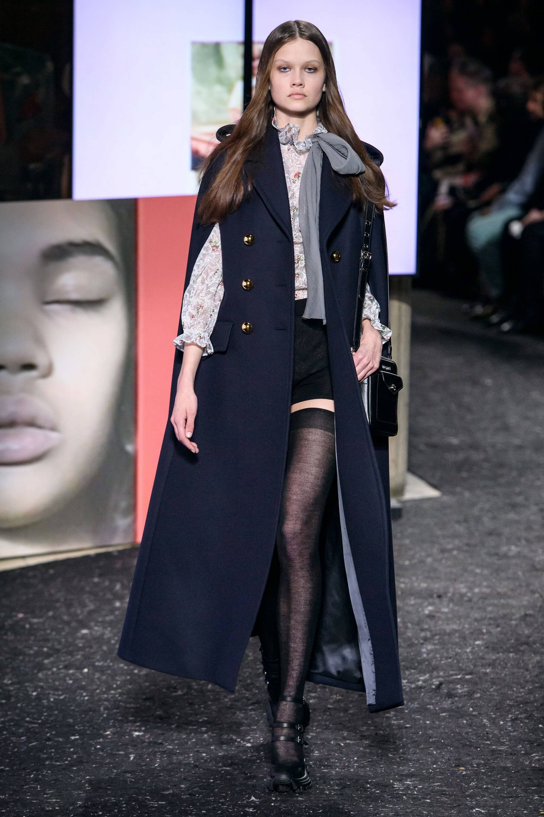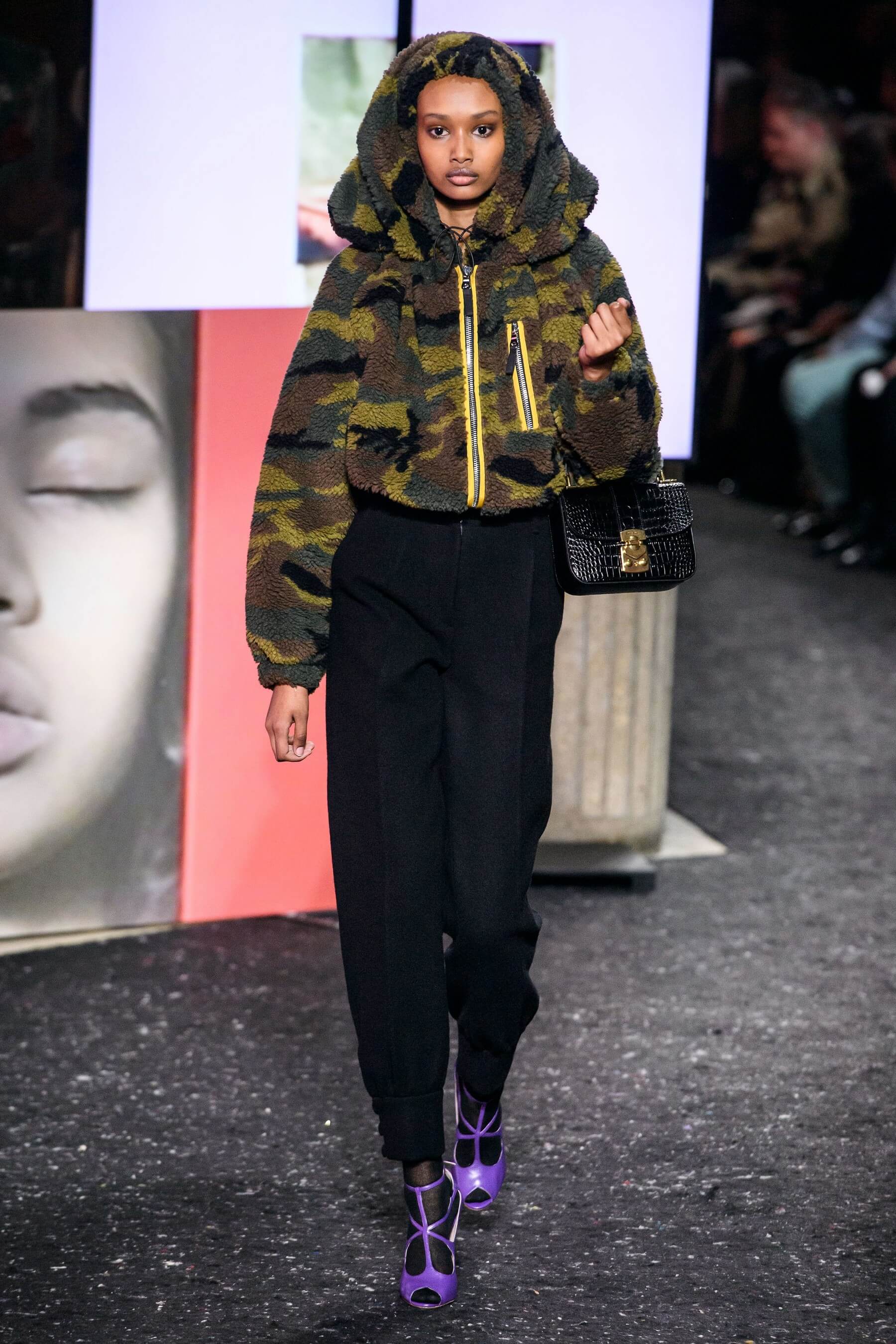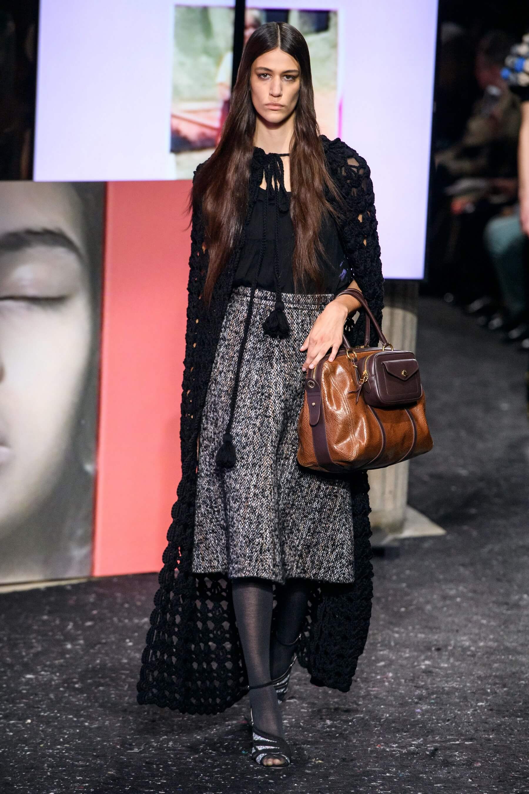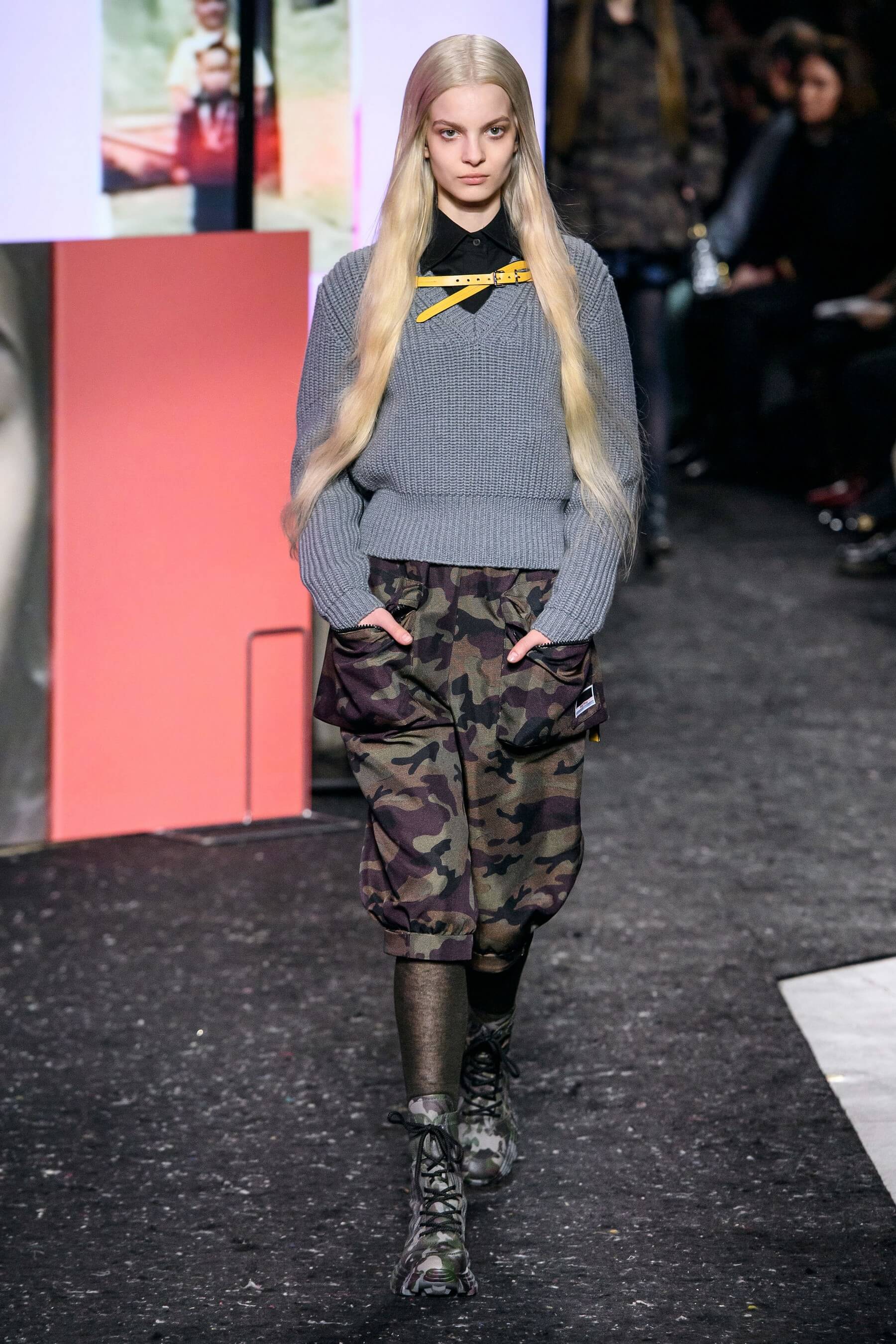 Осеннюю коллекцию Миучча Прада так же посвятила ностальгии - сет-дизайн показа создавала новозеландская художница Шарна Озборн: модели проходили по подиуму среди светящихся экранов винтажных телевизоров и плакатов, на которых были изображения диснеевских игрушек, авангардных скульптур, певицы Долли Партон и деталей самой коллекции.