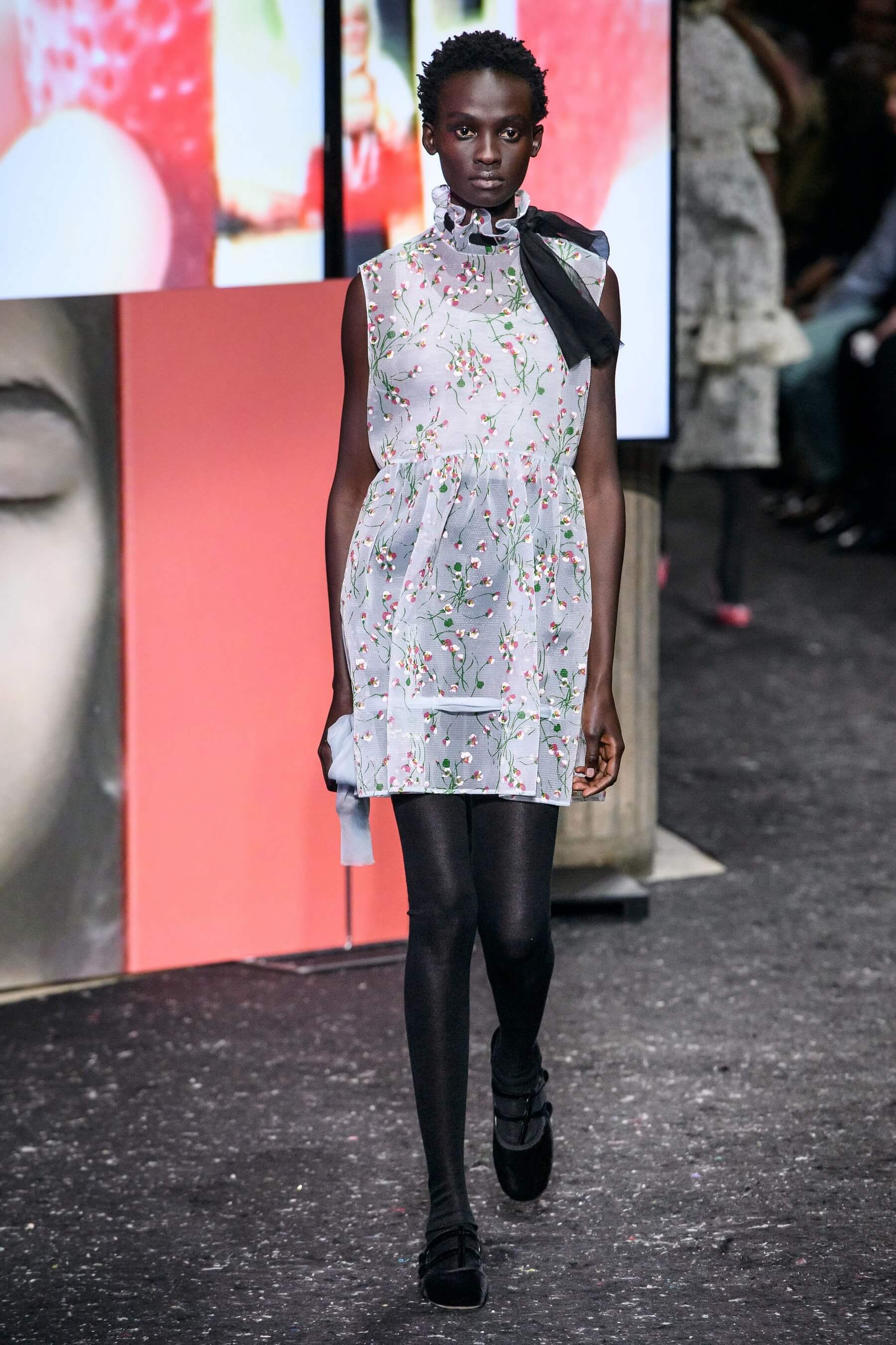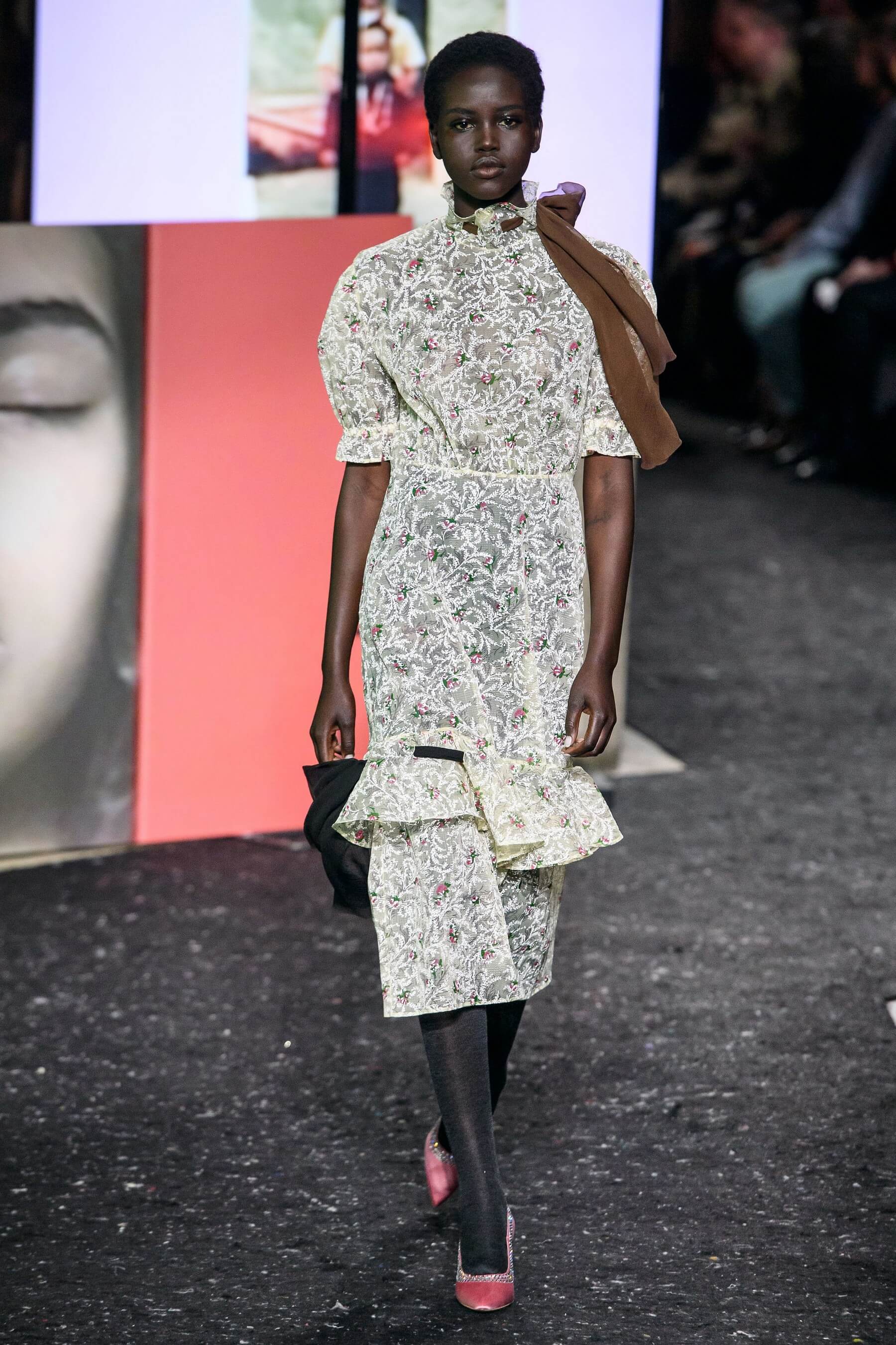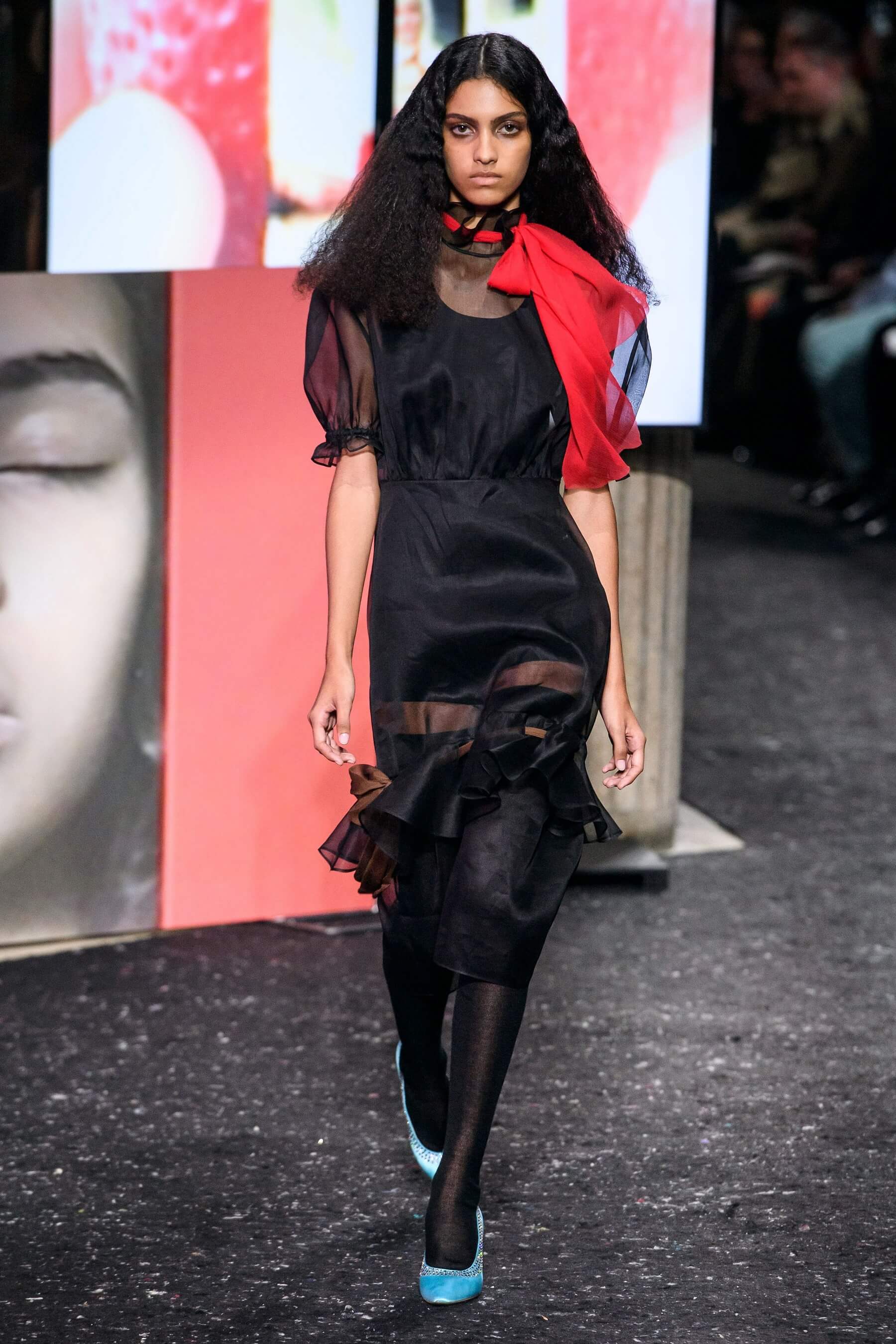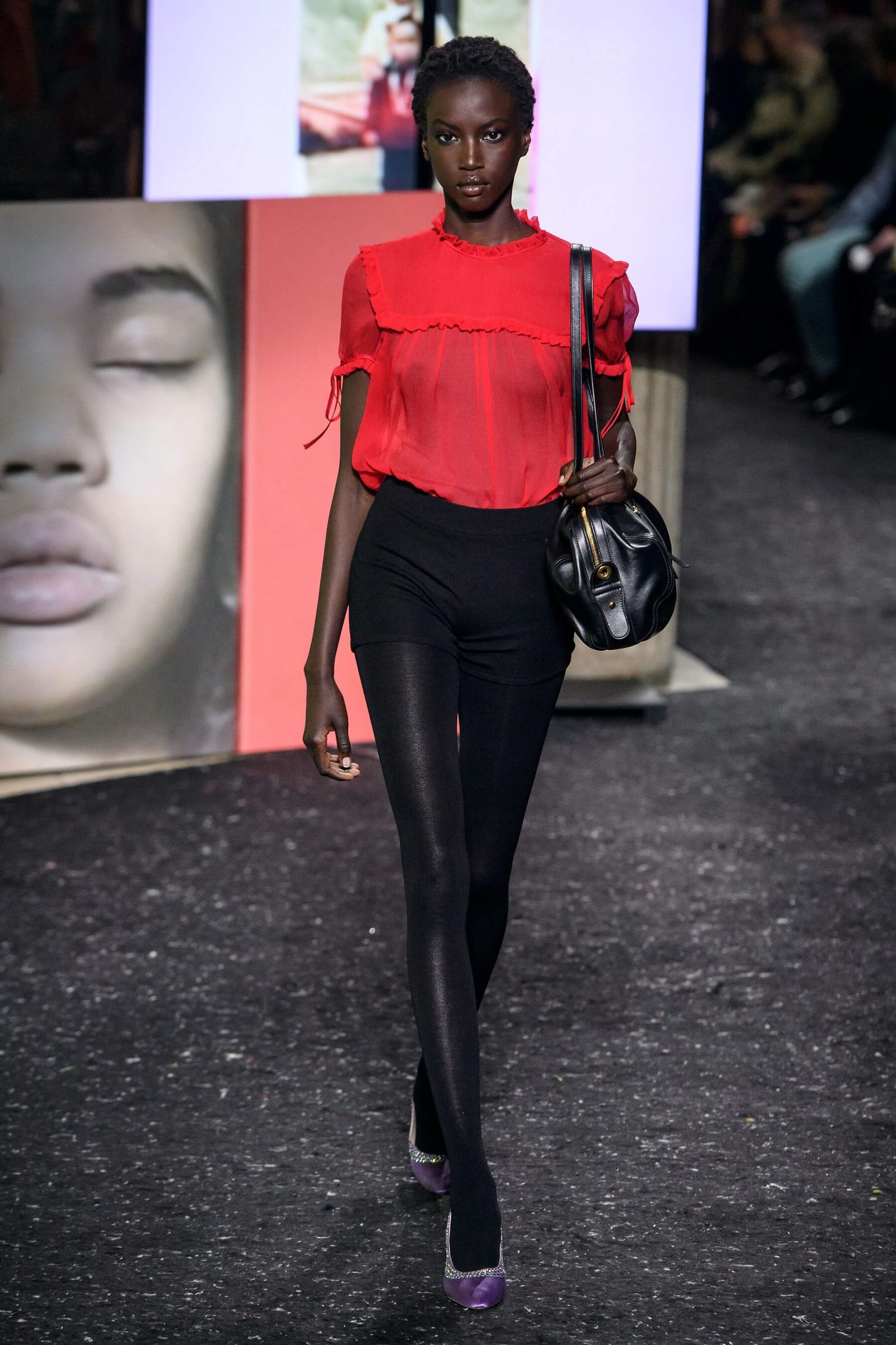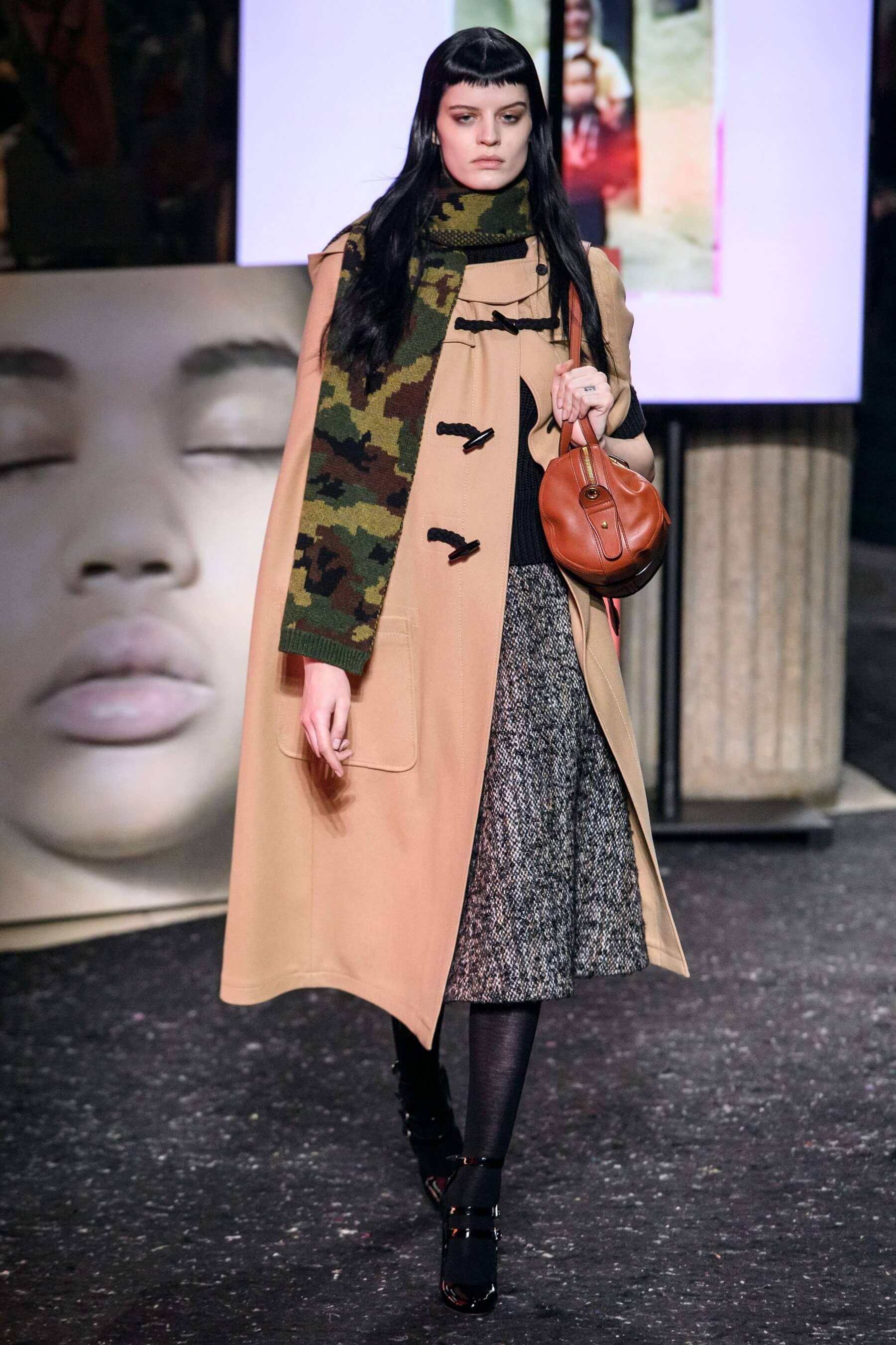 Осеннюю коллекцию Миучча Прада так же посвятила ностальгии - сет-дизайн показа создавала новозеландская художница Шарна Озборн: модели проходили по подиуму среди светящихся экранов винтажных телевизоров и плакатов, на которых были изображения диснеевских игрушек, авангардных скульптур, певицы Долли Партон и деталей самой коллекции.