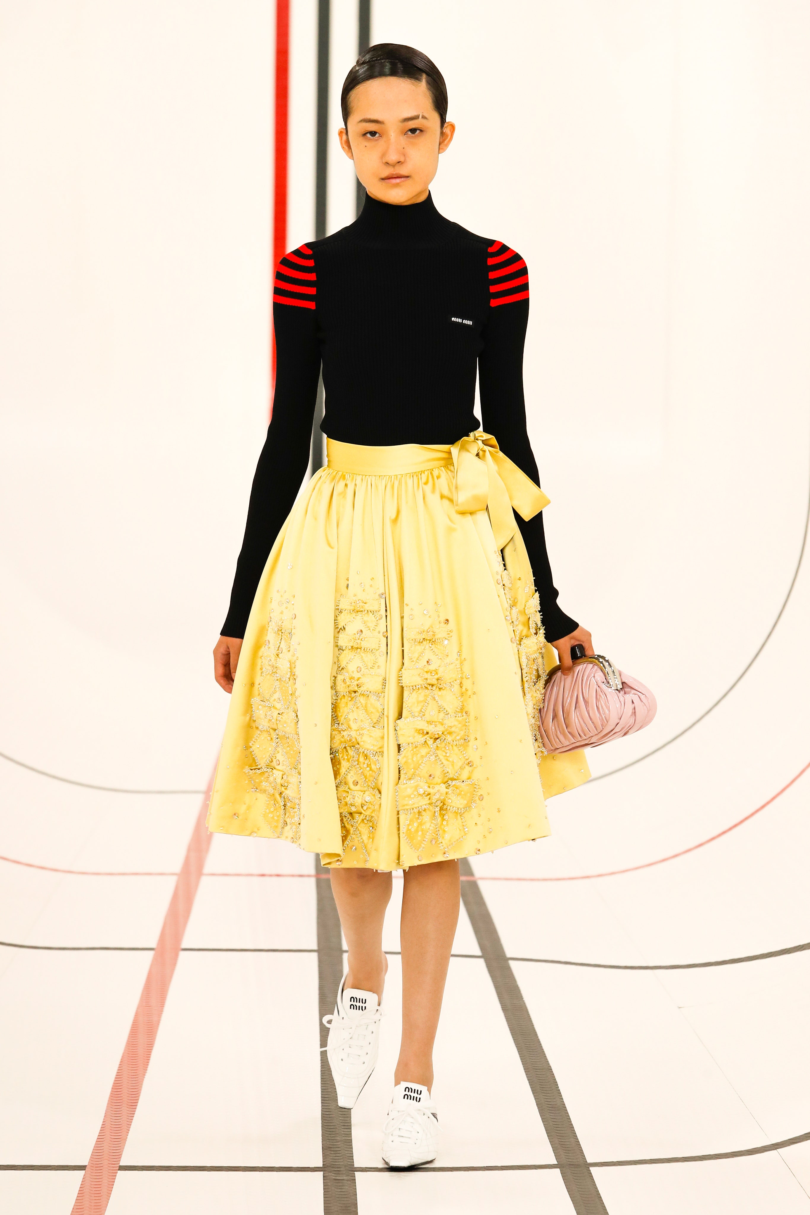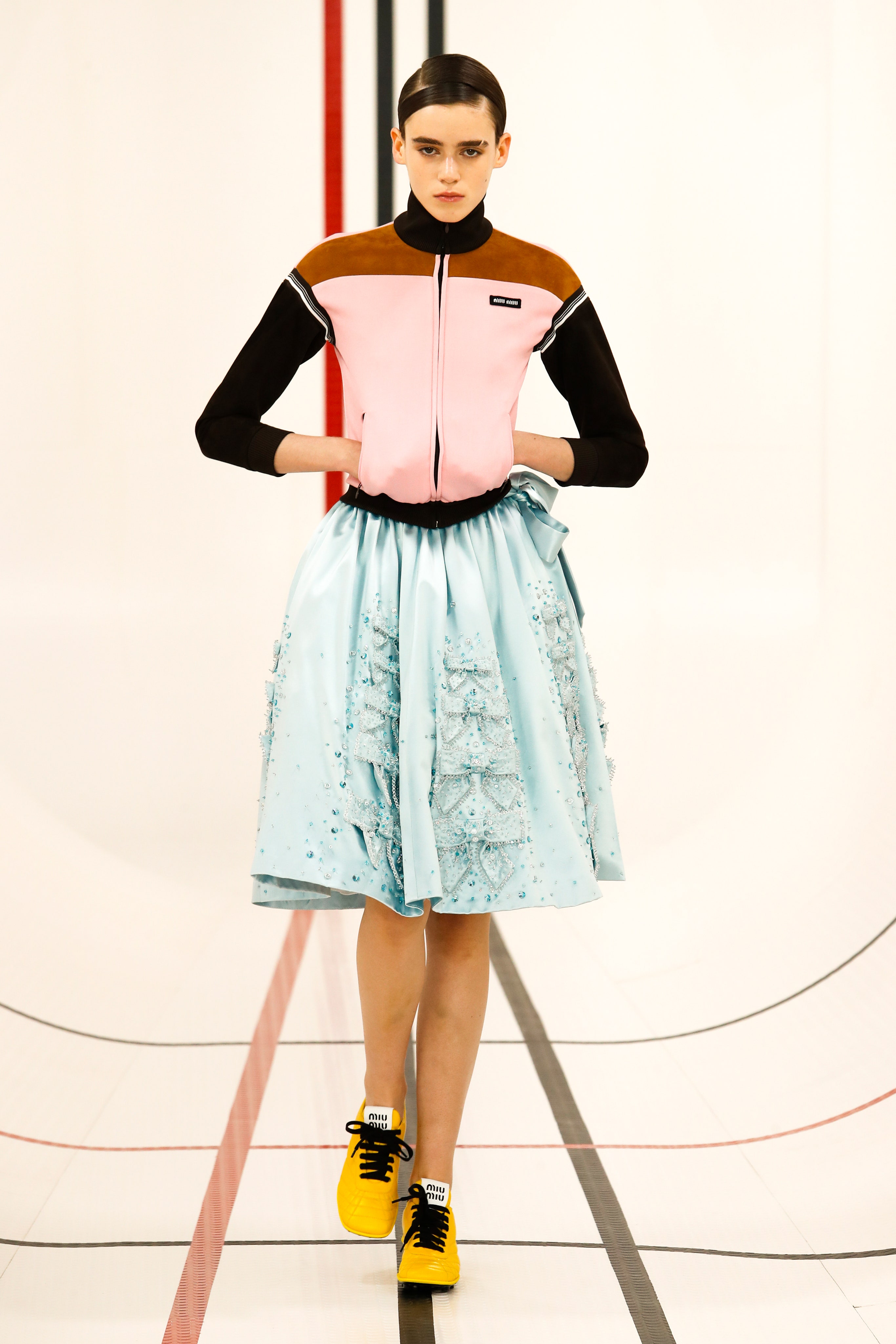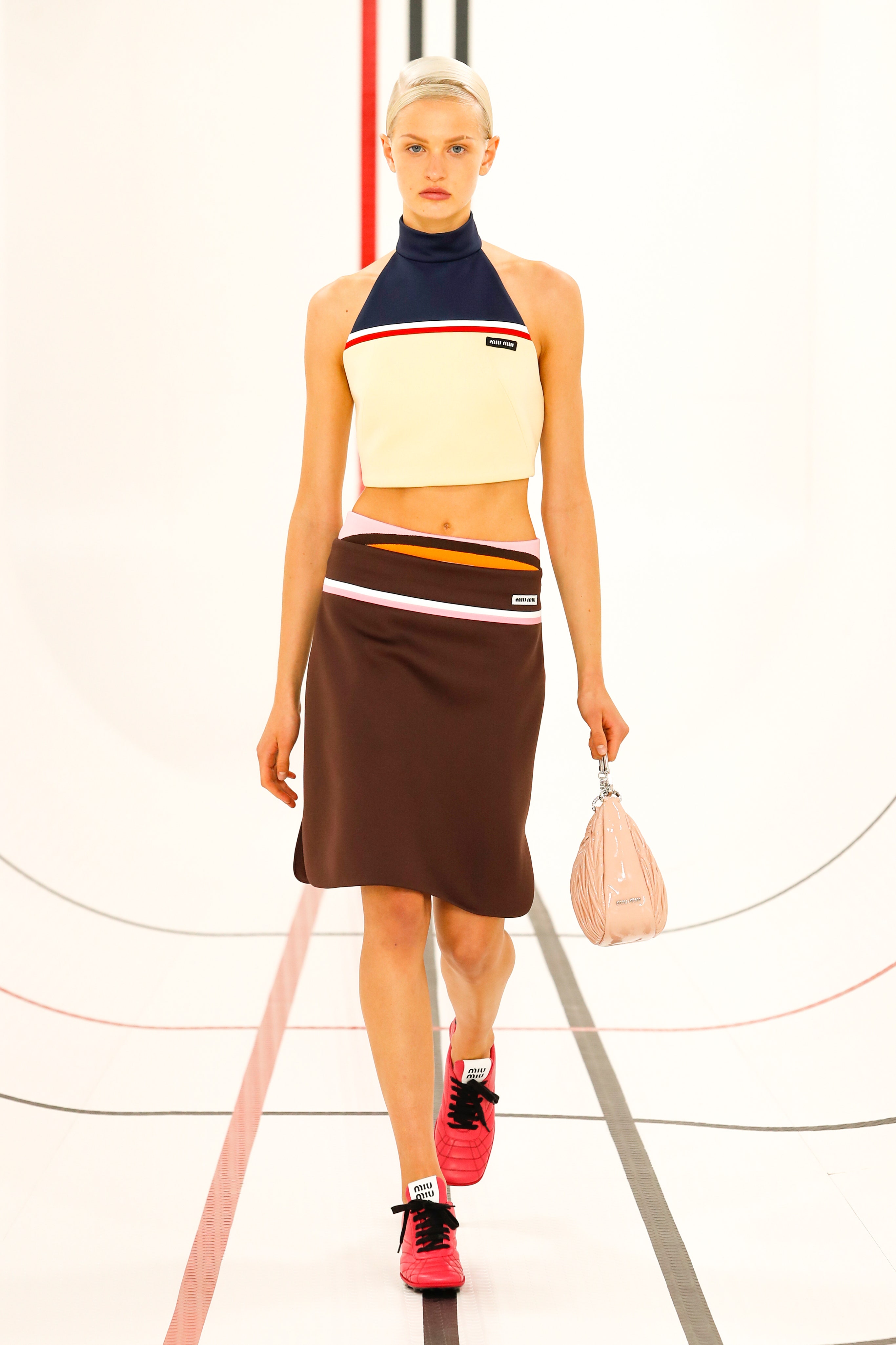 Гардероб будущей весны от Miu Miu сочетает в себе униформенность, ключевую для ДНК бренда, как и в случае с Prada. По мнению дизайнера, носить вещи стоит без особых усилий, изучая себя и идеи, заложенные в каждый визуальный образ. Однако на этот раз Миучча предлагает делать ставку на спорт пуще прежнего.