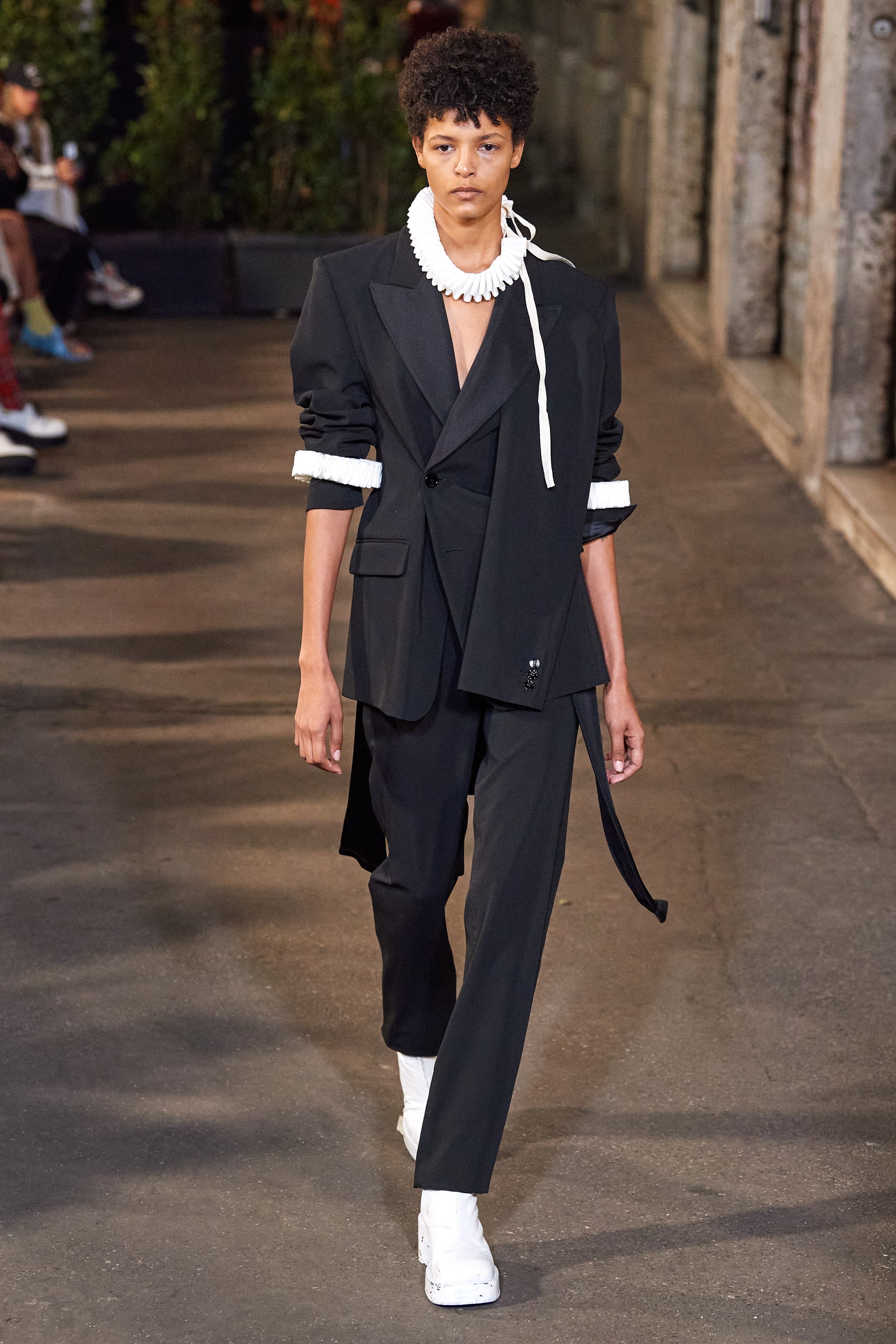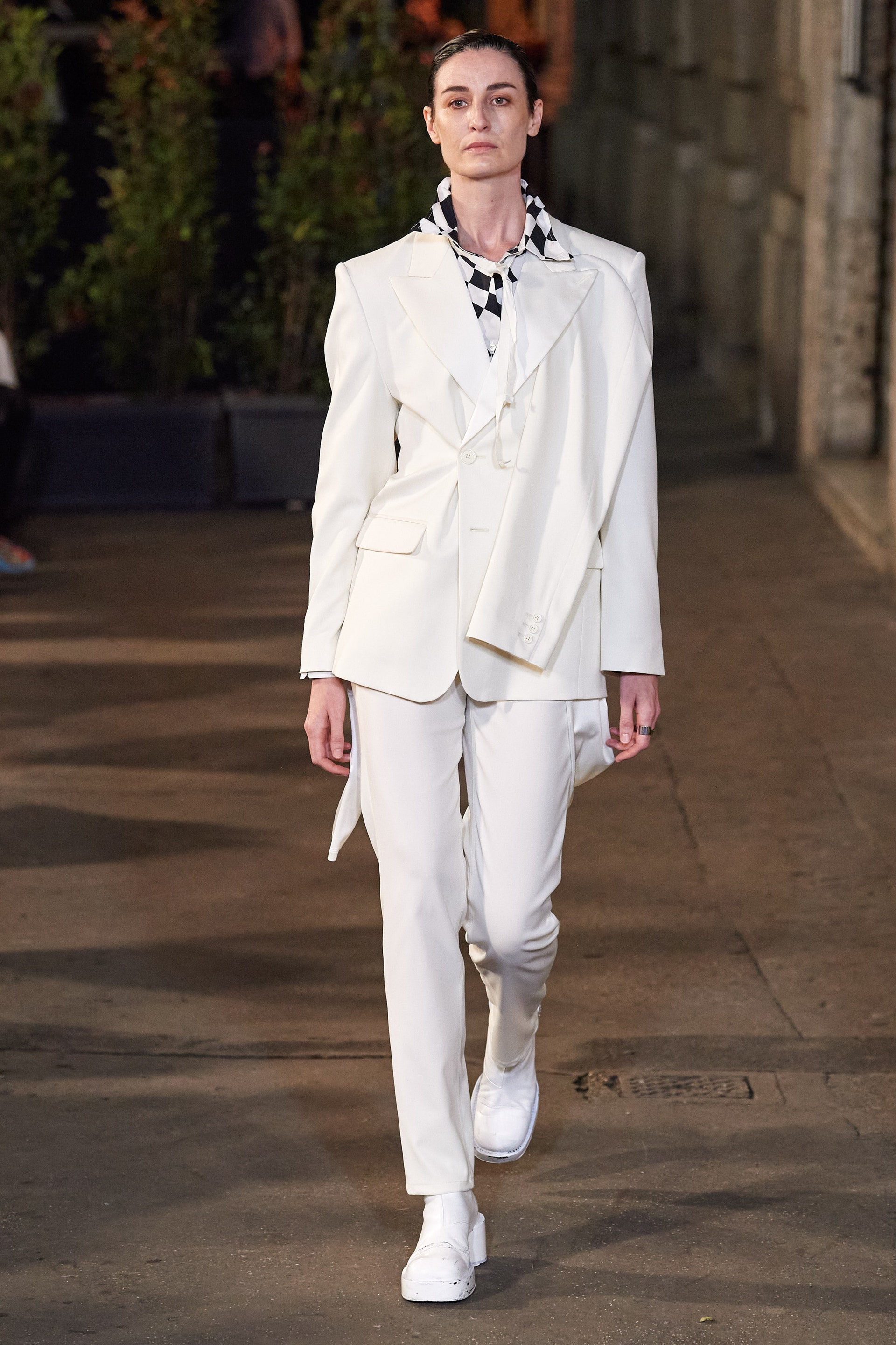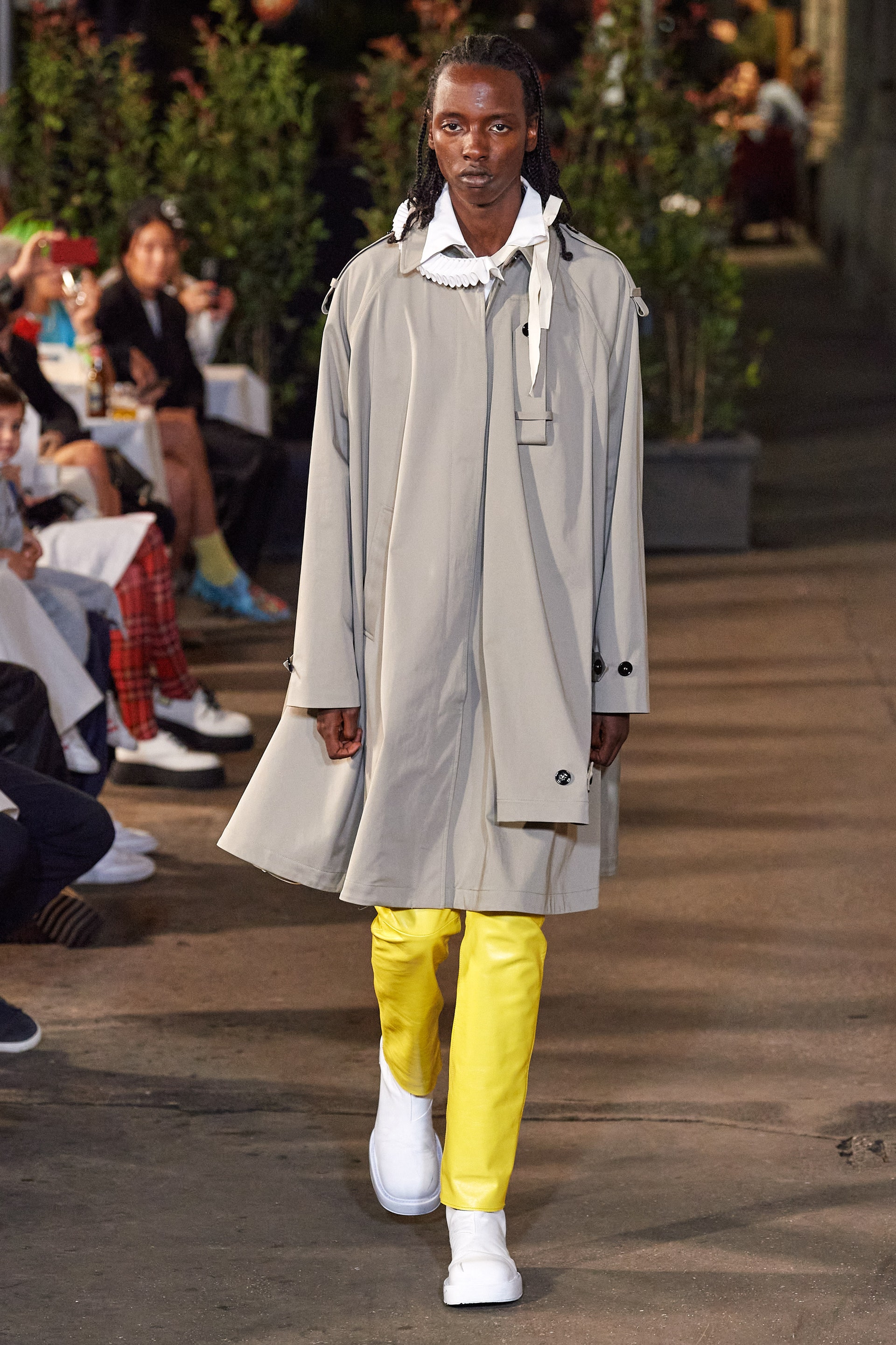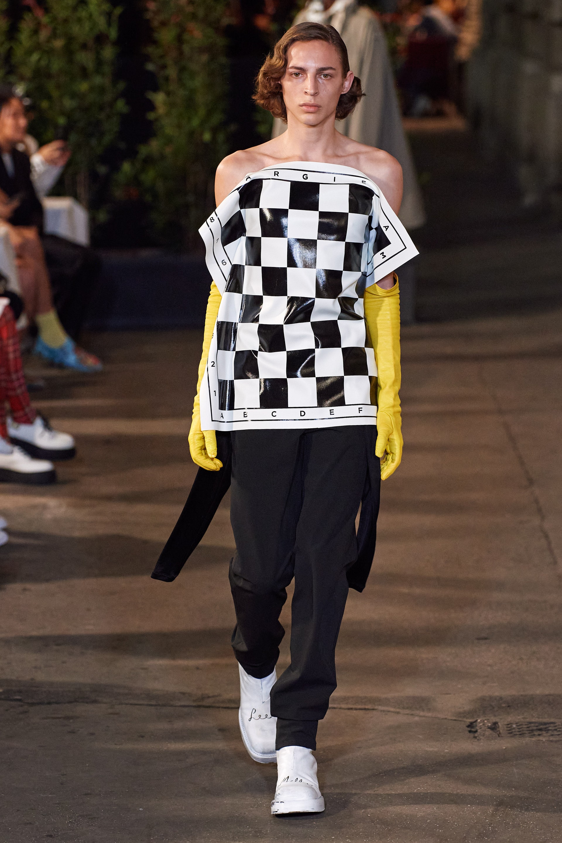Гостей миланского показа угощали коктейлями из джина, бутербродами с топинамбуром и фенхелем и десертом, который состоял из выщербленной яичной скорлупы, заполненной белым шоколадом. Компания молодых французских сюрреалистов обожала ходить в кафе, устраивая там различные выходки, и нетривиальное угощение стало изящной отсылкой к этой практике.