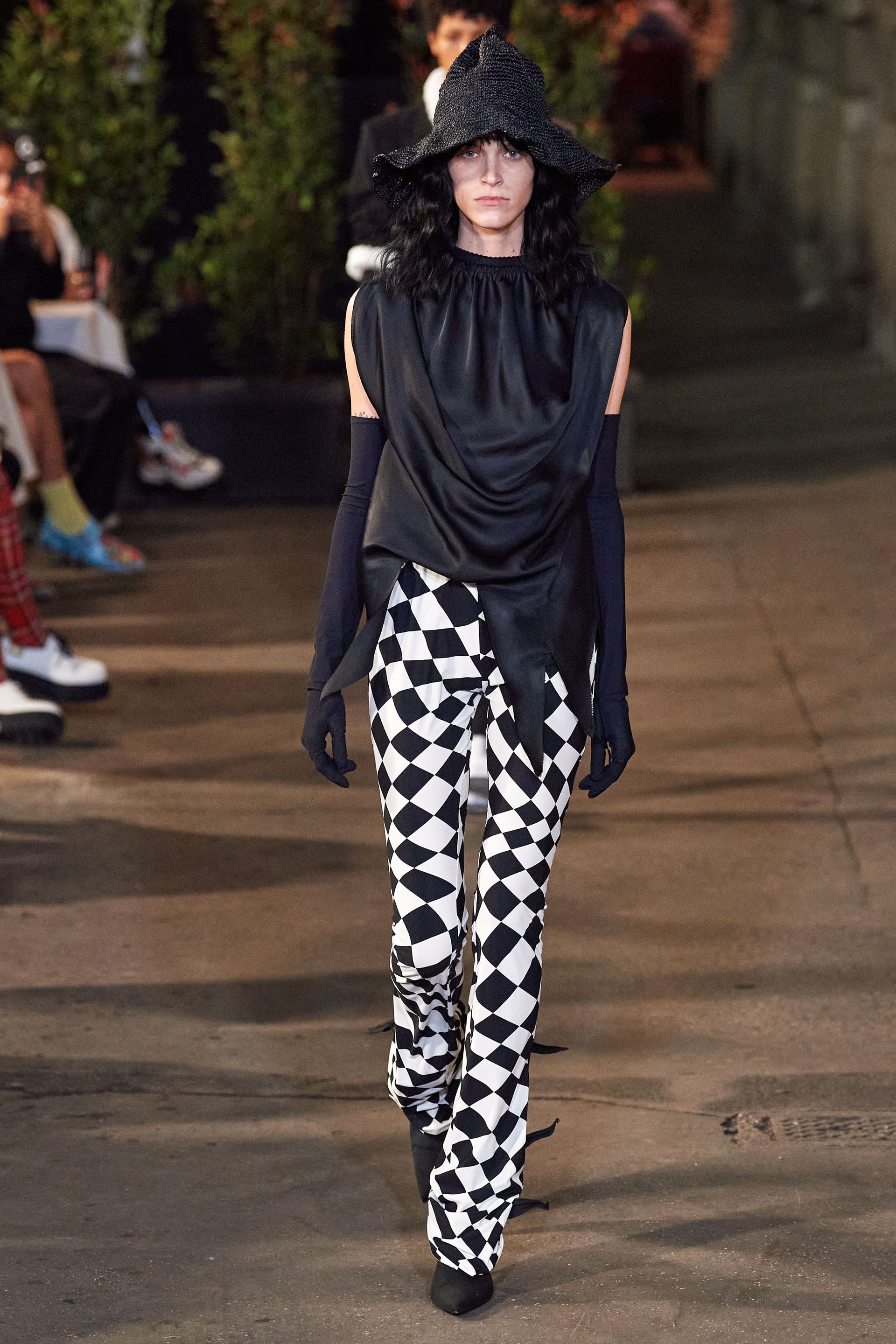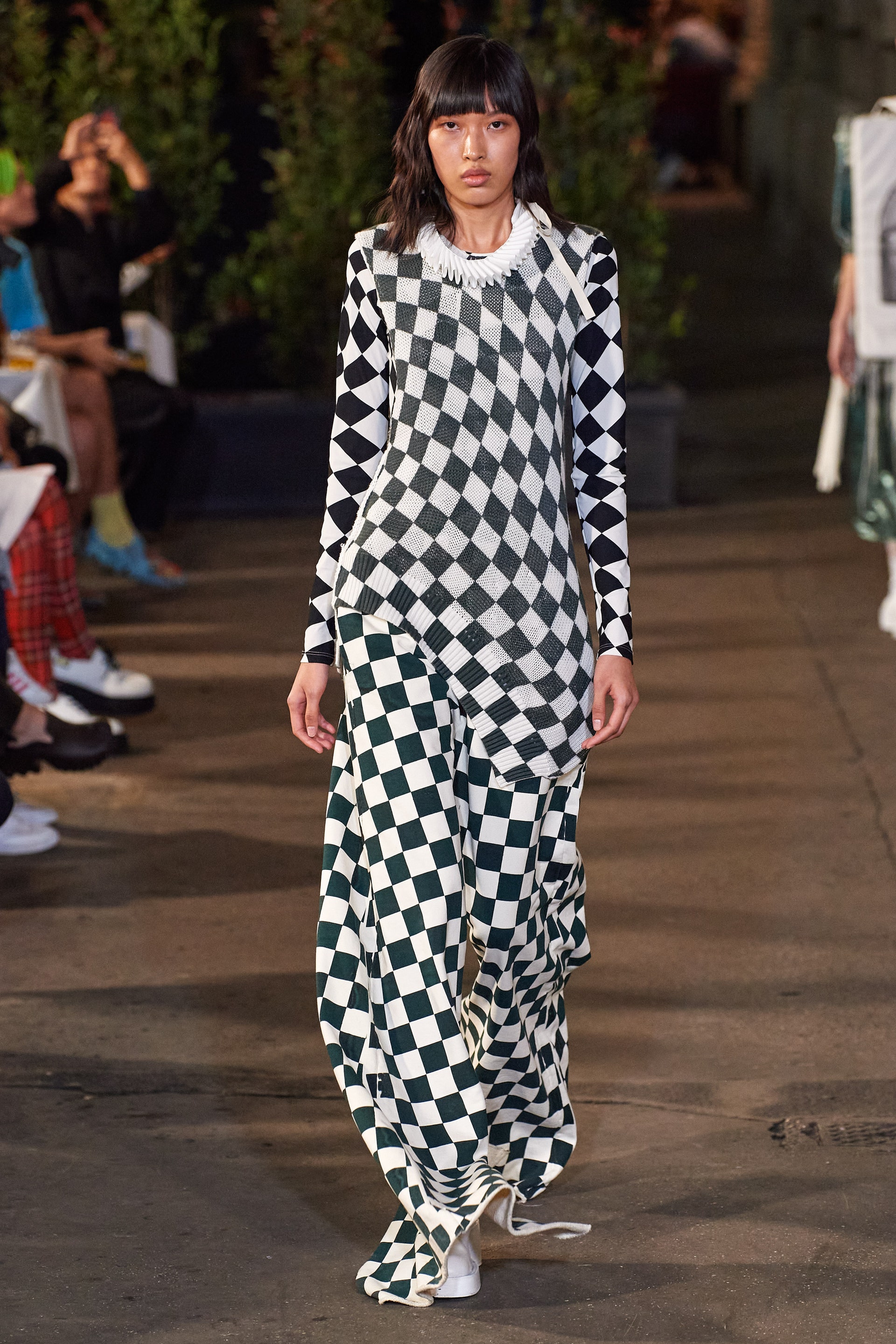 Яркими акцентами в коллекции стали шелковые топы в виде шахматной доски и покрытые шахматным принтом костюмы, которые напоминают о нарядах Клод Каон. Топ-платье в виде паутины навевает ассоциации с сюрреалистической колодой Таро, созданной Кэррингтон. Среди прочего, в коллекции традиционно использованы материалы, имитирующие бумагу, наслоения конструктивных деталей (например, косухи, связанные дополнительными рукавами) и романтические элементы, отсылающие к культурно-художественному наследию (гофрированные воротники-фрез).
