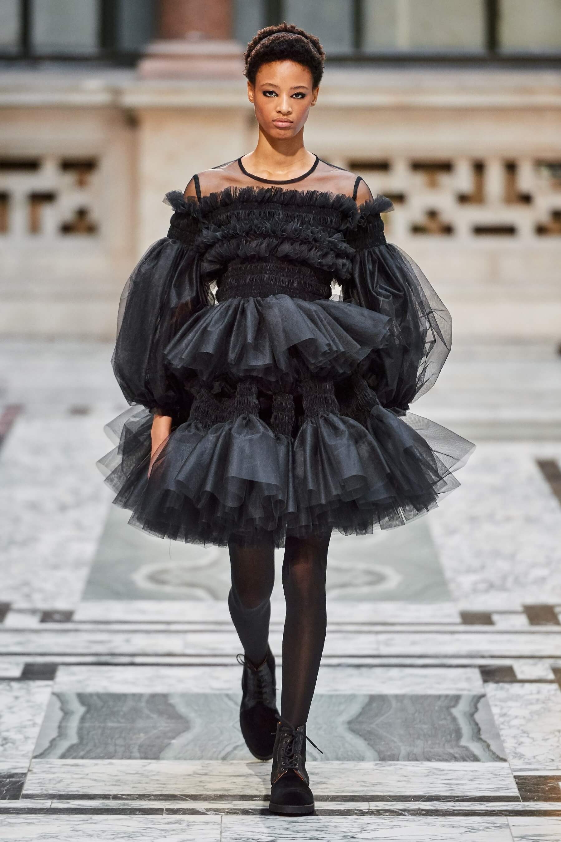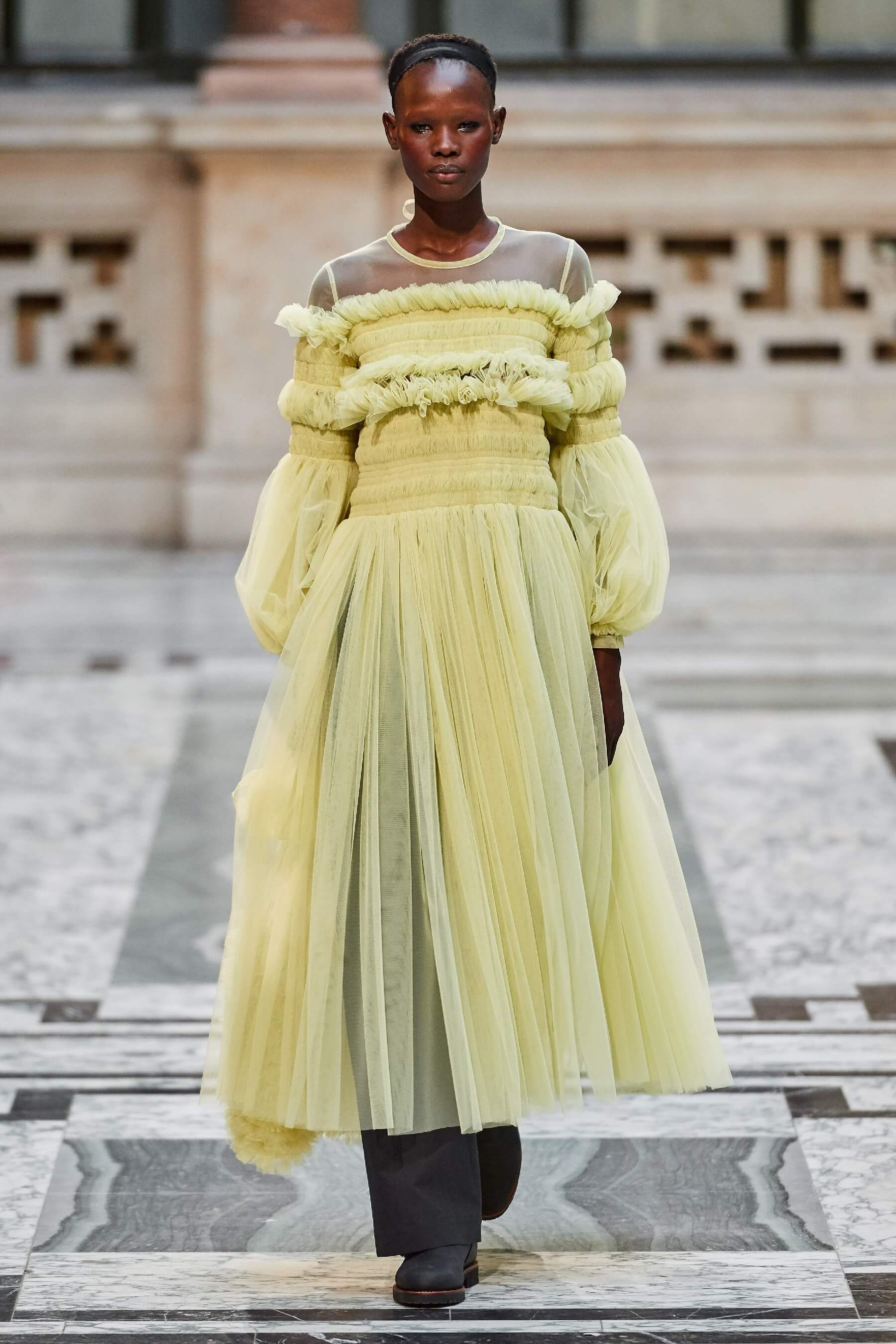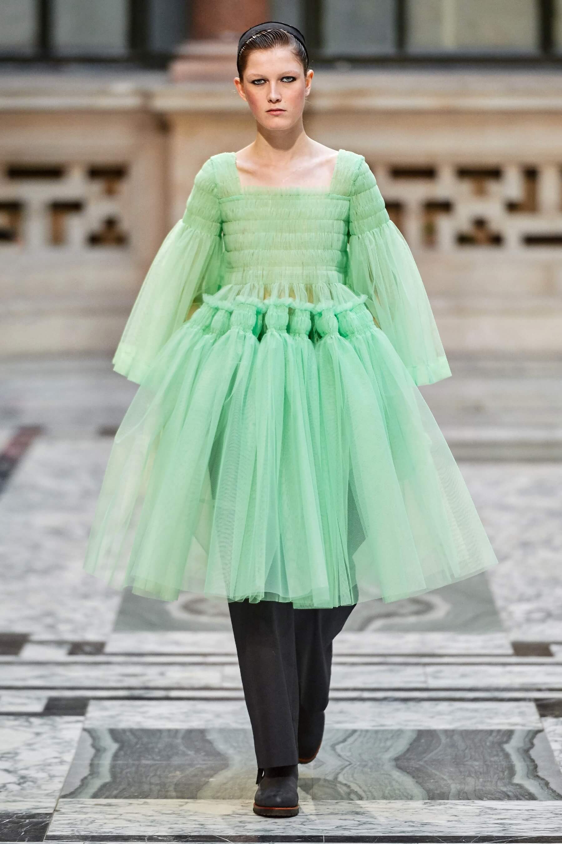 Шелк, рюши, балаклавы и галоши на показе Molly Goddard