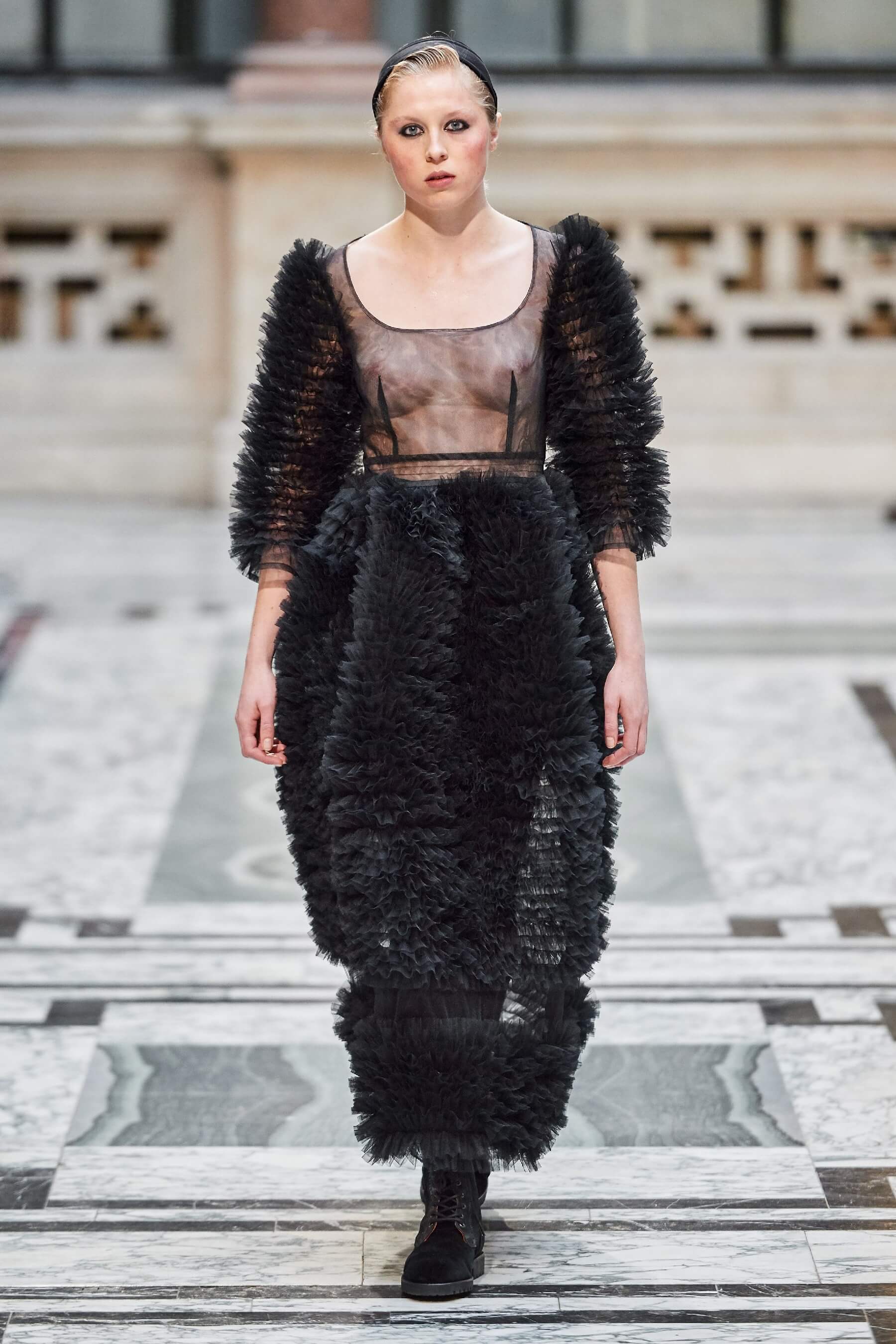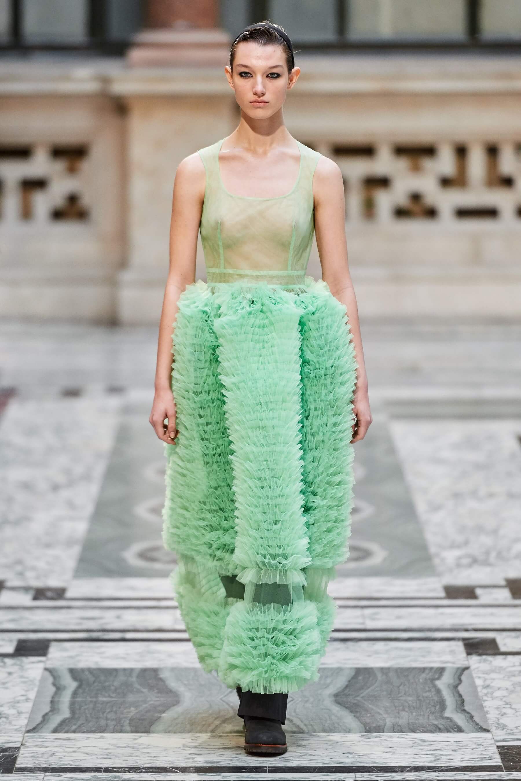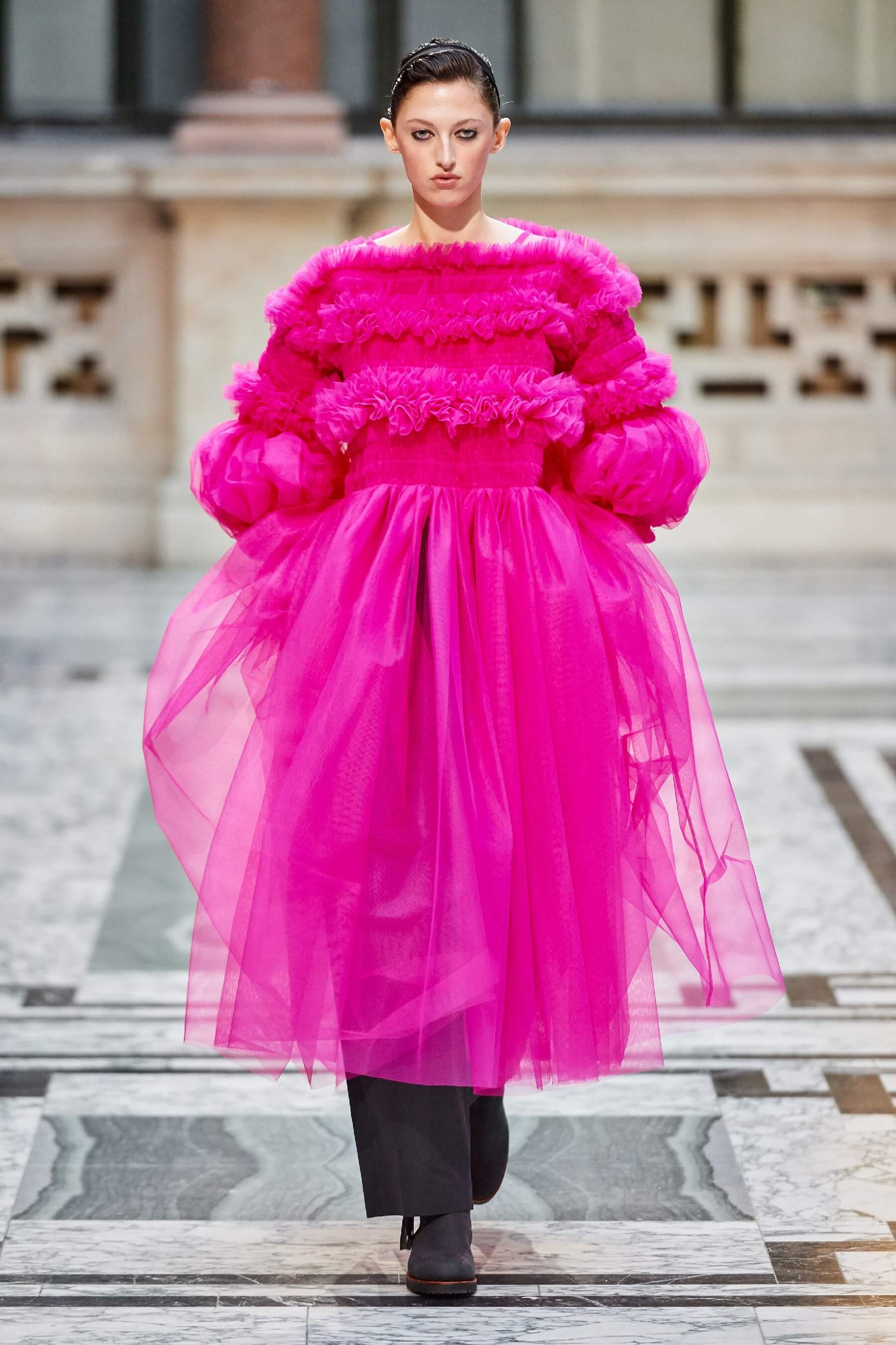Шелк, рюши, балаклавы и галоши на показе Molly Goddard