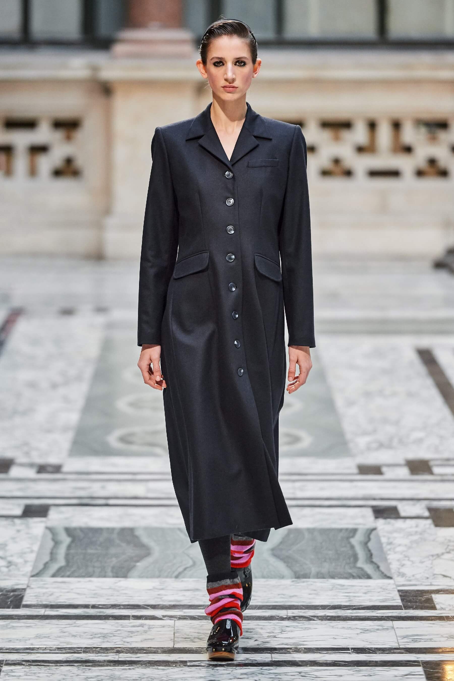 "Одеться на случай шторма" — так дизайнер Молли Годар описала свою коллекцию, показ которой состоялся в Вестминстере. Вдоль подиума были установлены генераторы воздушных потоков, создающие ветреную погоду, — в такой атмосфере объёмные платья, плотные пальто, тёплые балаклавы и прочные галоши с гетрами смотрелись особенно эффектно.
