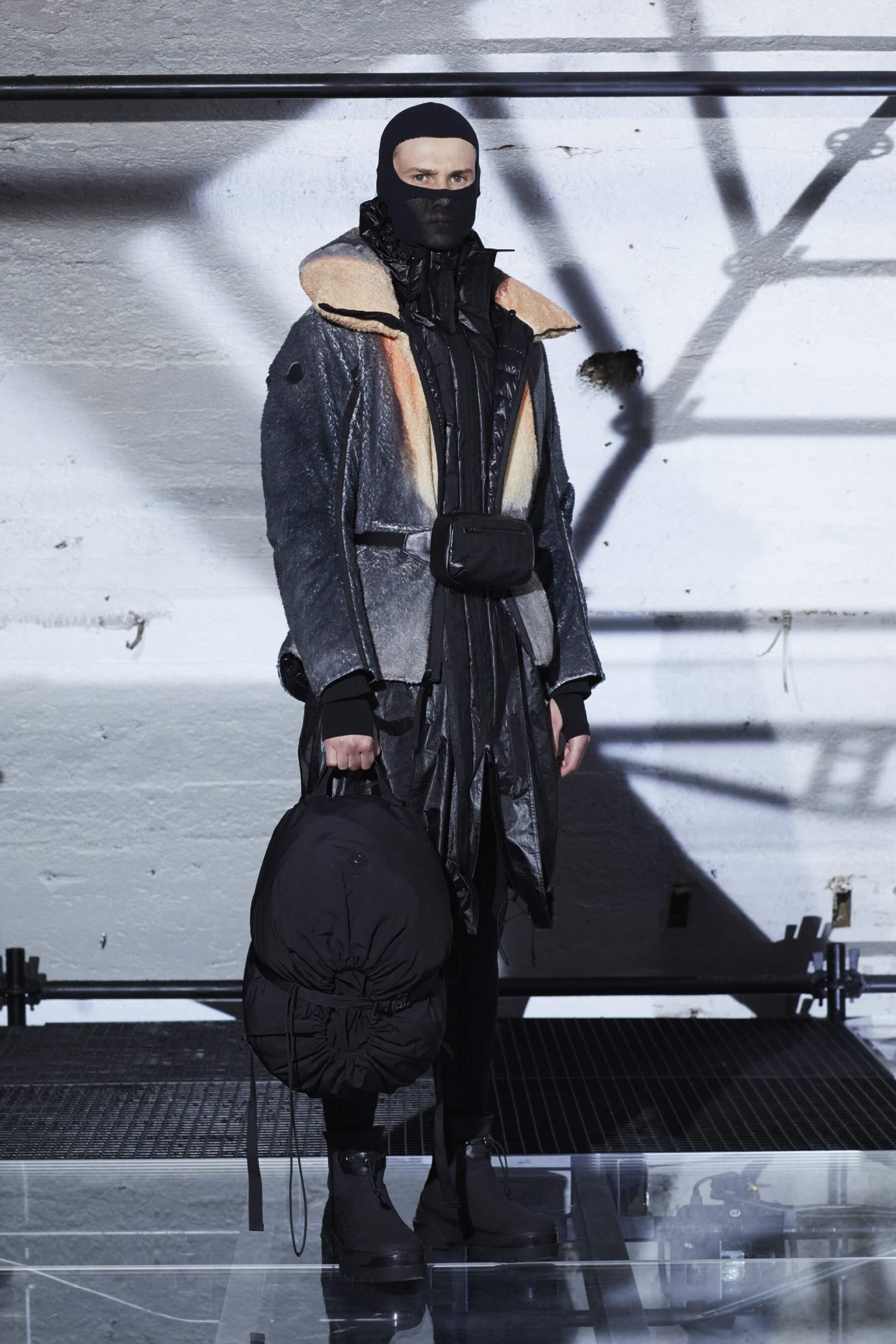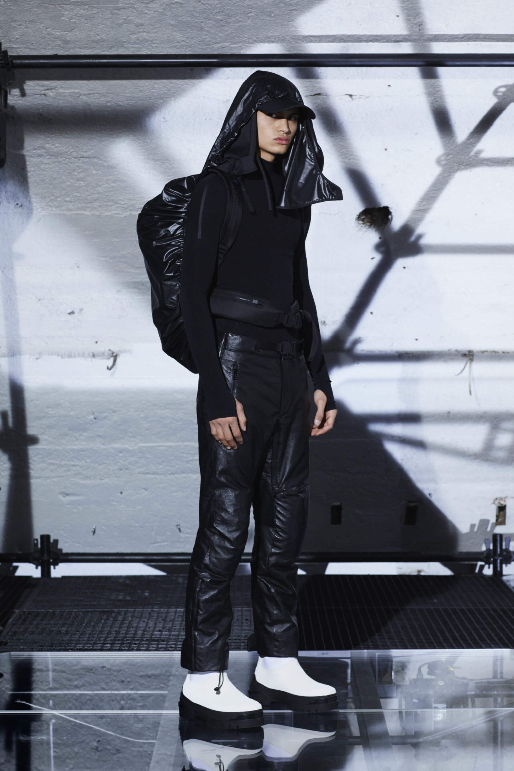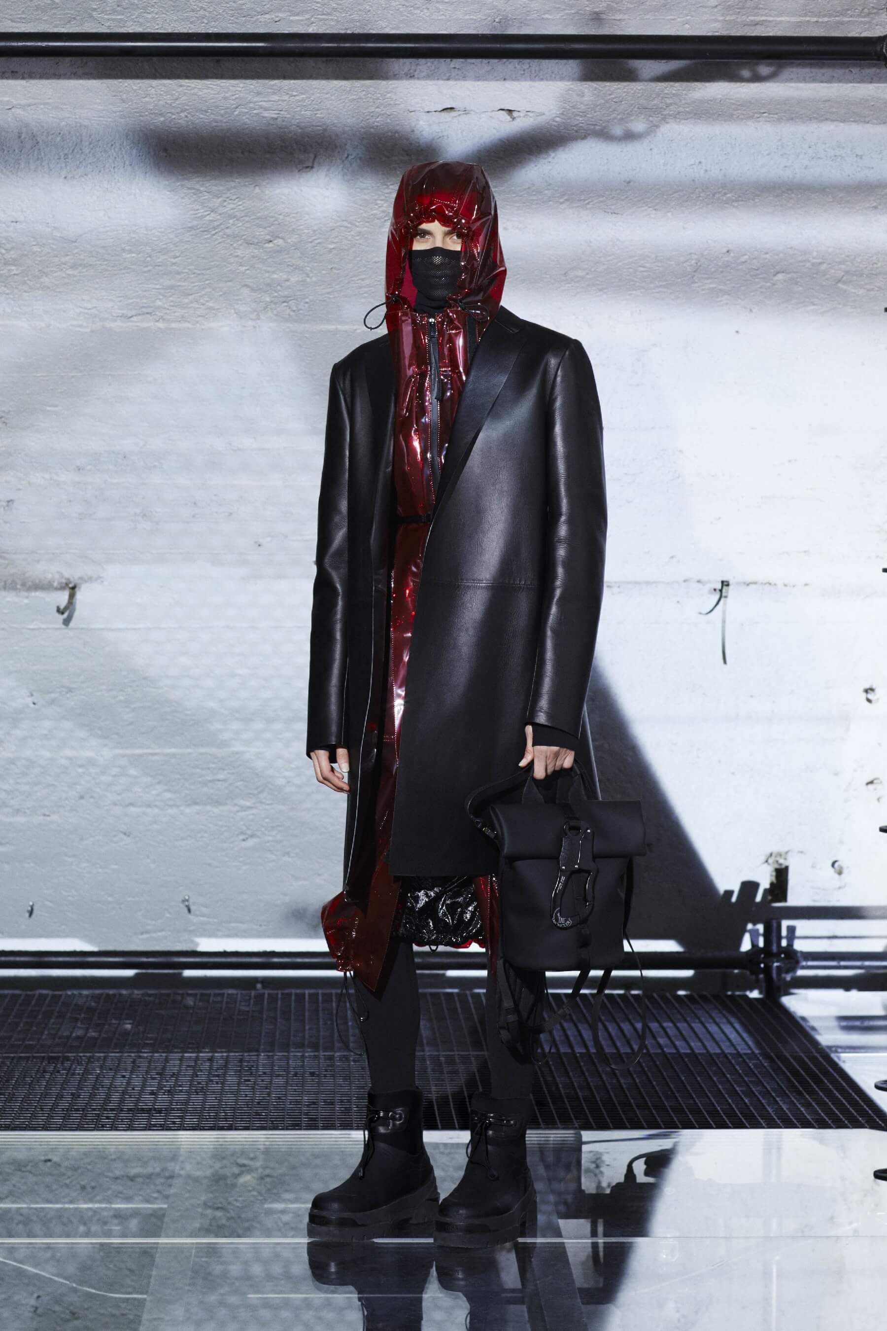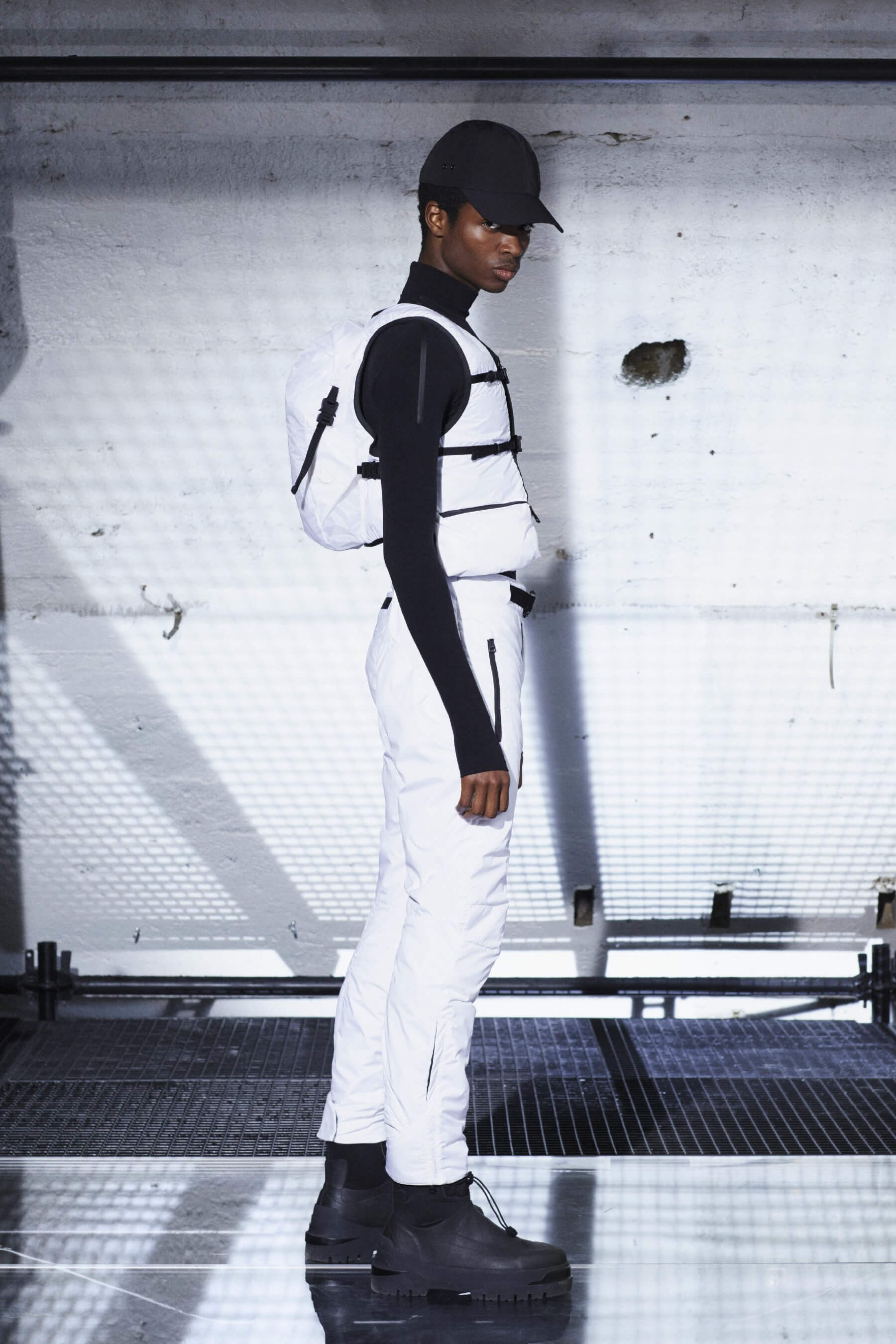 Мэтью Уильямс соединил в своей первой для бренда коллекции экспериментальные ткани и технологии — куртки и жакеты были выполнены из воздушного материала, издающего легкий свист при движении. Дизайнер работал креативным директором Леди Гаги и художественным директором Канье Уэста, после чего продолжает вплетать музыку в своё творчество. Швы на дождевиках были спаяны при помощи ультразвуковой сварки. Также Уильямс обратился к экологичному методу переработки вещей — футболки в коллекции созданы из остатков выкроек для футболок прошлой коллекции Alyx, а легинсы — из переработанных рыболовных сетей. Вещи словно предназначены для активной жизни в экстремальных условиях: они оснащены карабинами, крючками и будто страховочными перетяжками.