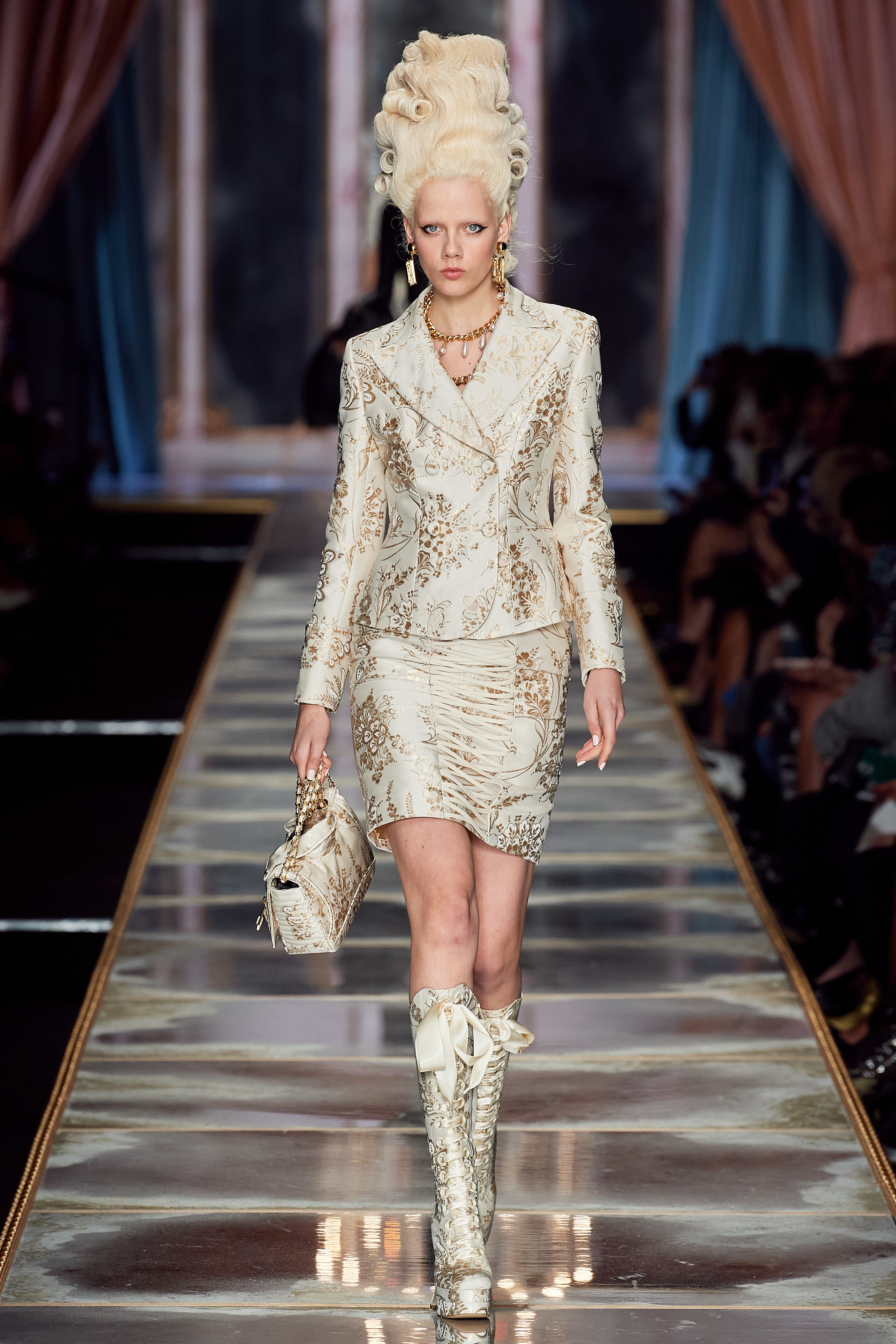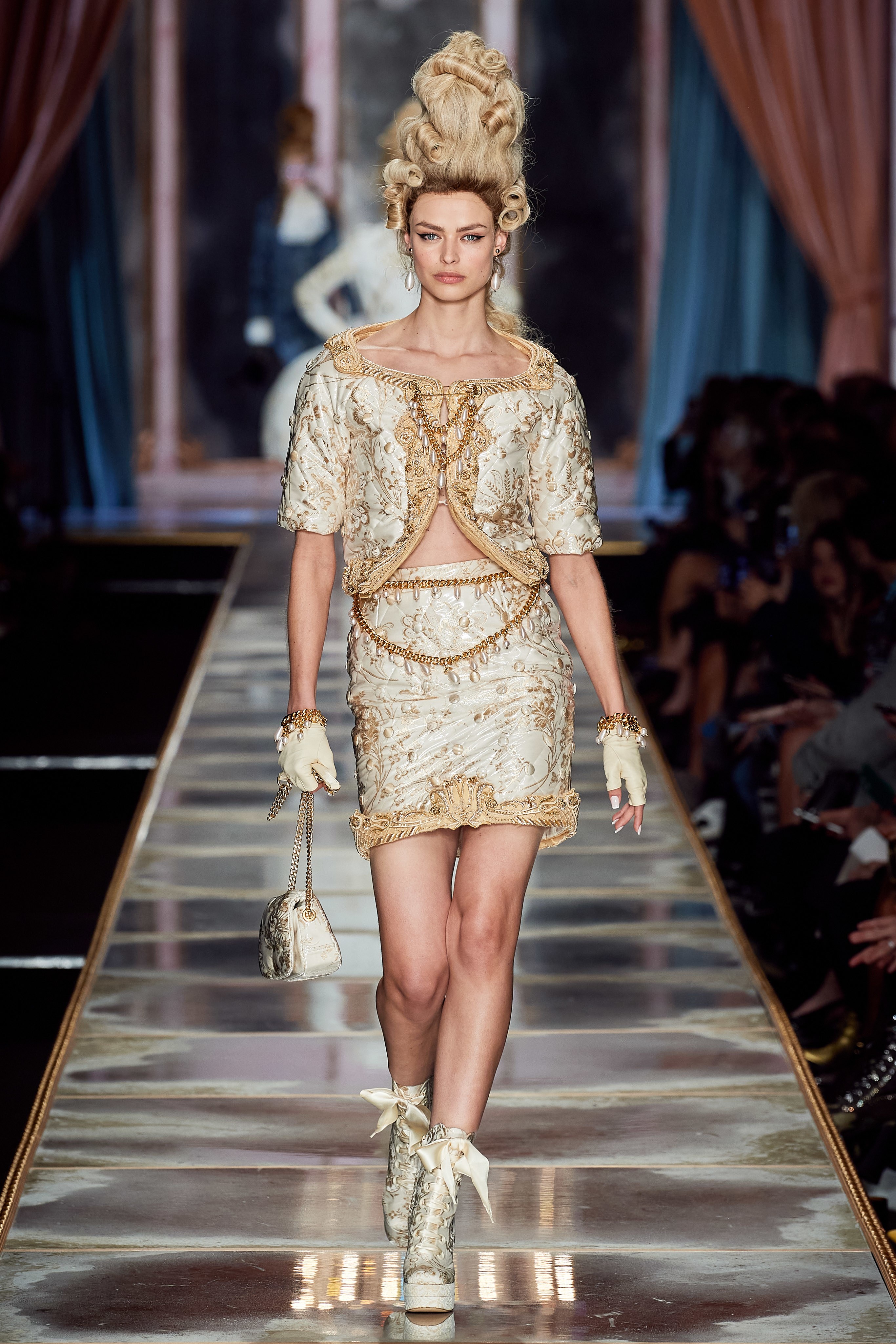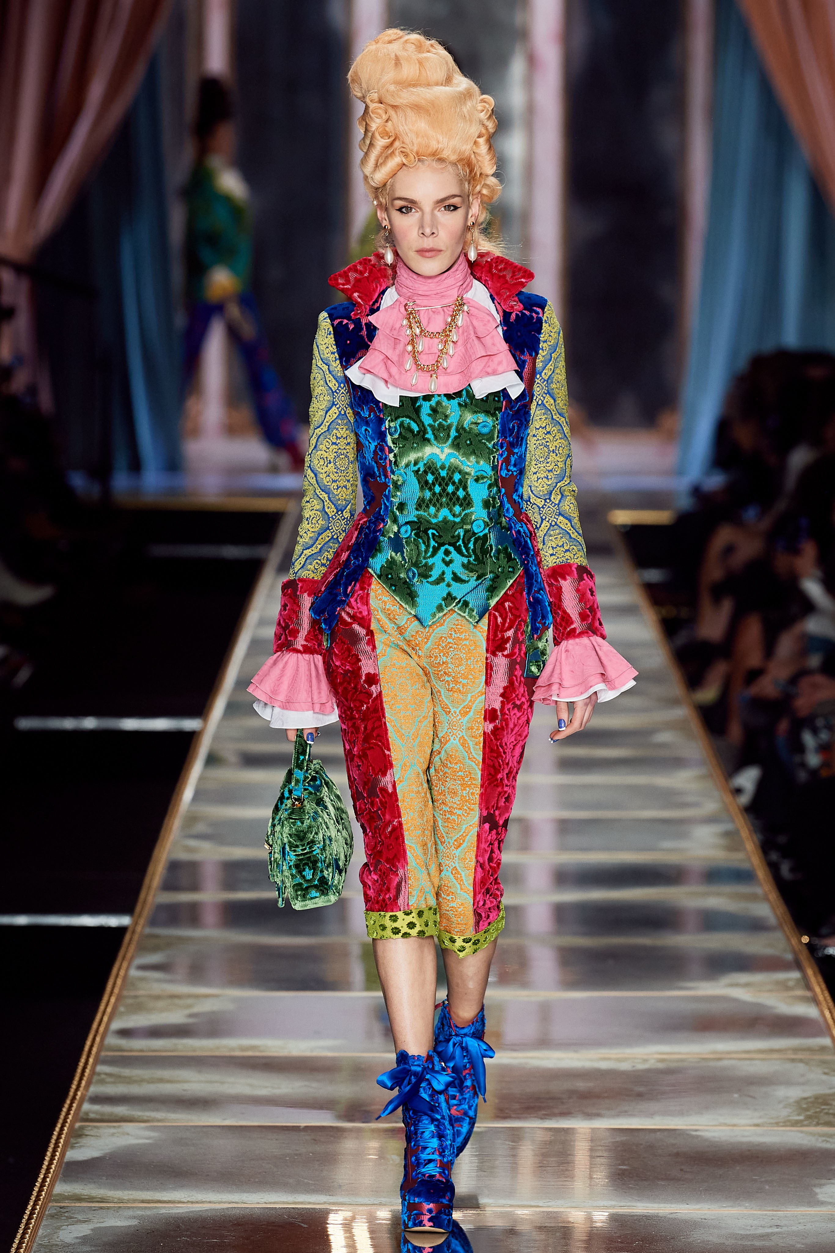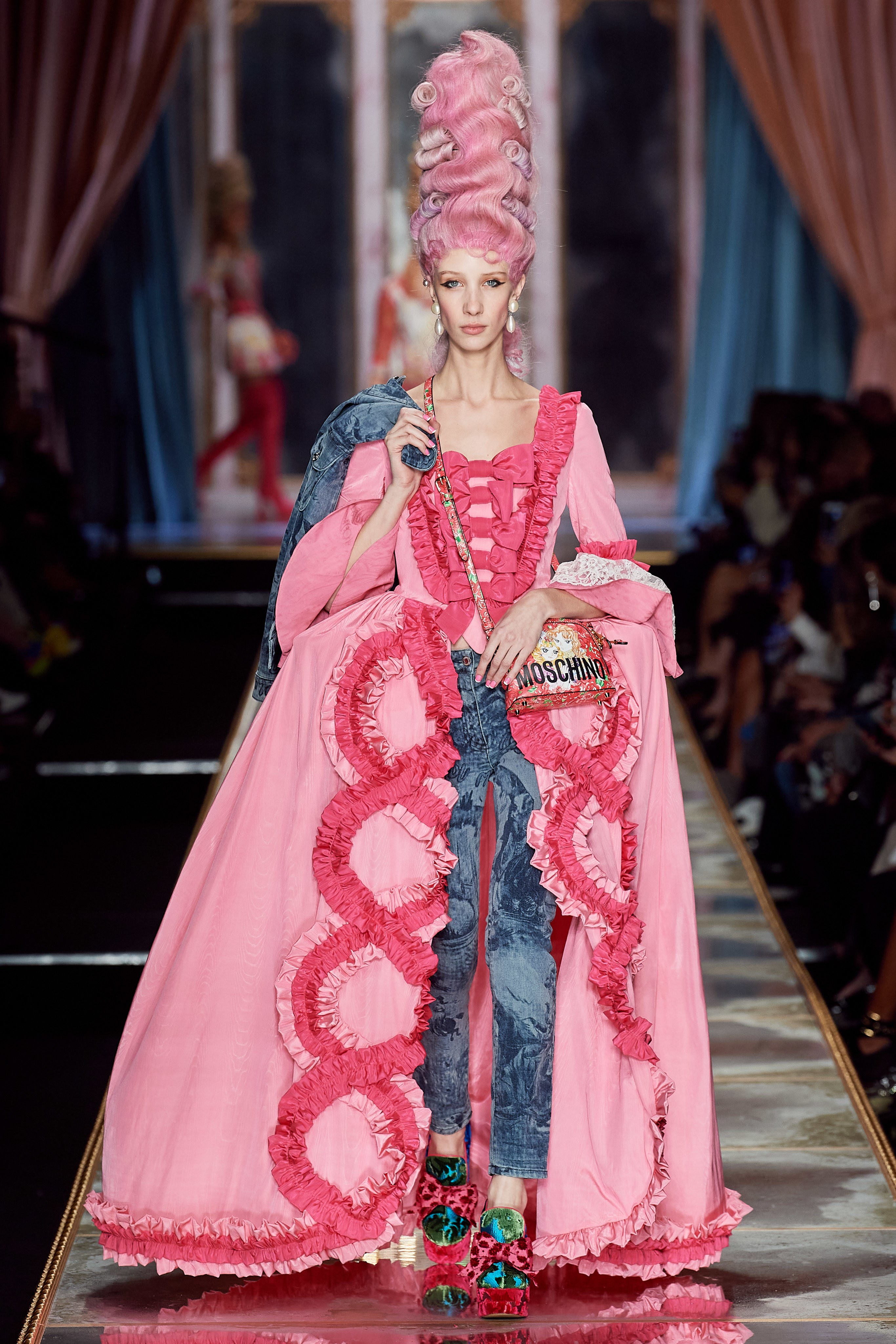 В Милане прошел показ дома Moschino. На этот раз фантазёр Джереми Скотт вдохновился периодом, предшествовавшим Великой Французской революции, — правлением Марии-Антуанетты. Платье самой очаровательной королевы Европы стало главным референсом к образам коллекции.