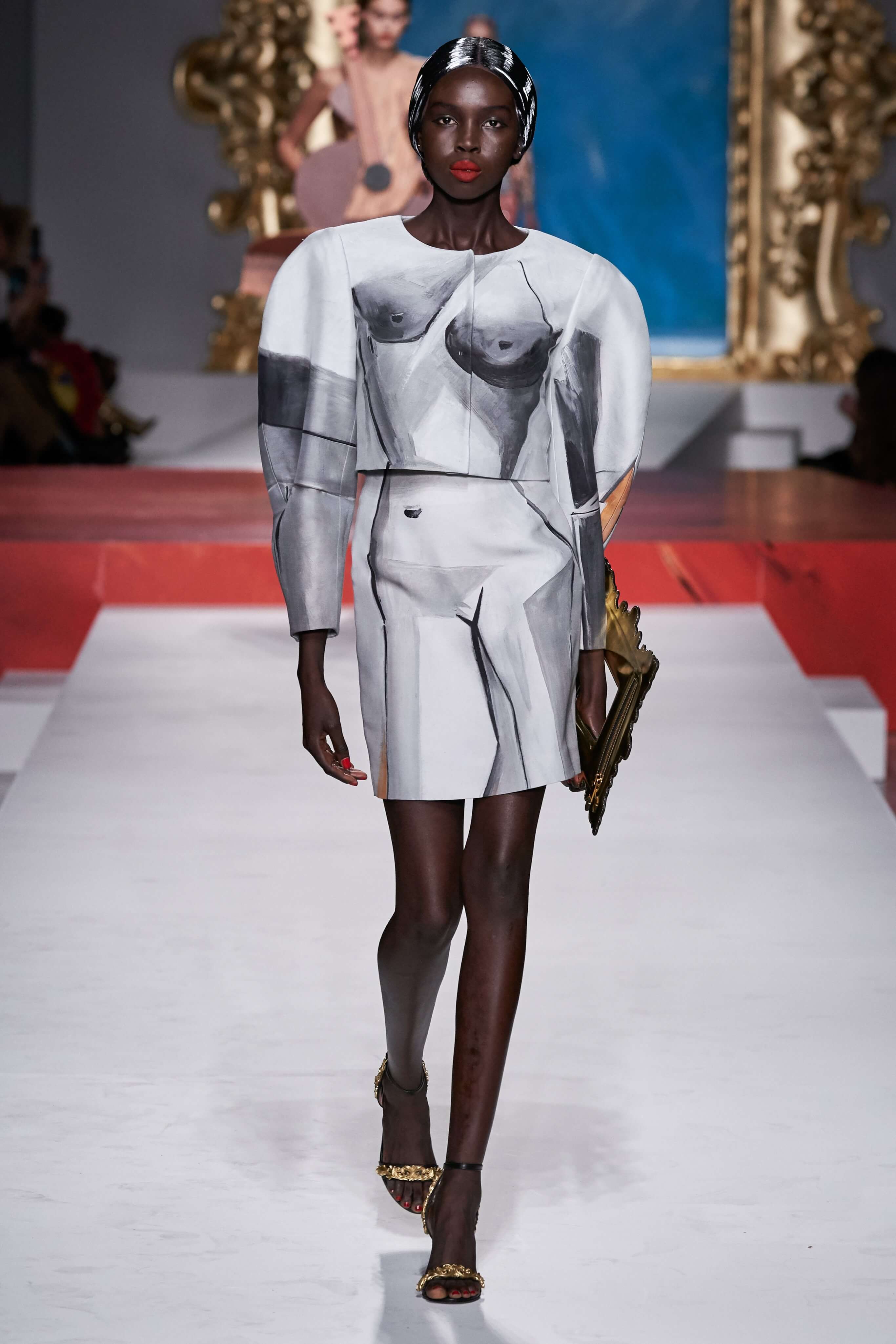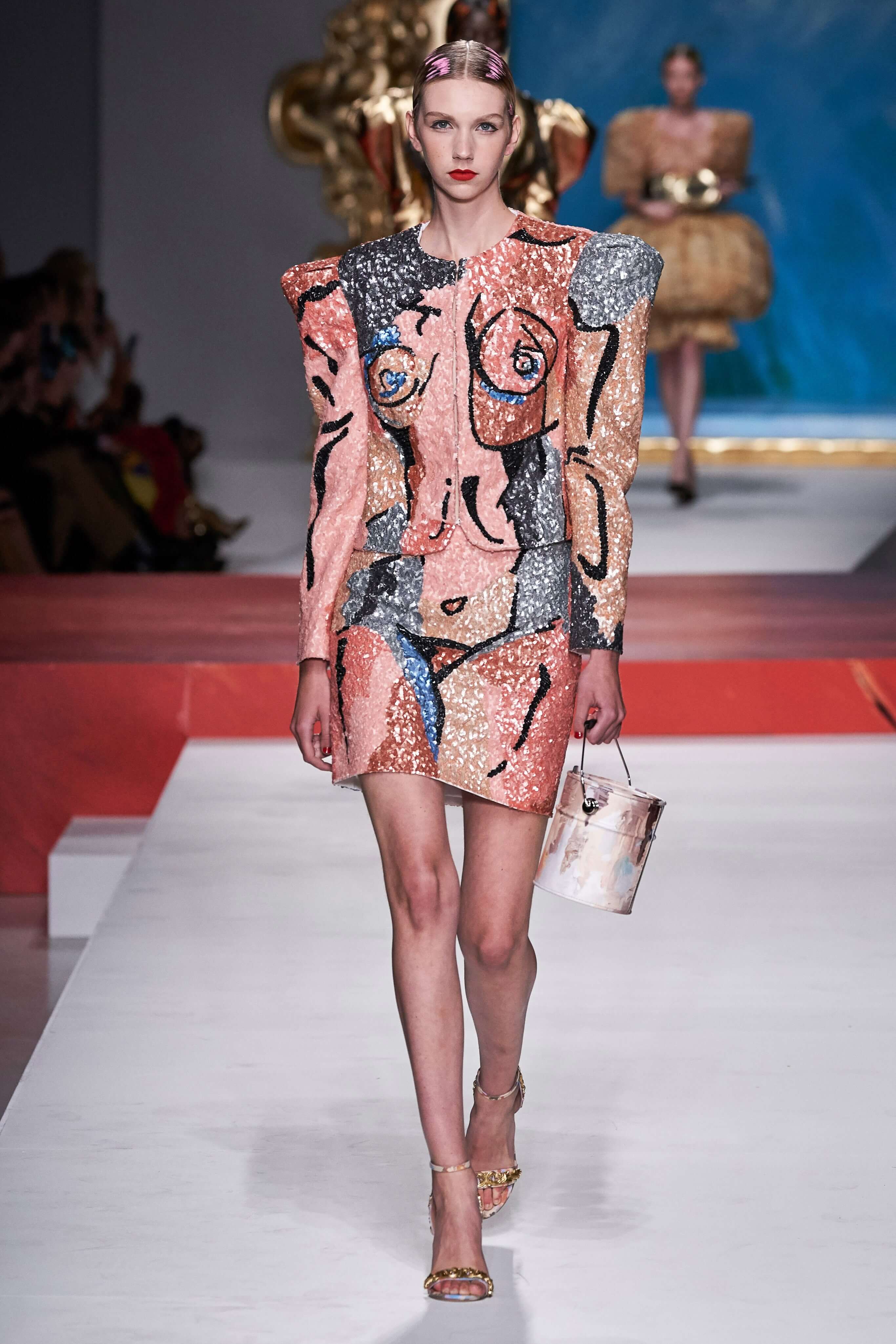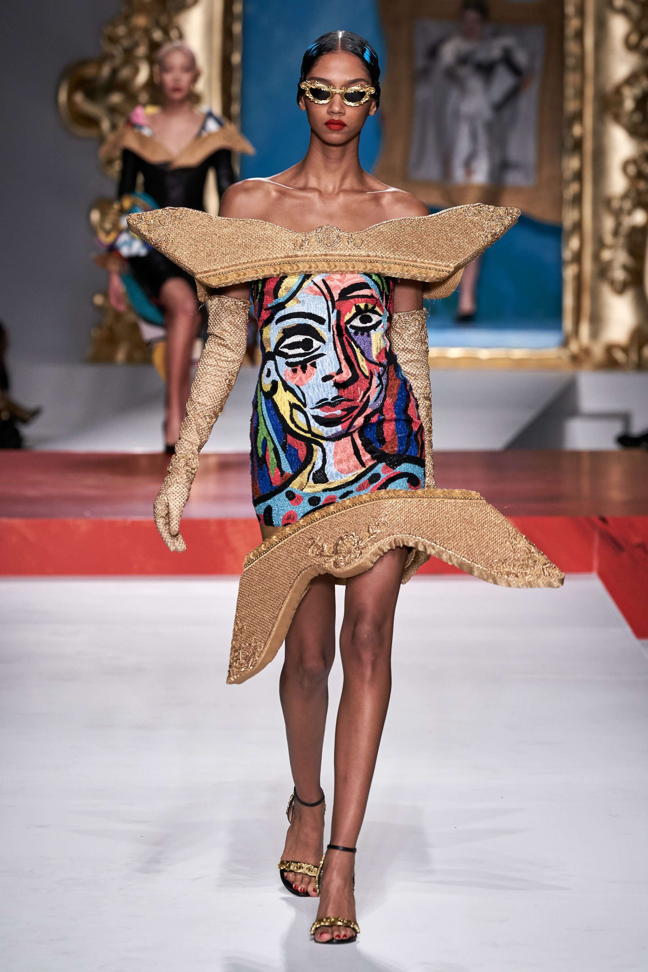 Одна из самых красивых коллекций Скотта, эта весенняя коллекция напомнила другой его показ — с "нарисованными" платьями в 2017 году. Гротескные силуэты, эклектичное смешение мотивов полотен художника делают коллекцию зрелищной, эксцентричной и беспредельно интересной — все платья и костюмы тут же хочется представить на красной дорожке, на борту космического корабля или в фантастическом сне. Самым эффектным стал выход модели в свадебном платье черного цвета с изображением скелета и черепом, венчающим фату. В вещах Джереми Скотта угадывается испанская чувственность, драматическая утонченность и несменная легкая ироничность, присущая творениям дизайнера и самого Пикассо.