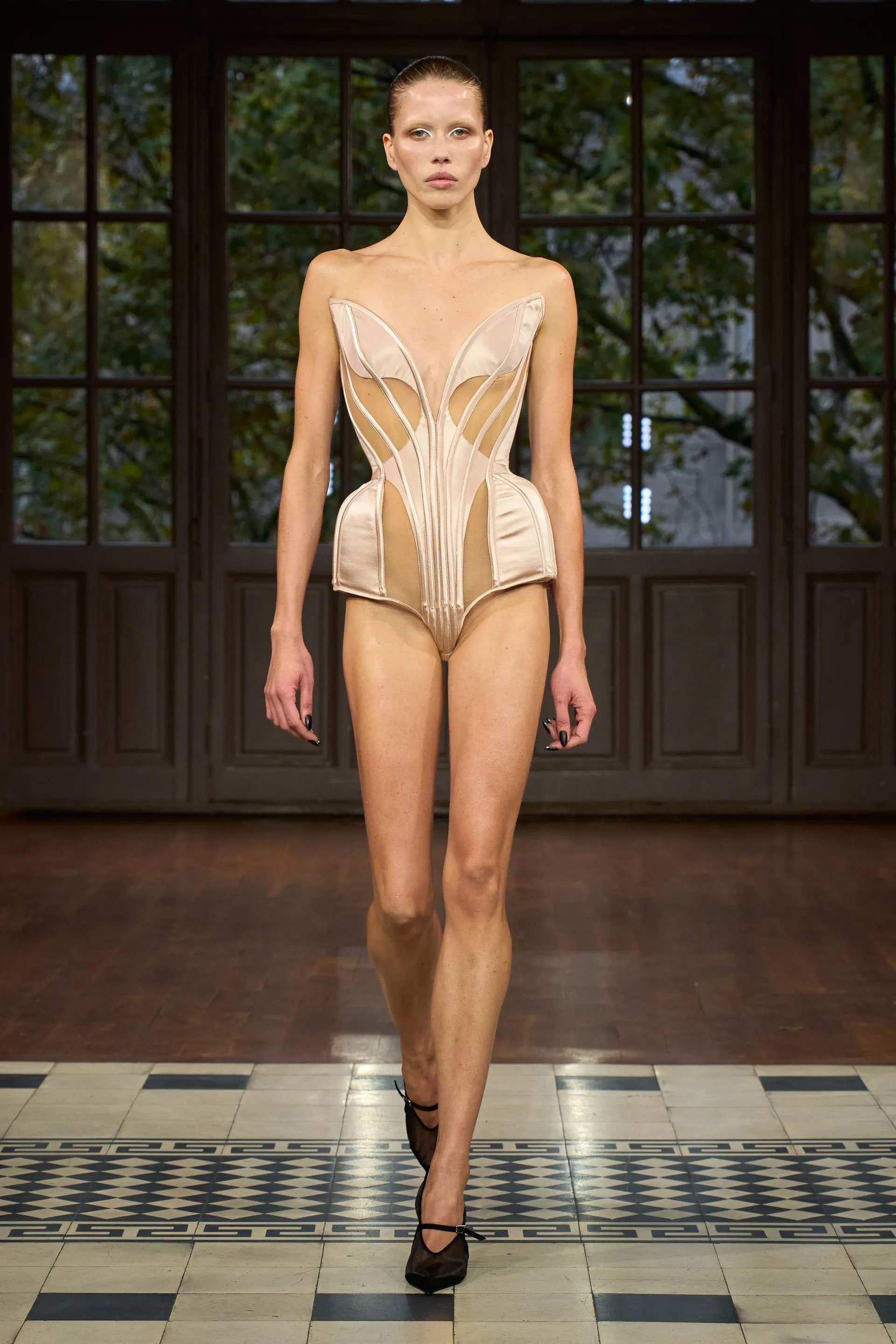 Основою й головним натхненням для колекції весна-літо 2025 стали квіти. Проте зовсім не ті, котрі спадають на думку з іронічною цитатою Міранди Прістлі в «Диявол носить Prada». Як у почерку Тьєрі Мюглера, так і в баченні Кейсі Кадволладера, їхня ніжність, витончена жіночність набуває гостроти й сили.