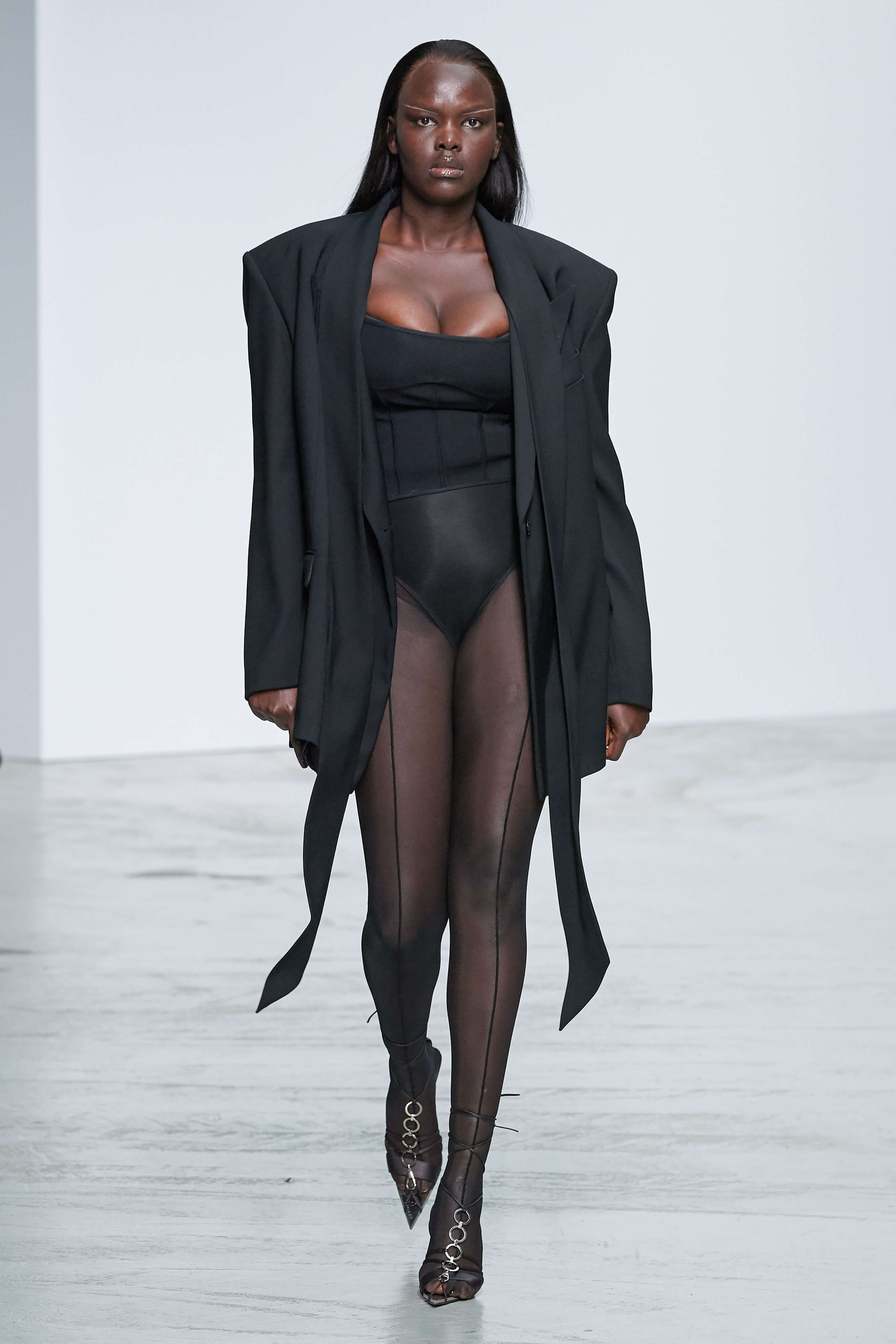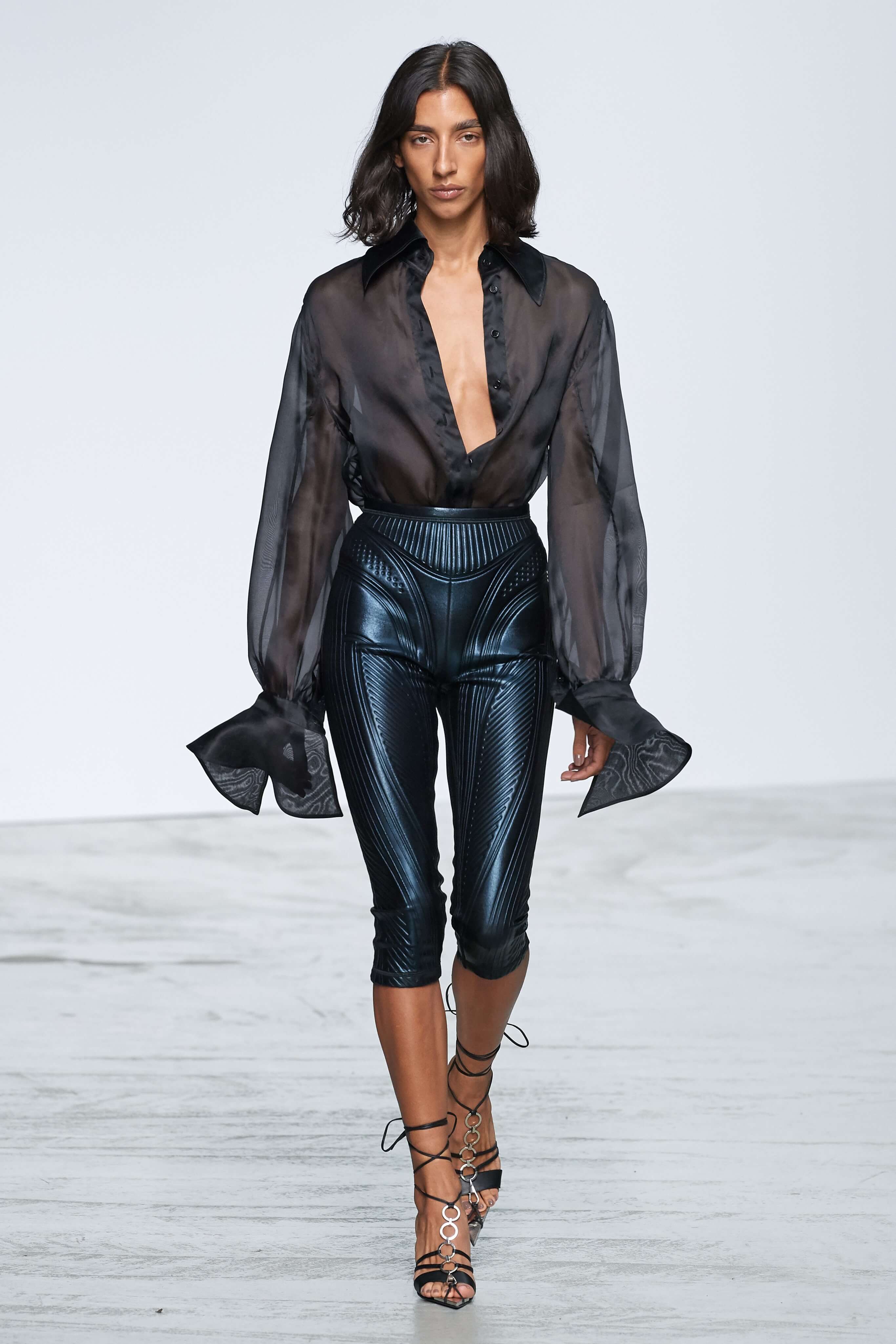 Креативный директор Mugler Кейси Кедуолладер с глубоким почтением к творчеству Тьери Мюглера препарирует эстетические коды дома и задаёт новую специфику, привнося своё видение в традиции бренда. И тем не менее в новом сезоне магия Mugler, похоже, окутала ум дизайнера мистическим туманом и заставила создать голема. Ну не то чтобы голема, но коллекцию, поразительно точно отображающую самого Тьери. Квинтэссенция острой, соблазнительной эксцентрики, которая, с одной стороны, "не от мира сего", с другой — для каждого на этой земле.