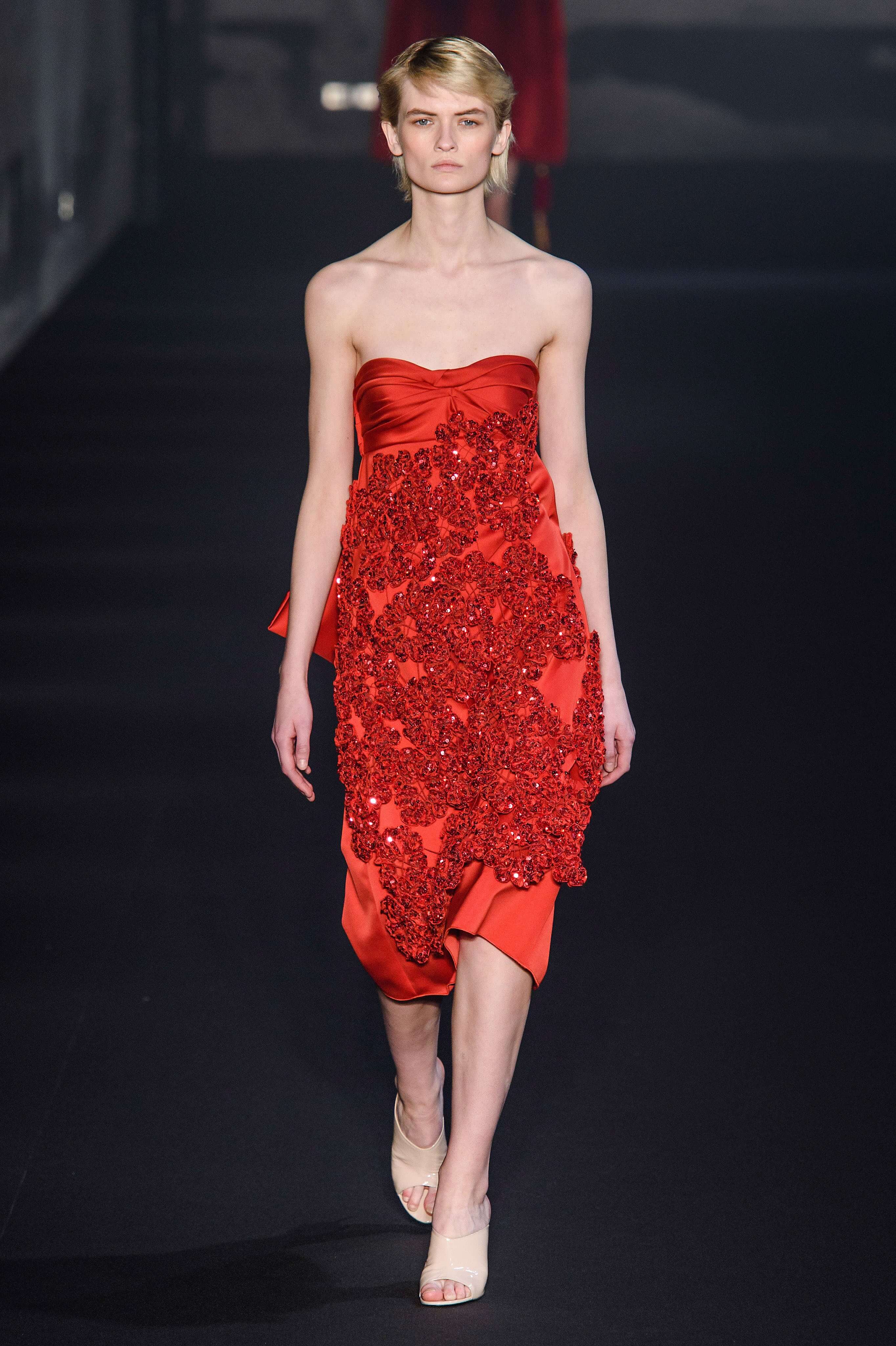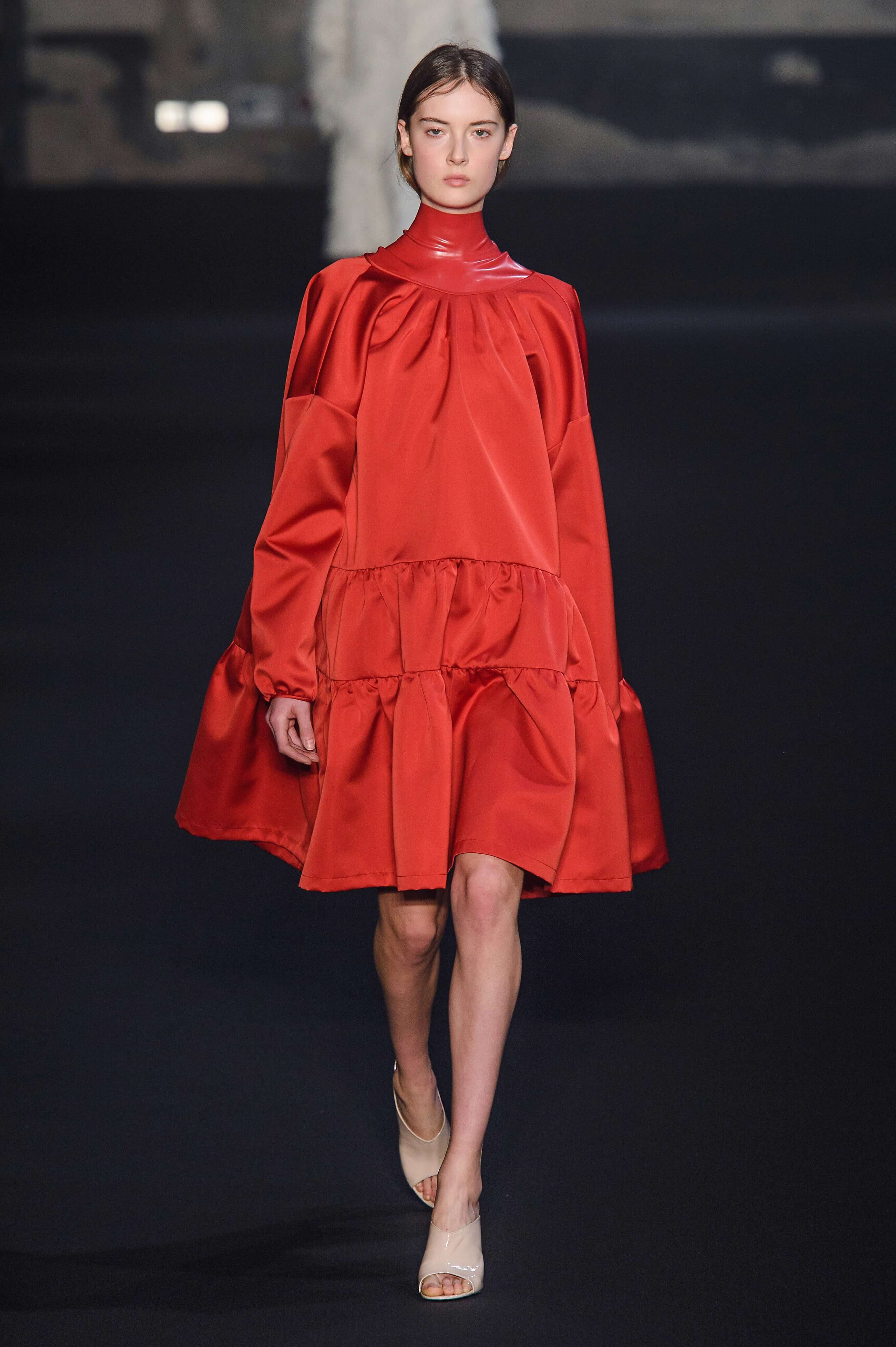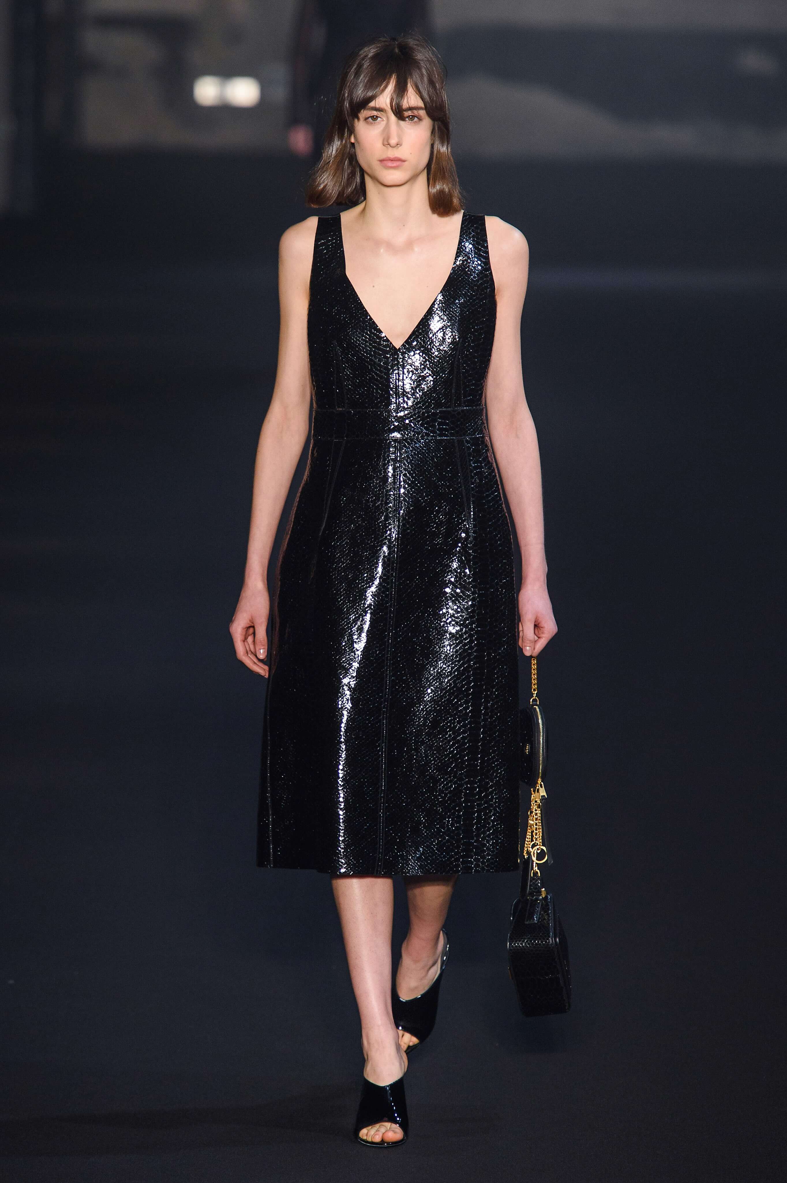 На первый взгляд коллекция кажется нарядным дополнением к офисному гардеробу: классические силуэты, спокойные цвета (черный, белый, красный и все оттенки коричневого — от бежа до темной горчицы), платья-футляры в комбинации с брюками.