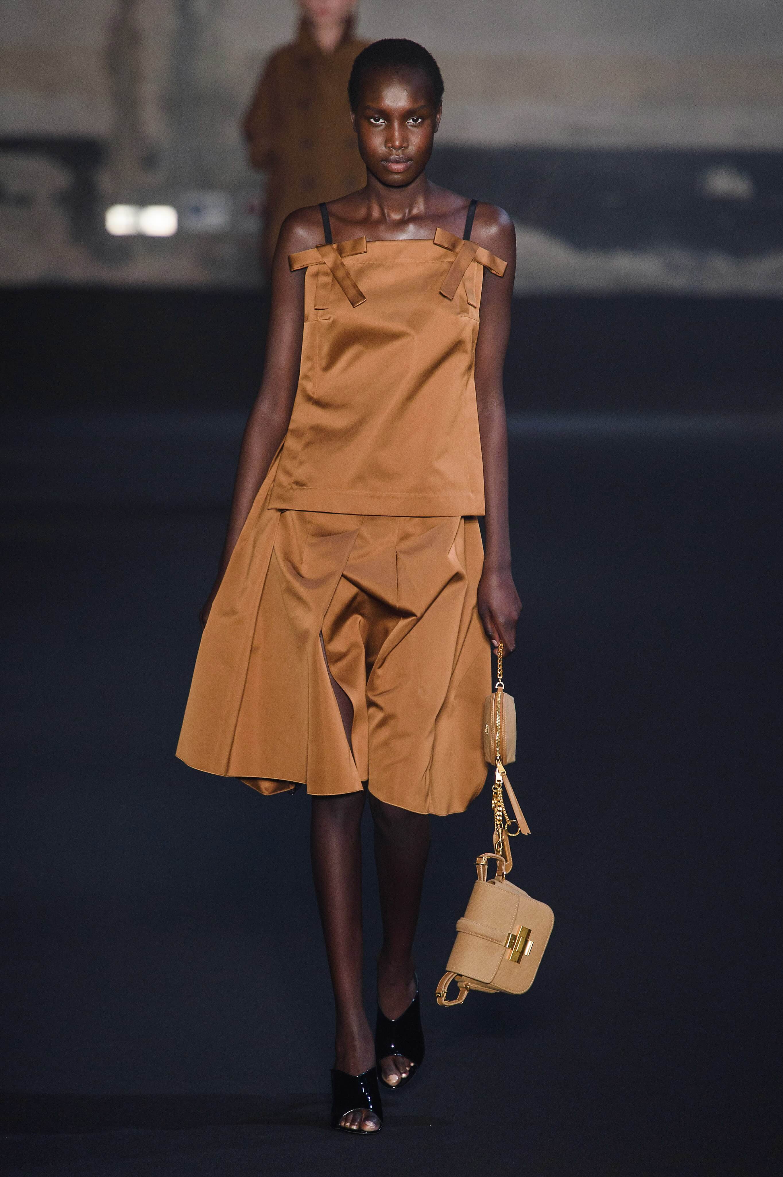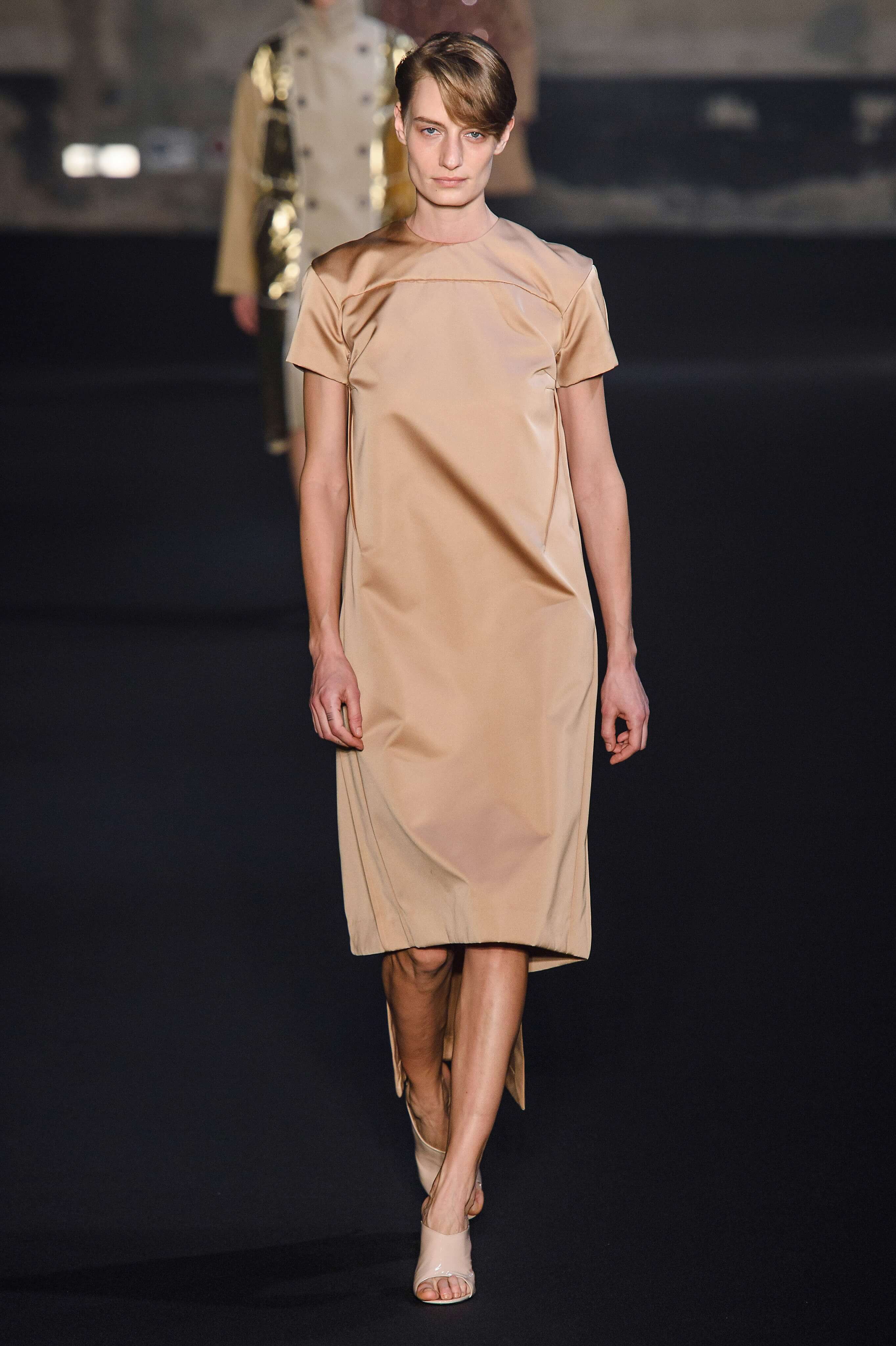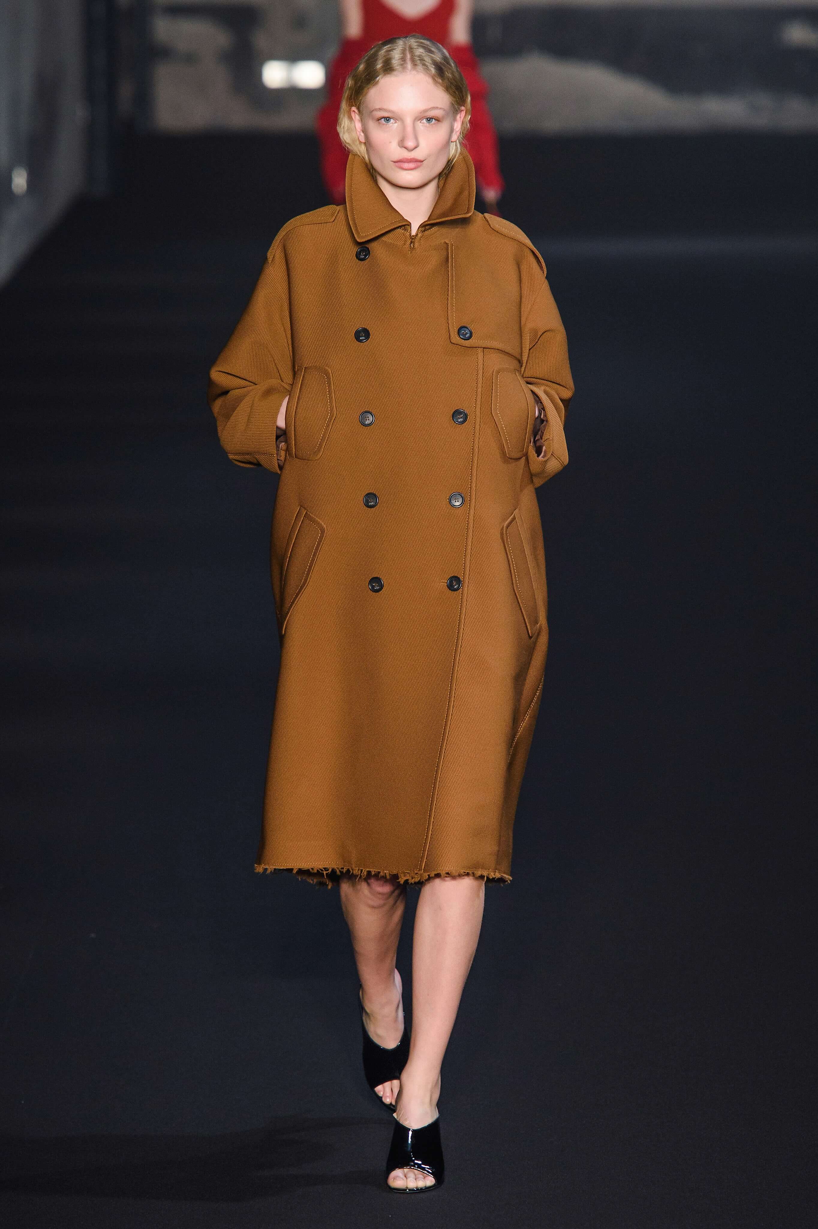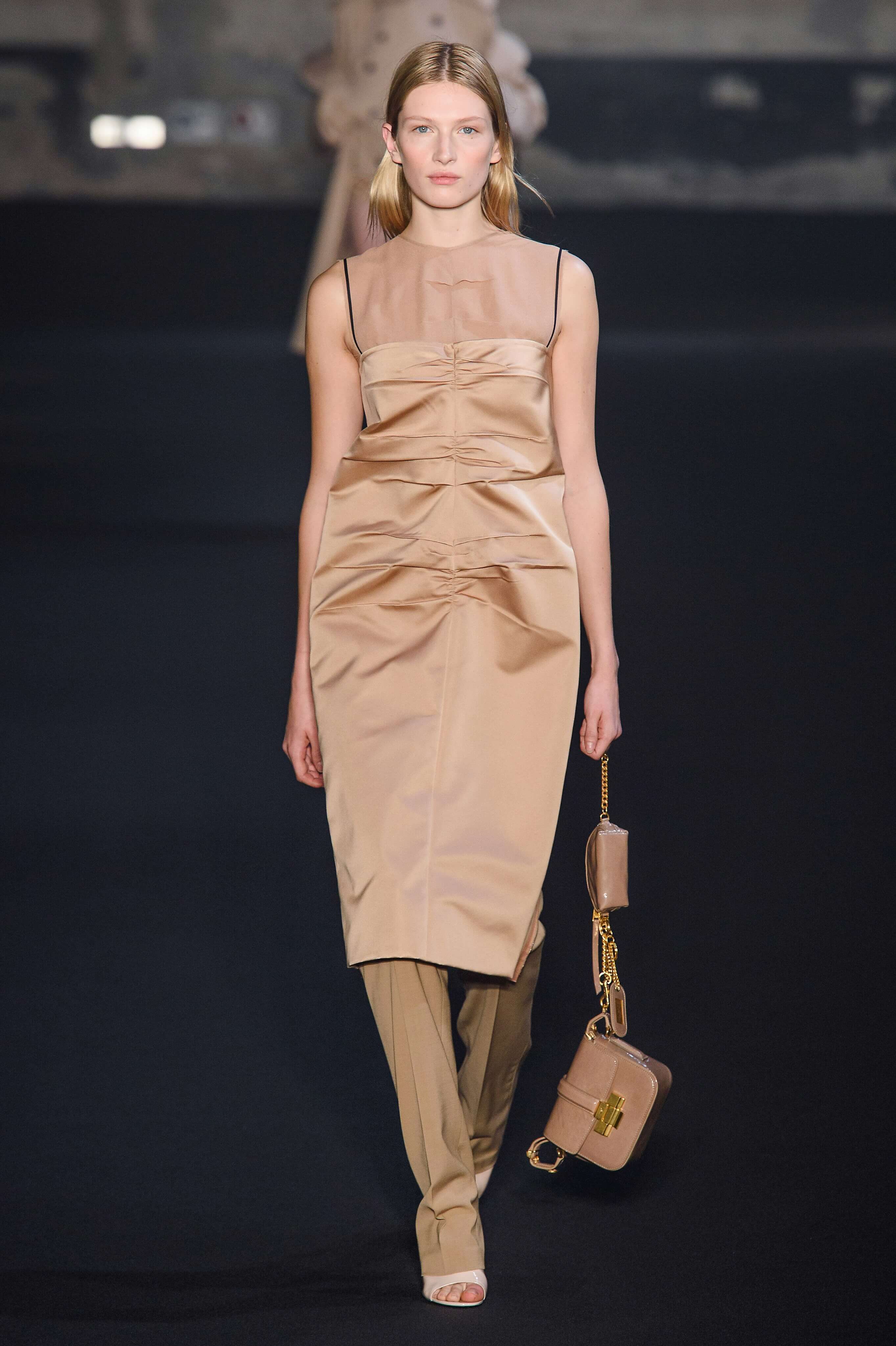 На первый взгляд коллекция кажется нарядным дополнением к офисному гардеробу: классические силуэты, спокойные цвета (черный, белый, красный и все оттенки коричневого — от бежа до темной горчицы), платья-футляры в комбинации с брюками.