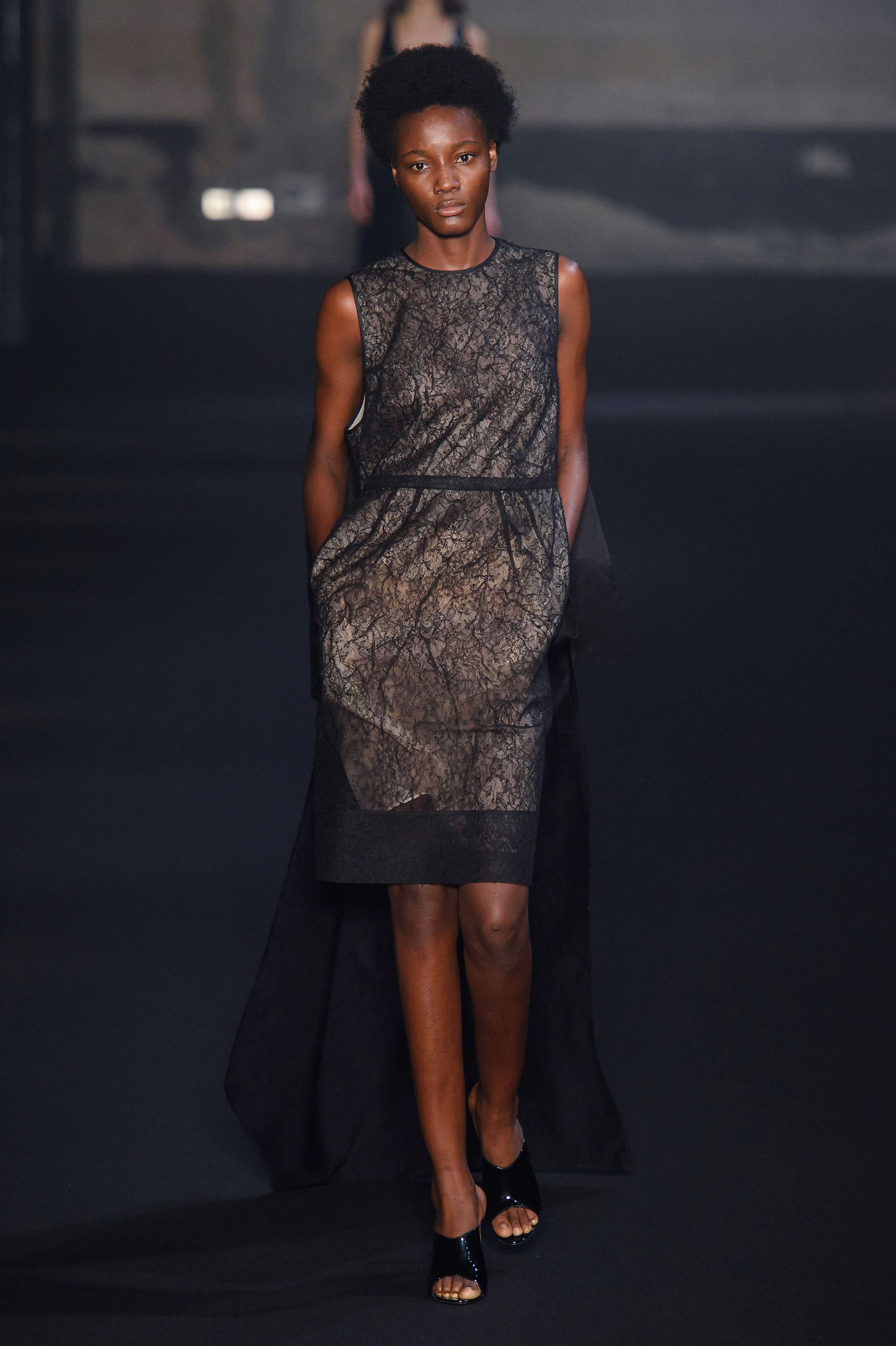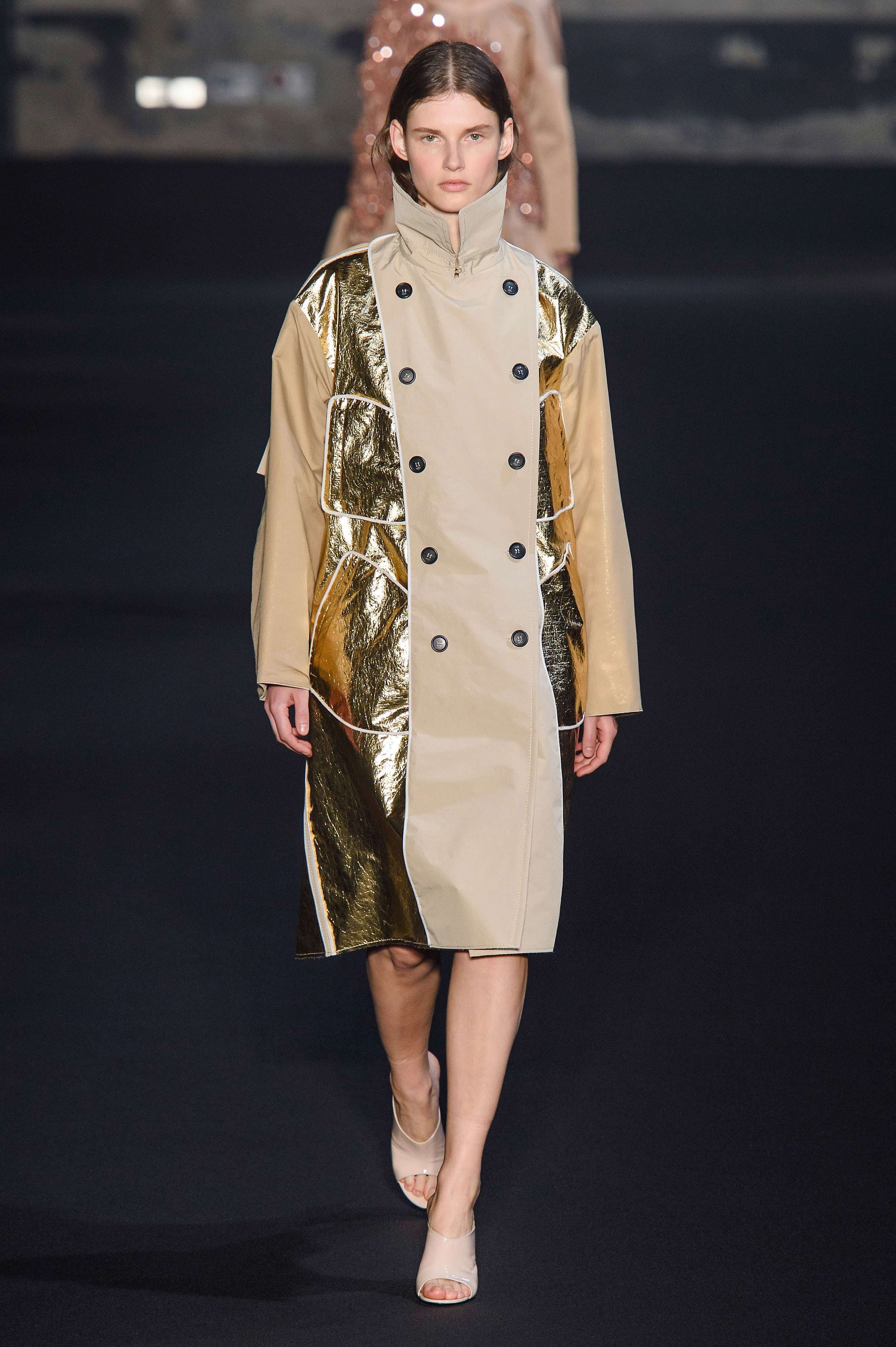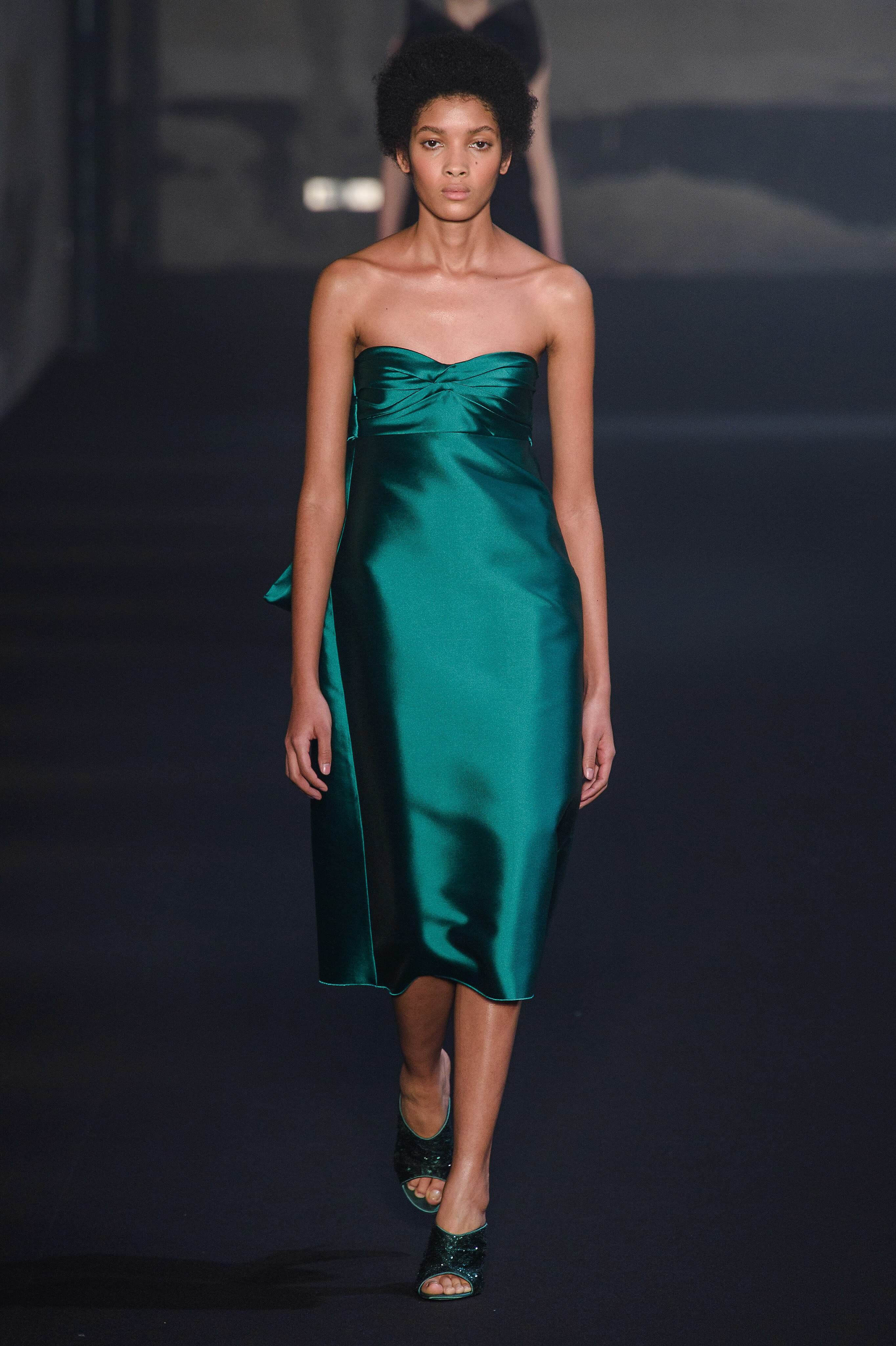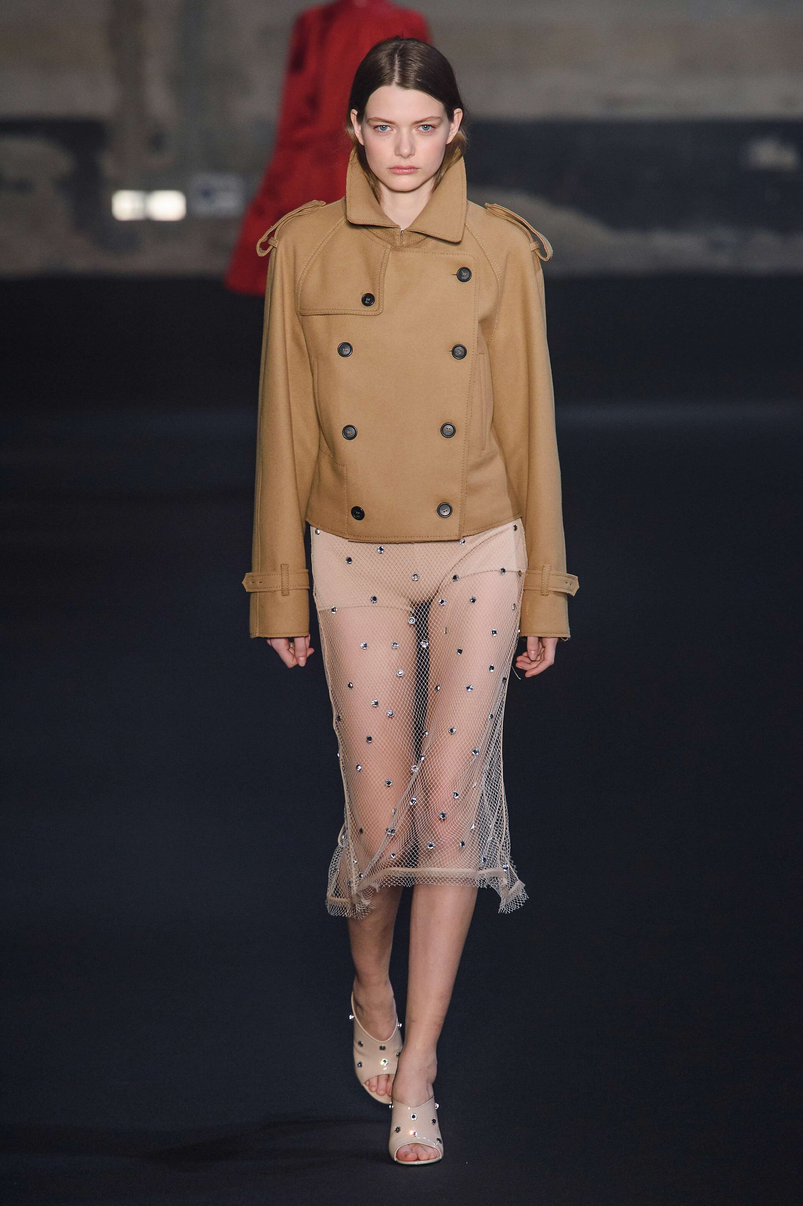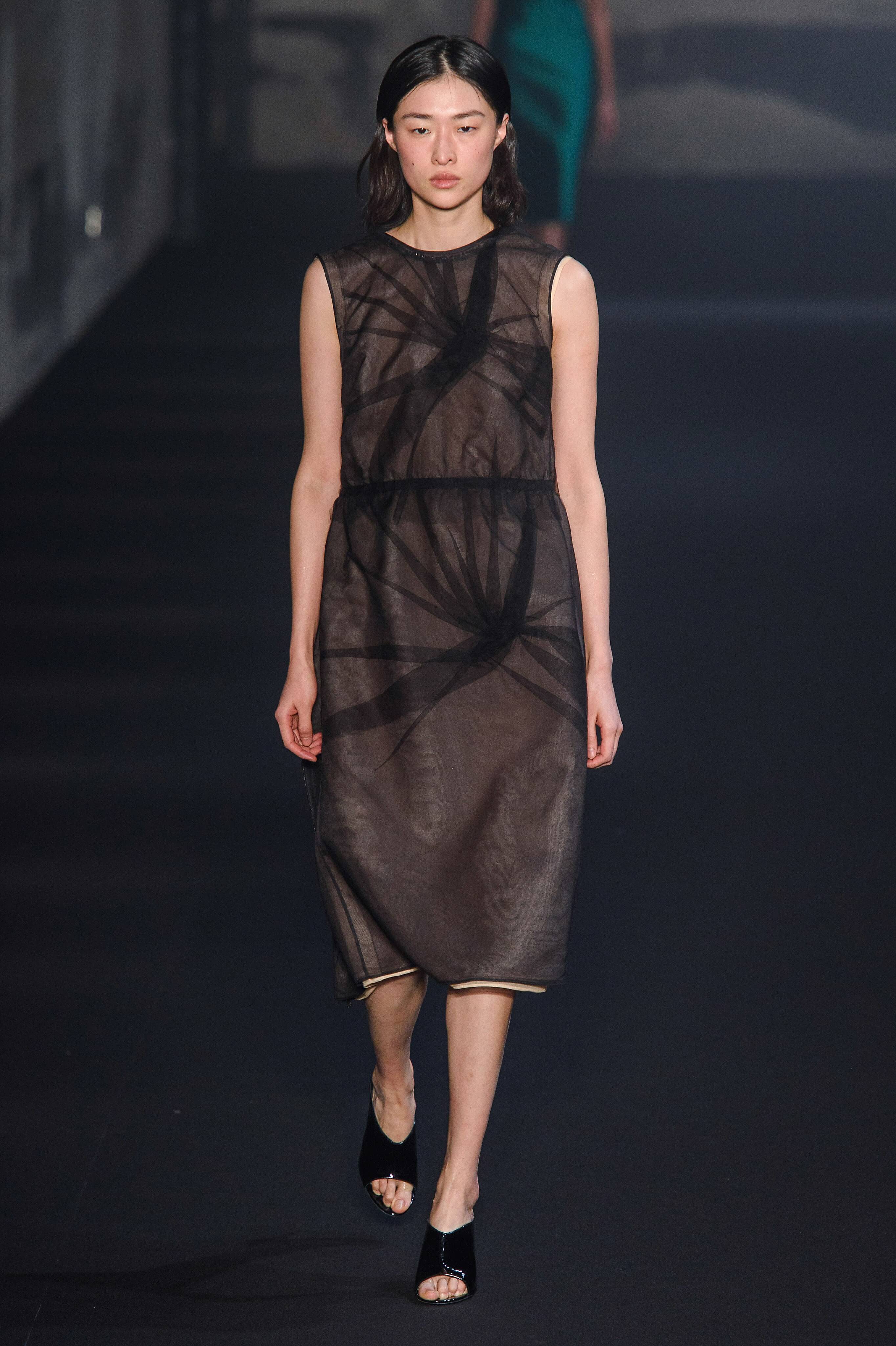 На деле же Алессандро дель Аква вдохновлялся эротикой: главным референсом послужил фильм Брайана де Пальмы “Бритва” (Dressed To Kill) 1980 года — стильный, но достаточно антифеминистский эротический триллер. Образы из фильма дель Аква адаптировал к современности, исследуя грани женской сексуальности без объективации тела. В коллекцию вошли деконструированные пальто со спущенными плечами, вязаные бра-топы, вещи из латекса и сетка, усыпанная камнями. В глазах мужчин одежда способна и соблазнять, и вызывать, и убеждать.