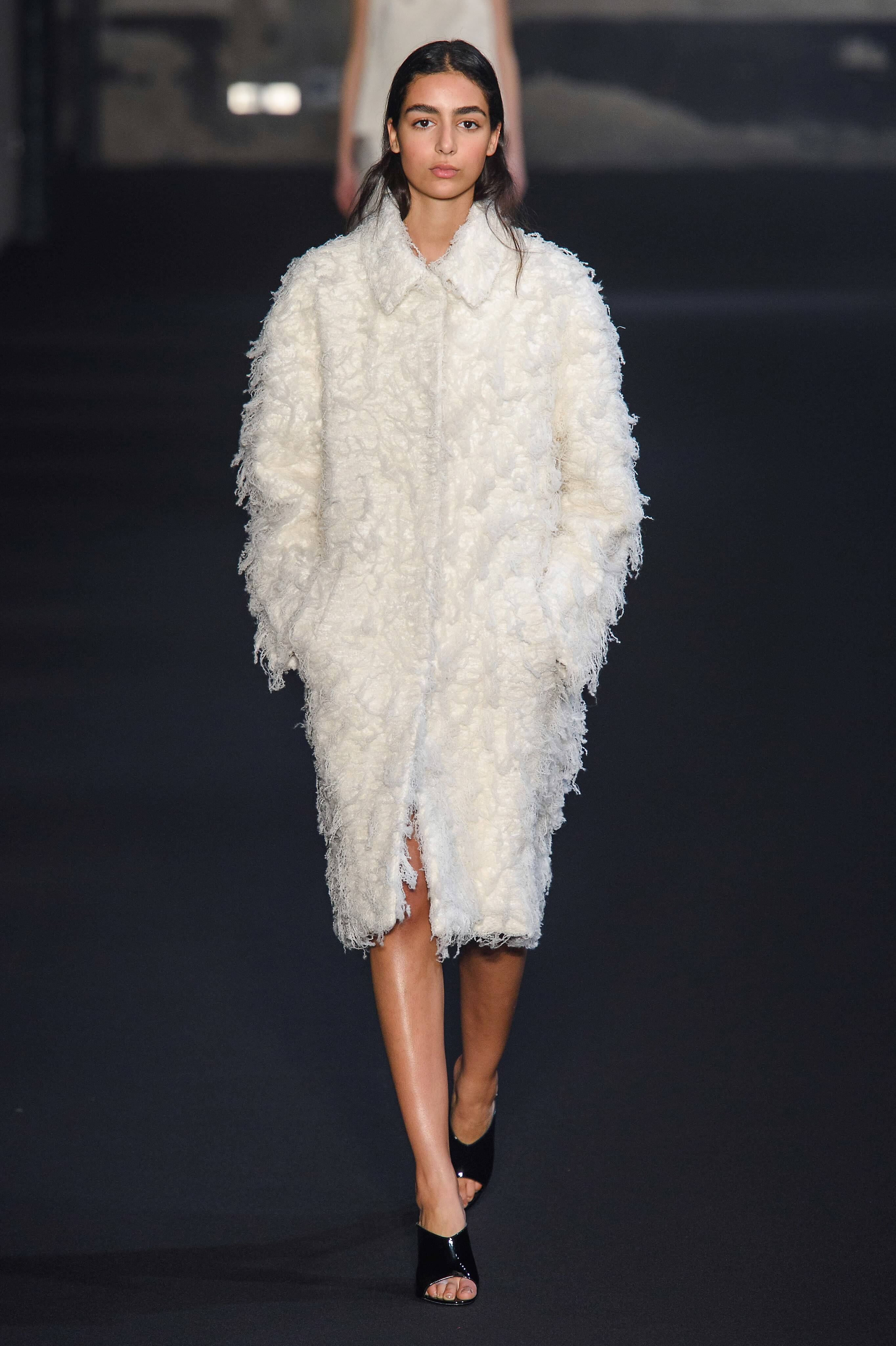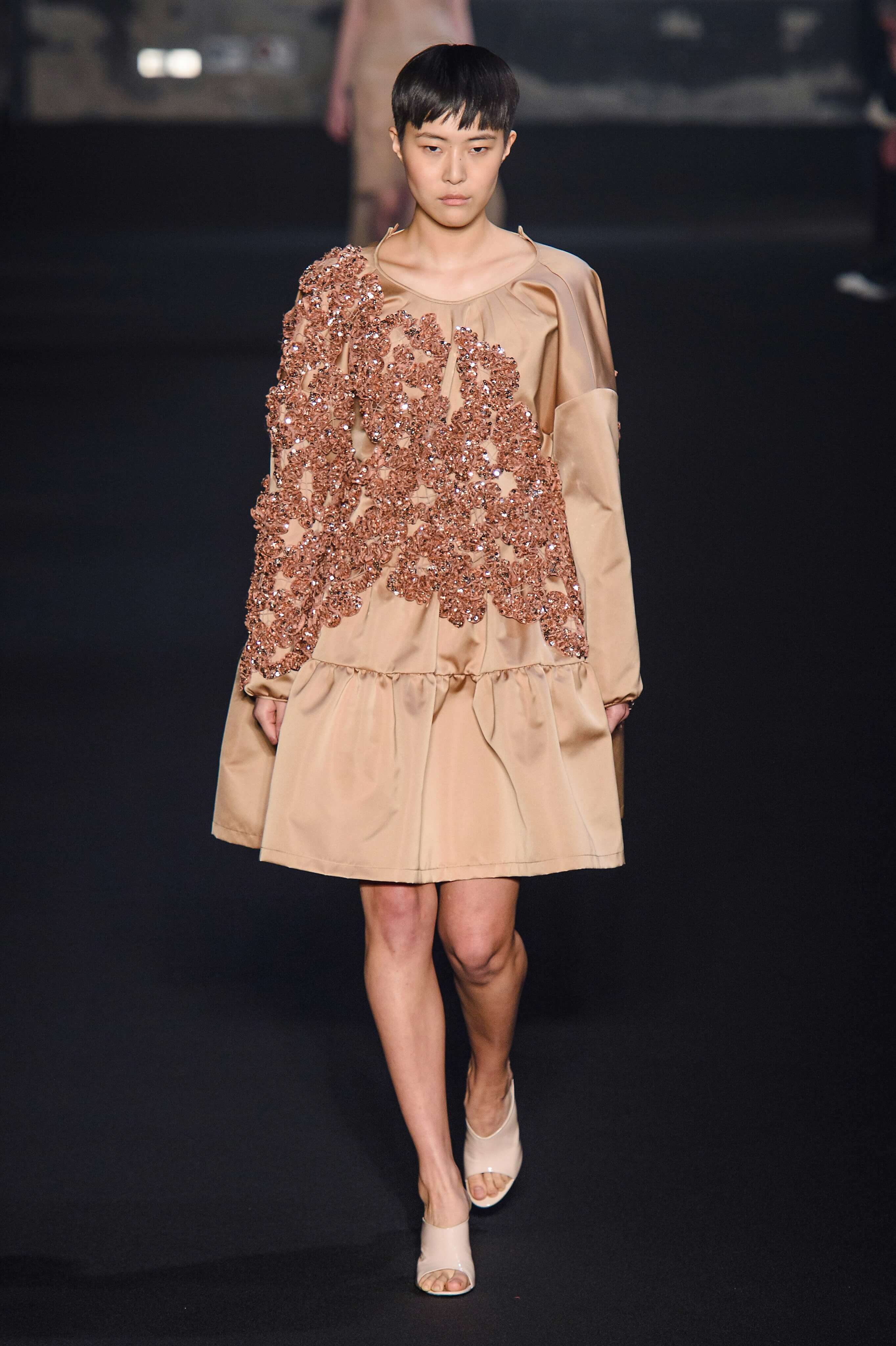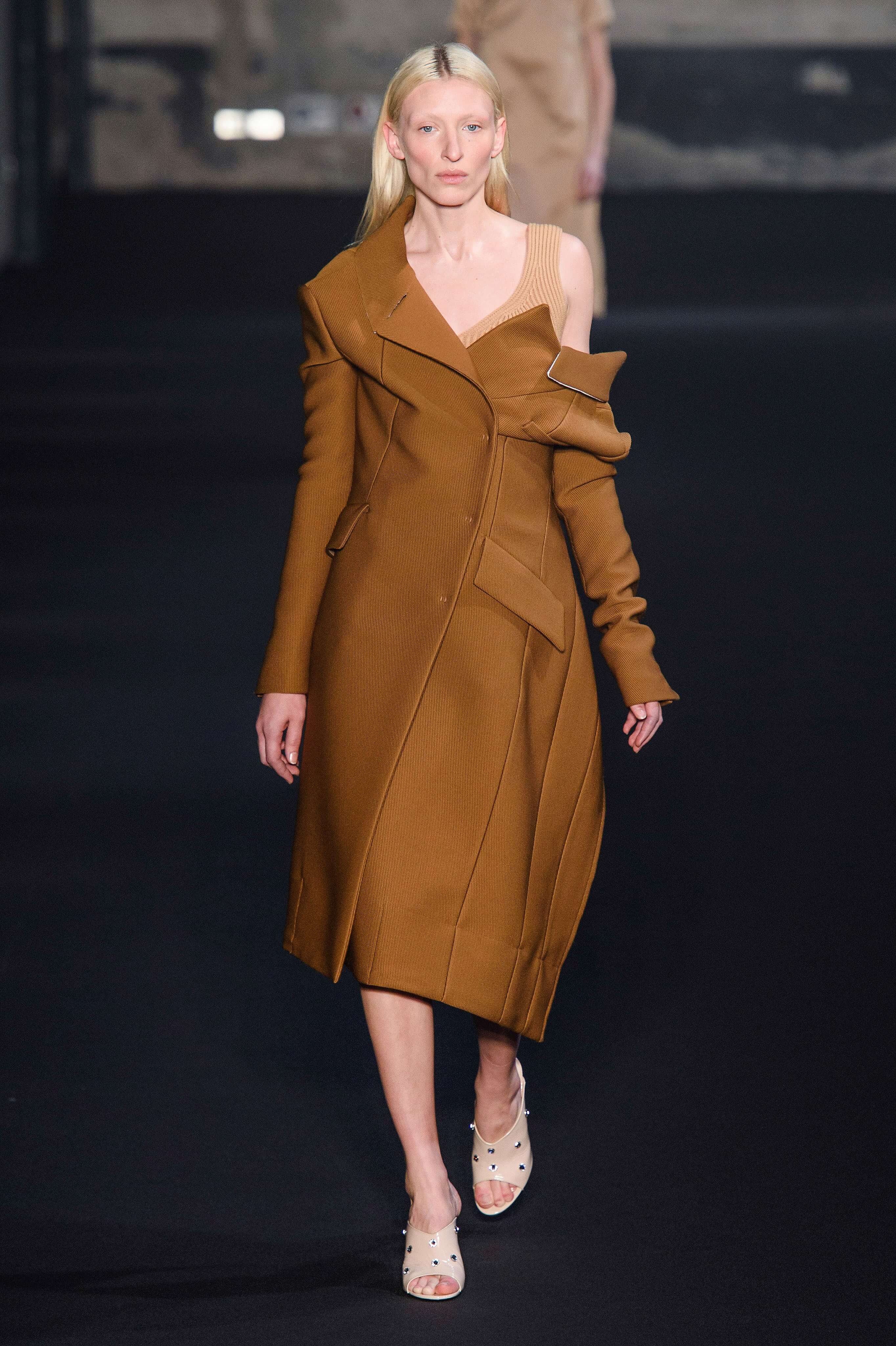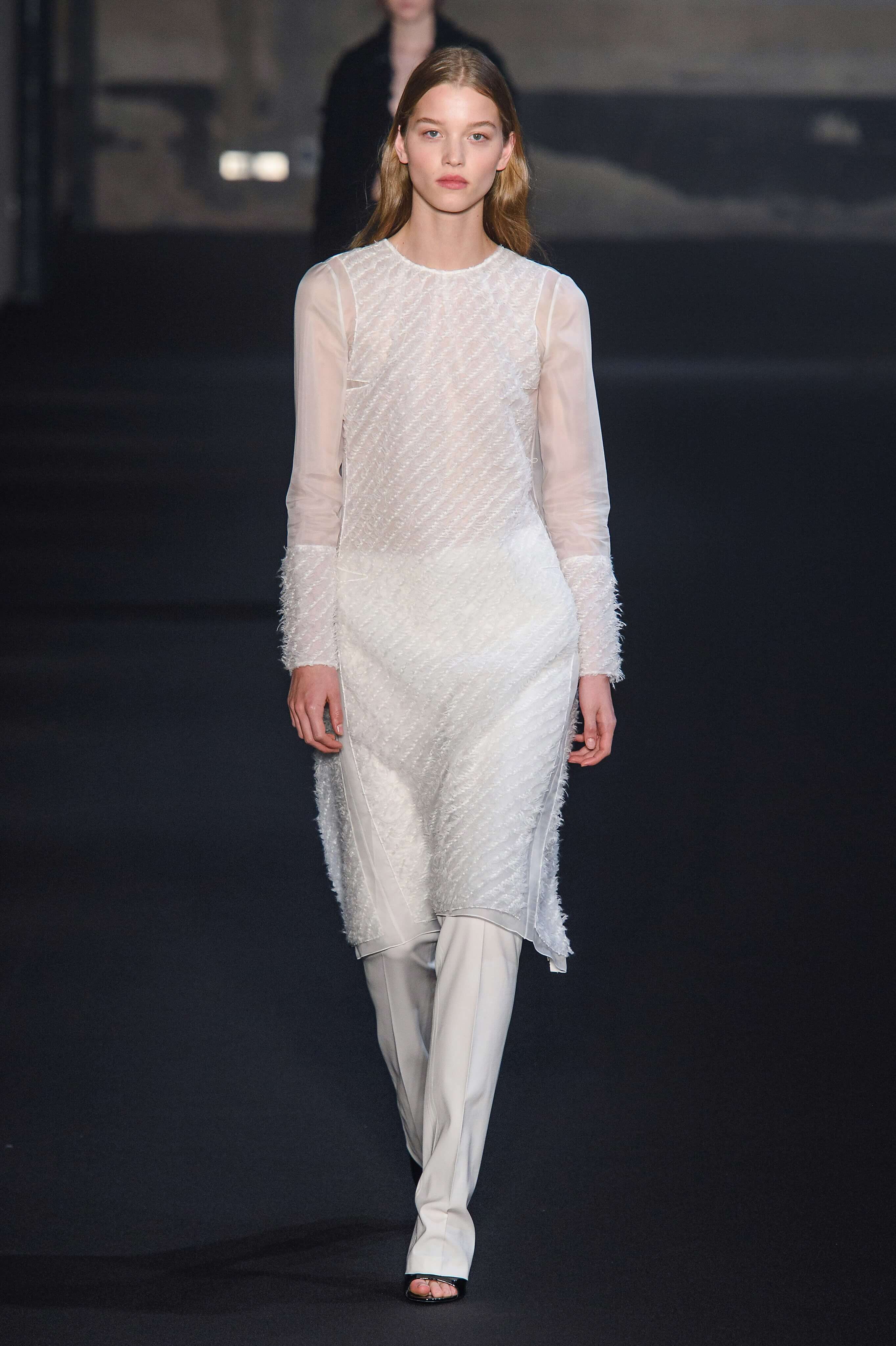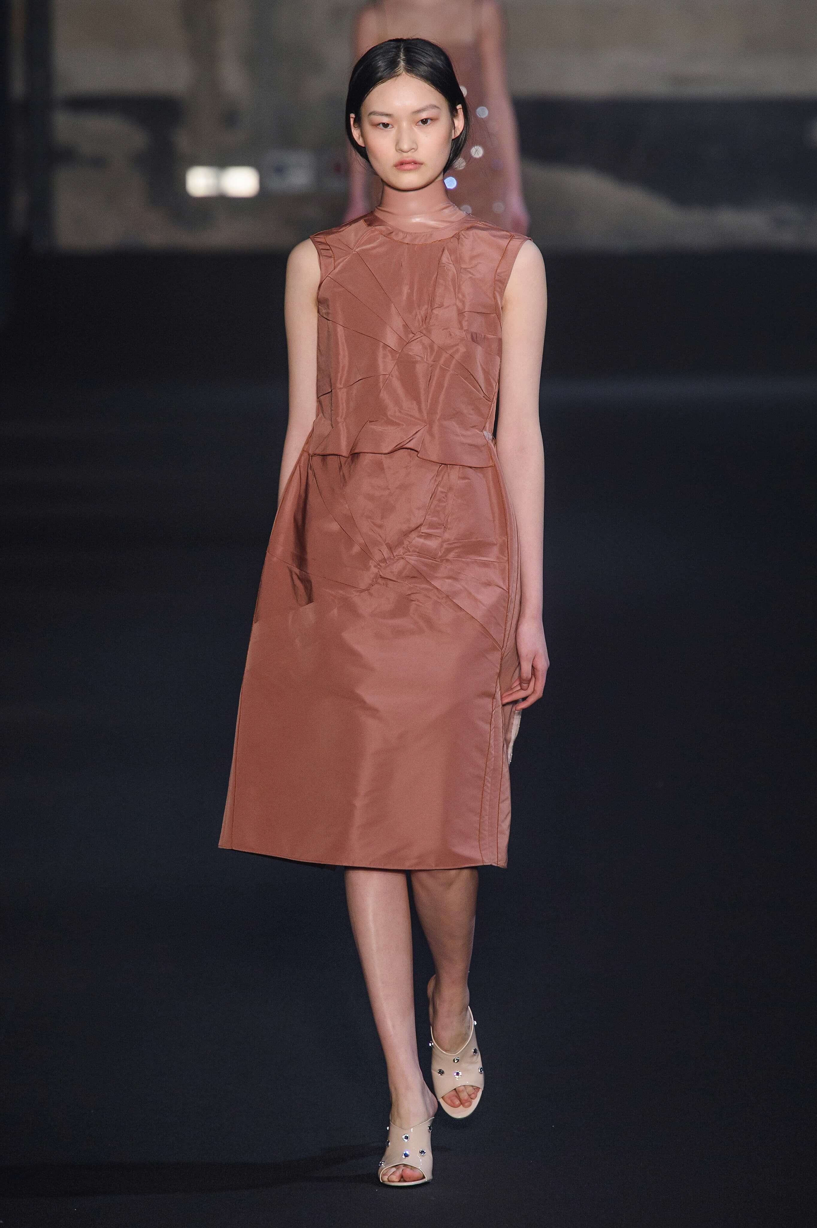 На деле же Алессандро дель Аква вдохновлялся эротикой: главным референсом послужил фильм Брайана де Пальмы “Бритва” (Dressed To Kill) 1980 года — стильный, но достаточно антифеминистский эротический триллер. Образы из фильма дель Аква адаптировал к современности, исследуя грани женской сексуальности без объективации тела. В коллекцию вошли деконструированные пальто со спущенными плечами, вязаные бра-топы, вещи из латекса и сетка, усыпанная камнями. В глазах мужчин одежда способна и соблазнять, и вызывать, и убеждать.