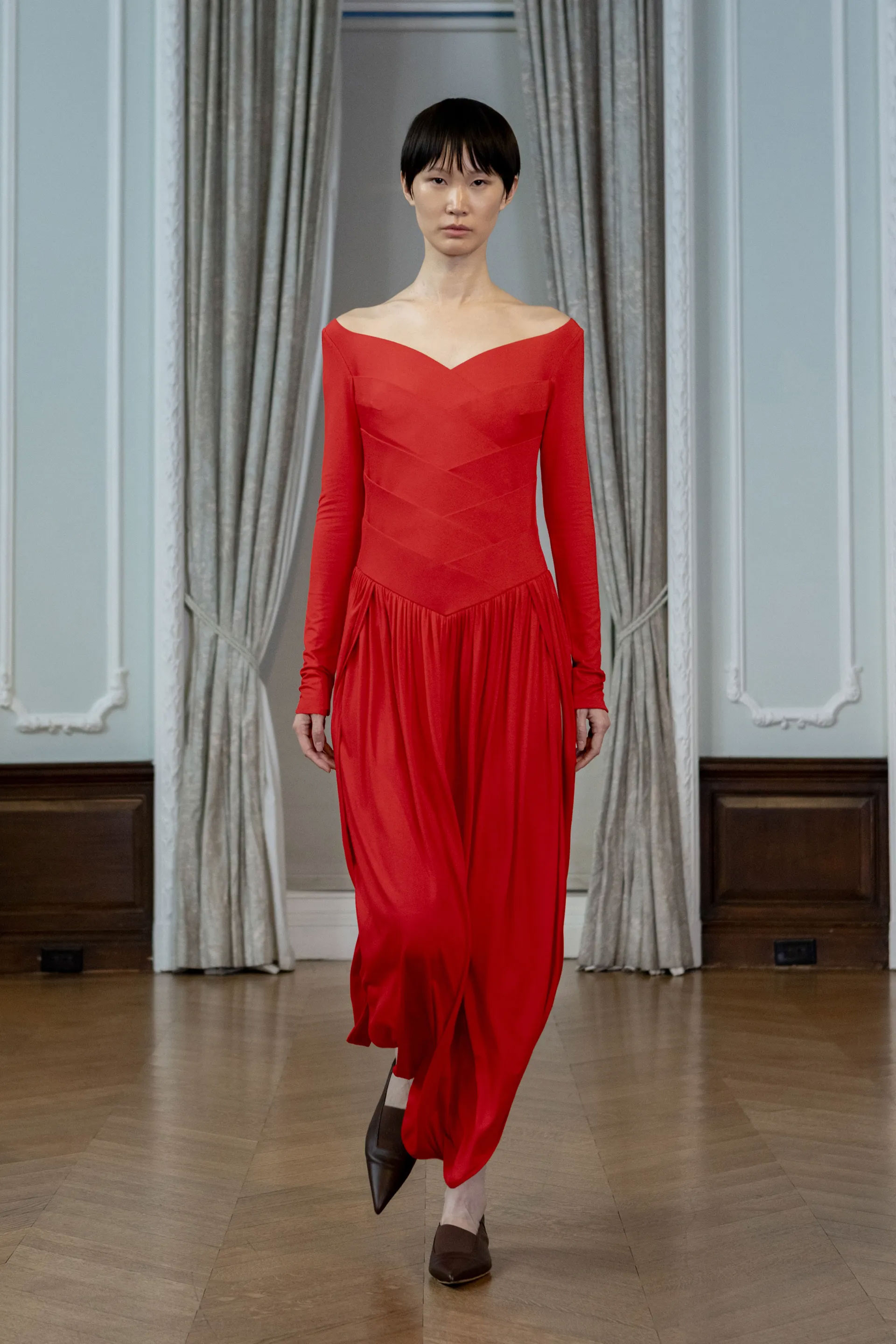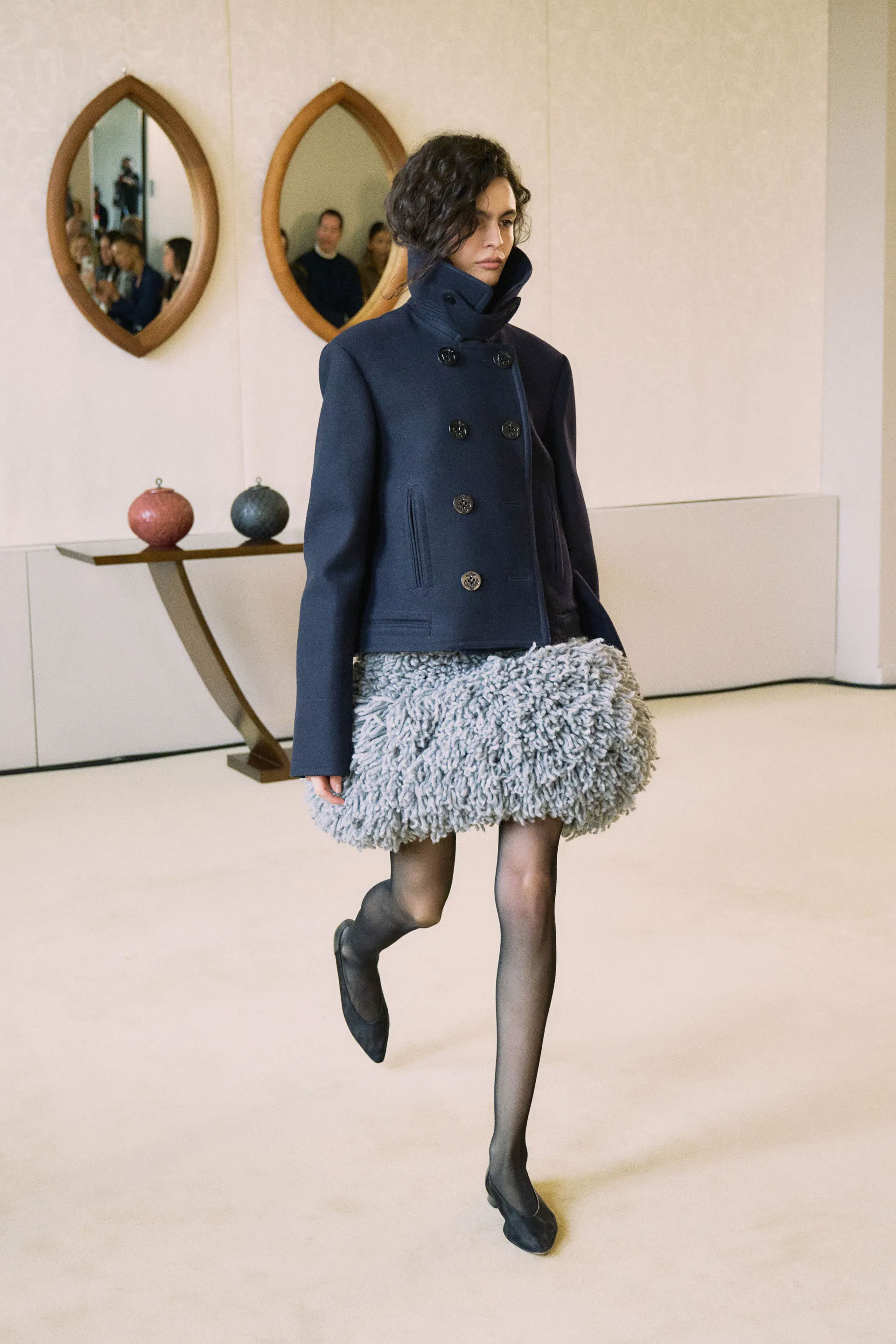 У новому сезоні Altuzarra повернулися до витоків інтимних шоу, відмовившись від яскравої сценографії. Колекція fall-winter — 2025 стала дослідженням одягу та його варіативністю, а не тематичною присвятою з глибоким підтекстом. Жіночна чарівність втілилася на подіумі у вишуканих пальтах-накидках, які активно з’являються на шоу цього сезону, шерстяних і класичних жакетах, шубах з хутра та пряжі, вечірніх сукнях з шифону та атласу.