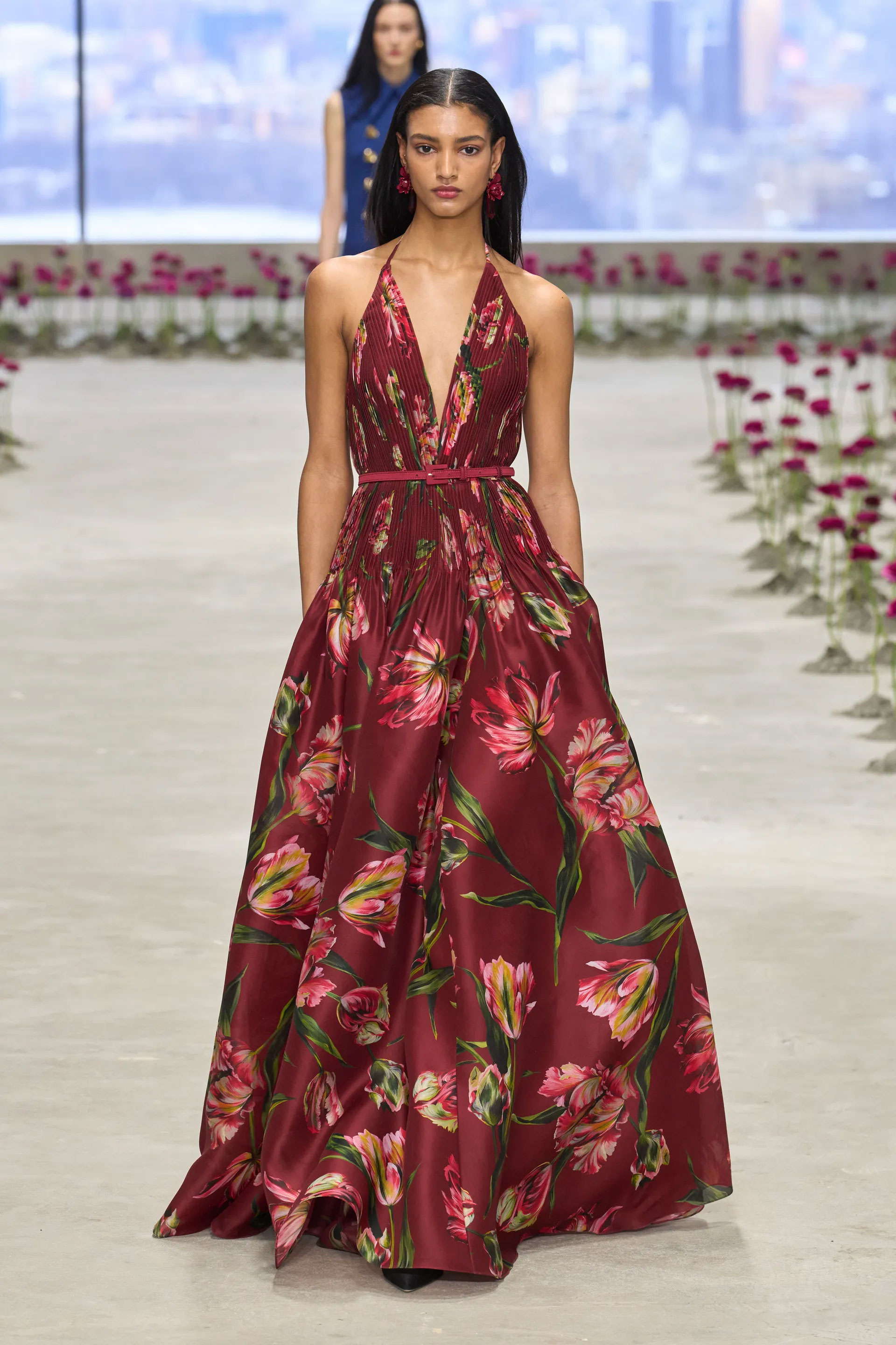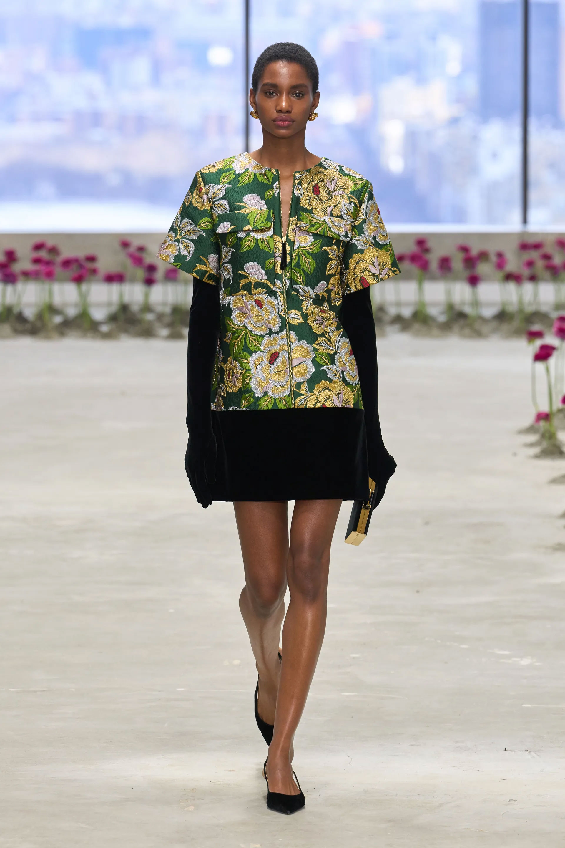 На 48-му поверсі однієї з нью-йоркських висоток Вес Гордон представив колекцію fall-winter — 2025, мета якої — надихнути глядачів бачити красу навіть тоді, коли життя сповнене викликів. На подіумі, прикрашеному рожевими ранункулюсами, з’явилися образи з флористичними деталями. Троянди та інші квіти декорували ледь не кожен елемент колекції — від поясу брюк до вишивки на пальтах.