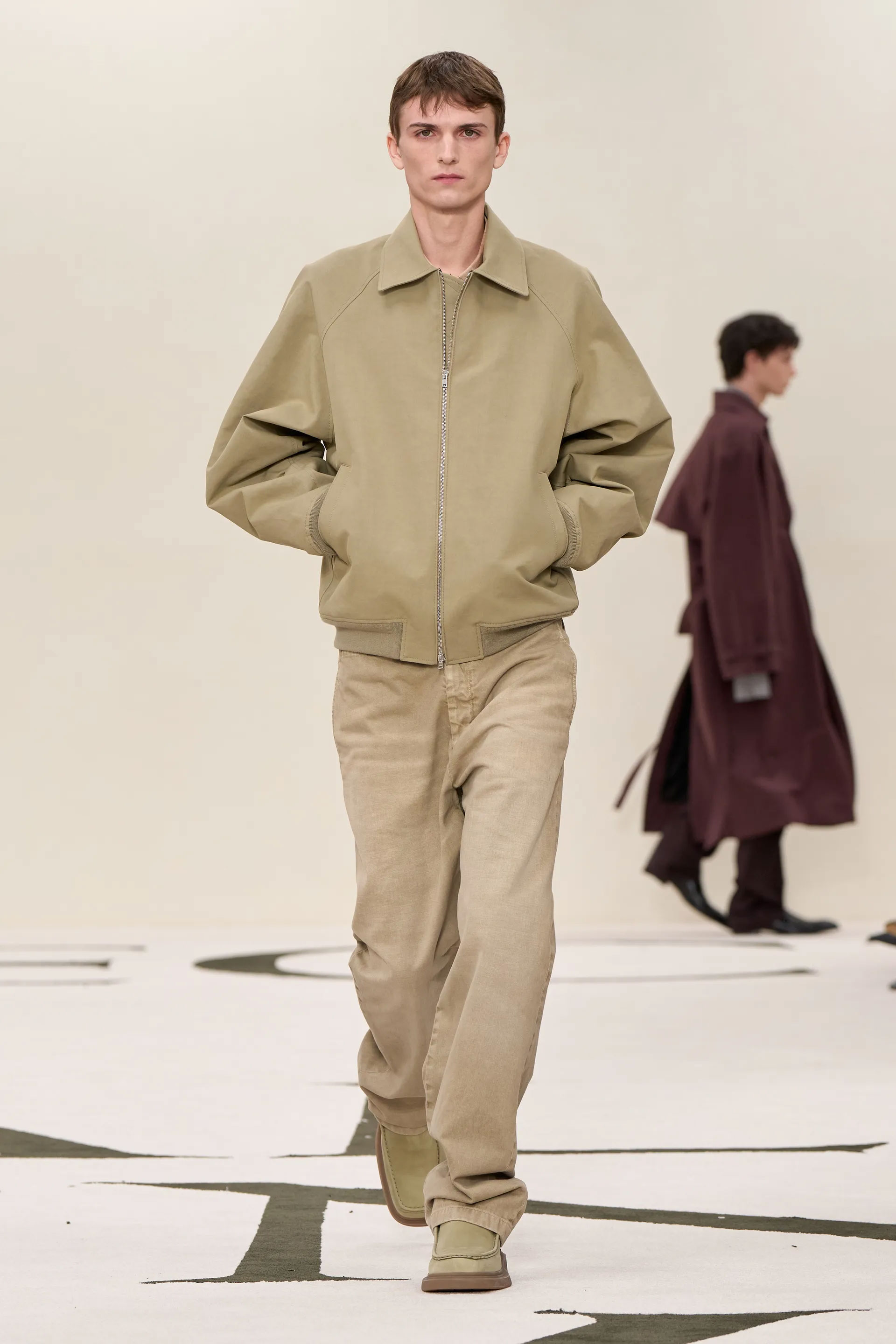 «Я хотів, аби колекція була класичною в ідеях, але у виконанні — зовсім іншою», — розповів дизайнер Том Браун про своє нове шоу, сповнене образів майстерного крою та декору. У кольоровій палітри дизайнер відійшов від переважно сірих відтінків, показавши на подіумі ледь не найяскравішу колекцію ready-to-wear за свою кар’єру. В образах fall-winter — 2025 Браун поєднав гру з фактурами та матеріалами, де принти так само легко поєднувалися один з одним, як і атлас з шерстю.