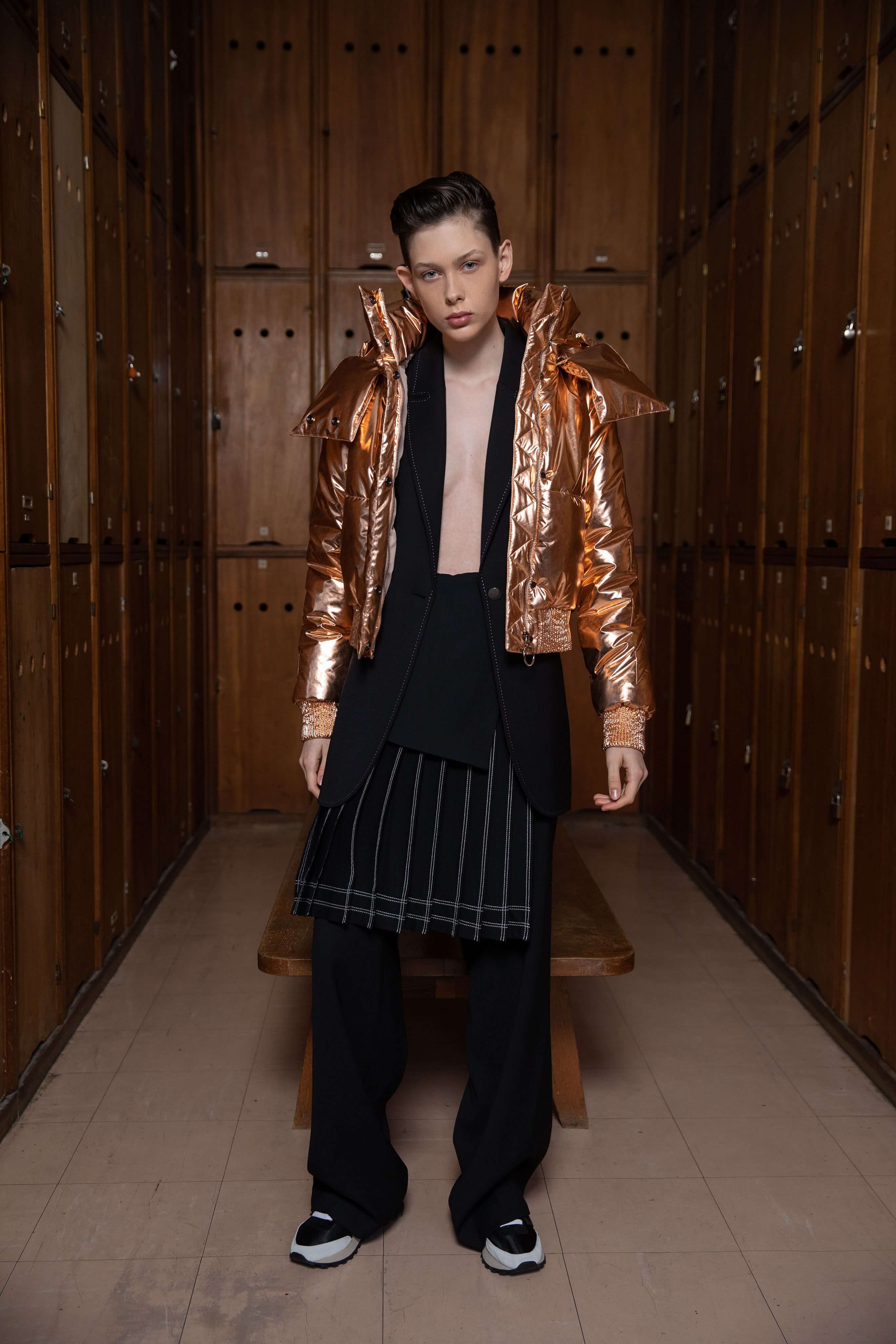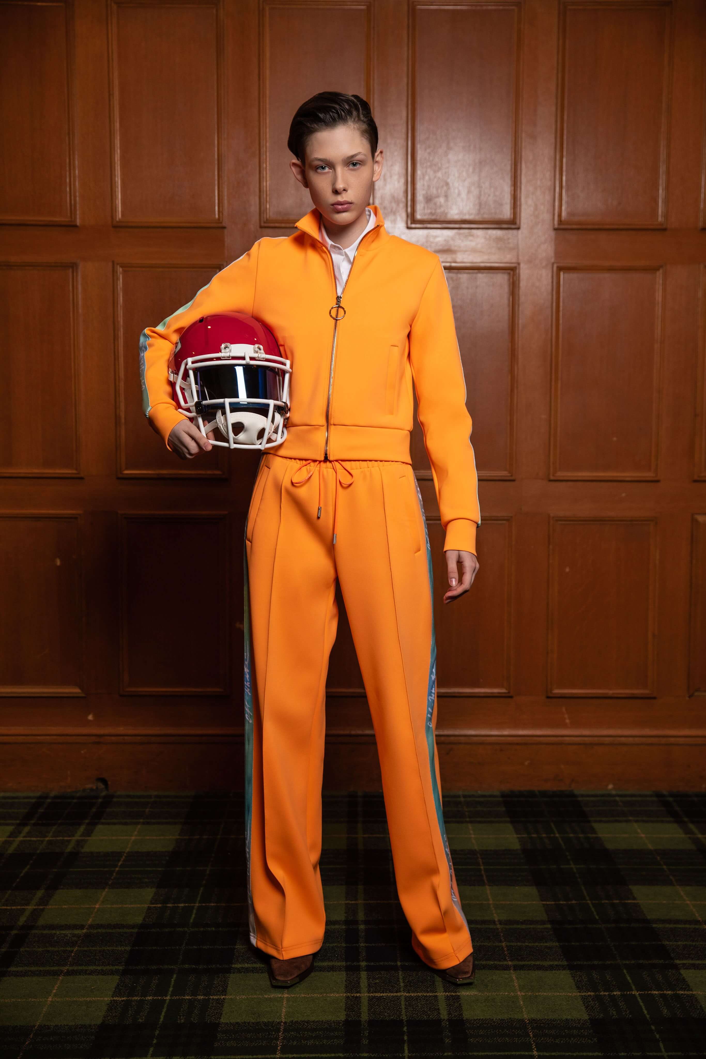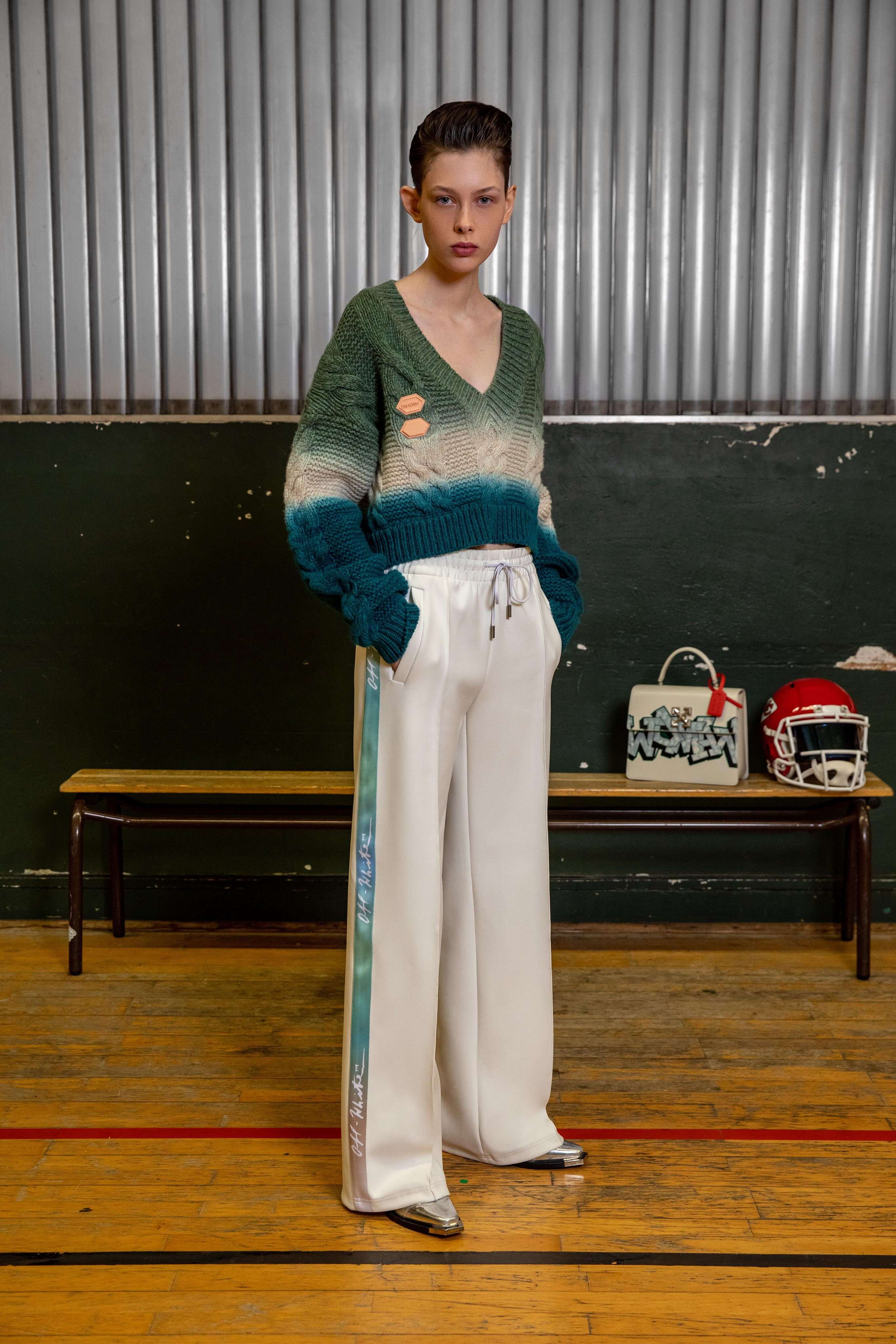В коллекцию вошли плиссированные юбки и платья, вдохновленные формой чирлидеров, ботинки и сумки с бахромой, как на помпонах, спортивные костюмы и новая интерпретация стиля преппи.