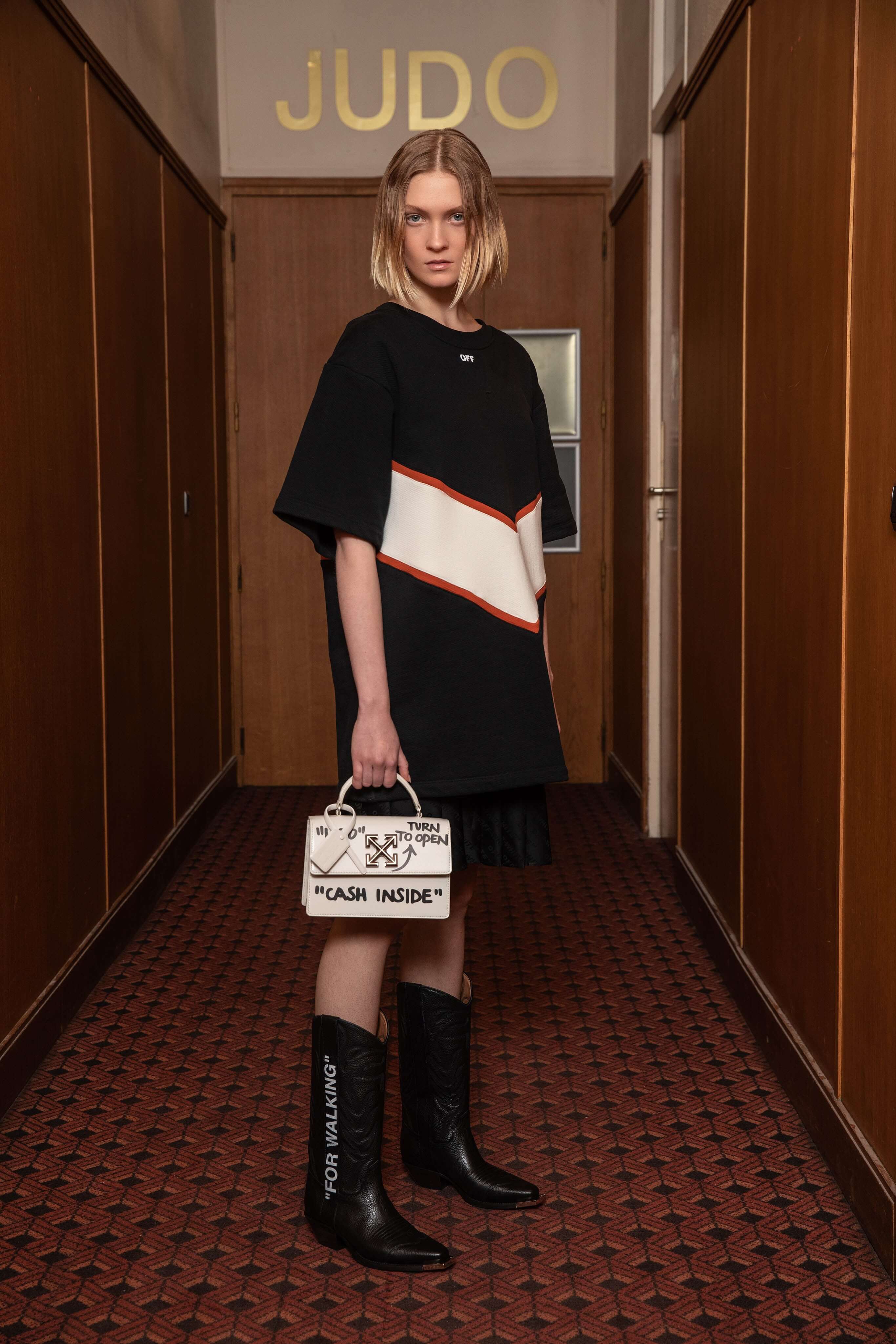 Рисунки в стиле граффити, которые Абло рисовал в школе, появляются на новой сумке Jitney: “Это будущее Off-White, если можно так выразиться, в одной вещи. Для меня сумка — центр всего бренда, будто можно взять всю этику бренда и собрать ее в одной вещи, — сказал он. — Она элегантная, но в то же время и молодая, как Off-White. Это и мать, и дочь, а может, и наоборот”.