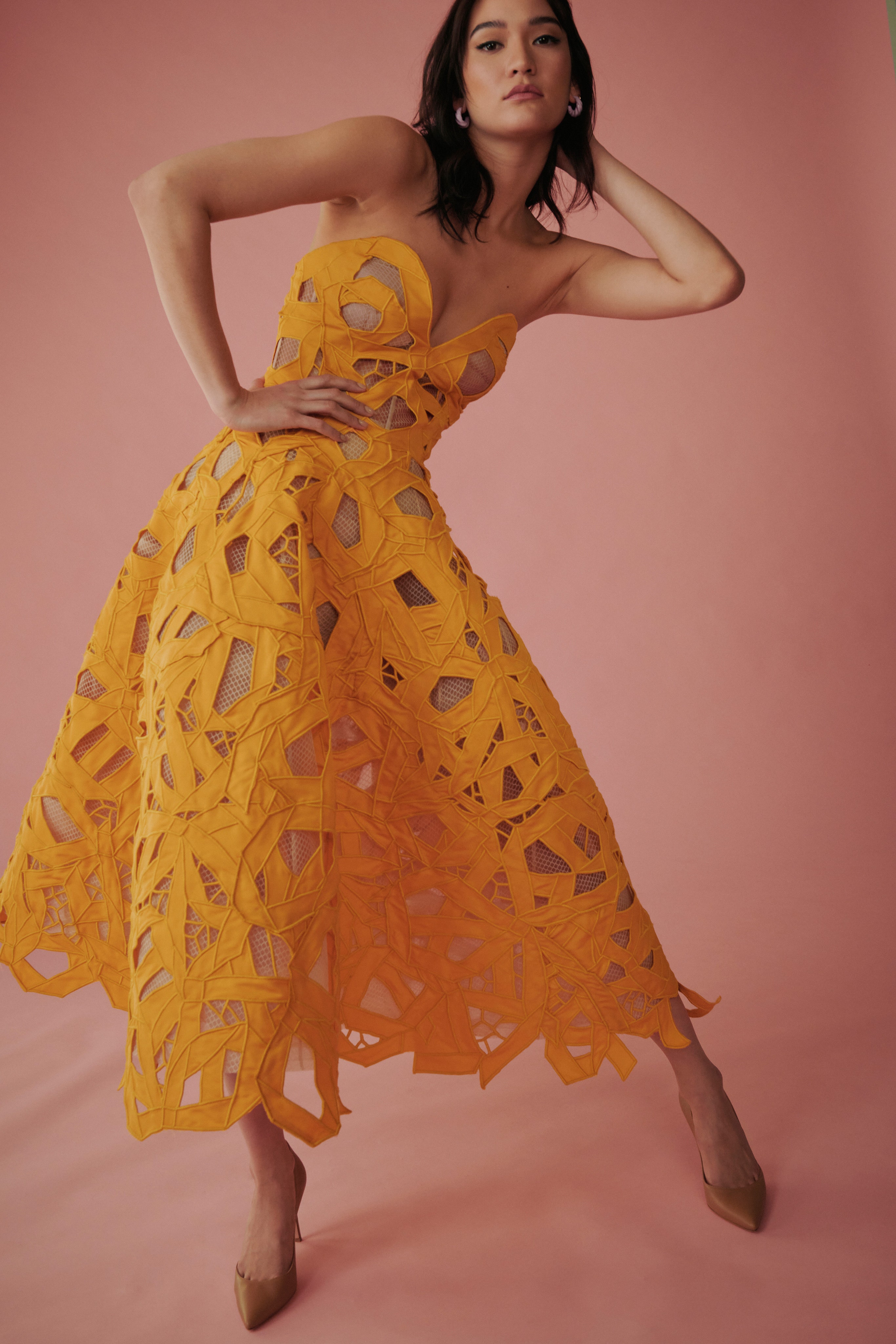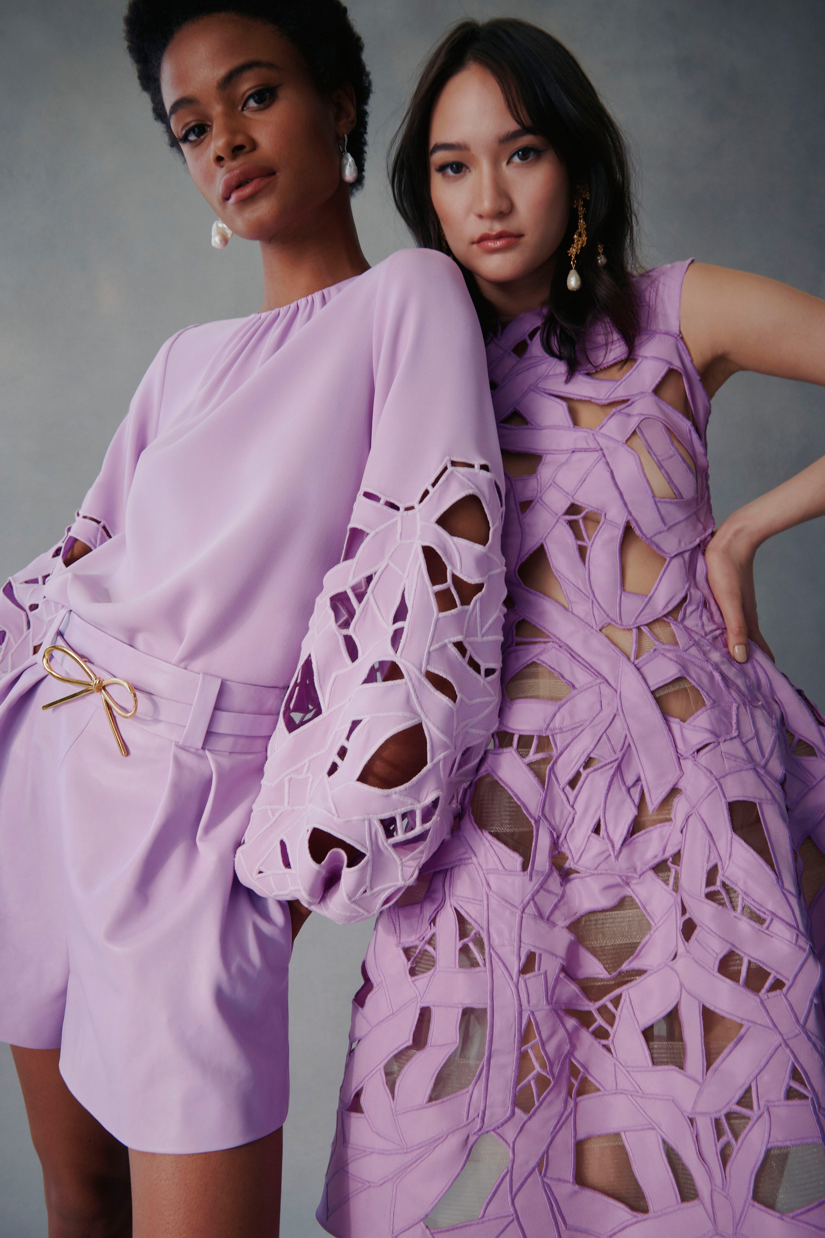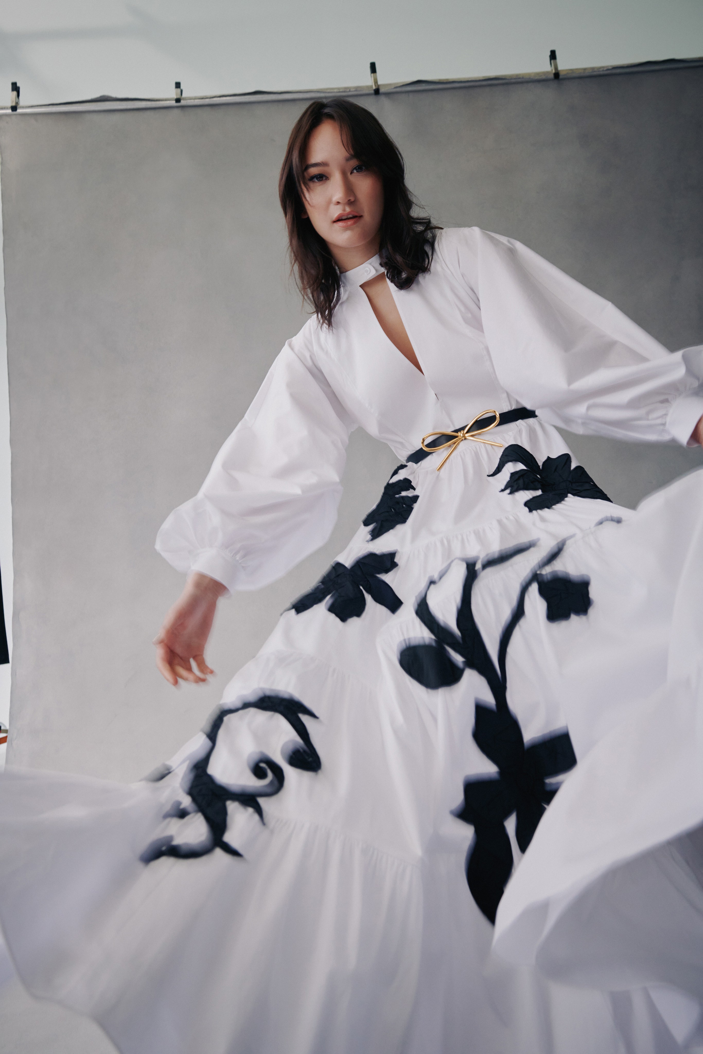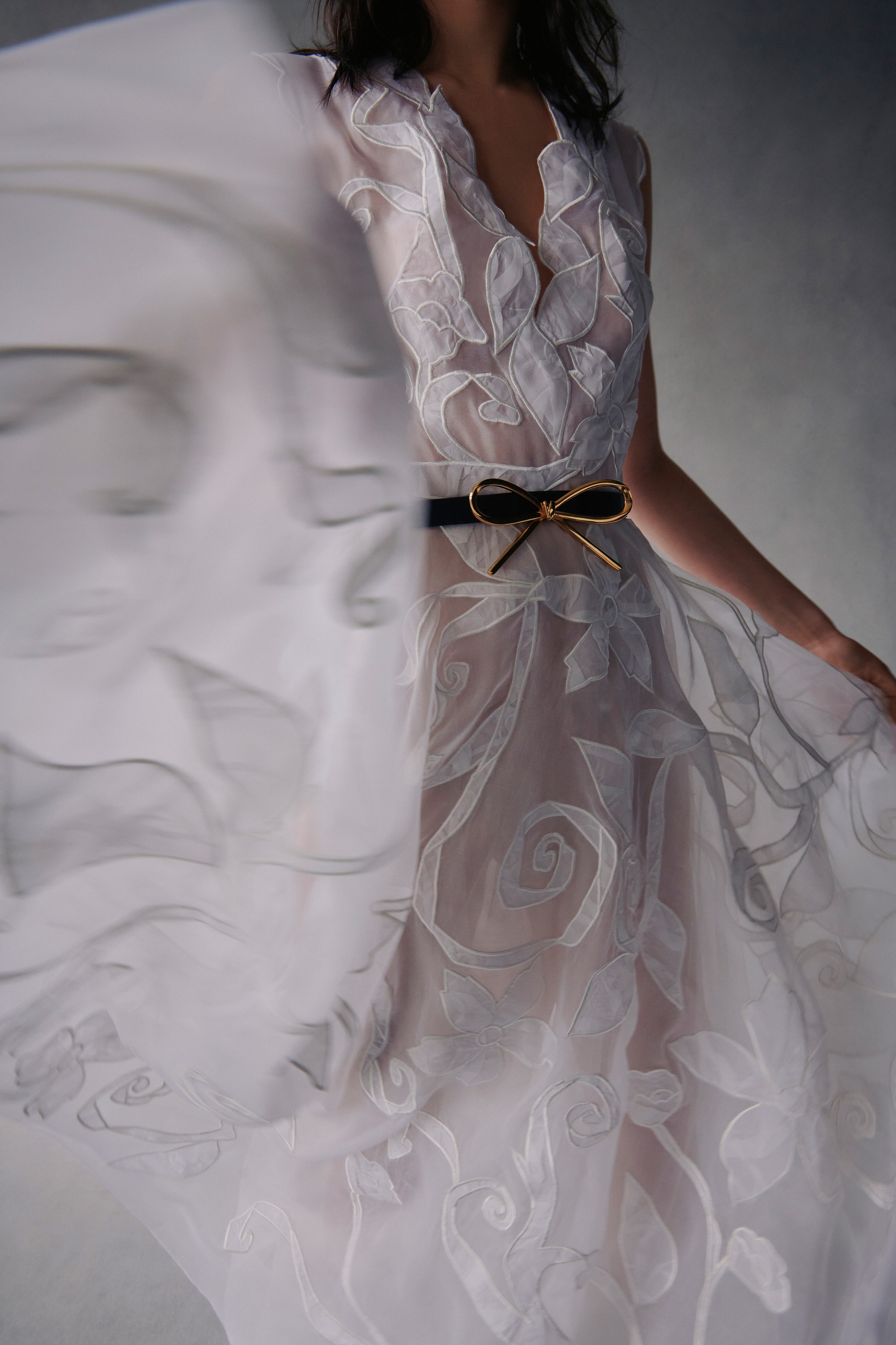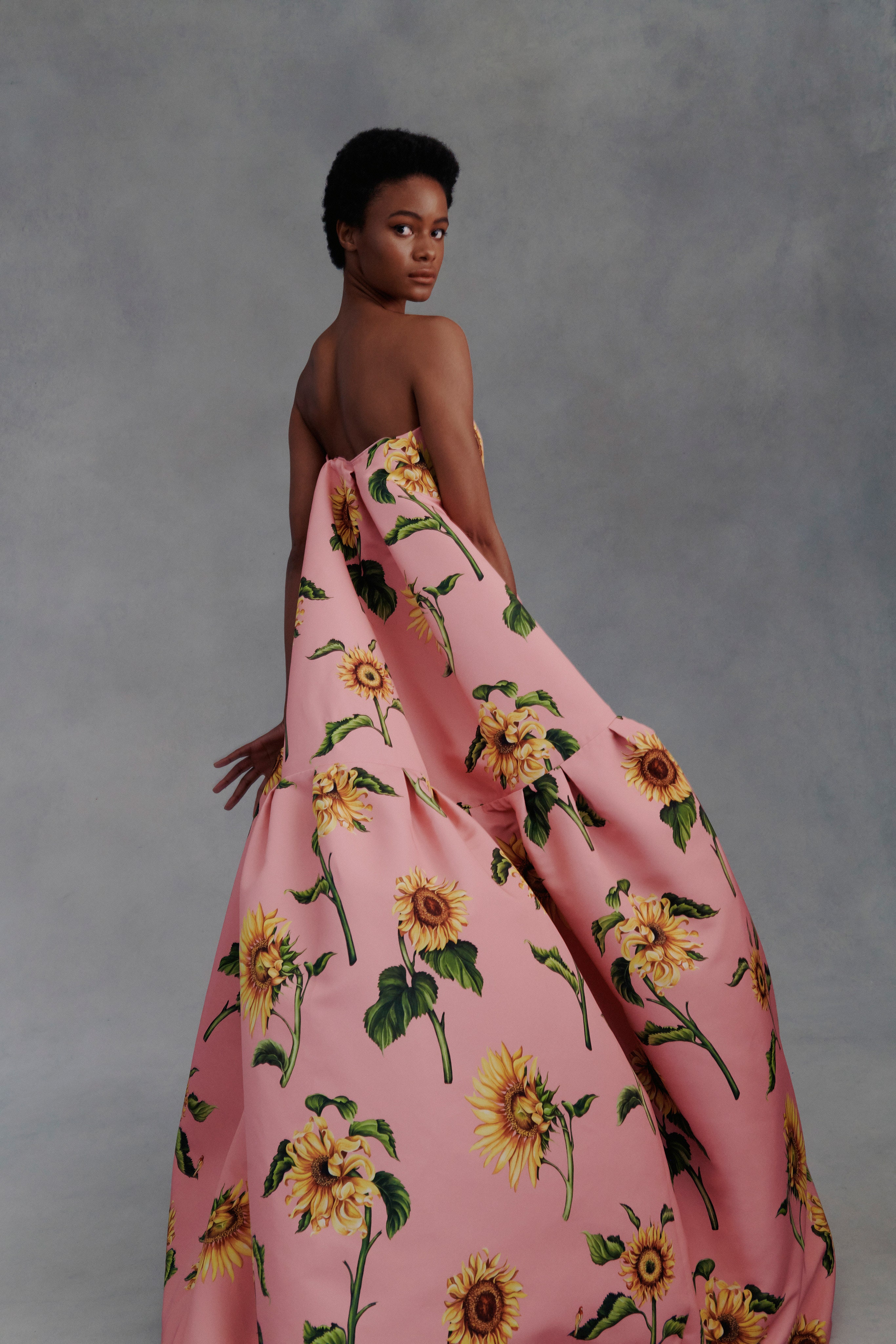 Одежду будущей осени дизайнеры Лора Ким и Фернандо Гарсиа наполнили легкостью, солнцем и полевыми цветами — тем, за что мы любим эту пору года. Даже если пойдет дождь или будет прохладный ветер, можно надеть воздушное платье из органзы, увитое плющом, или романтичный сарафан, усеянный ромашками, подсолнухами, фиалками и десятками других нежных летне-осенних бутонов. Подсолнухи, то вязаные, то выполненные из пайеток, стали главным символом коллекции. В компании романтичных платьев оказались также брючные костюмы с открытыми жакетами на завязках-бантах, пальто силуэта new look и роскошные вечерние наряды из тафты. Еще одним вечерним образом стал силуэтный брючный костюм со шлейфом из тюля — в качестве нижней сорочки дизайнеры предложили мерцающий вышивкой топ.