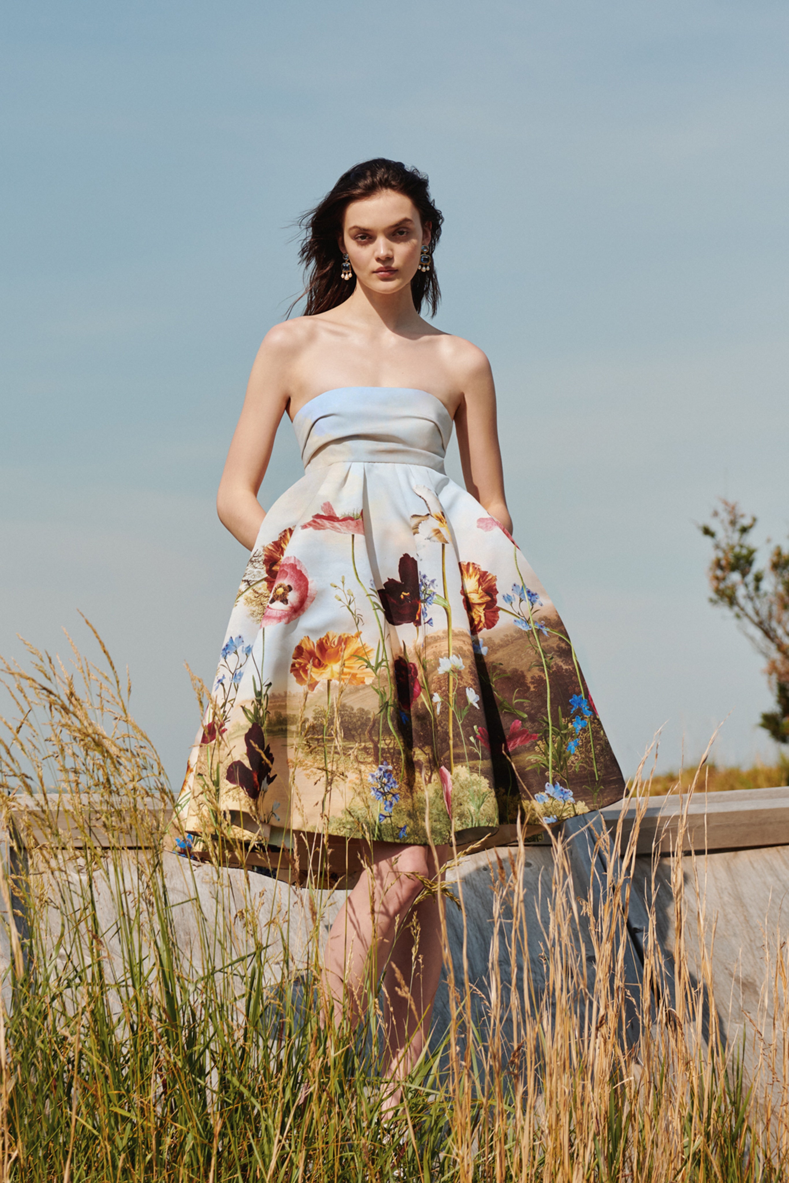 В марте Тейлор Свифт стала победительницей премии "Грэмми". На церемонию певица пришла в платье Oscar de la Renta, усеянном цветами, и вызвала настоящий восторг у поклонников и зрителей. Свою круизную коллекцию дизайнеры Фернандо Гарсиа и Лаура Ким также не оставили без цветочных мотивов: вышитые шелковой гладью и стеклярусом маки, васильки и хризантемы украсили традиционные прозрачные платья, а на платьях-рубашках, объемном топе-бомбере и изящном платье из небесно-голубой органзы расположились фотопринты с полевыми букетами. Однако цветы не единственный лейтмотив коллекции. Одним из референсов для дуэта стало творчество скульптора Уго Рондиноне и его работа "Семь волшебных гор", в которой выкрашенные в яркие краски глыбы камней водружены друг на друга посреди пустыни Невада. Разноцветные свитеры, рыхлые и мягкие пальто-кардиганы, платья и юбки дополнили меланжевые изделия и наряды в сверкающей вышивке.