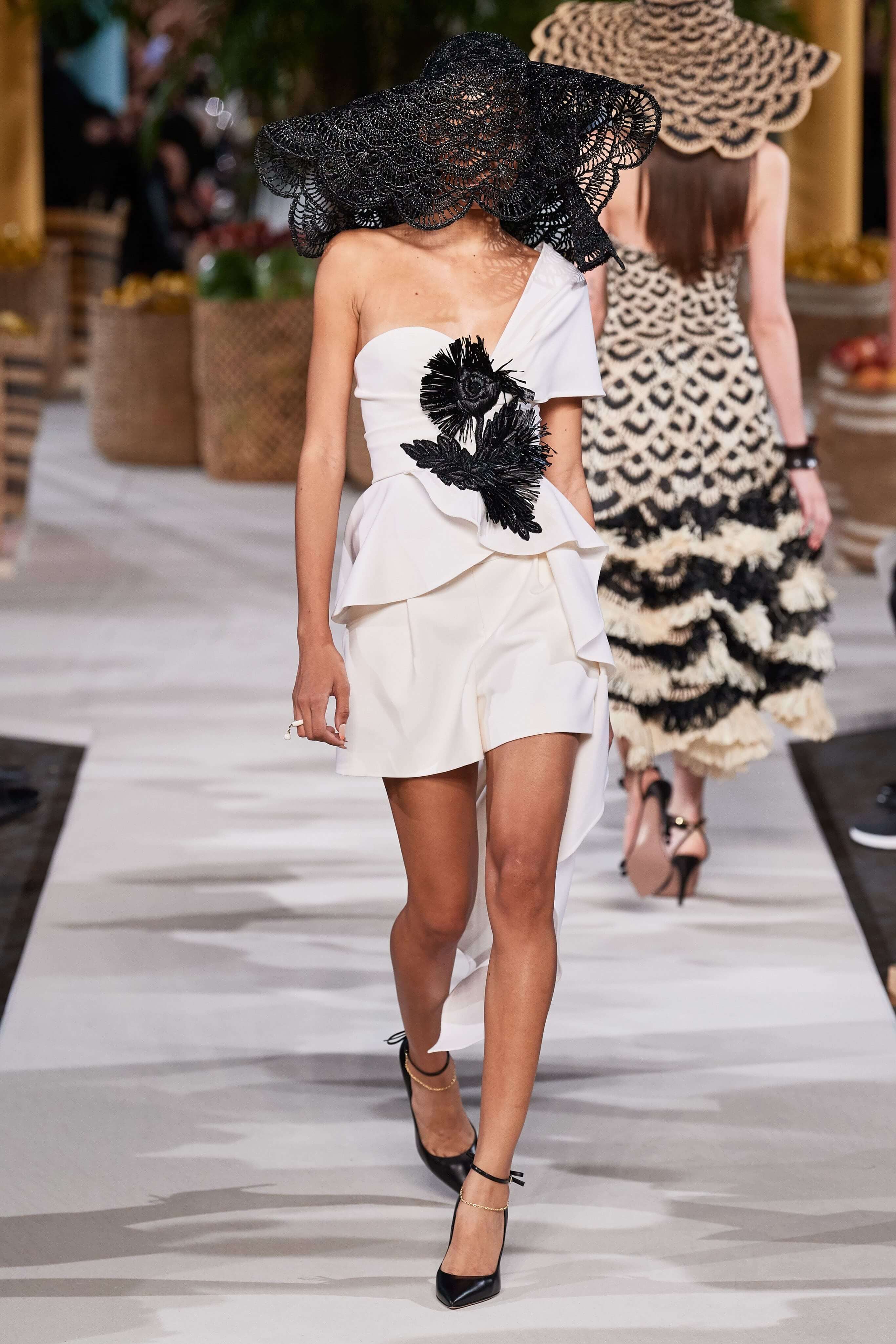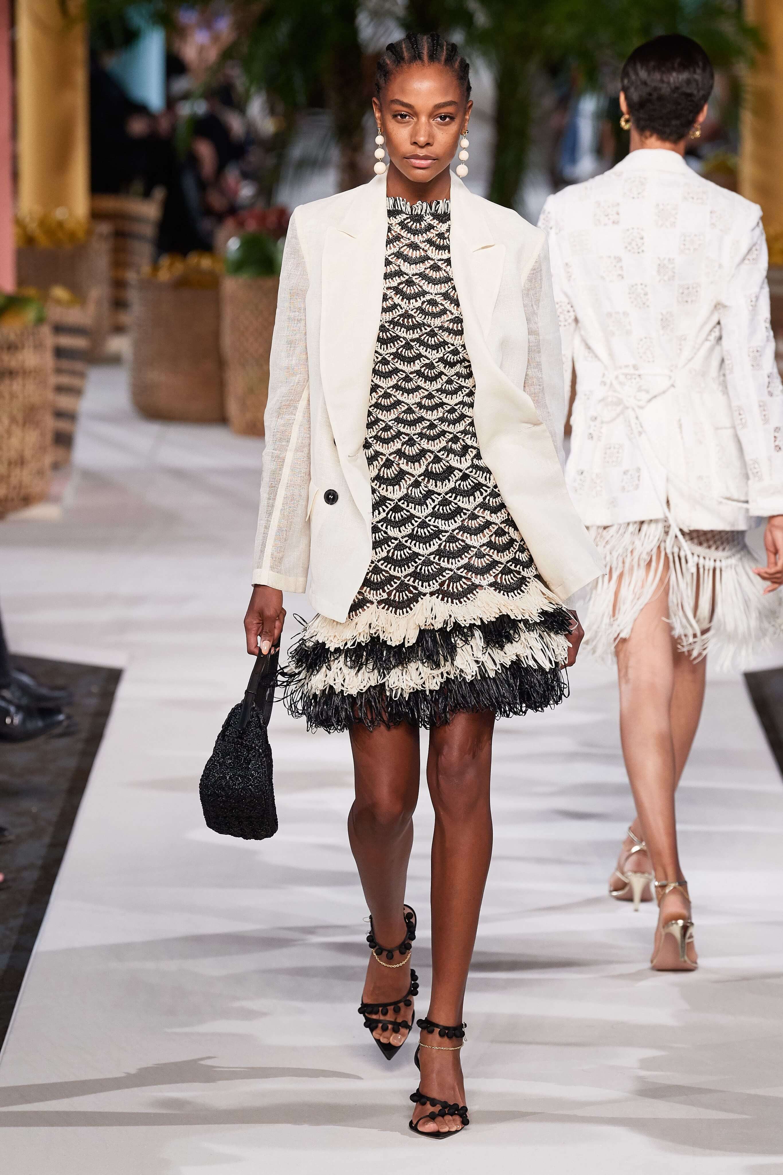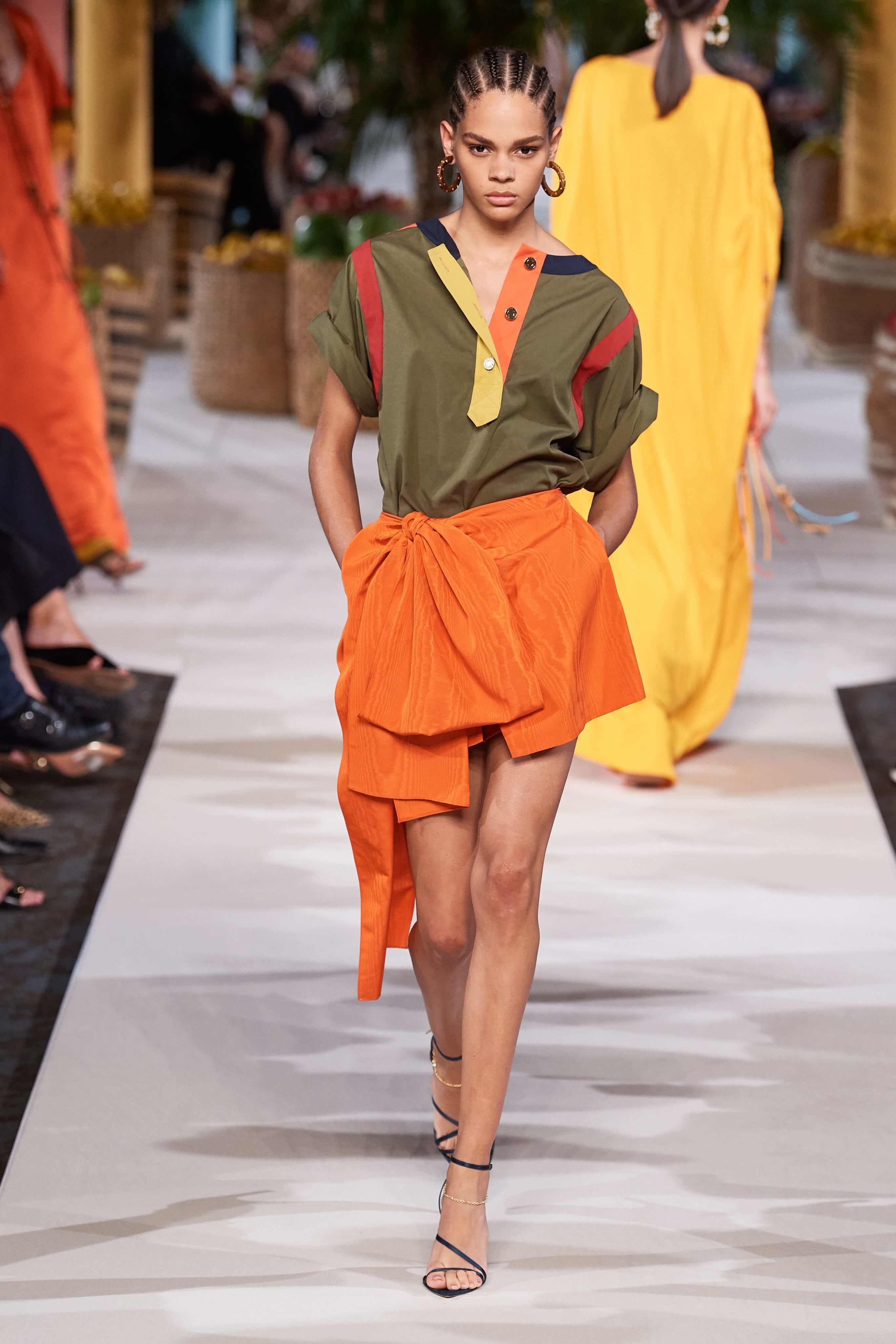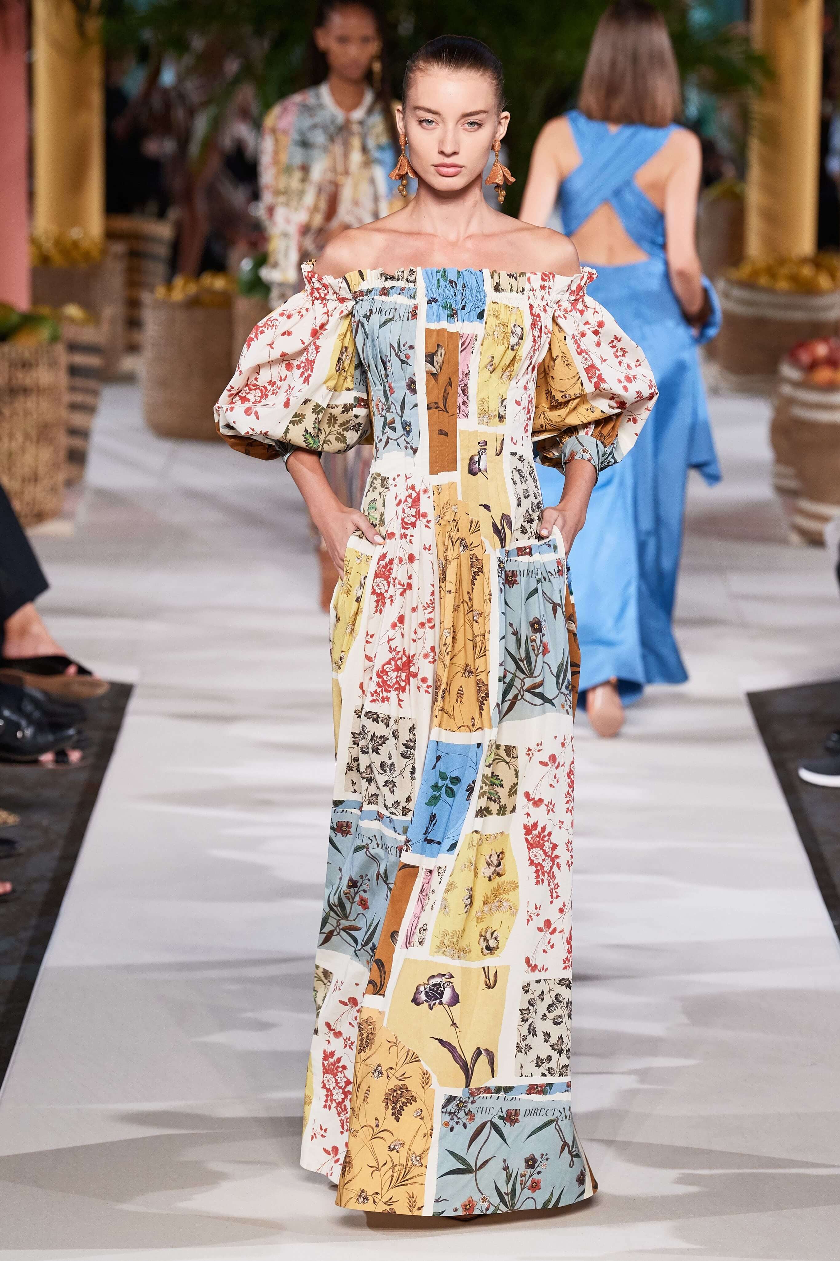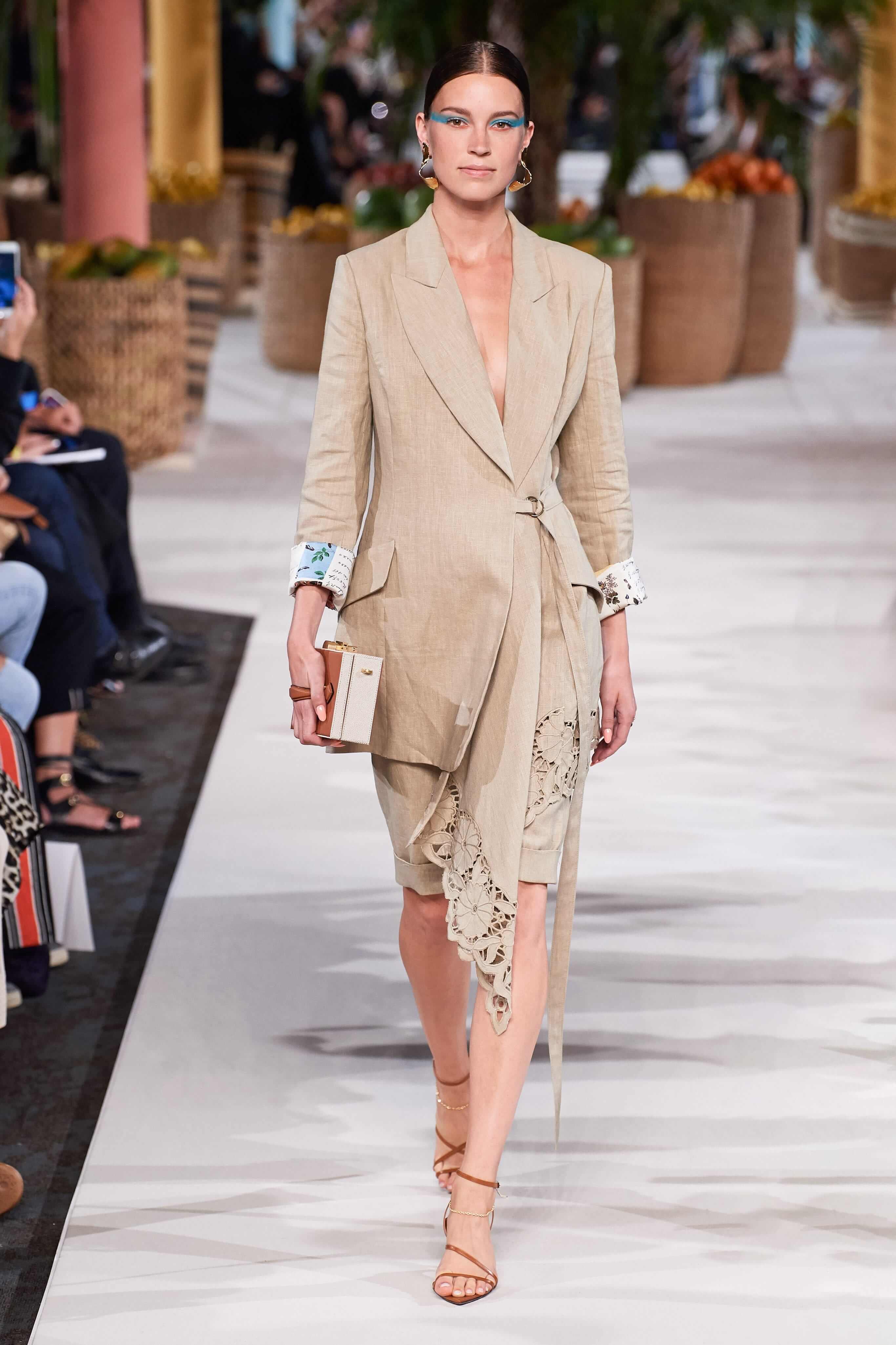 Дизайнеров Лауру Ким и Фернандо Гарсиа вдохновляют география и визуальная культура разных стран. В прошлых сезонах это были Марокко и Испания, на этот раз — родина сеньора де ла Ренты, Доминикана. Традиционную для бренда линию шелковых и атласных вечерних платьев дополнили жизнерадостные наряды в романтичном духе Латинской Америки: облегающие платья в полоску, как на карнавальной карусели, и с декором из разноцветных кисточек, драпированные юбки, мелко плиссированные платья и торжественные белые и черные халаты в пышных букетах цветов, завязанные на бёдрах огромными бантами мини и будто ритуальные шаманские платья-хламиды, украшенные длинными нитями бусин.