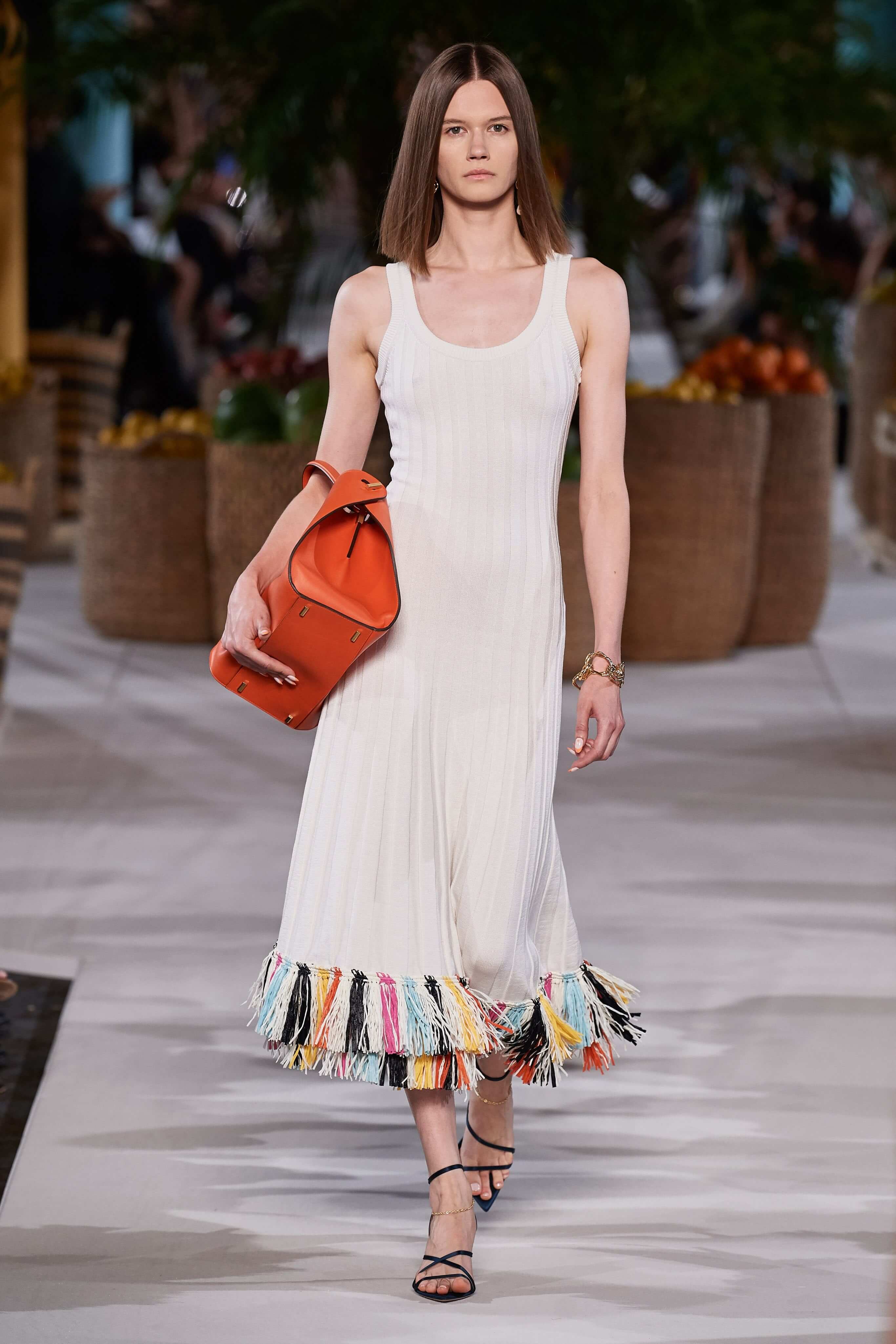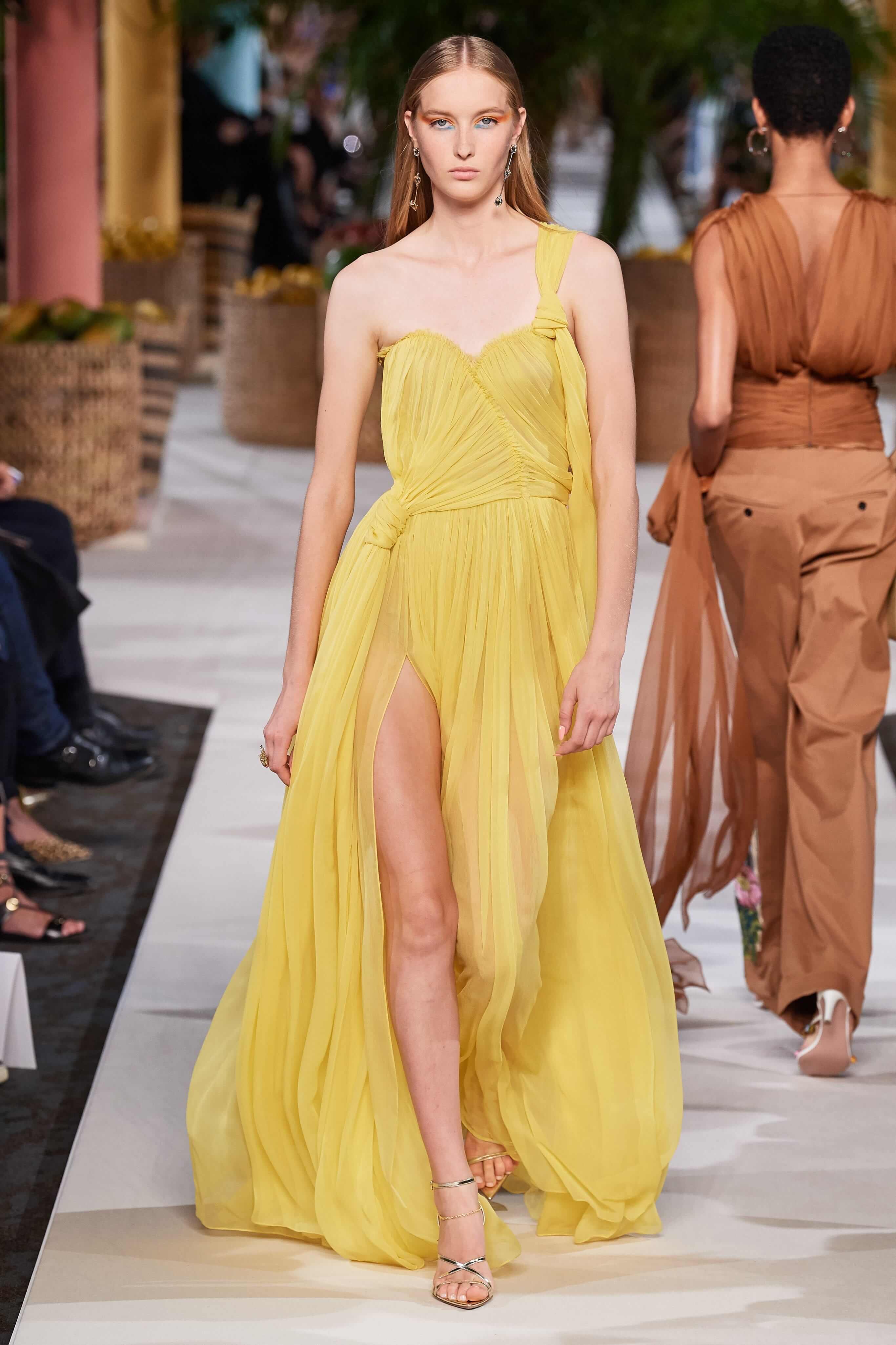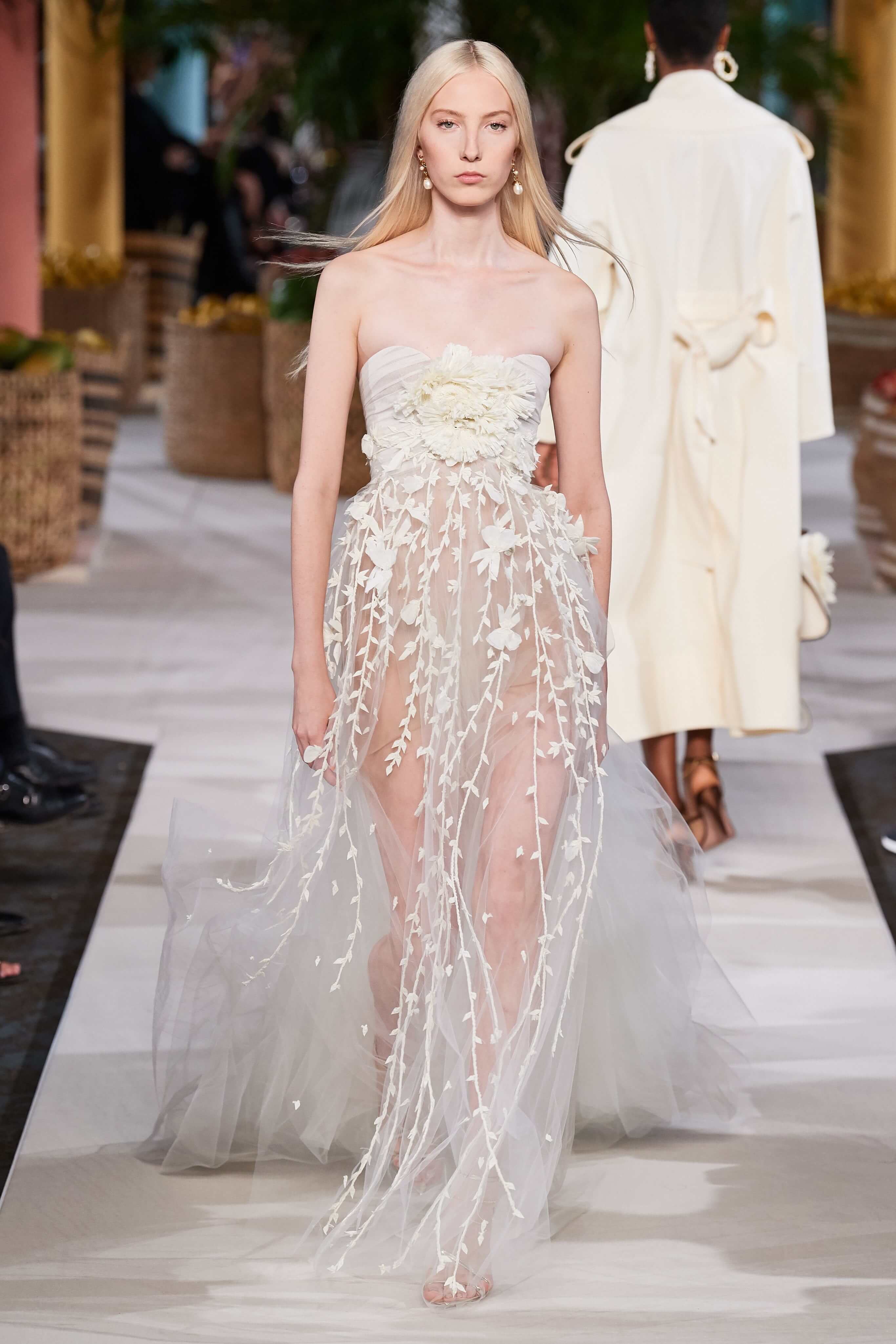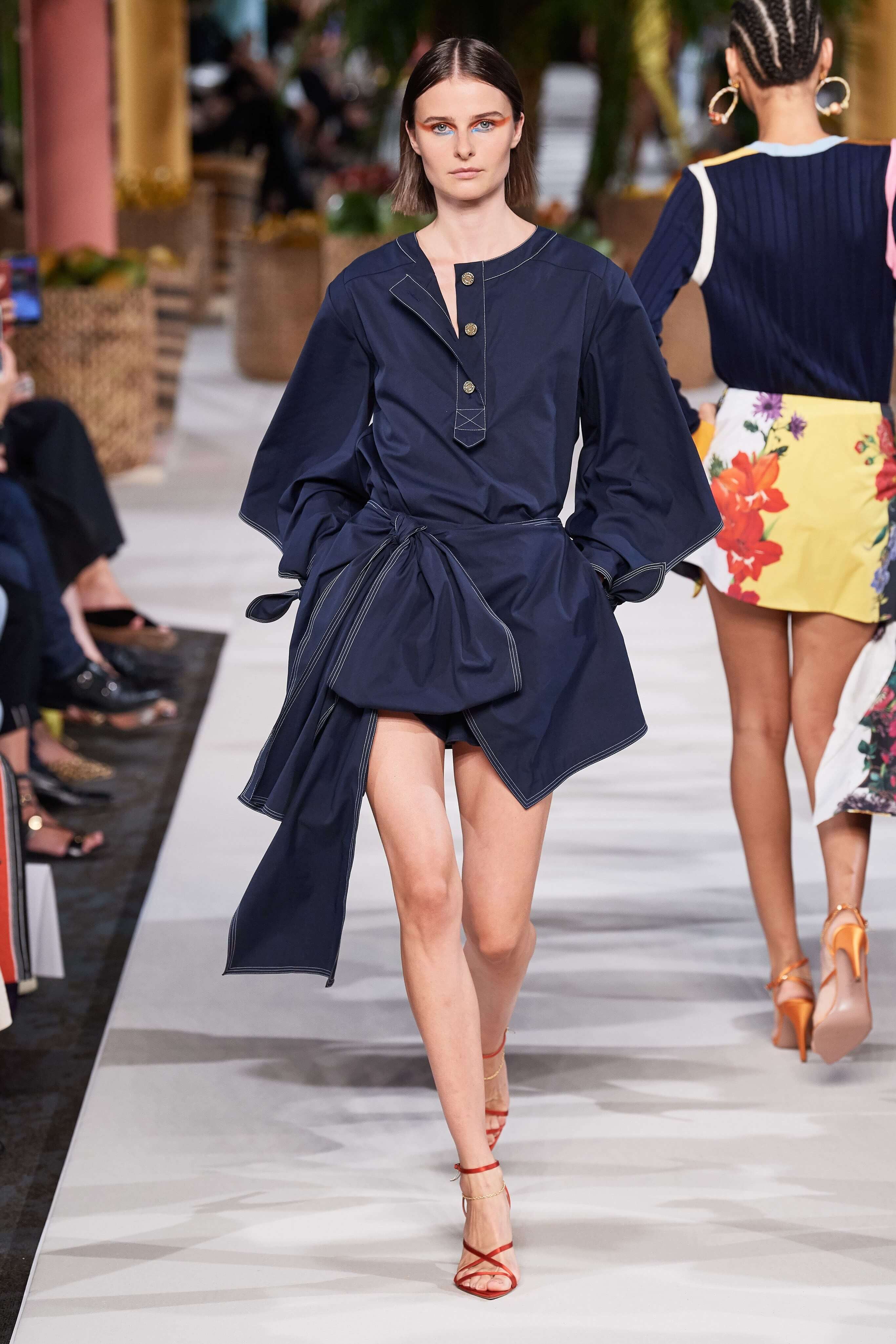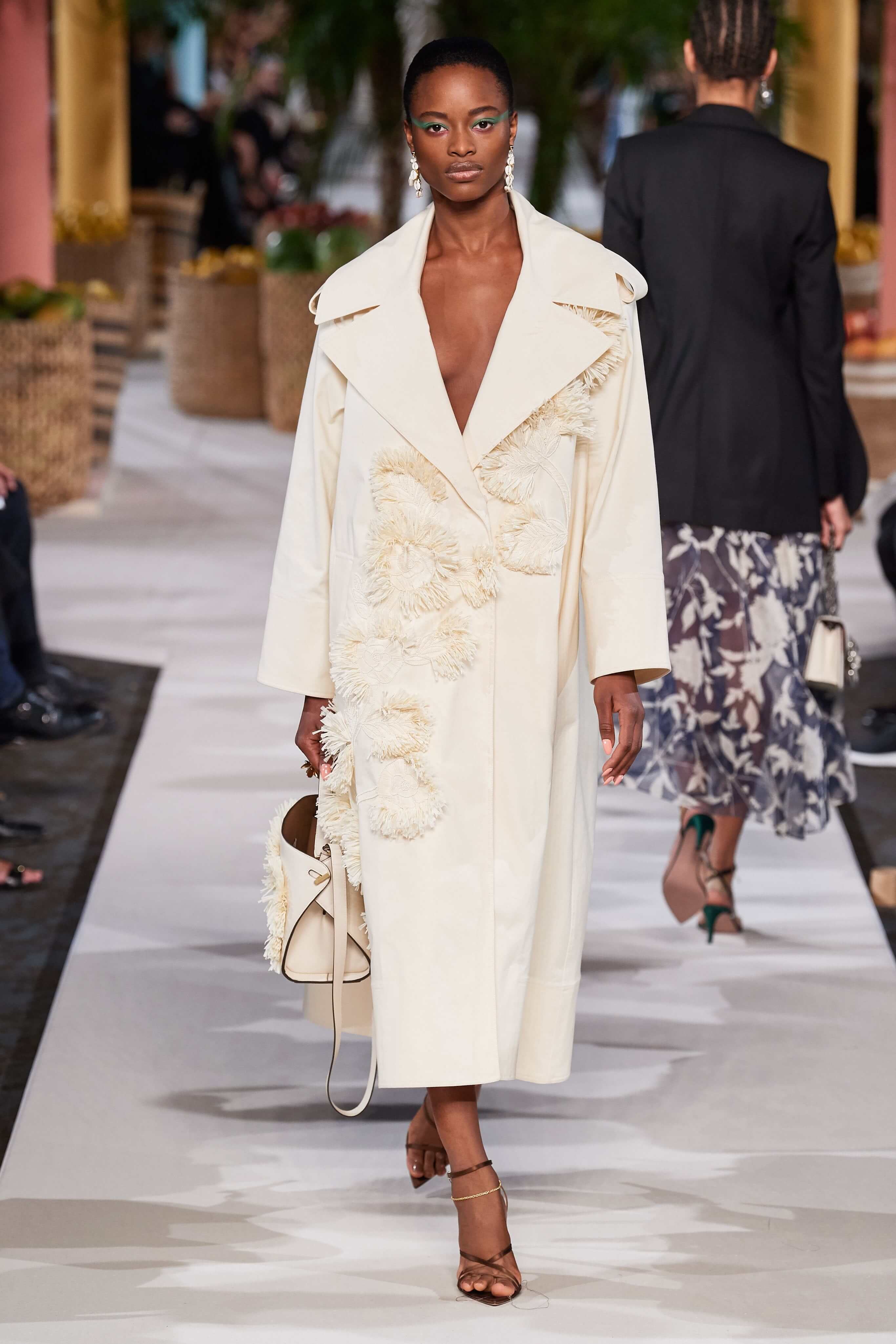 Дизайнеров Лауру Ким и Фернандо Гарсиа вдохновляют география и визуальная культура разных стран. В прошлых сезонах это были Марокко и Испания, на этот раз — родина сеньора де ла Ренты, Доминикана. Традиционную для бренда линию шелковых и атласных вечерних платьев дополнили жизнерадостные наряды в романтичном духе Латинской Америки: облегающие платья в полоску, как на карнавальной карусели, и с декором из разноцветных кисточек, драпированные юбки, мелко плиссированные платья и торжественные белые и черные халаты в пышных букетах цветов, завязанные на бёдрах огромными бантами мини и будто ритуальные шаманские платья-хламиды, украшенные длинными нитями бусин.