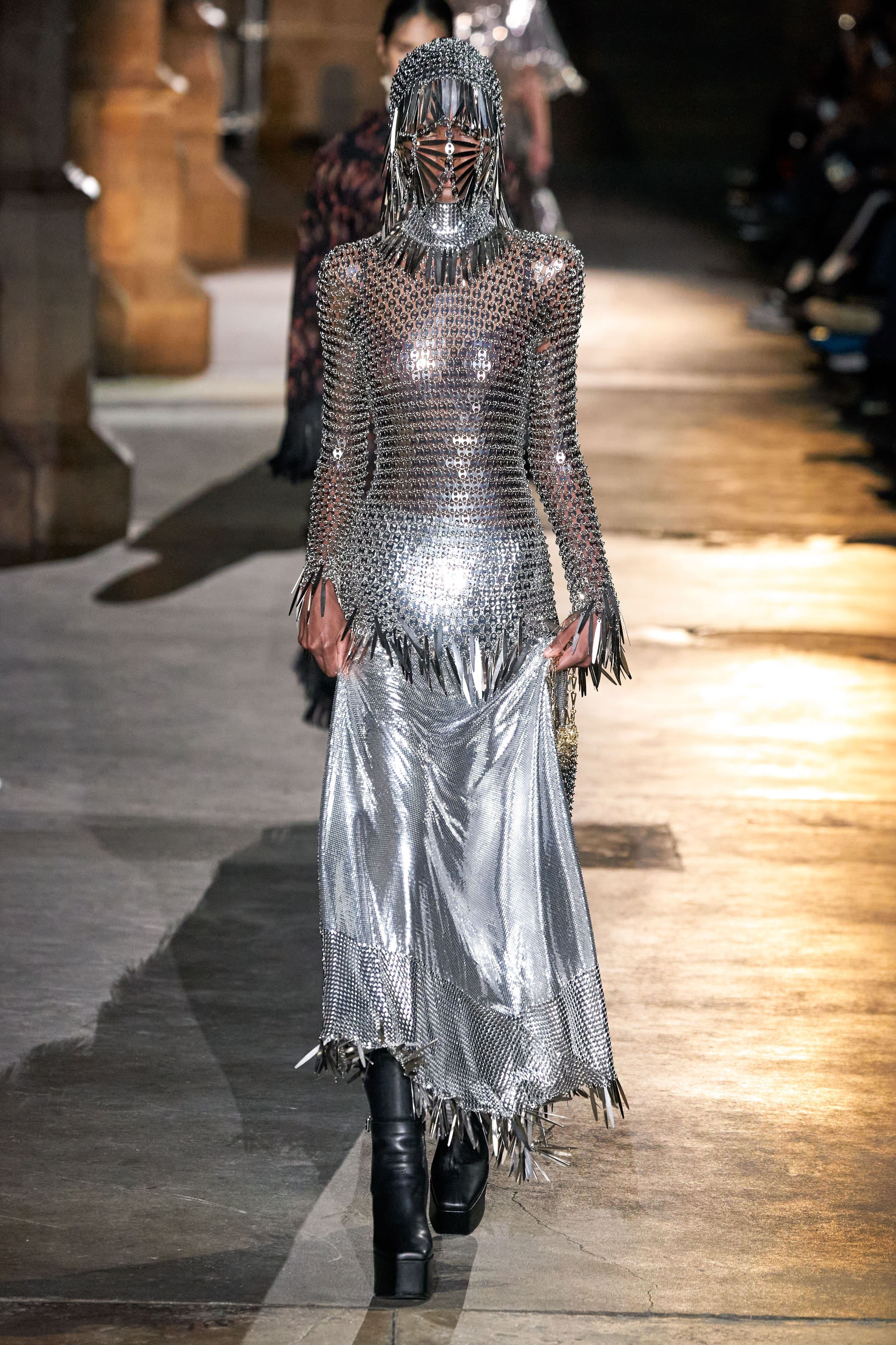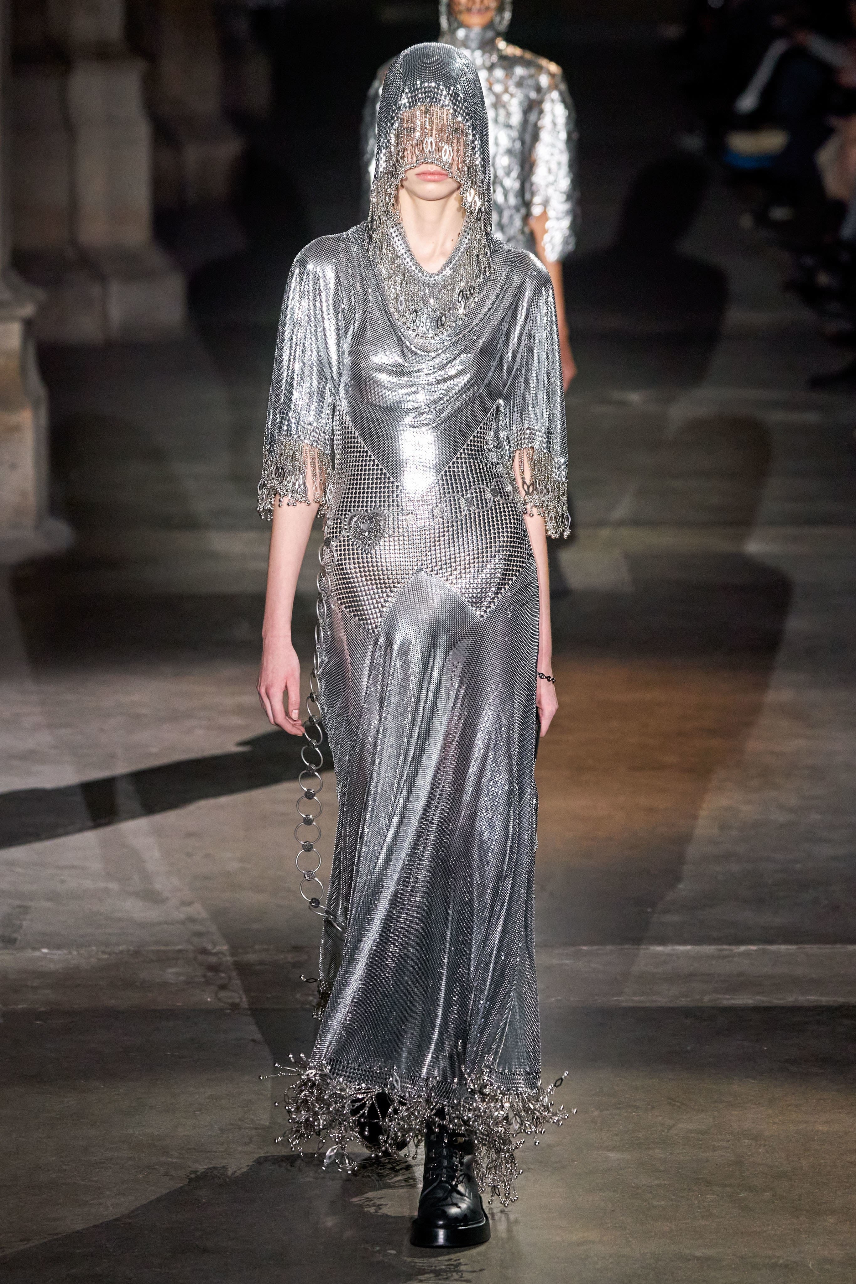 Читайте также: Серебряные костюмы, радужные свитера и космические мотивы в коллекции Paco Rabanne