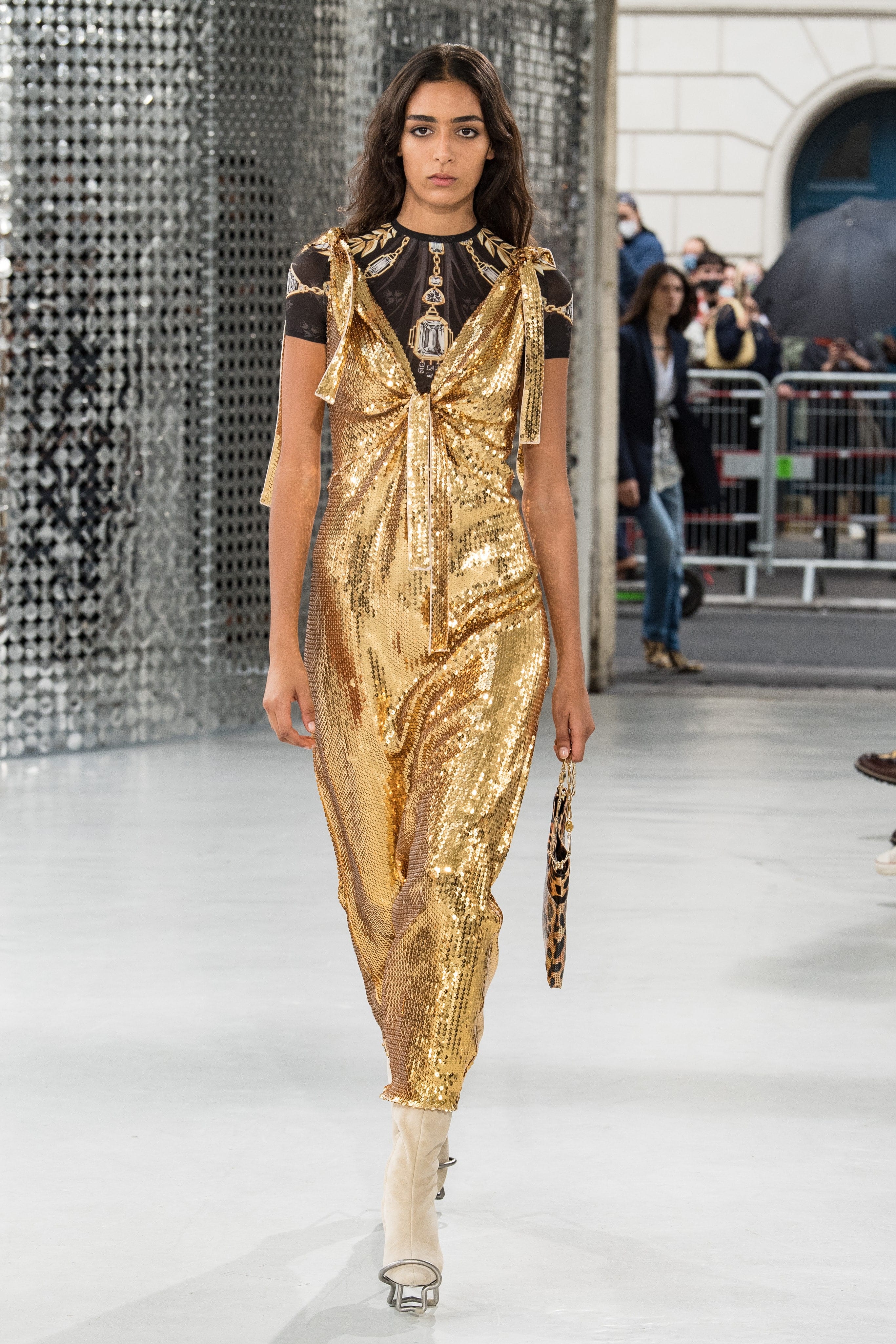 Дизайнер Жюльен Доссена создавал весеннюю коллекцию для дома Paco Rabanne с оглядкой на свои воспоминания о женщинах, которых каждый день видит проходящими по улицам Парижа, — о том, насколько смело и гордо они выражают свою чувственность через одежду, не стыдясь носить микротопы, провокационные мини и ультраженственные вещи. Стыдиться своей женственности и свободы, по мнению Доссена, большая ошибка и старомодный жест.