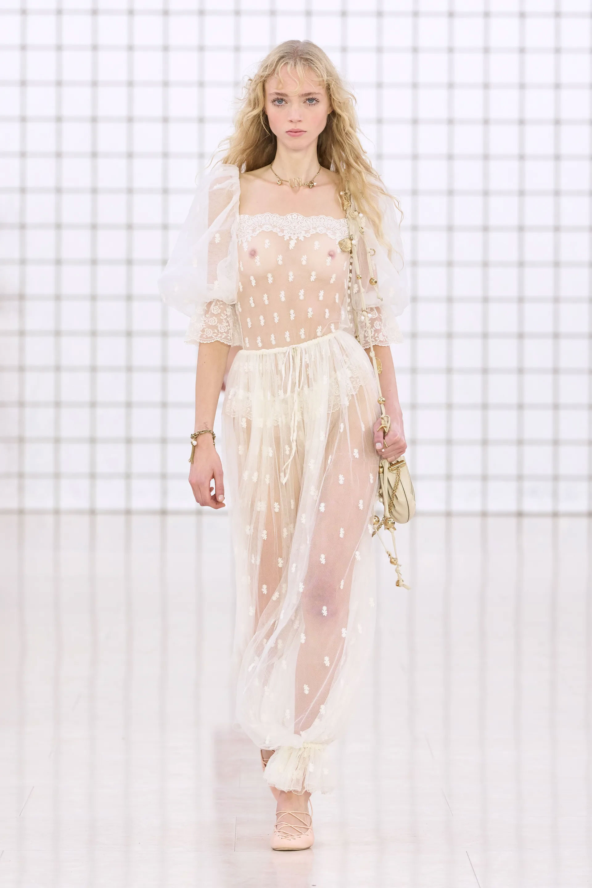Подіумний дебют німецької дизайнерки Чемени Камалі цього березня Chloé був тріумфальним. Він каталізував повернення стилю бохо в моду, а сам модний дім здобув численних прихильників, як-от кандидатку в президенти США Камалу Гарріс. У своїй новій колекції весна-літо 2025 Чемена Камалі зосередилася на легкості, оптимізмі й радості. Останні набули форми прозорих мереживних вбрань, шортів-блумерів, кроше, драпірованих суконь і мариністичних аксесуарів.