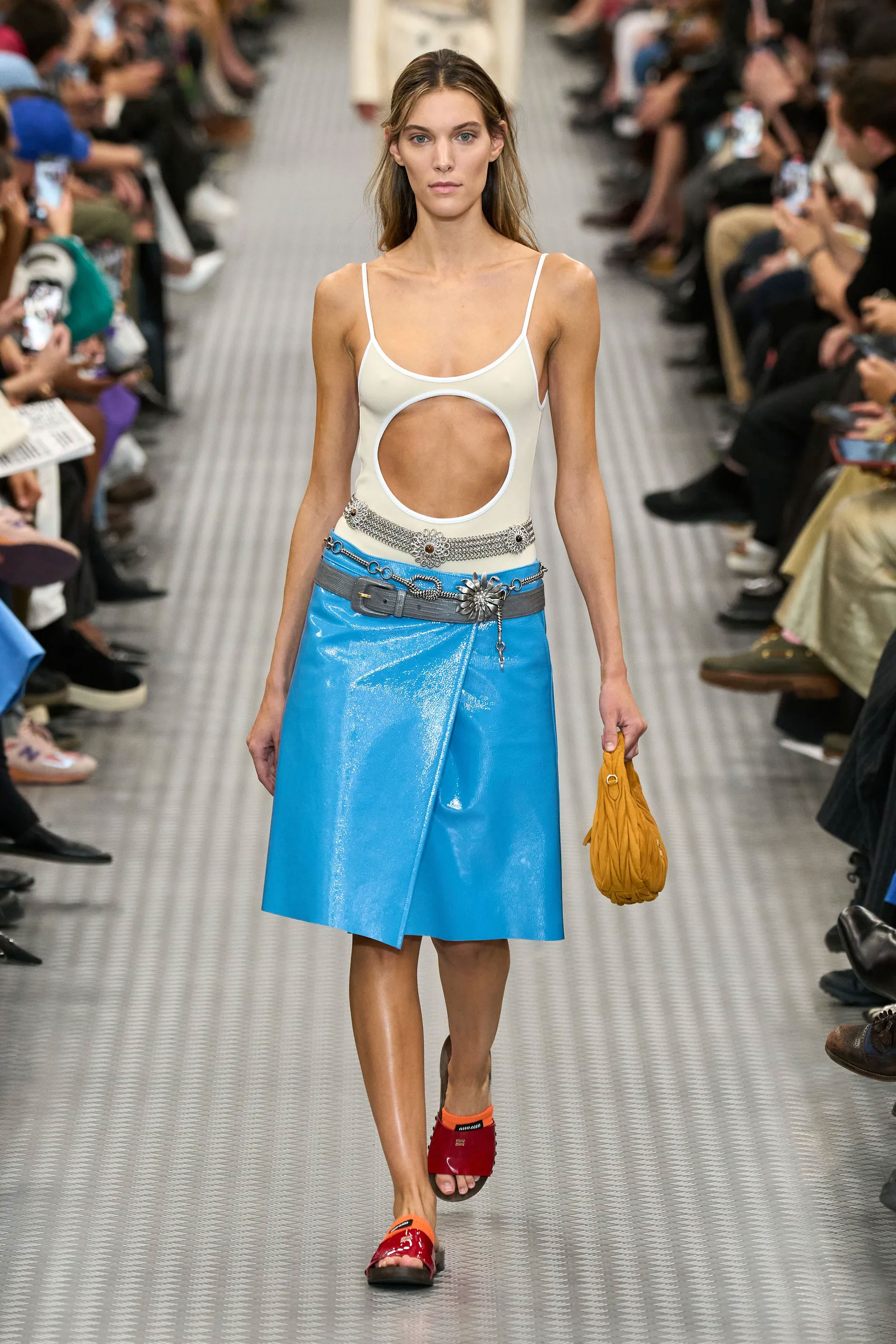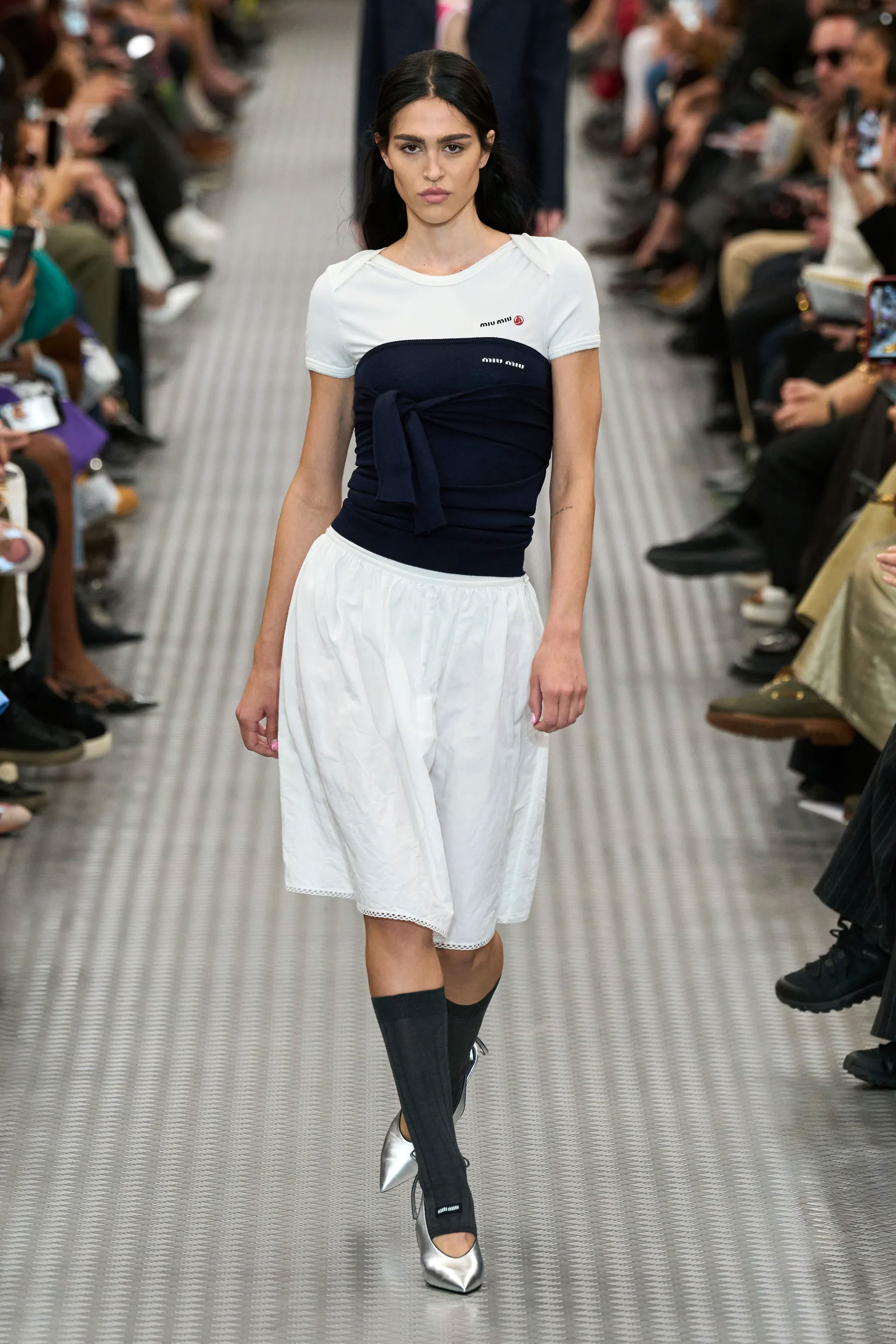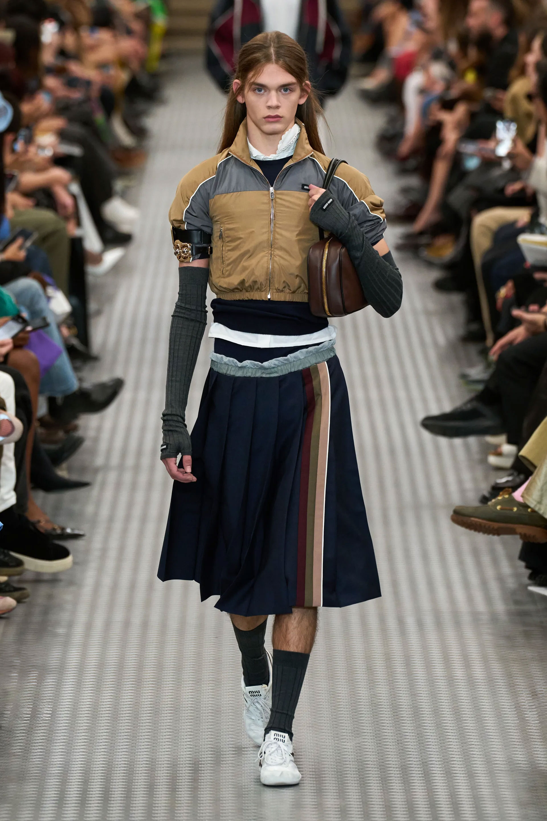 Шоу Miu Miu надихнуло публіку на масштабні роздуми. Бренд привернув увагу до течії endcore — відчуття, яке символізує початок кінця. На банерах та газетах, які роздали гостям показу, були розміщені QR-коди, що вели до різноманітних статей на тему індивідуальності, сучасних технологій та буття в швидкозмінному світі. У колекції поєдналися шовкові сукні та спортивні костюми, мікрошорти та оздоблені спідниці, байкерські куртки та двобортні жакети. Показ Miu Miu закривав Вілем Дефо, який раніше вже дефілював для шоу Prada.