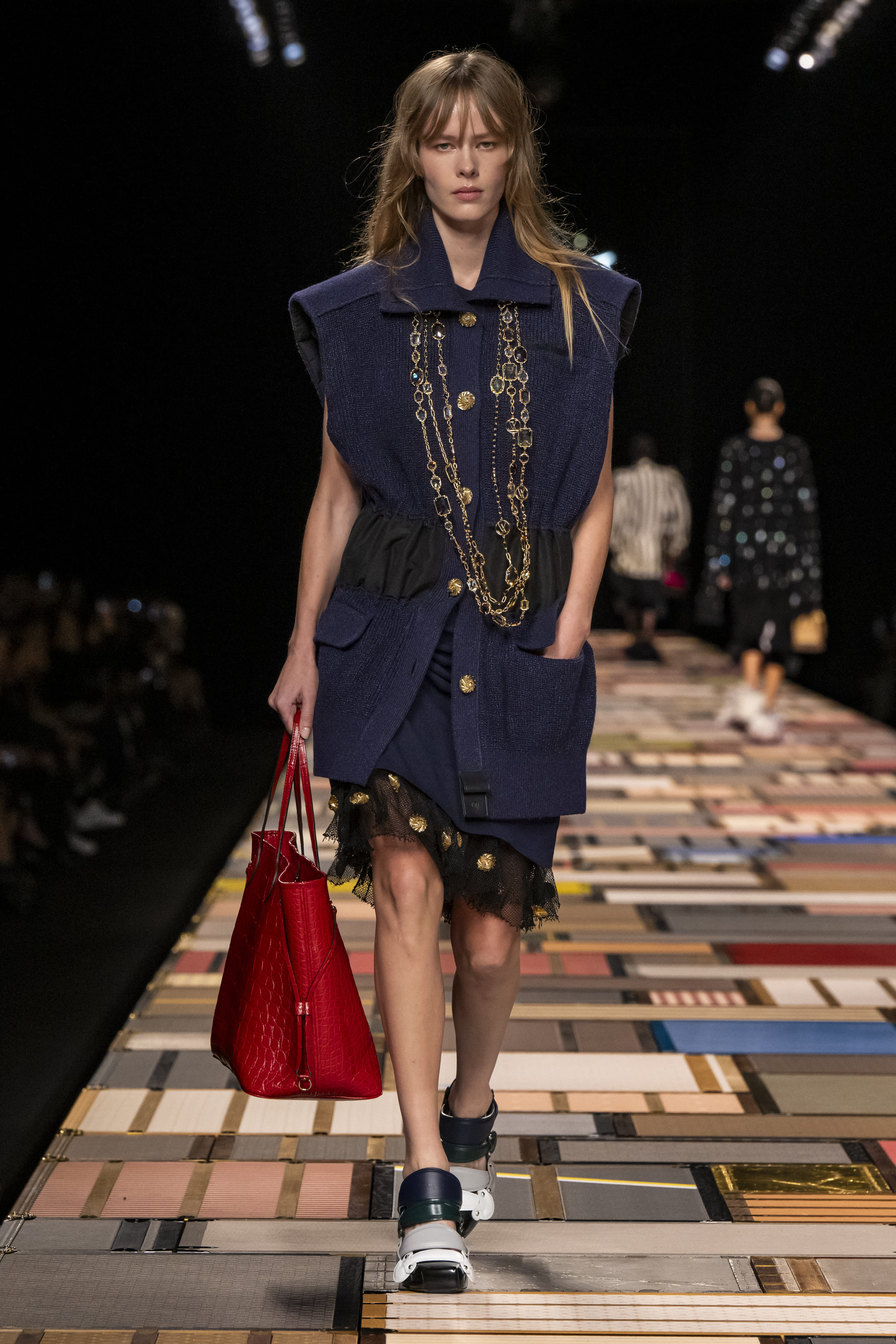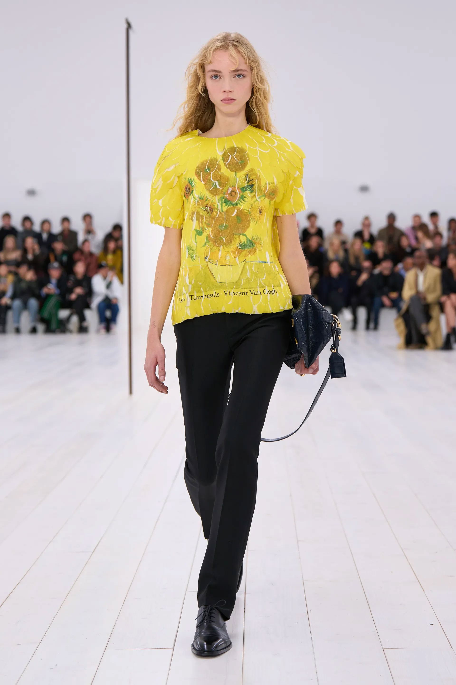 Louis Vuitton представили колекцію spring-summer — 2025 у дворику Лувра, куди один за одним прибували амбасадори та зіркові гості шоу: Зендая, Ліса та інші знаменитості. Колекцію нового сезону Ніколя Геск’єр присвятив гармонії протилежності — силі та м’якості, які формують глибинну структуру всесвіту. До колекції ввійшли коктейльні сукні з декоративним мереживом, яскравими принтами чи кольоровими вставками, об’ємні жакети з трапецевидним низом, плащі з акцентними рукавами-воланами, блузи різноманітного крою та широкі бріджи.